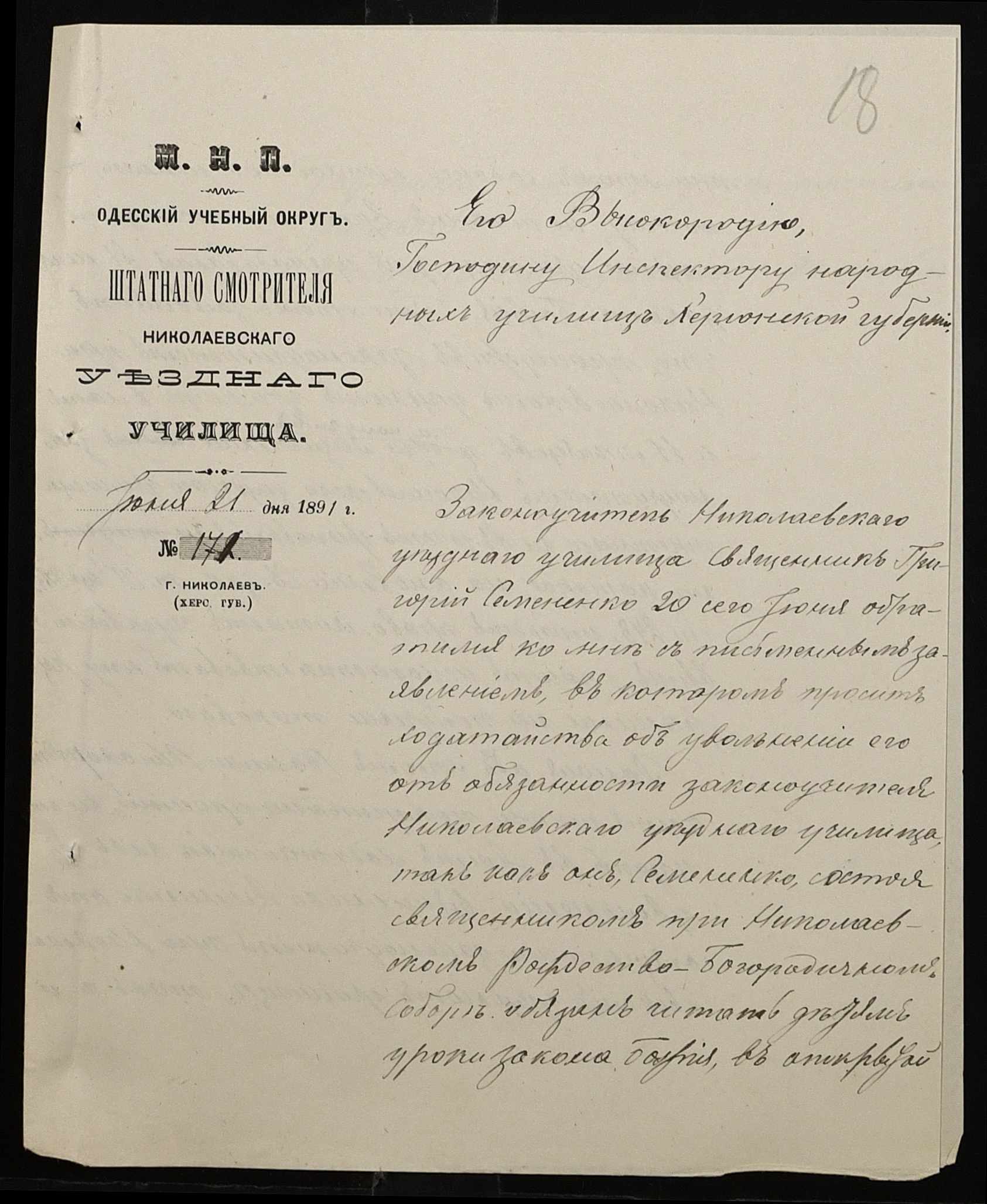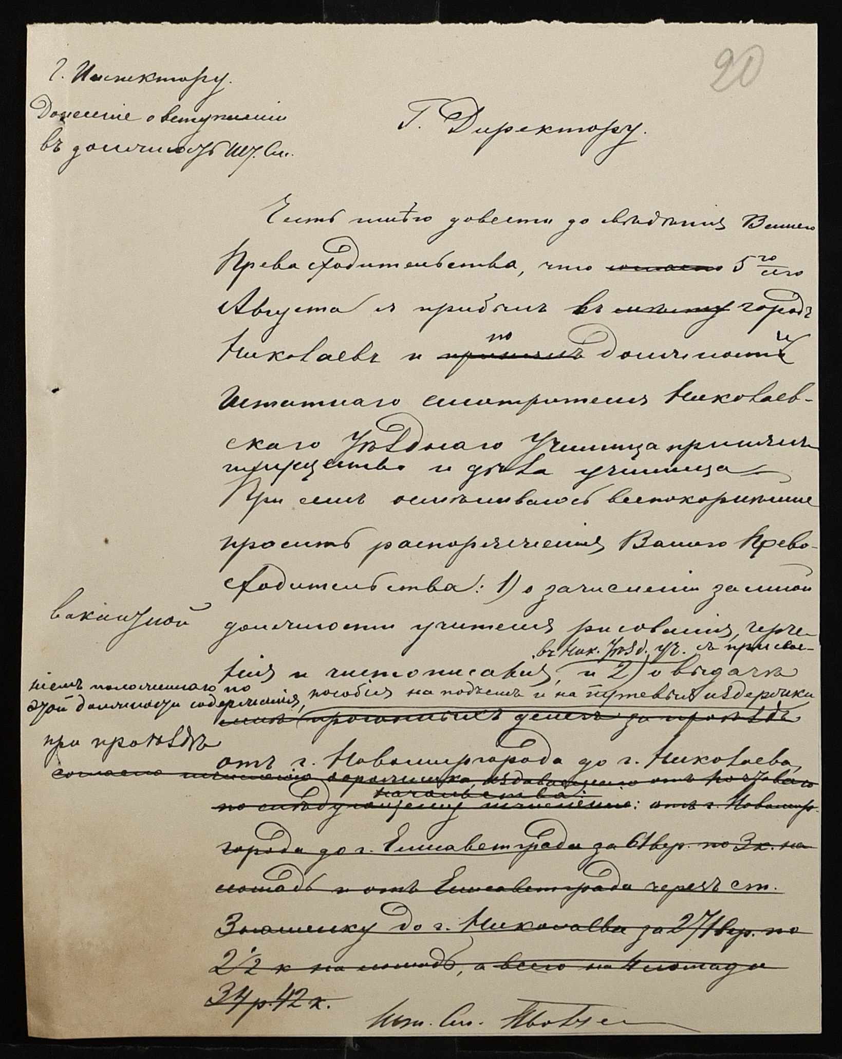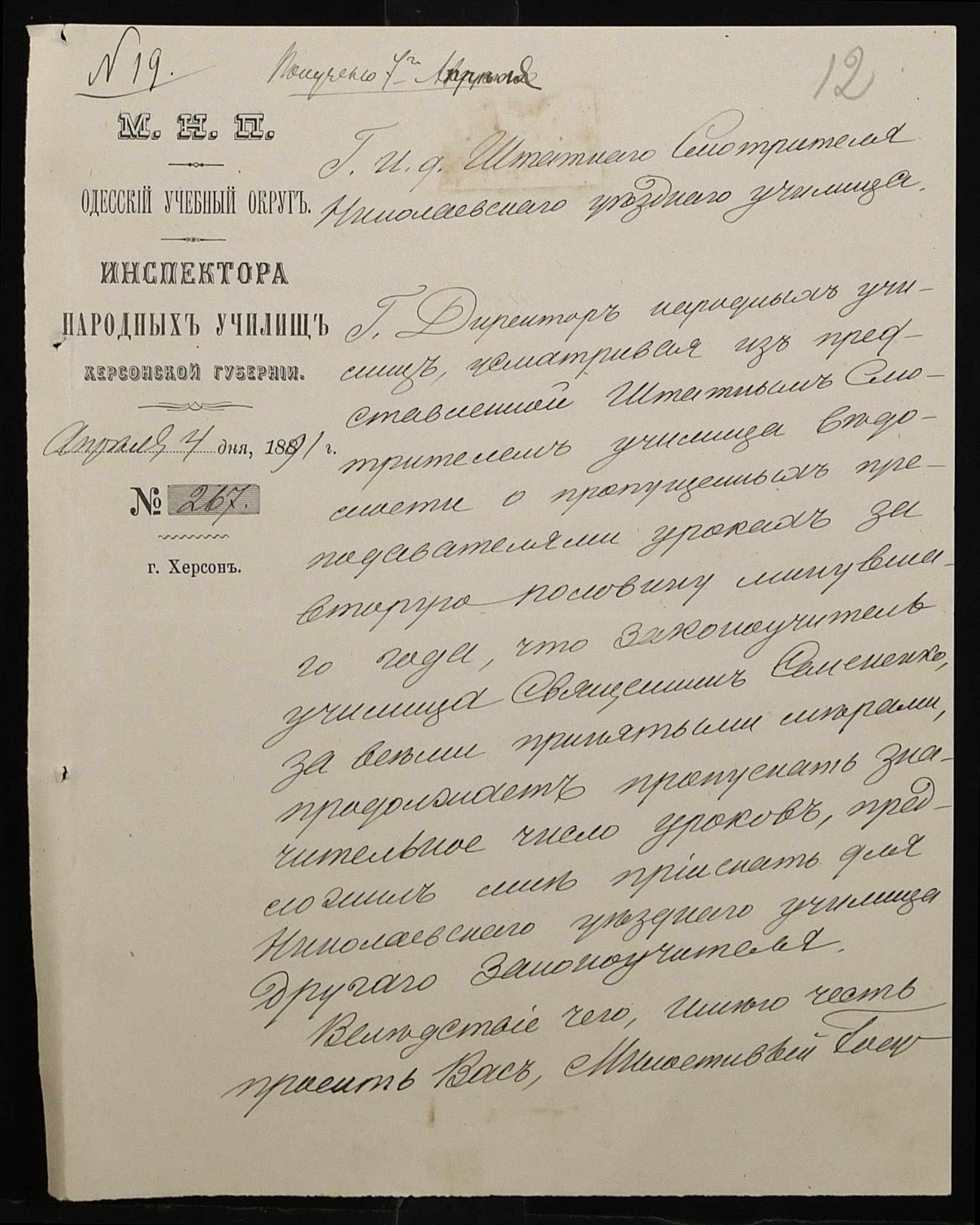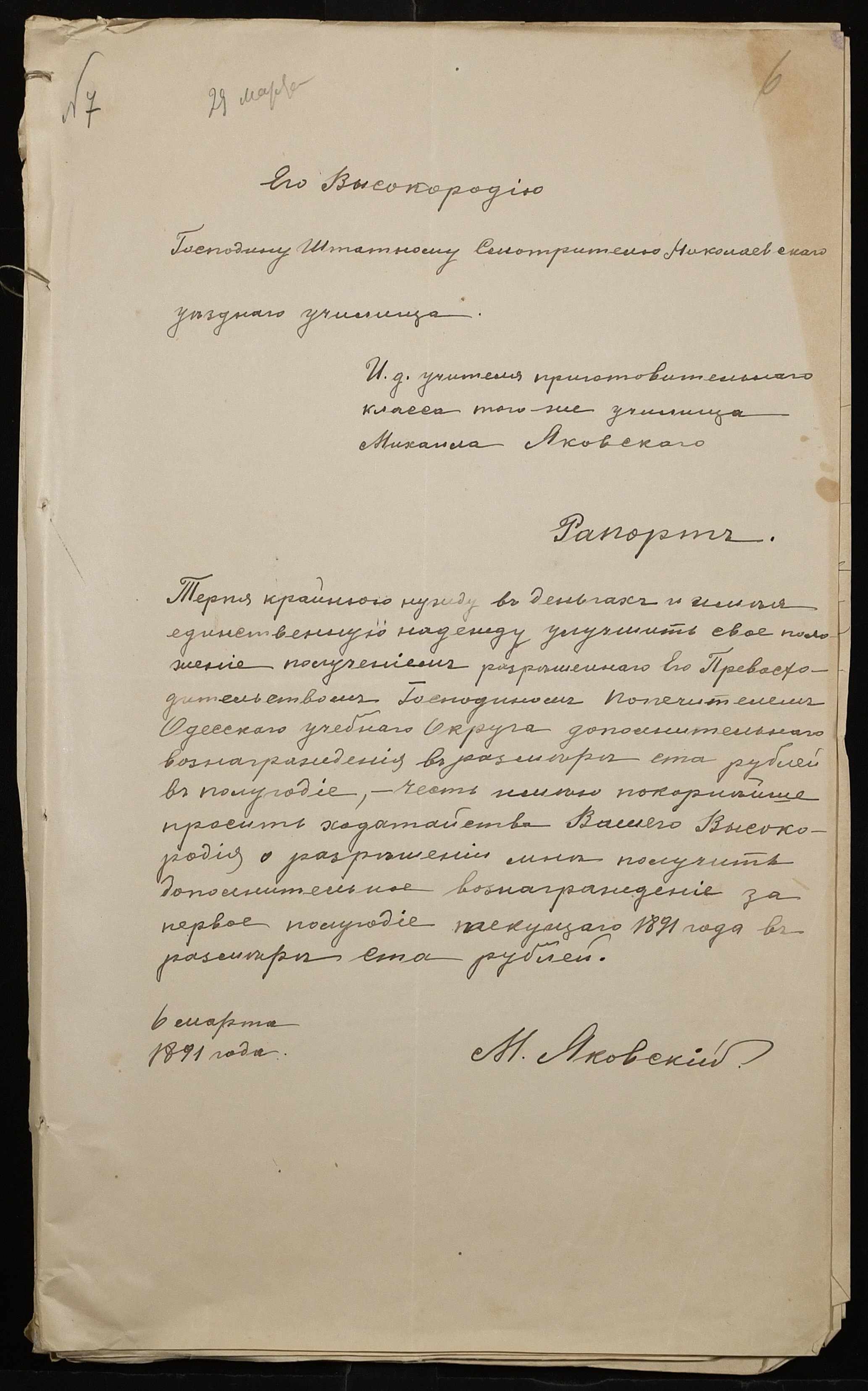 • • • • Справа № 250 “Листування про проходження служби чиновниками повітового училища”