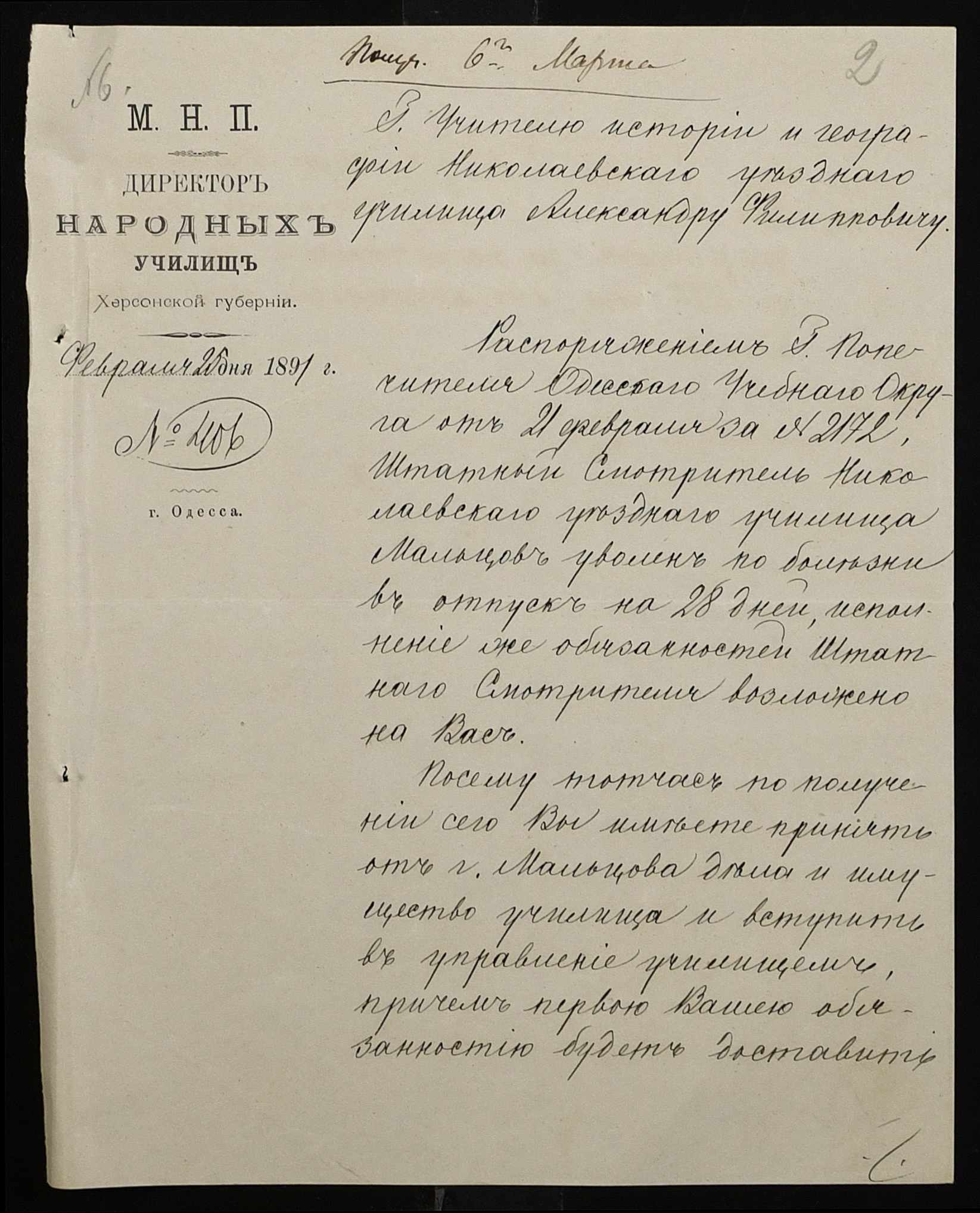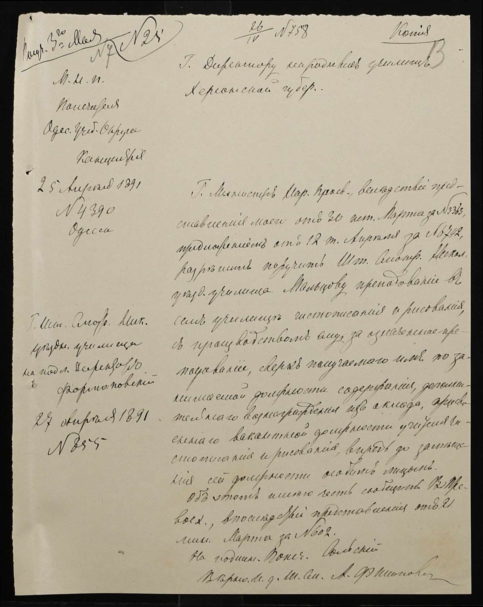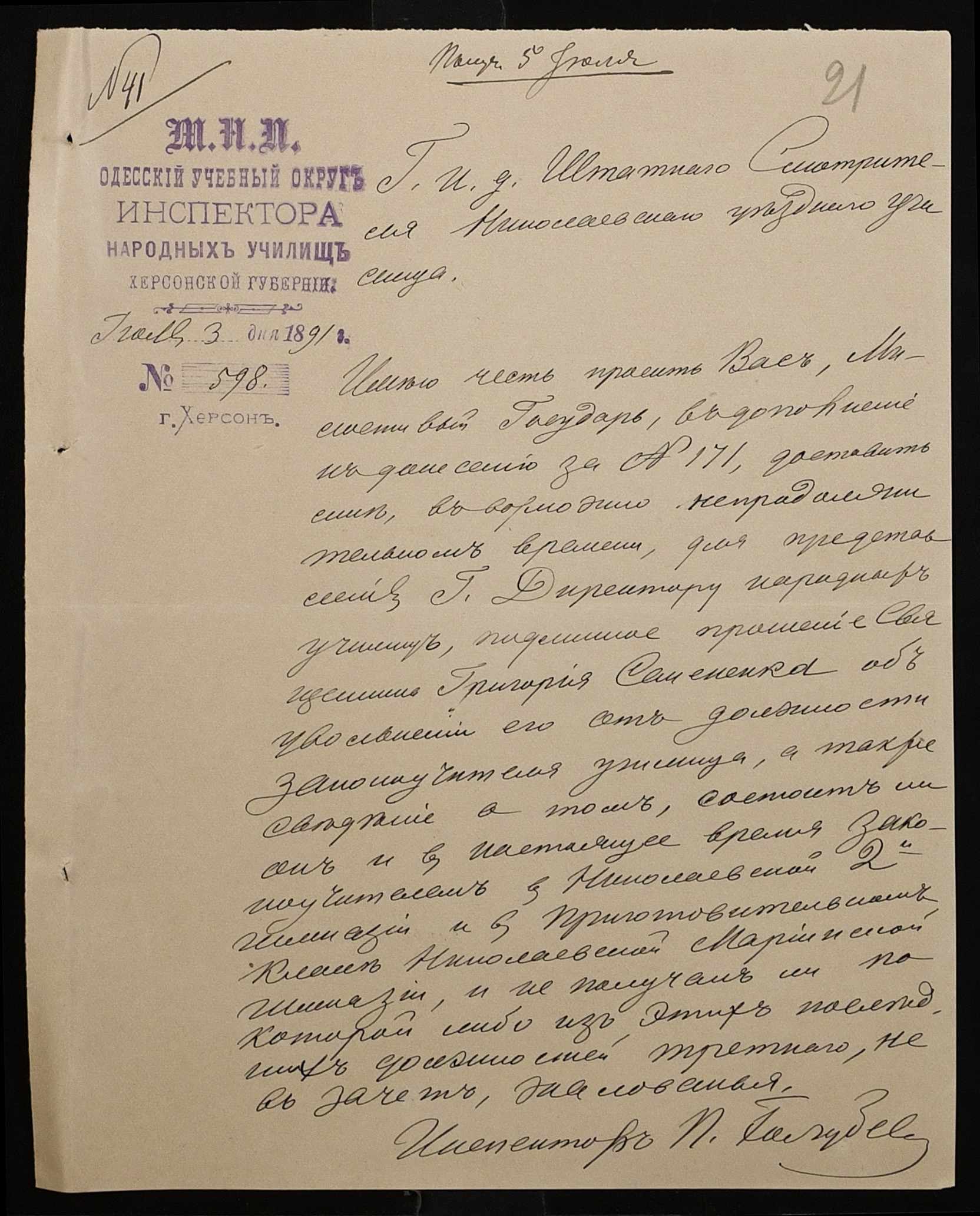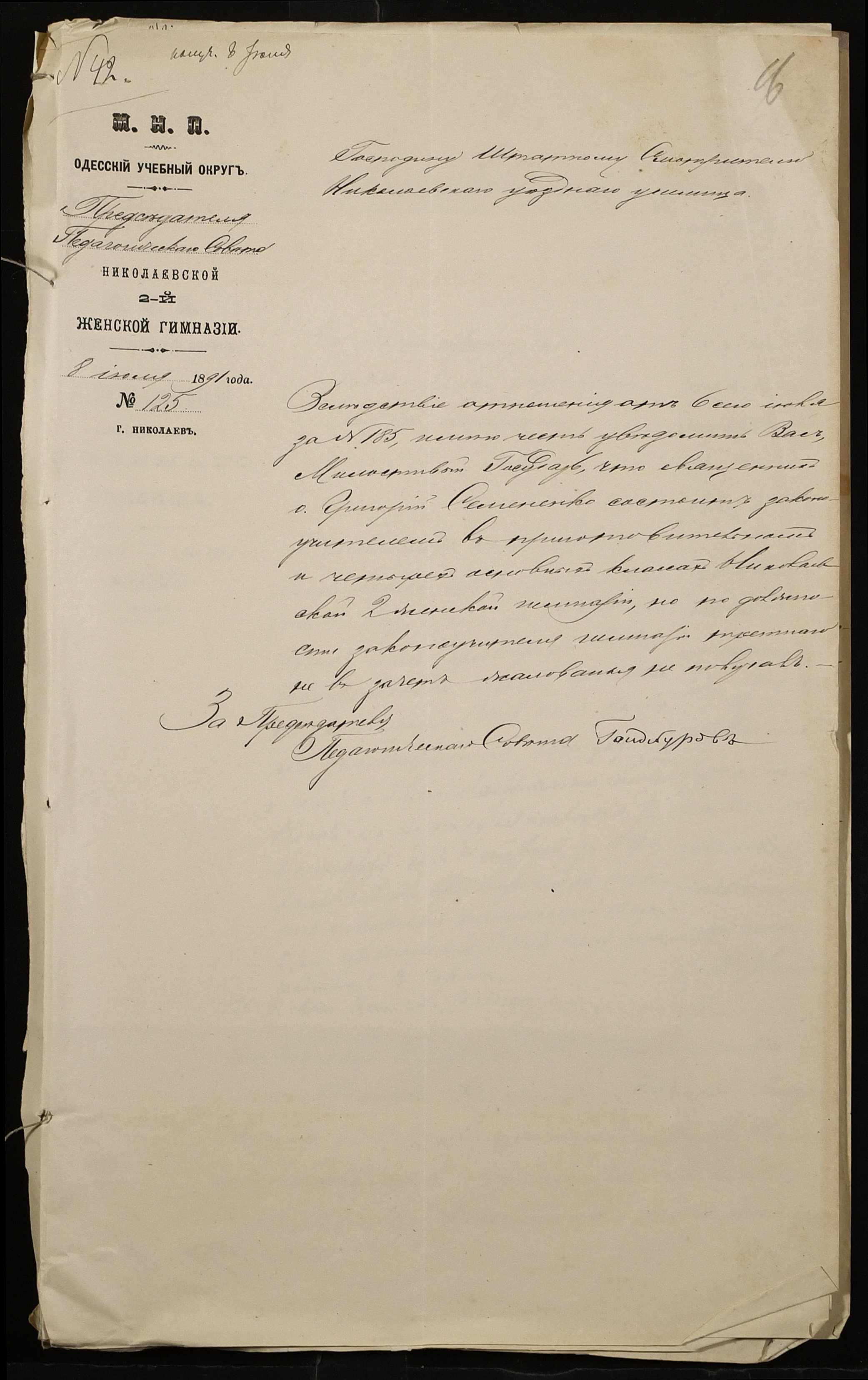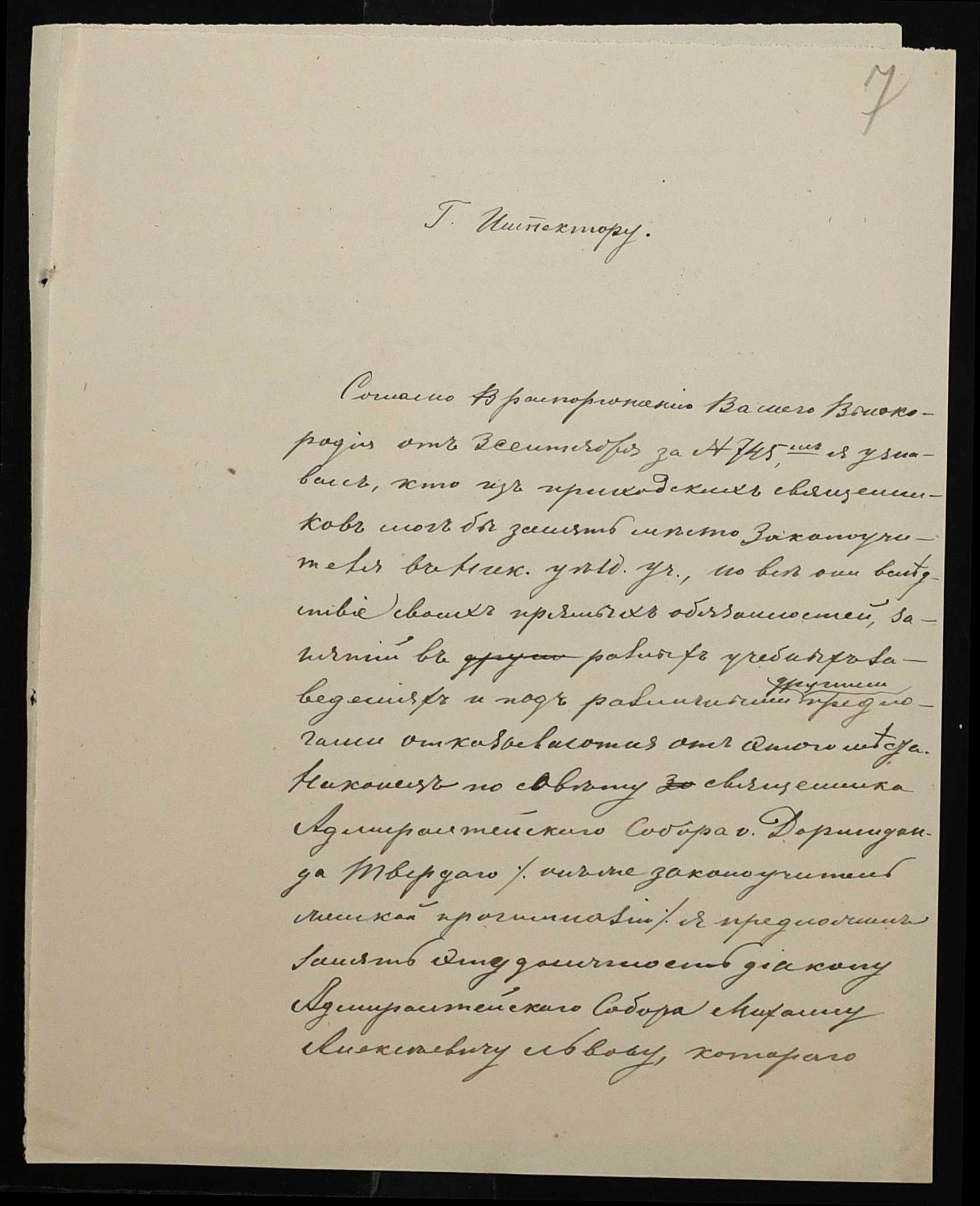 • • • • Справа № 250 “Листування про проходження служби чиновниками повітового училища”
