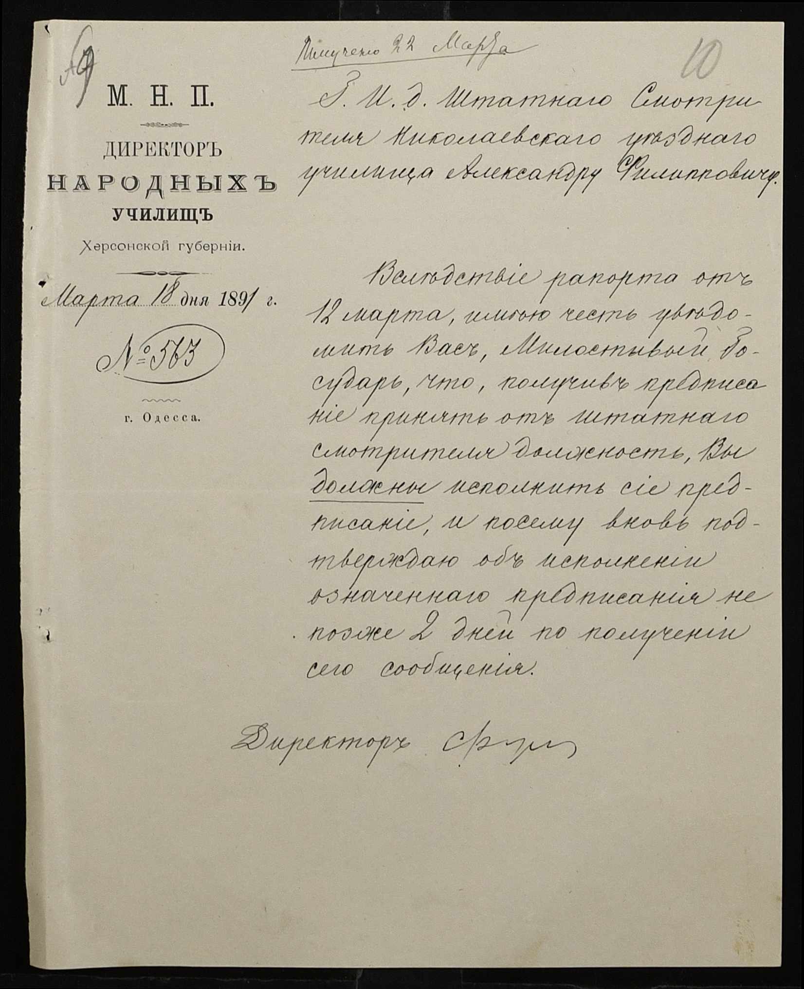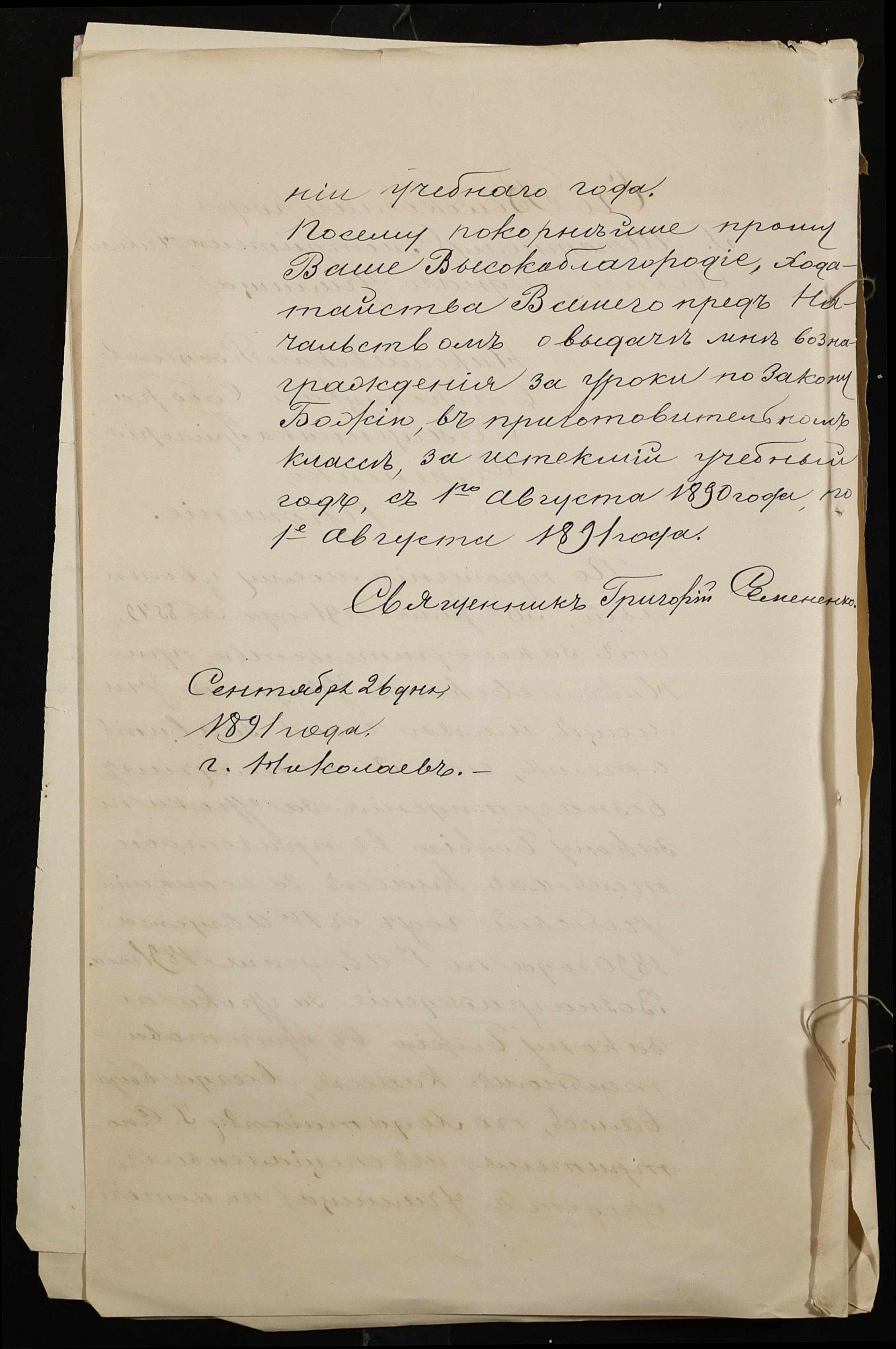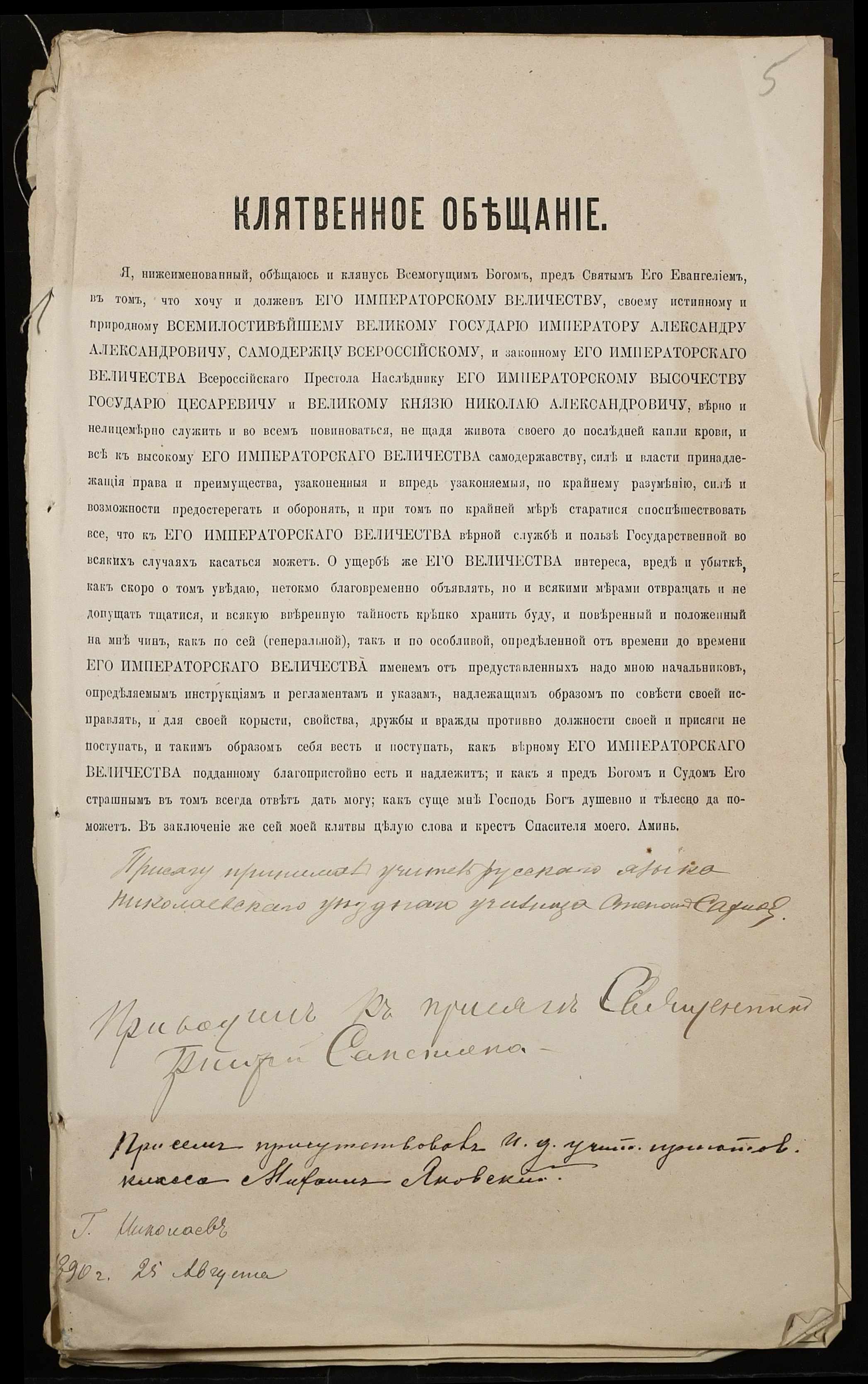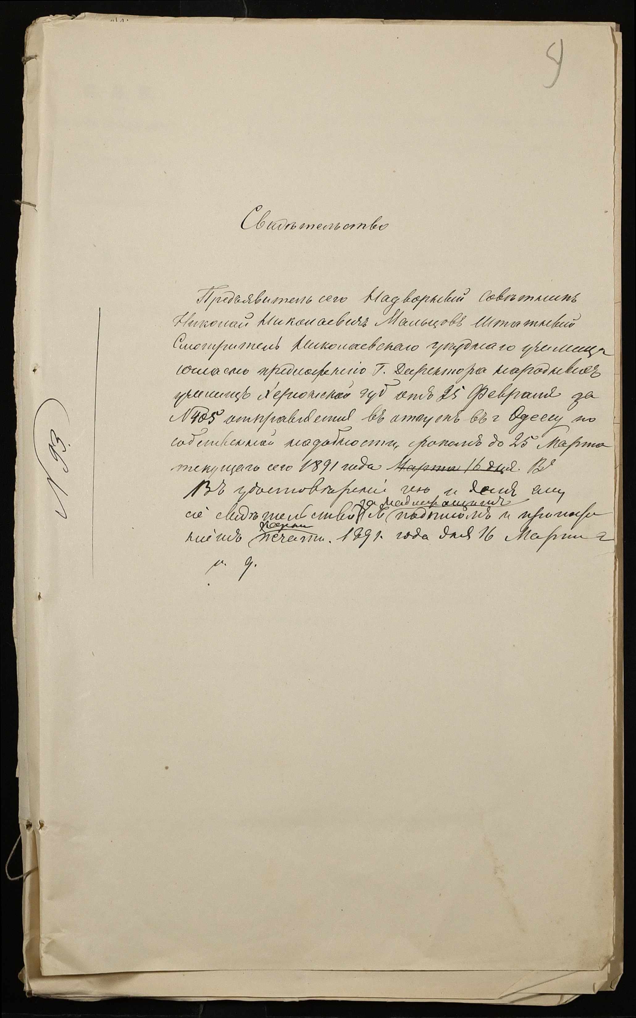 • • • • Справа № 250 “Листування про проходження служби чиновниками повітового училища”