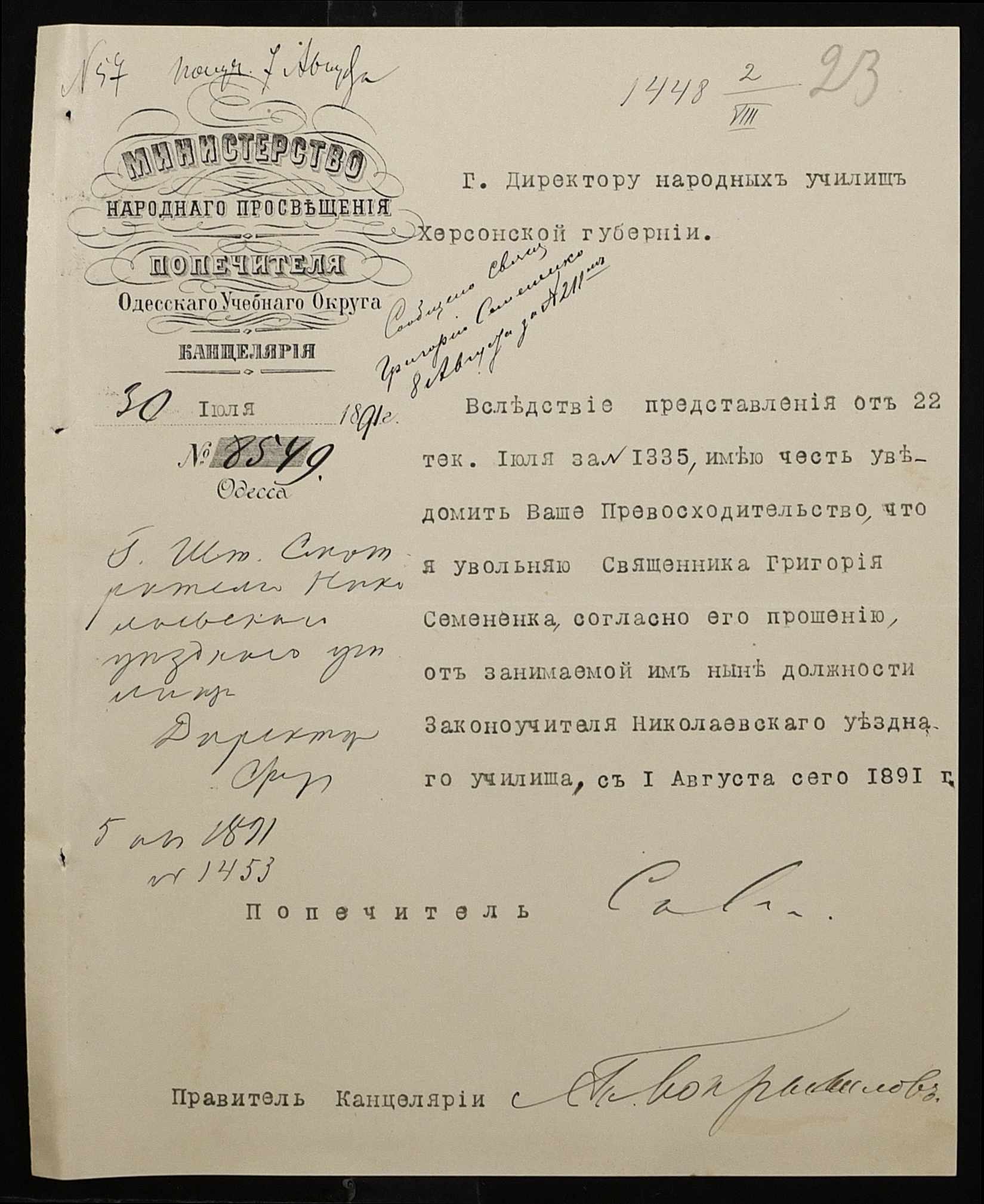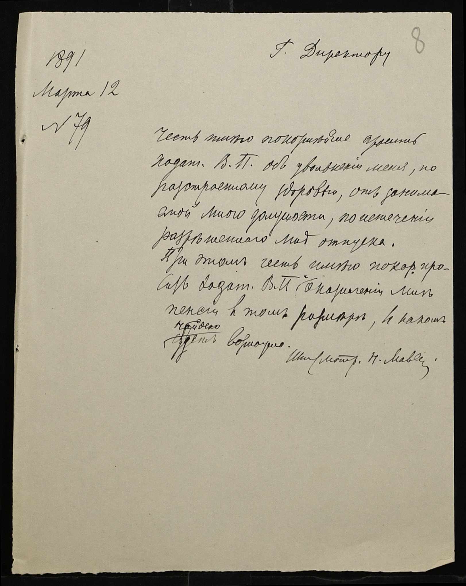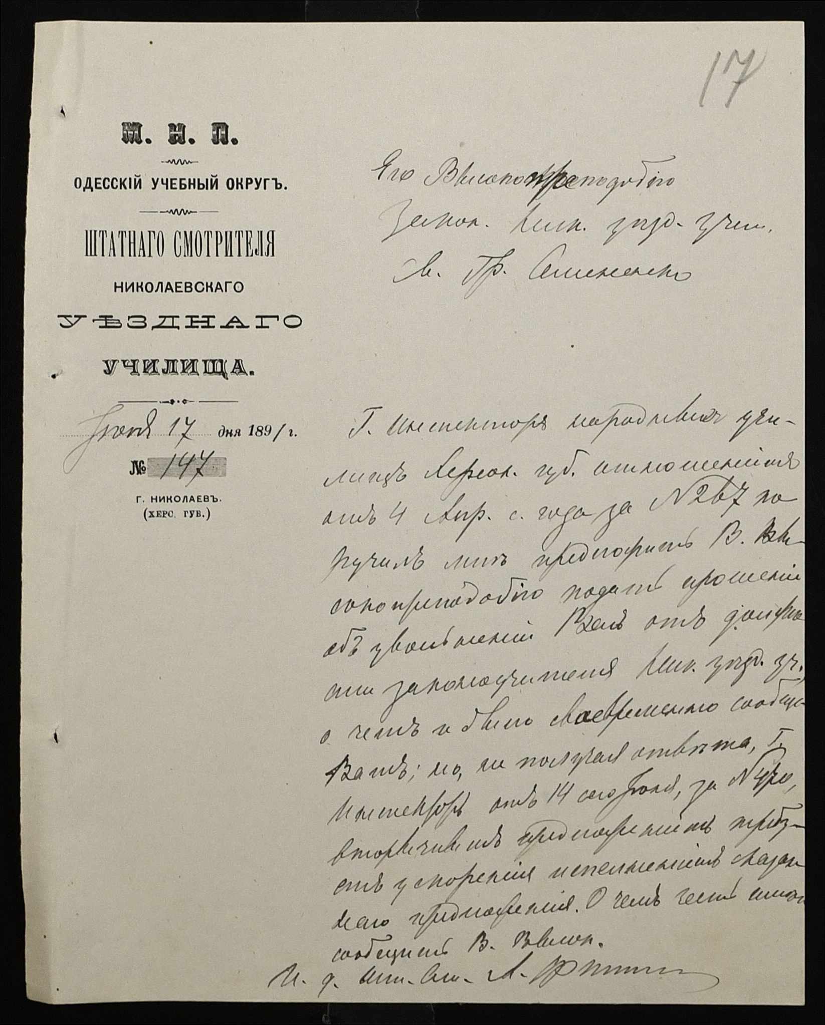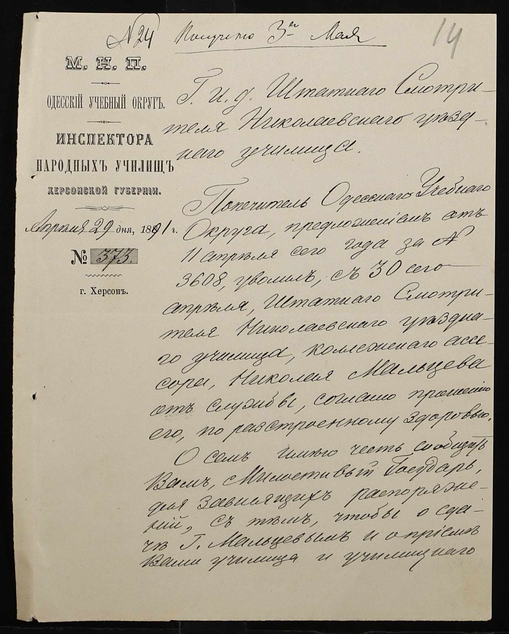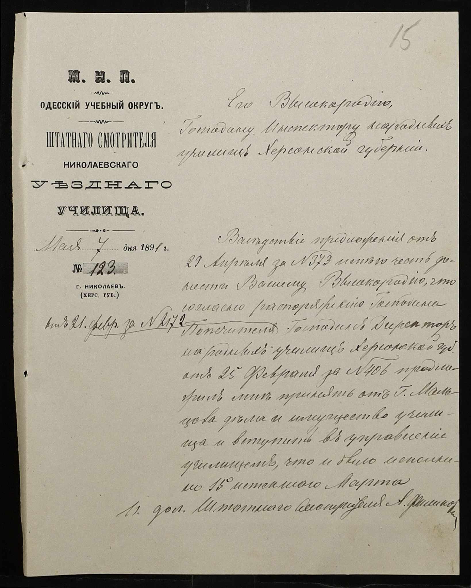 • • • • Справа № 250 “Листування про проходження служби чиновниками повітового училища”