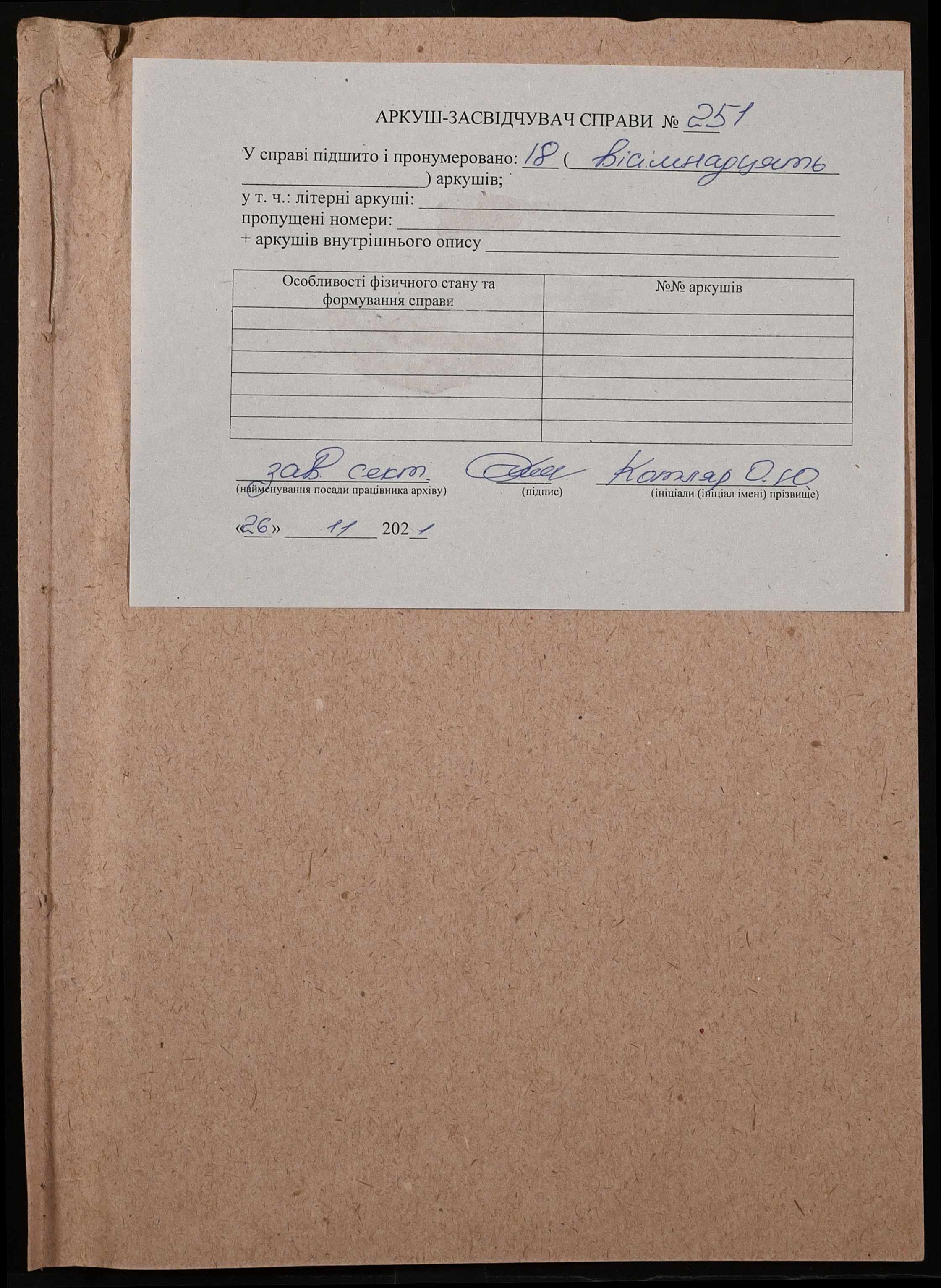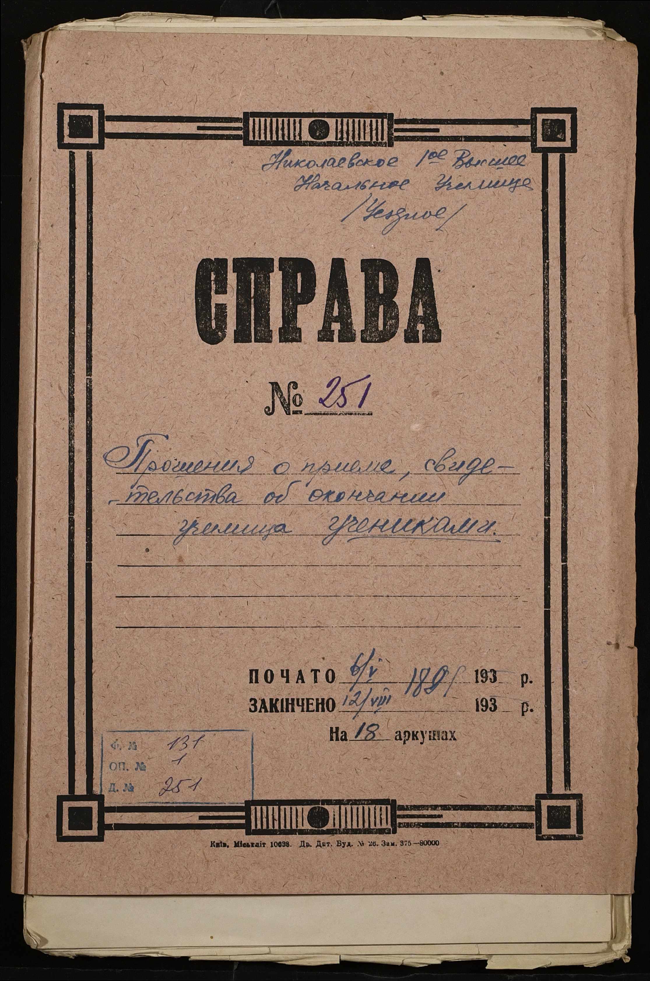 Фонд 131 / Опис 1 / Справа 251