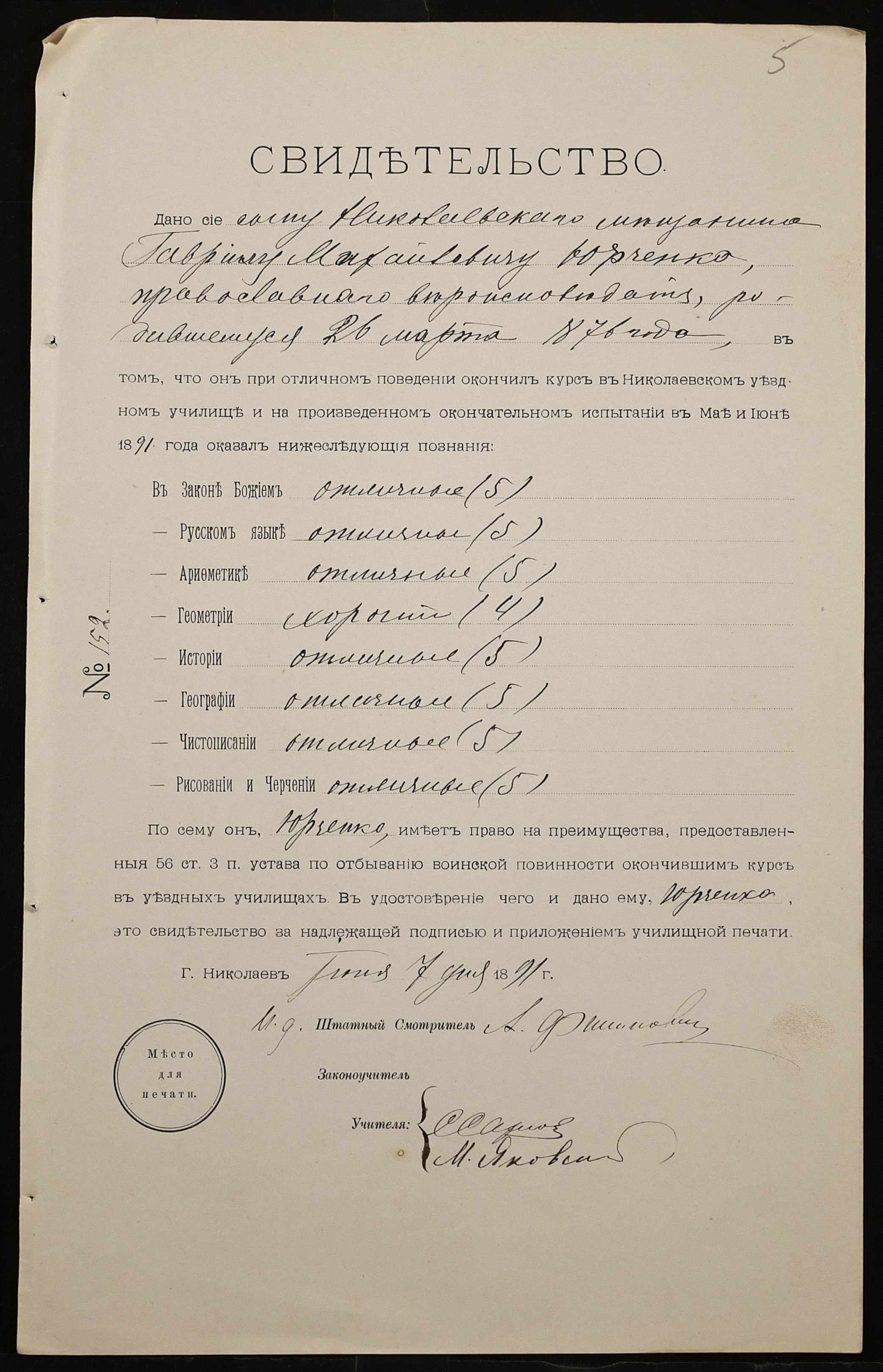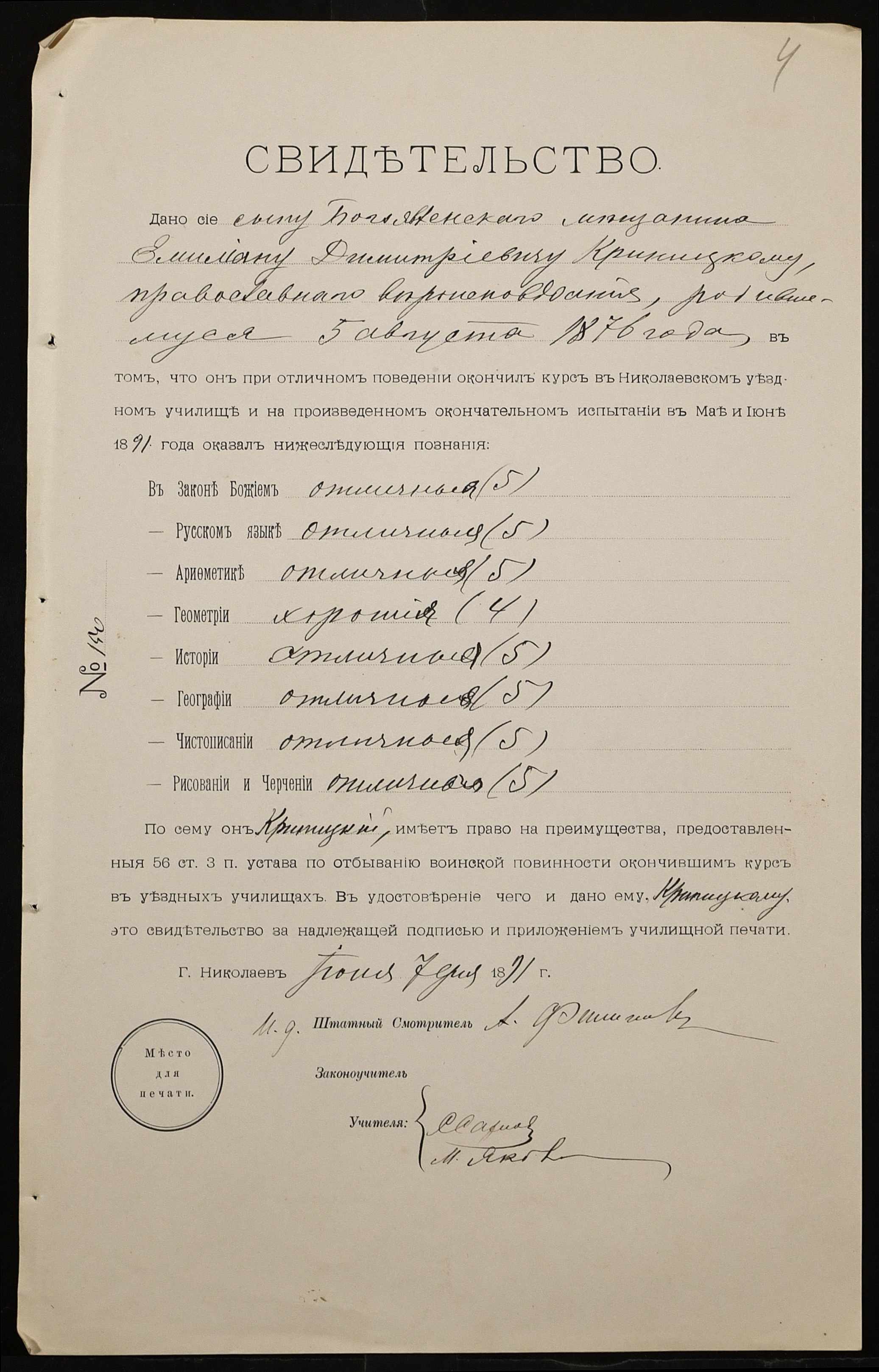 ◦ ◦ Фонд № 131 “Миколаївське перше вище початкове училище”