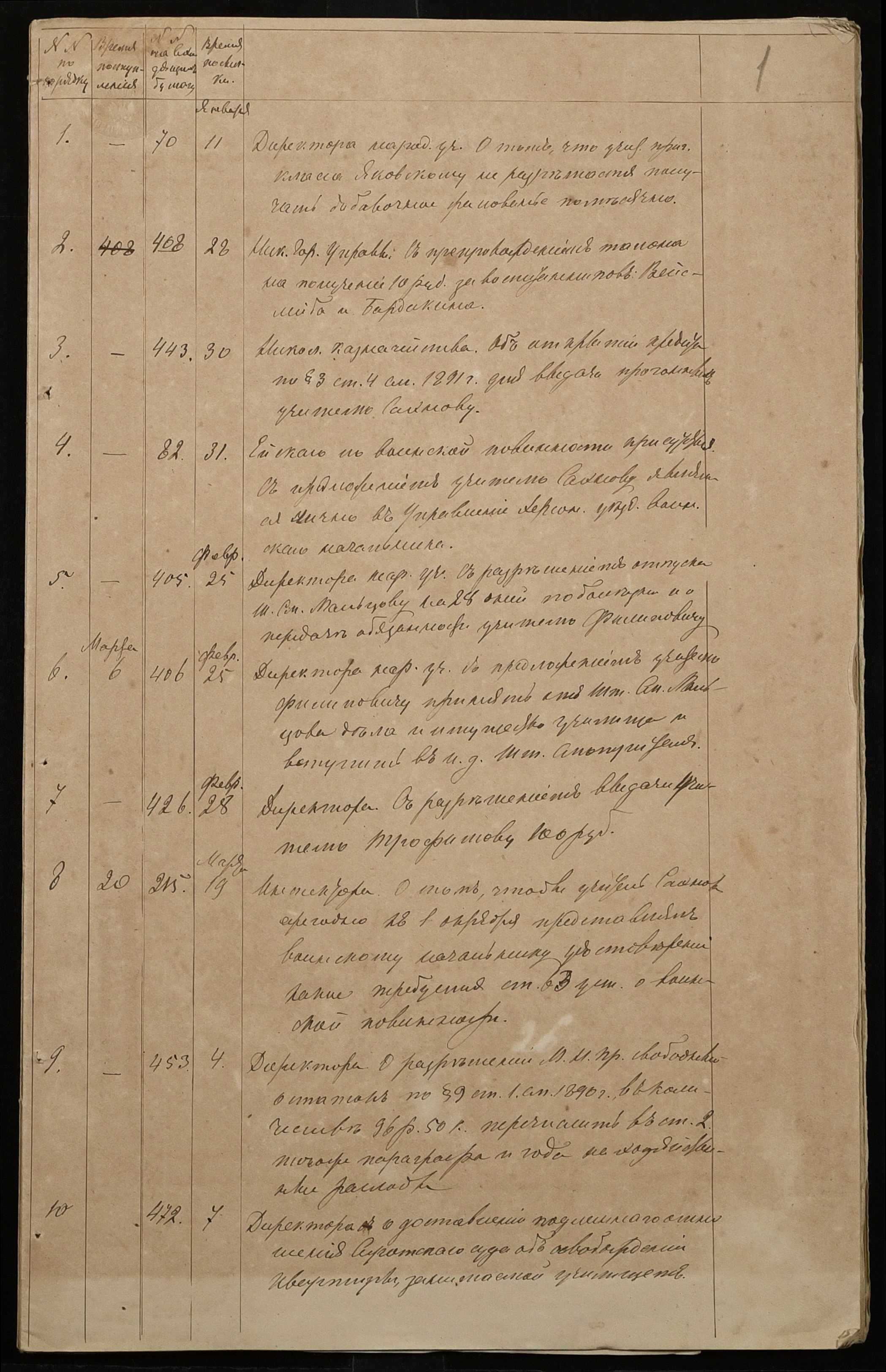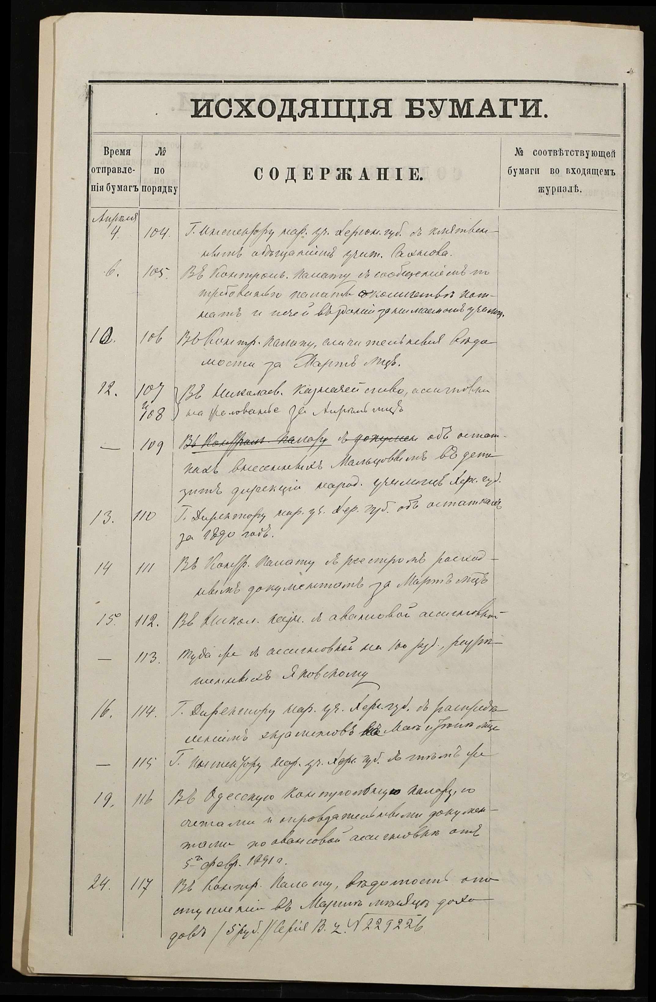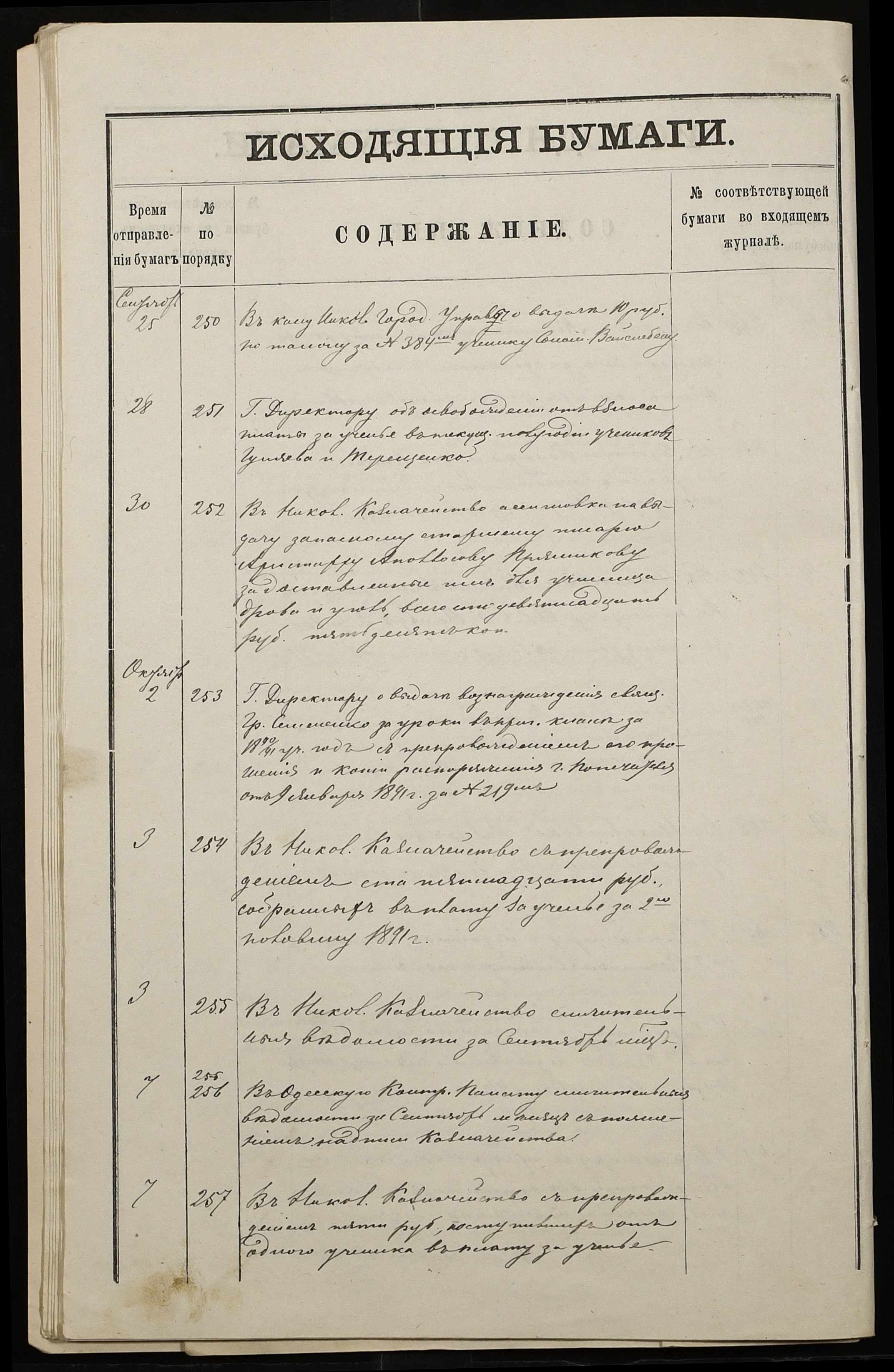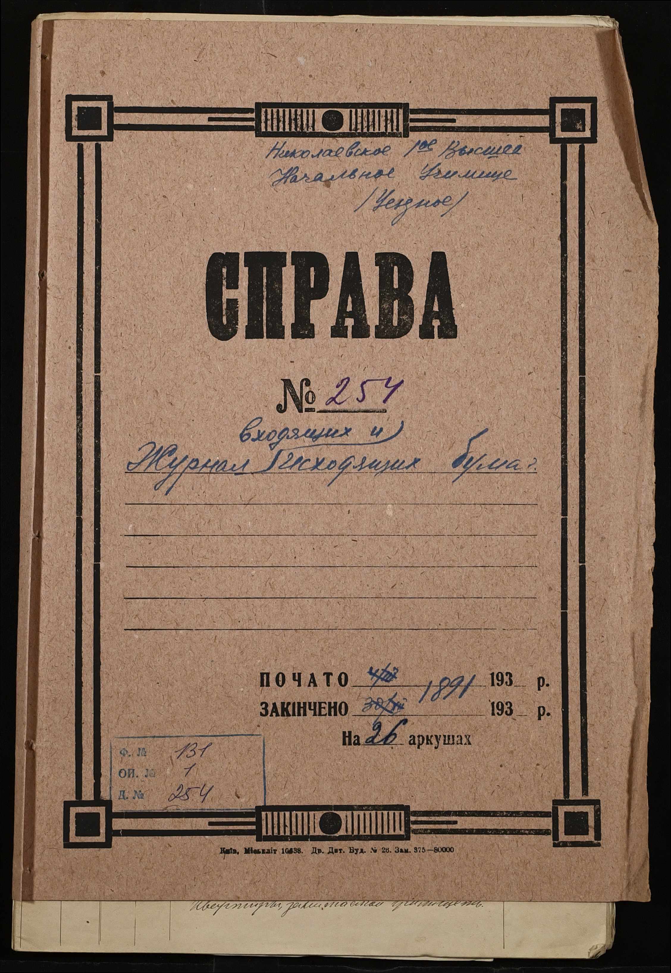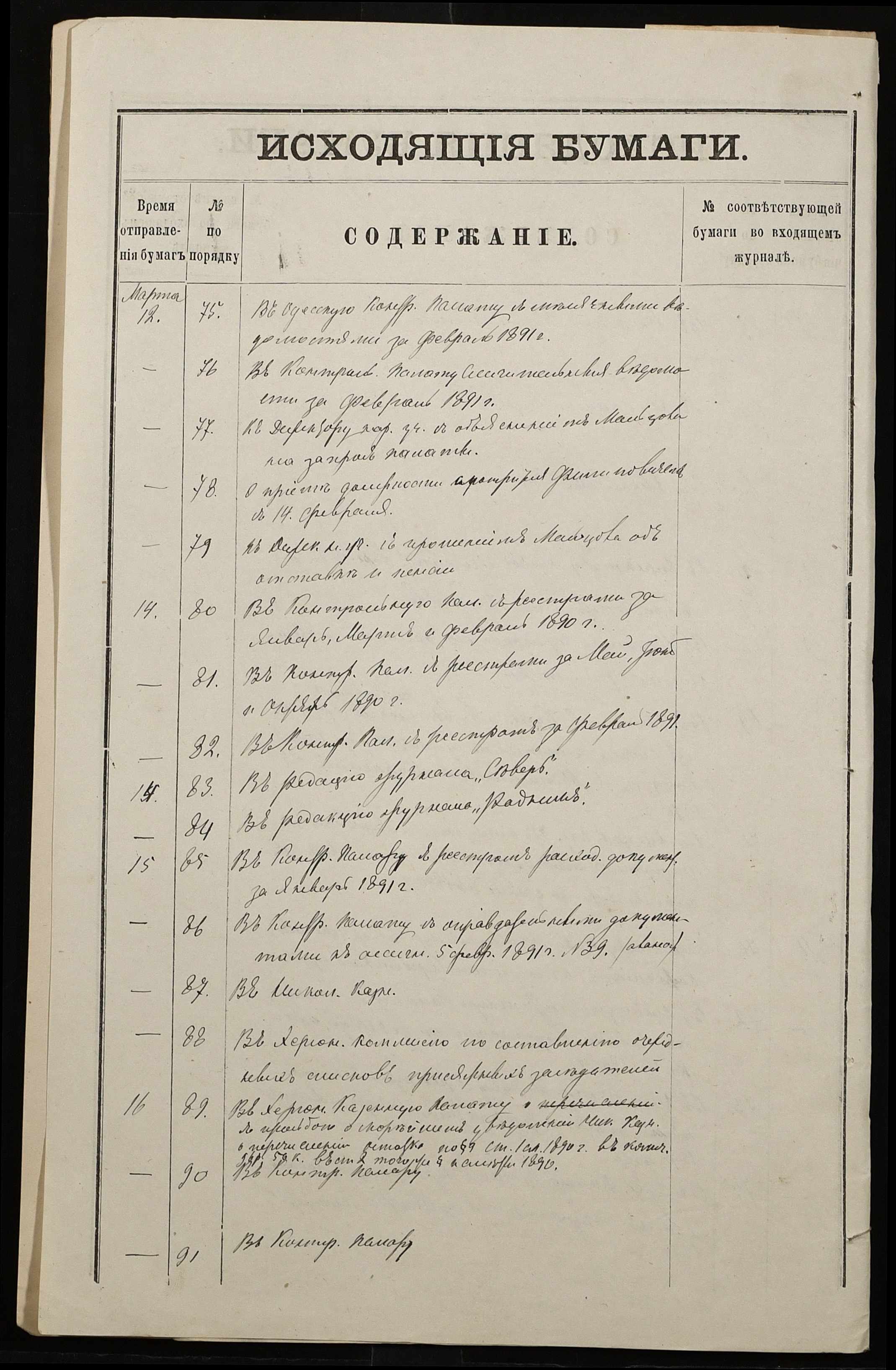 • • • • Справа № 254 “Журнали реєстрації вхідних і вихідних документів за 1891 рік”