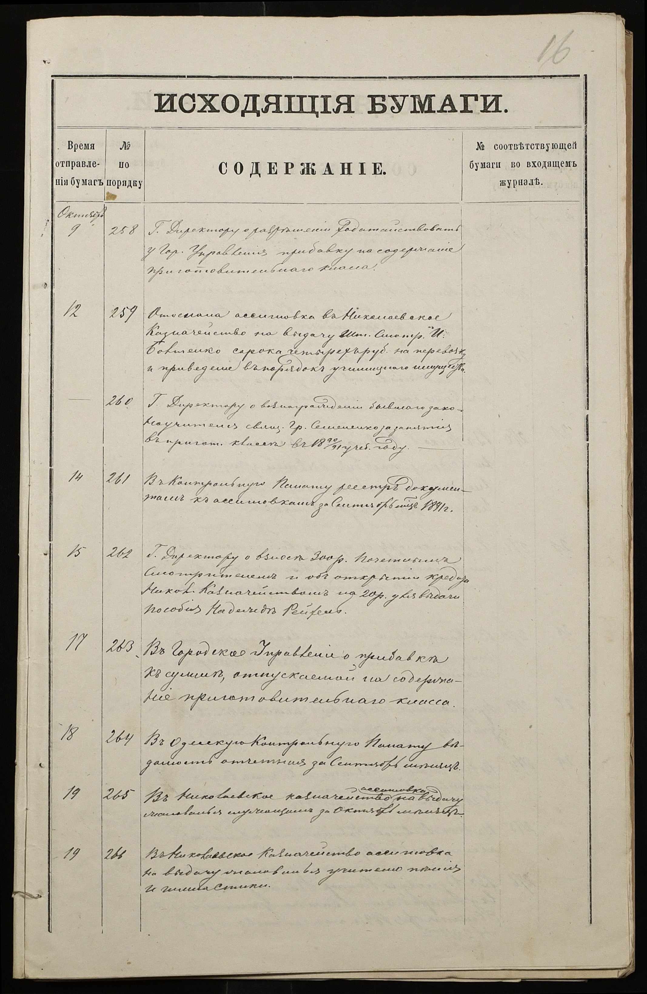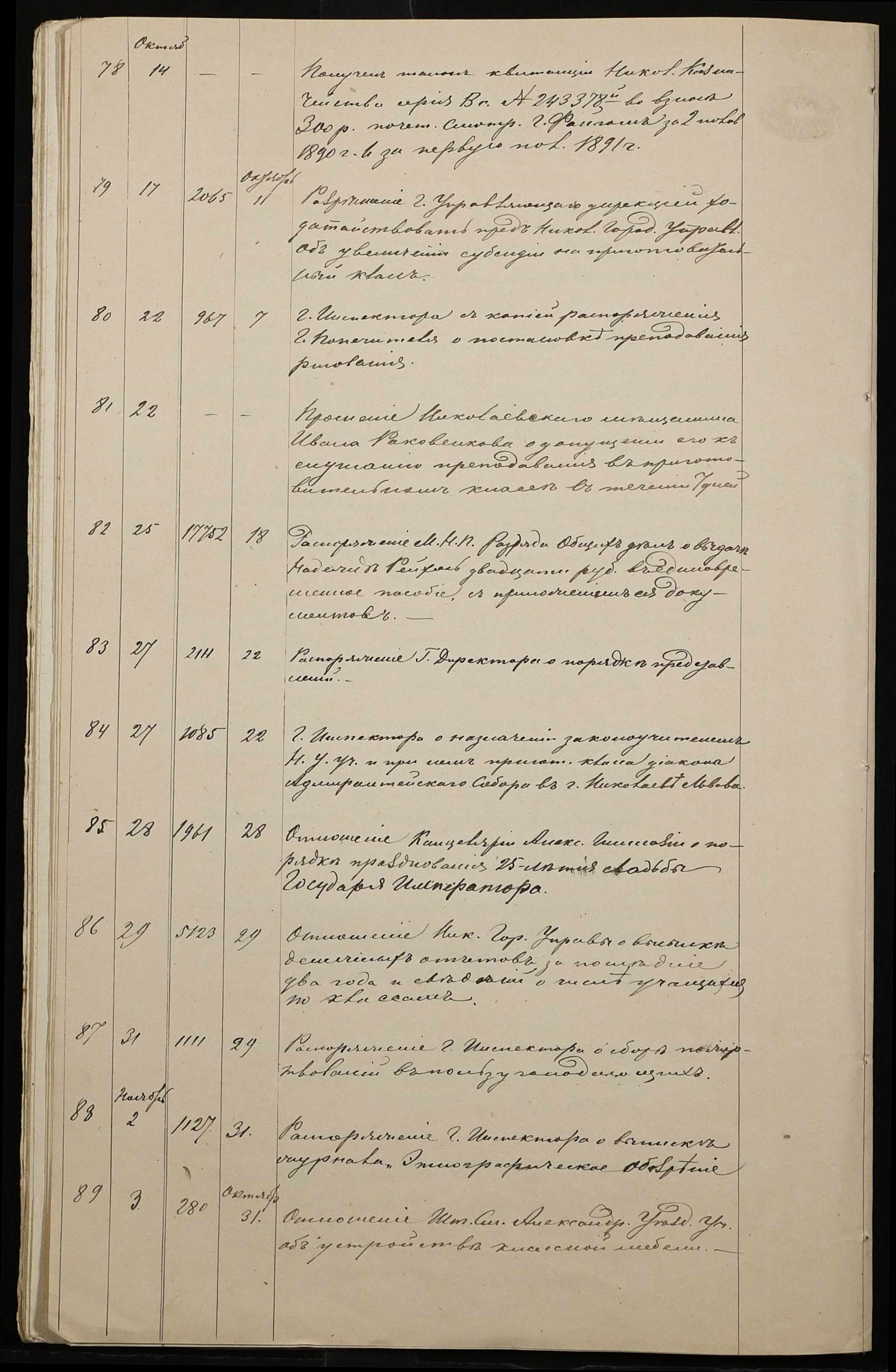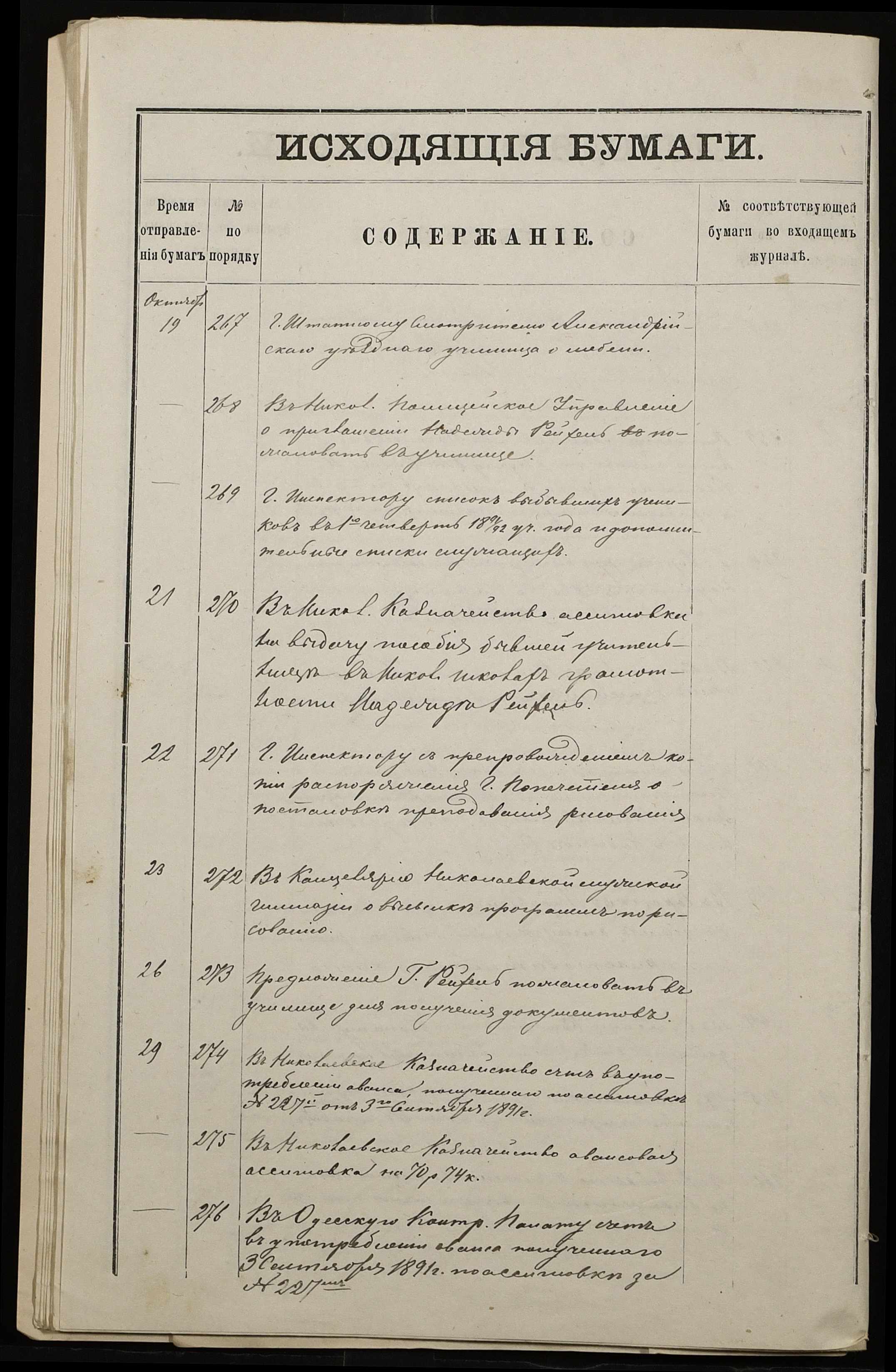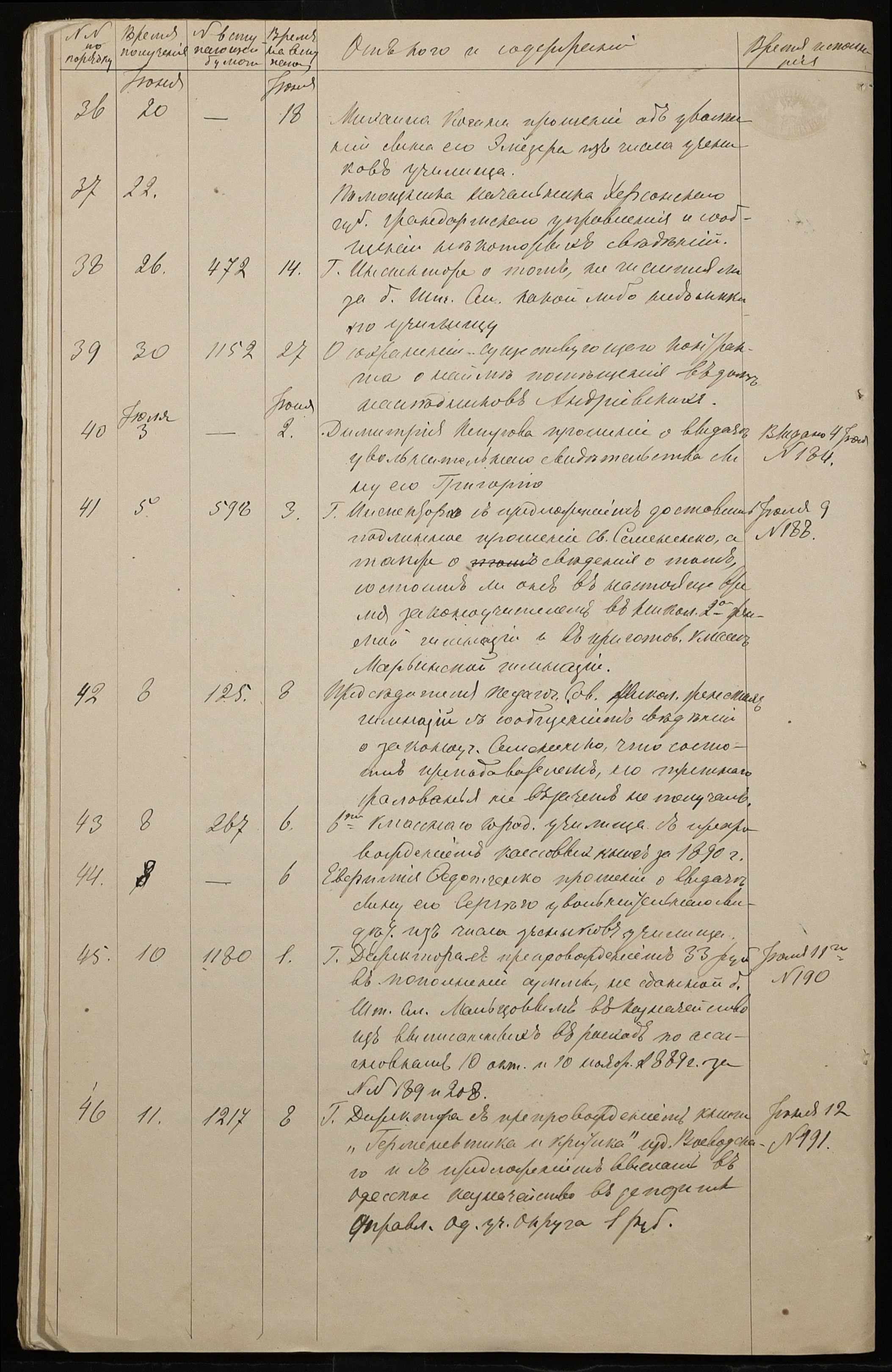 • • • • Справа № 254 “Журнали реєстрації вхідних і вихідних документів за 1891 рік”