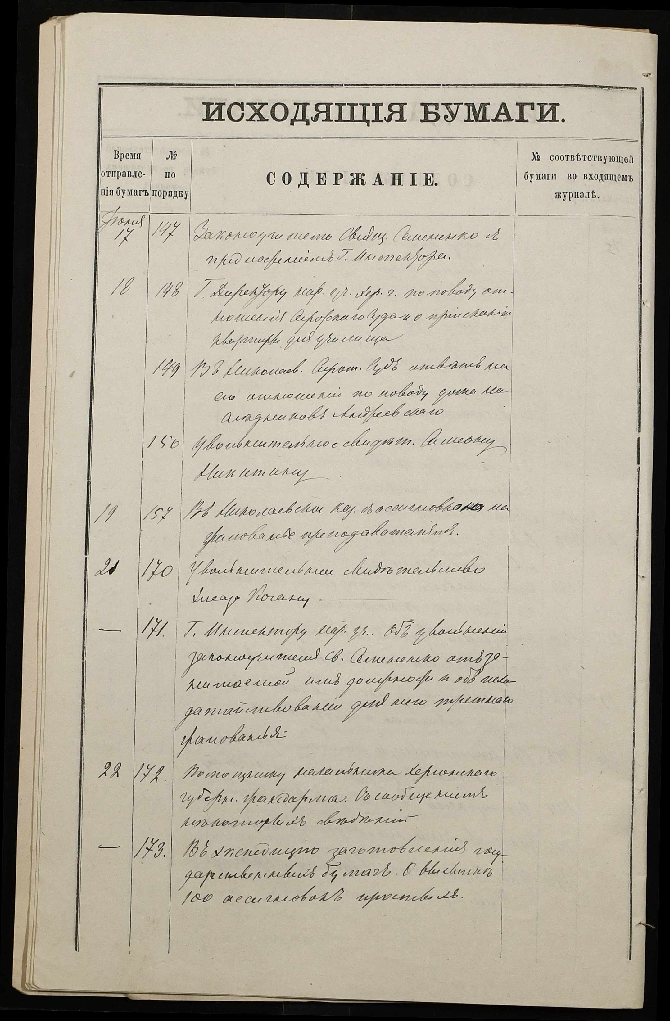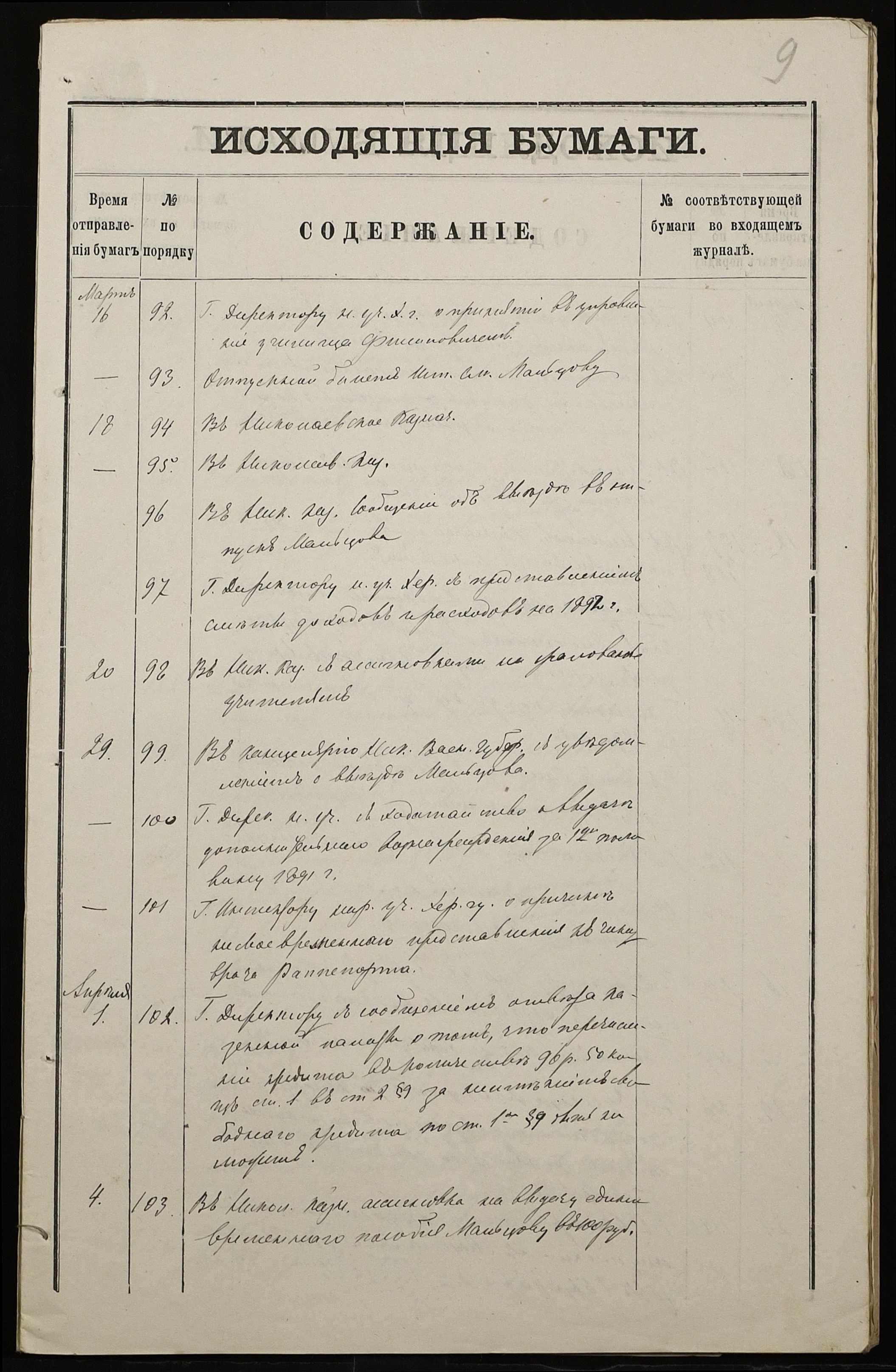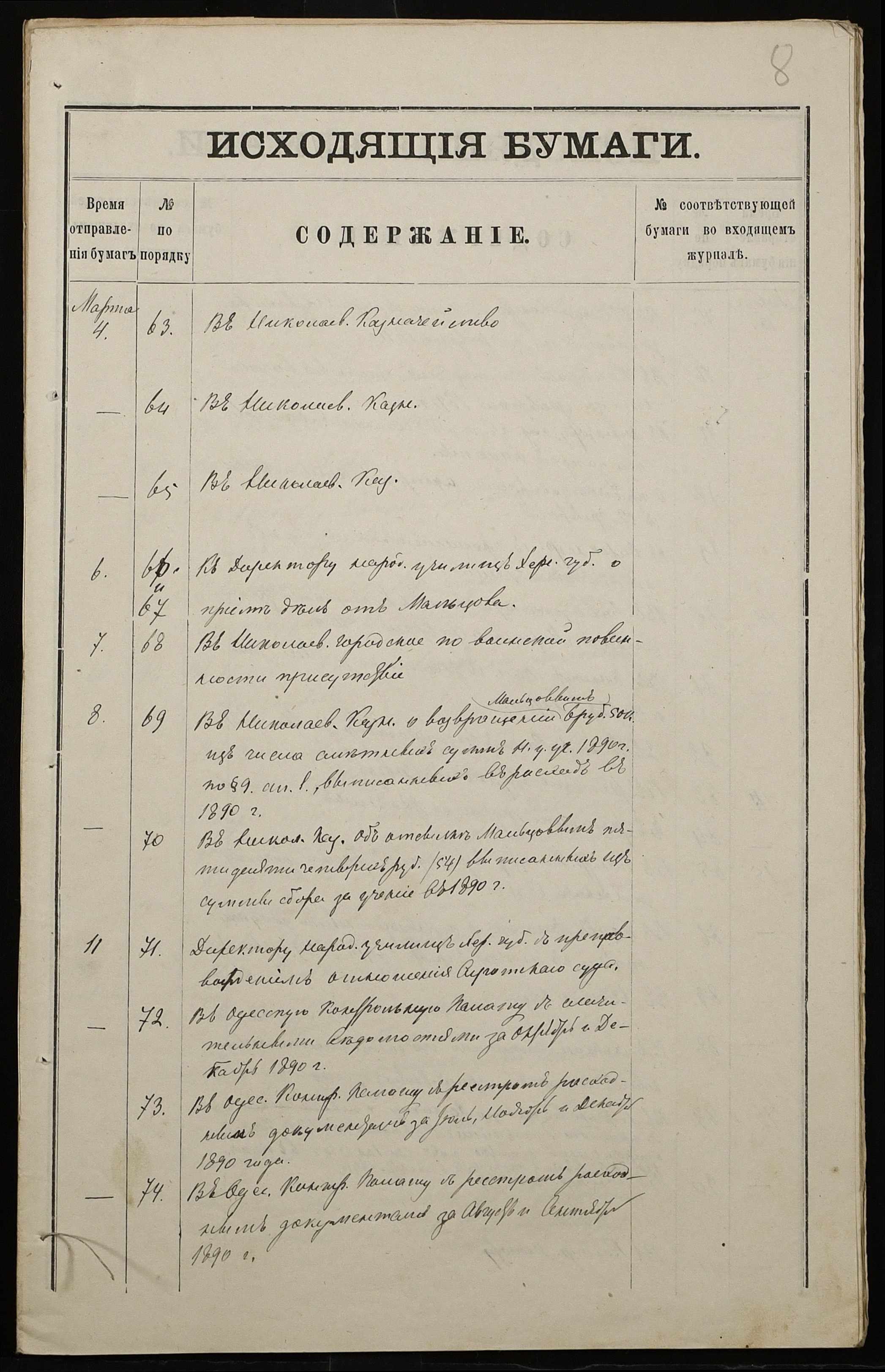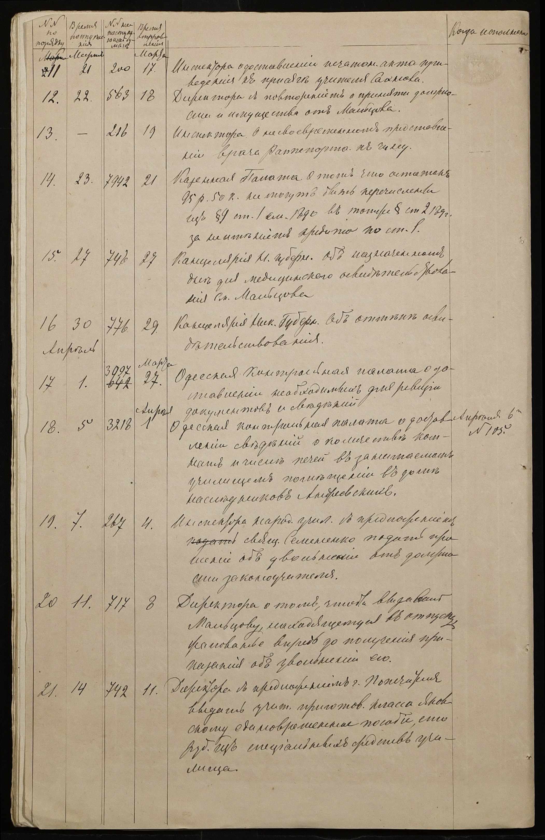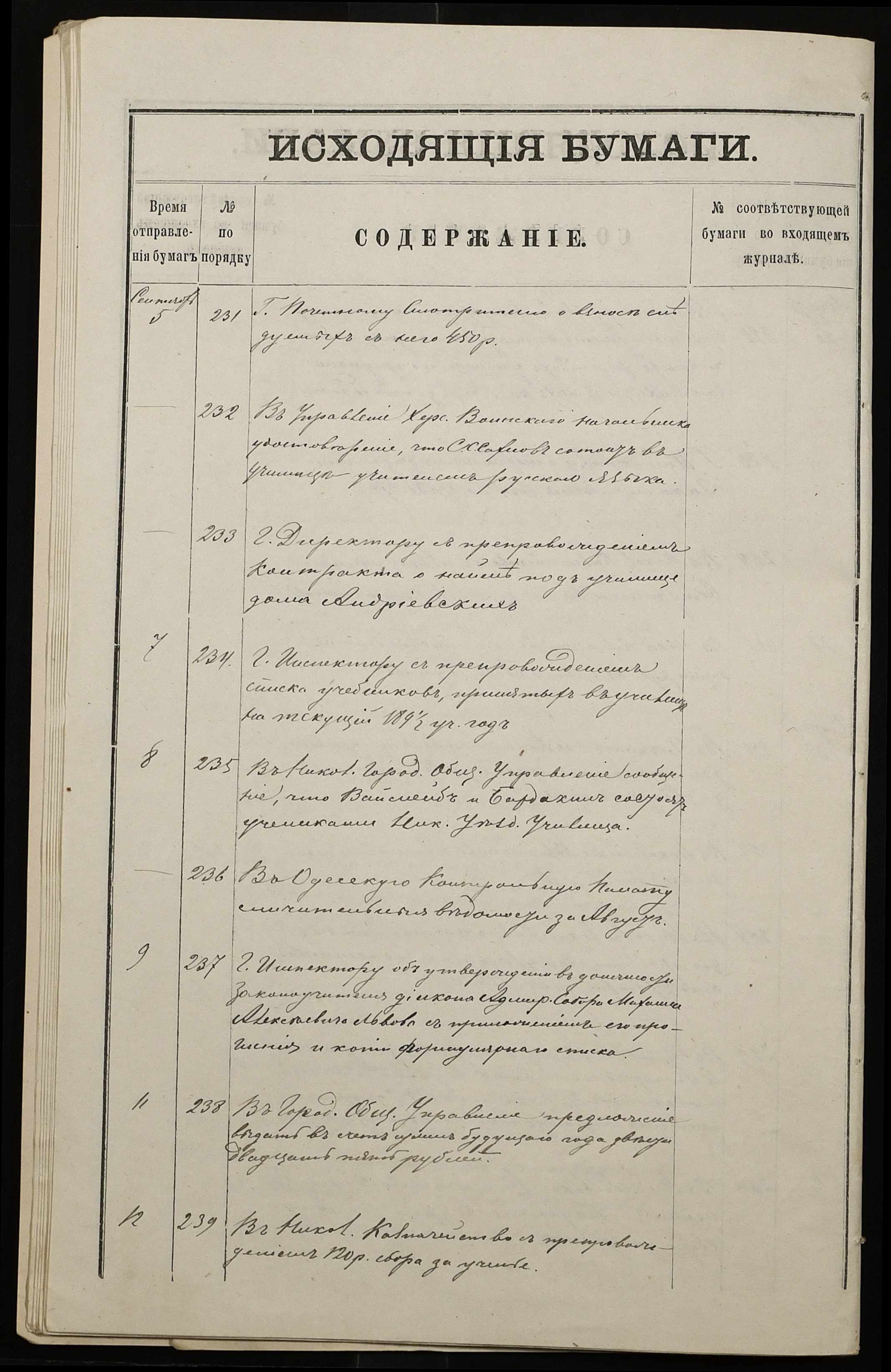 • • • • Справа № 254 “Журнали реєстрації вхідних і вихідних документів за 1891 рік”