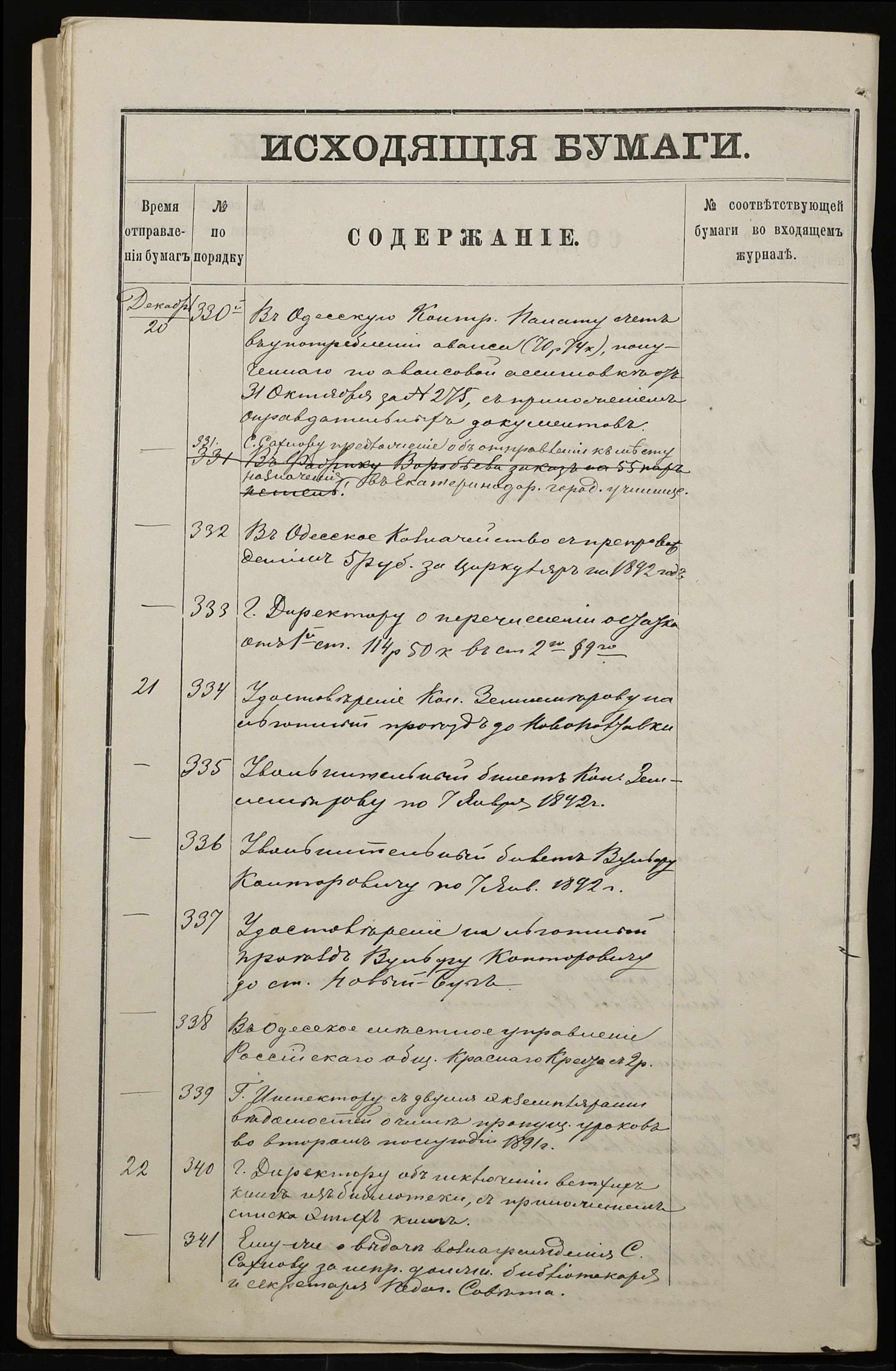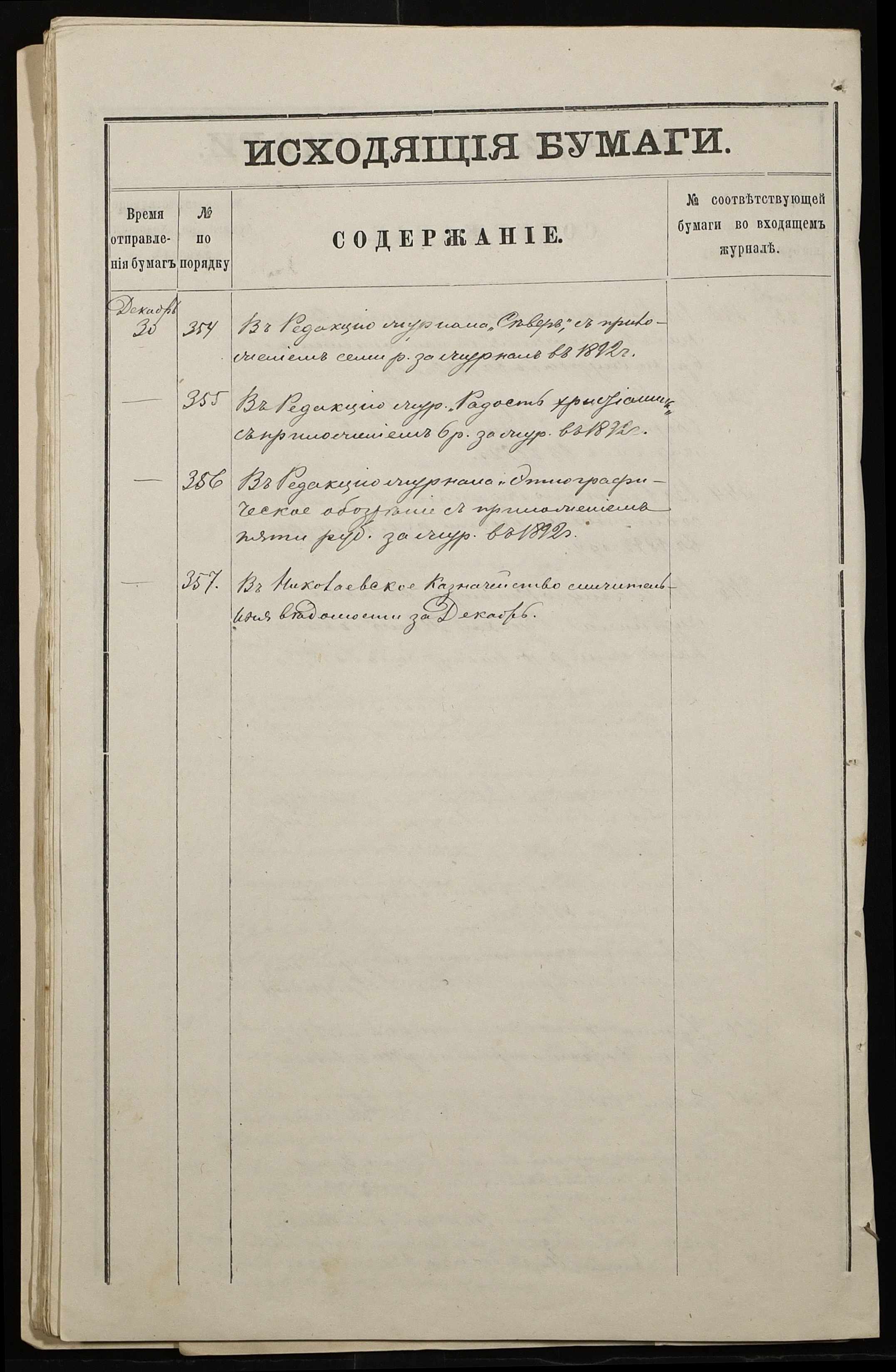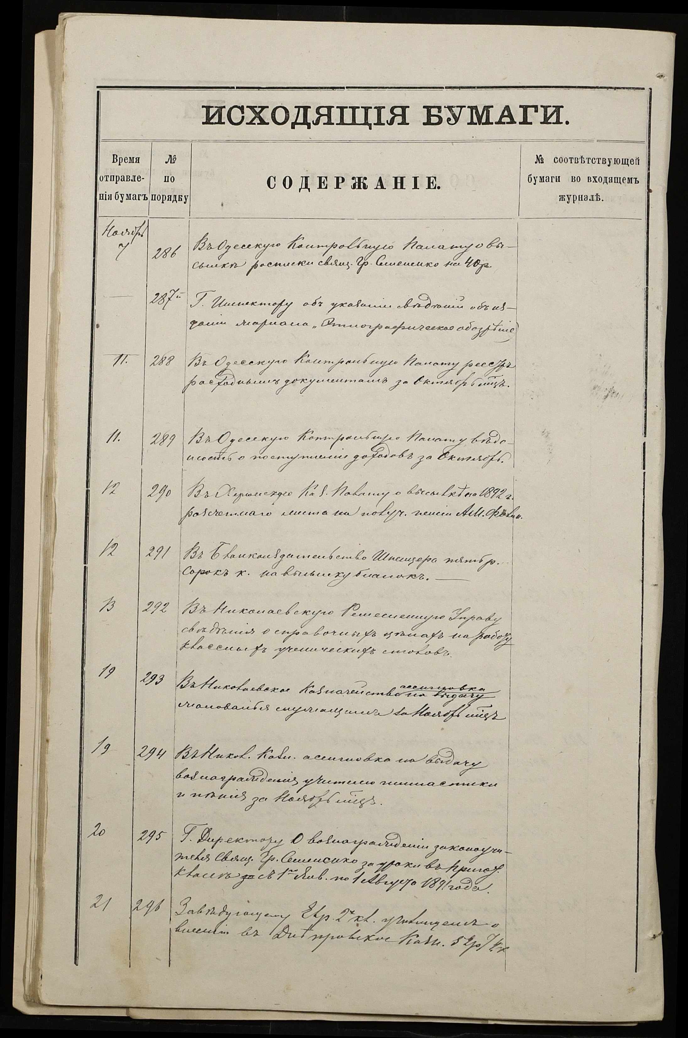 • • • • Справа № 254 “Журнали реєстрації вхідних і вихідних документів за 1891 рік”