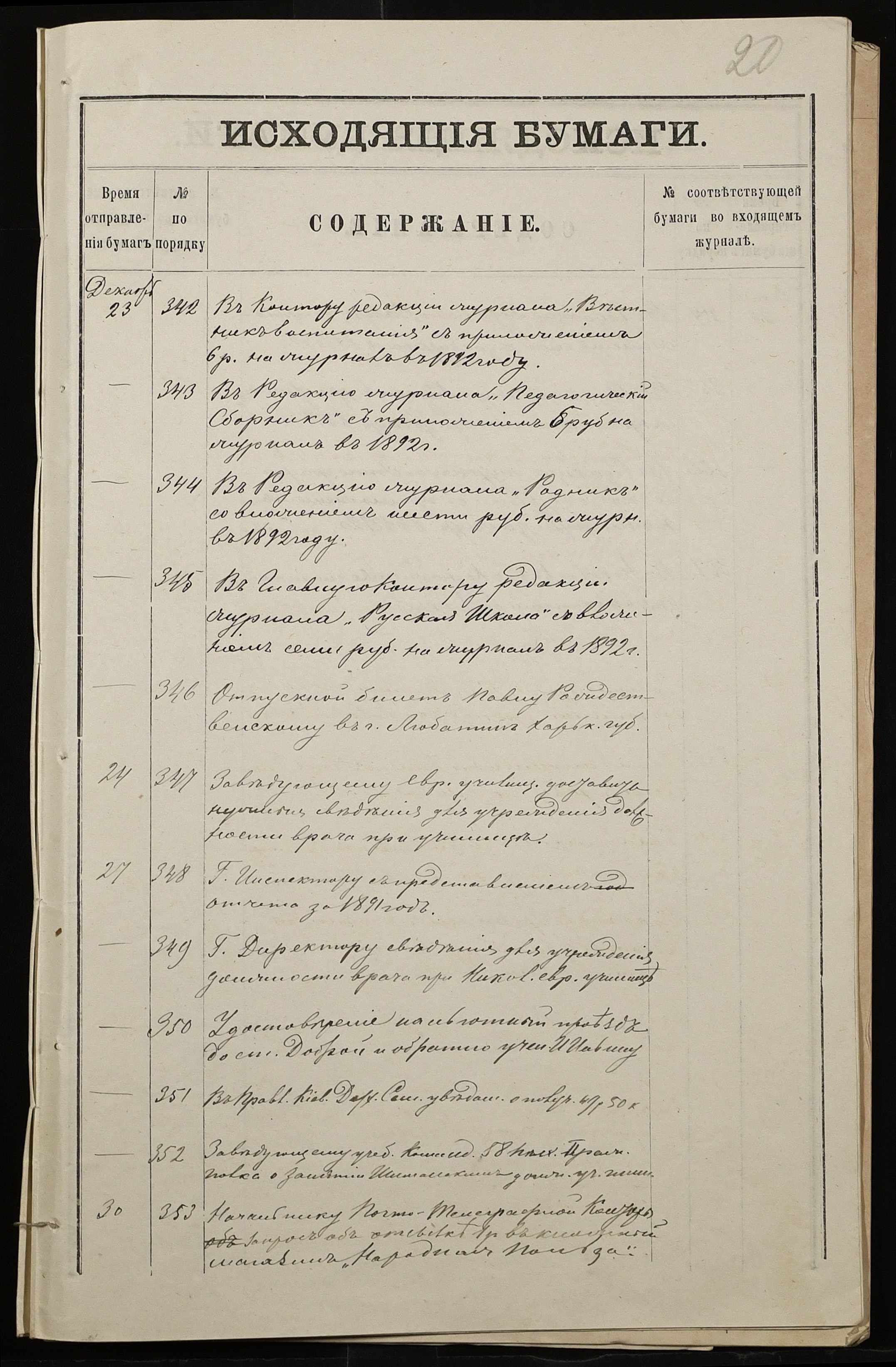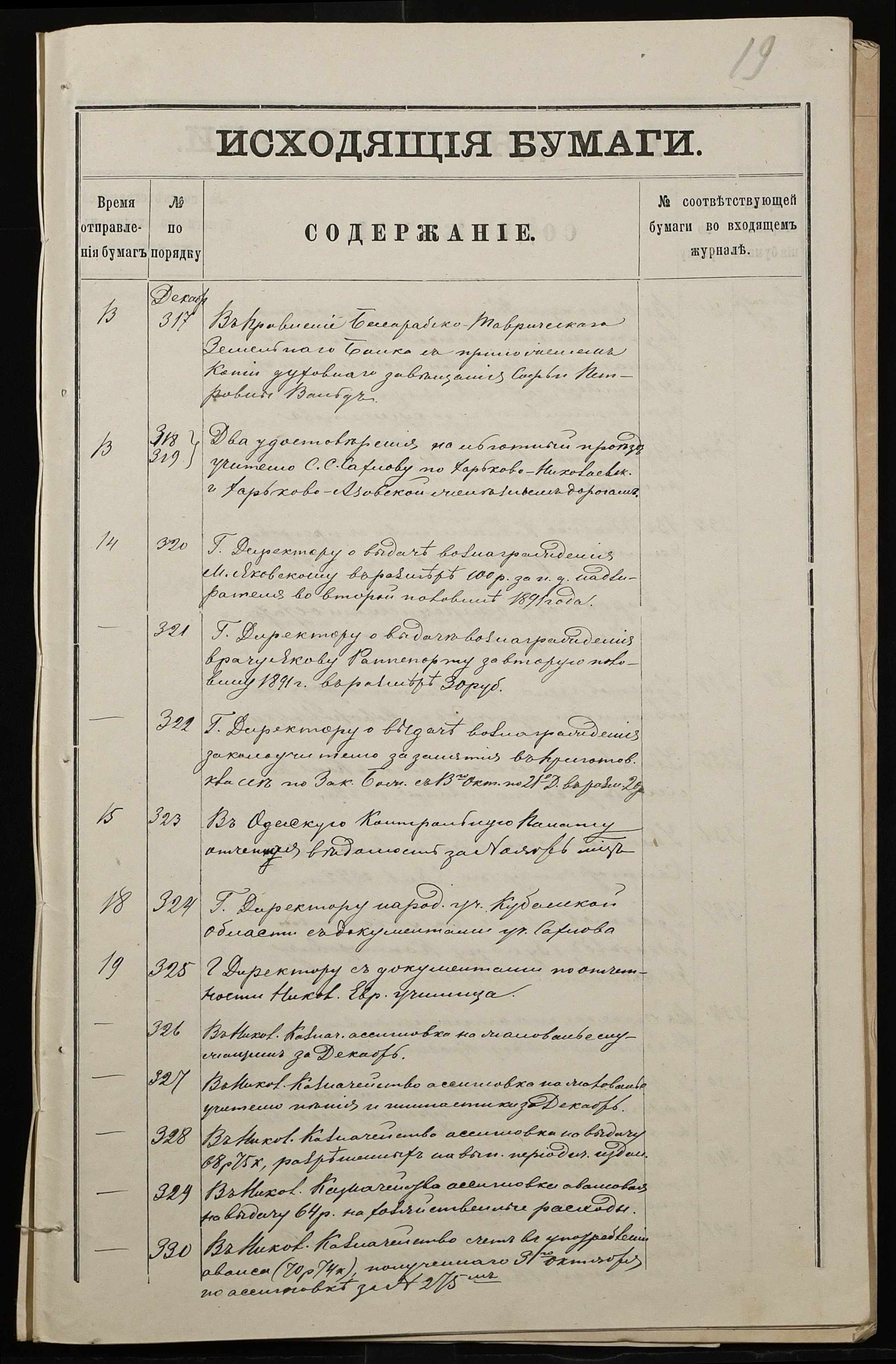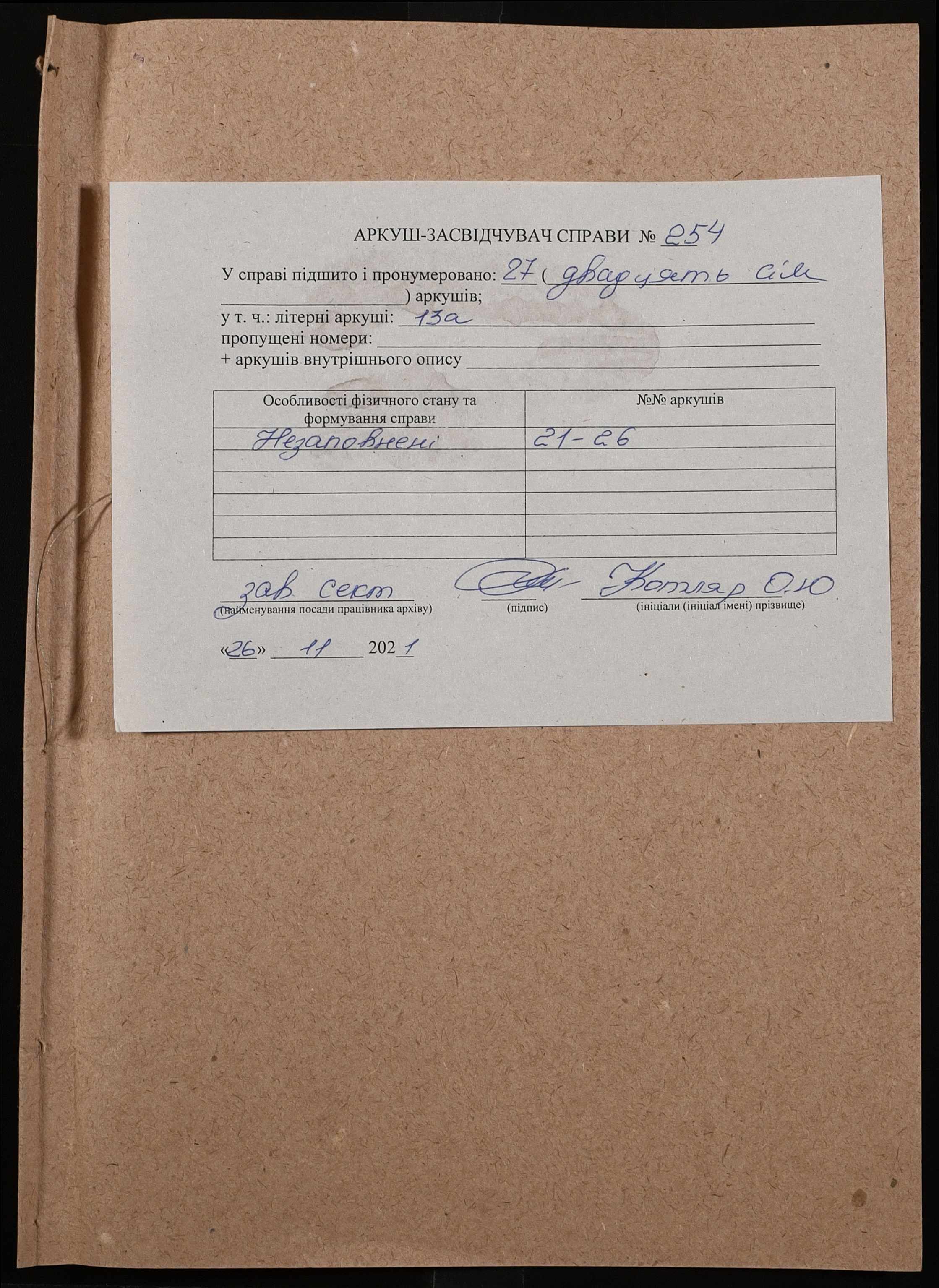 • • • • Справа № 254 “Журнали реєстрації вхідних і вихідних документів за 1891 рік”