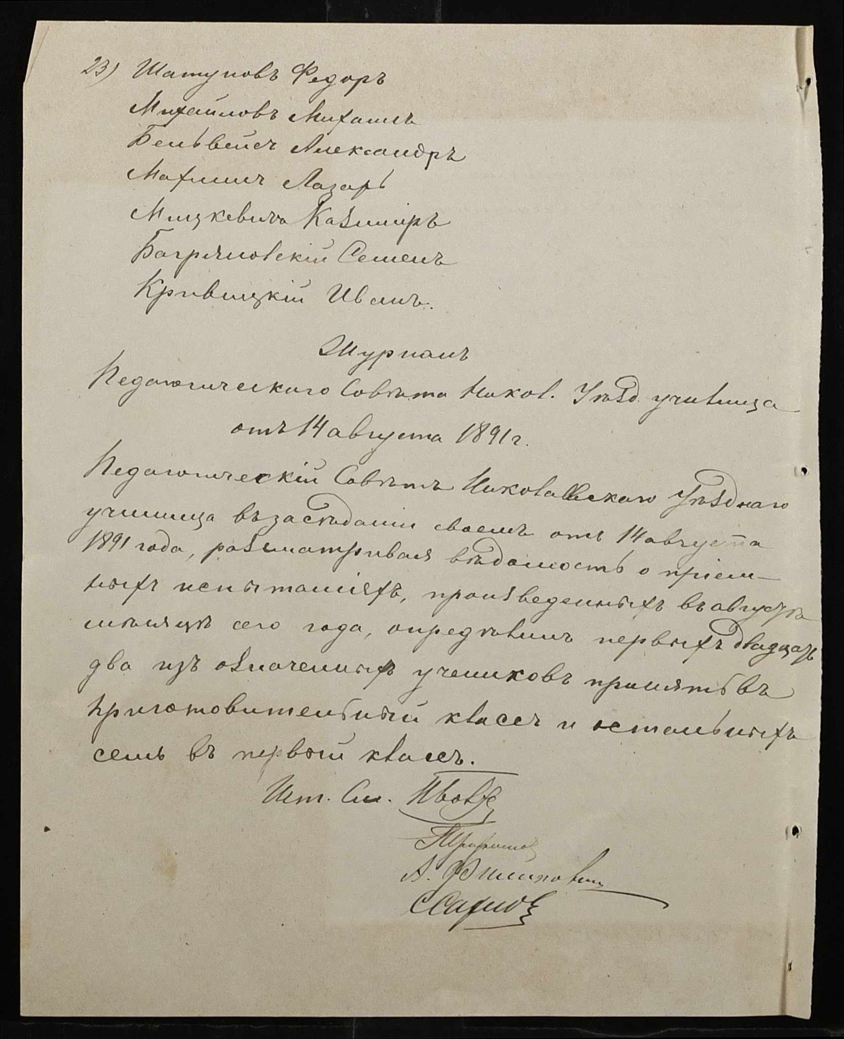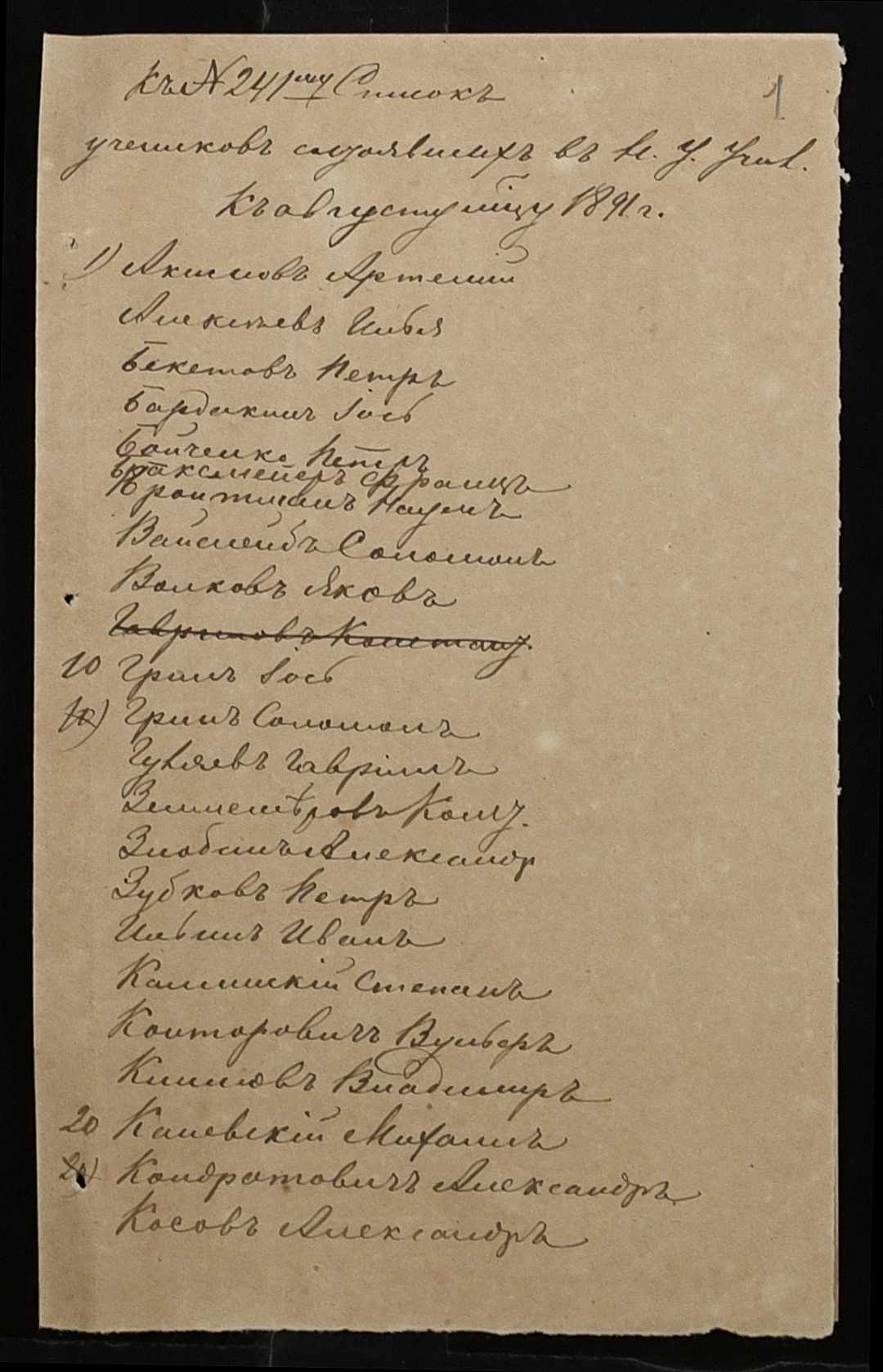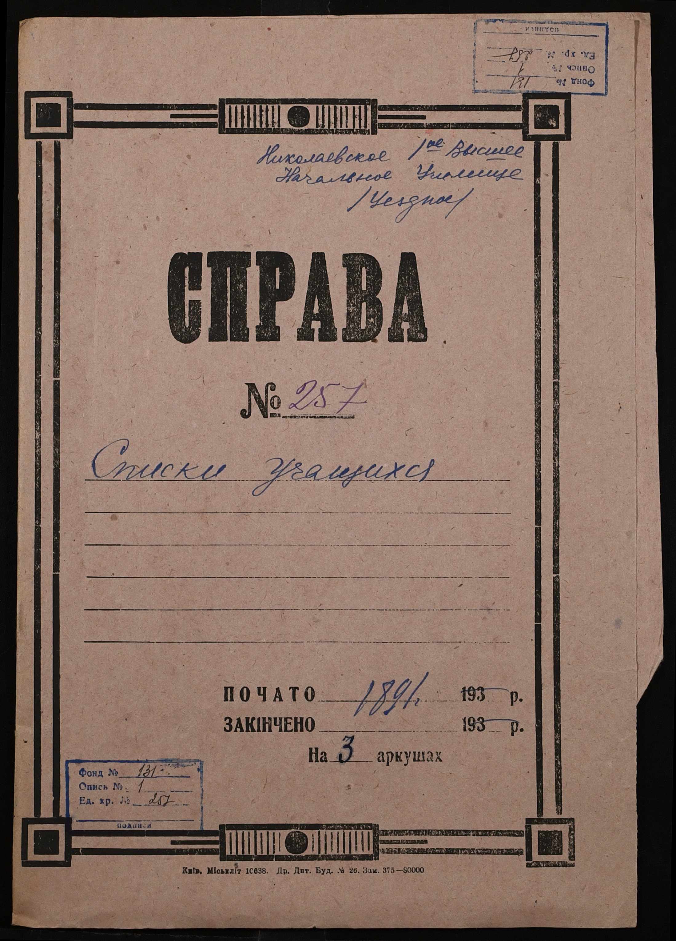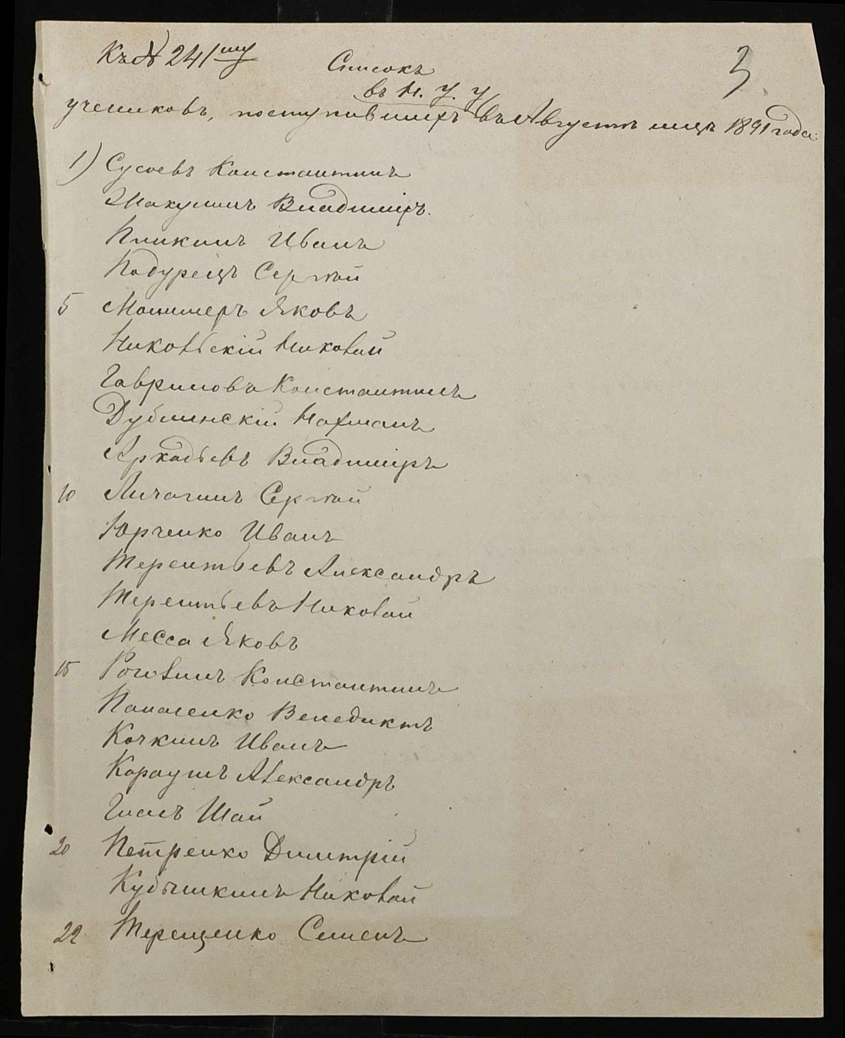 • • • • Справа № 257 “Списки учнів за 1891 рік”