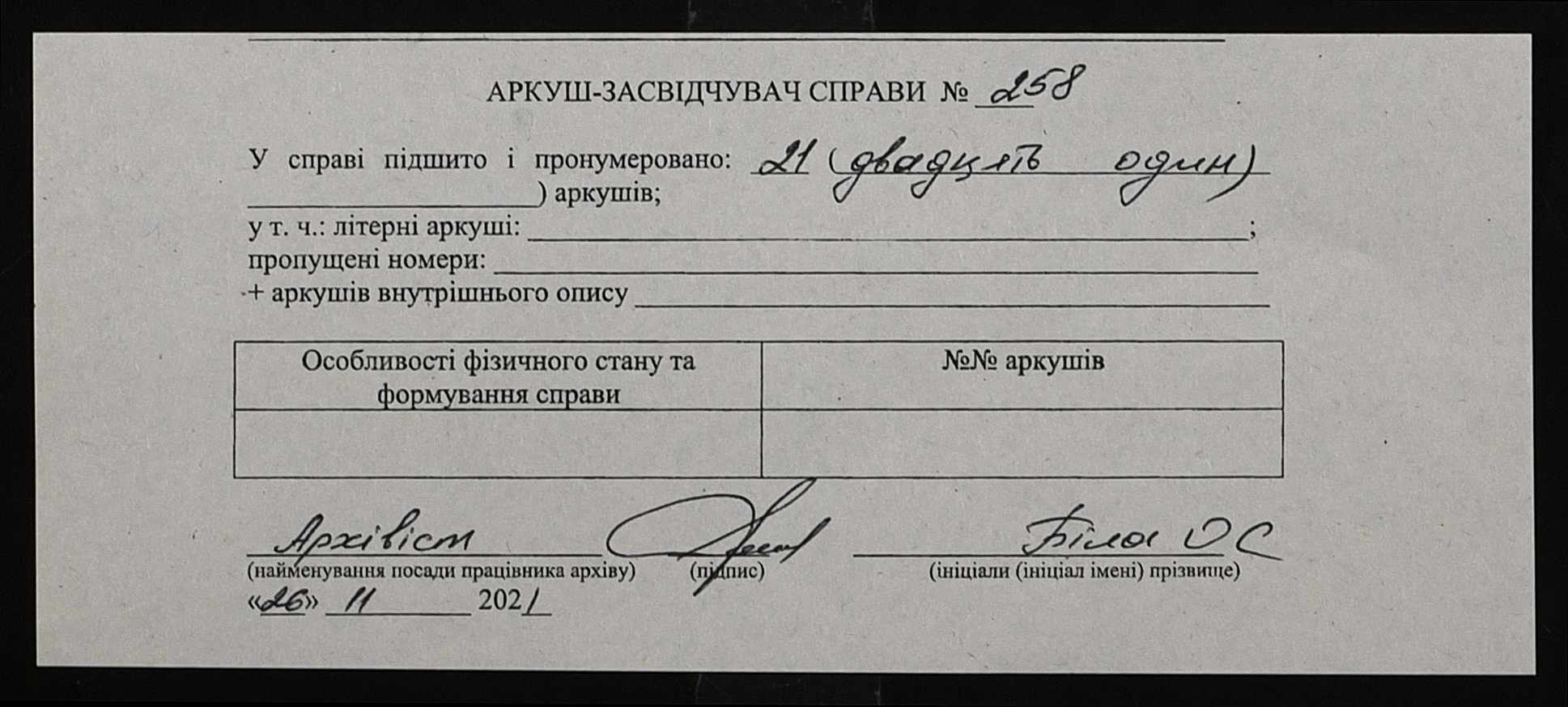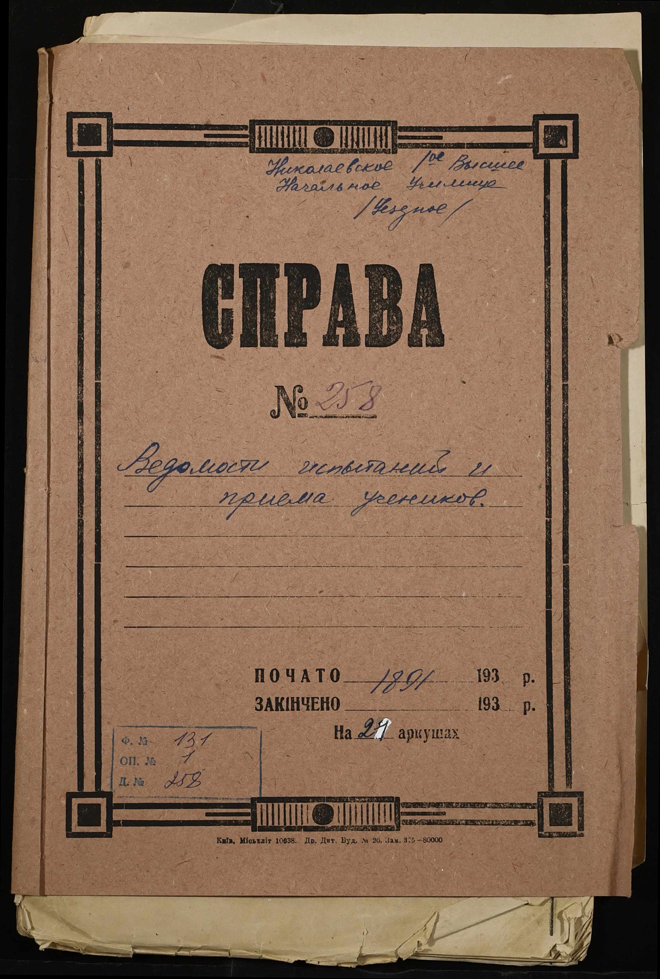• • • • Справа № 258 “Екзаменаційні відомості за 1891 рік”