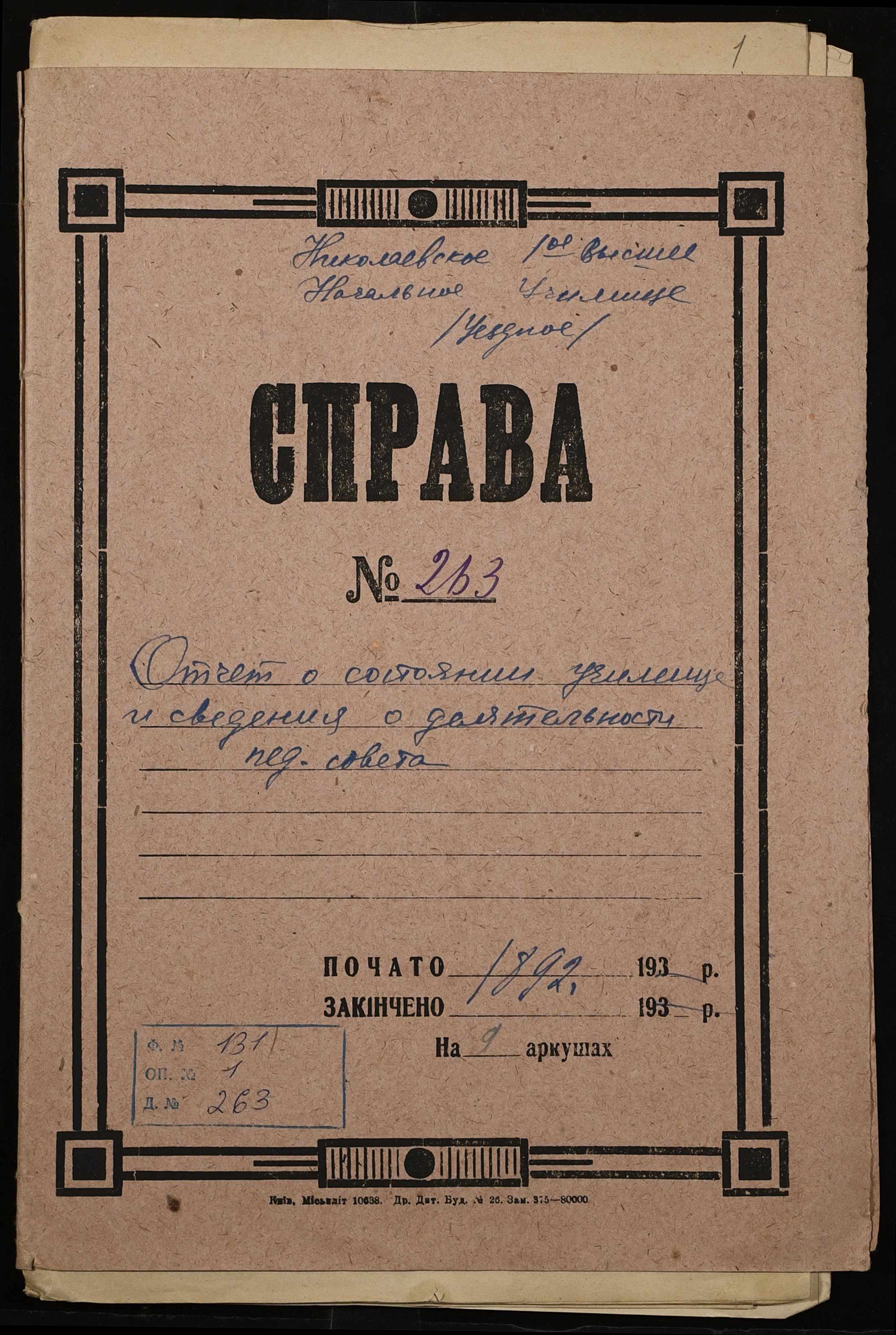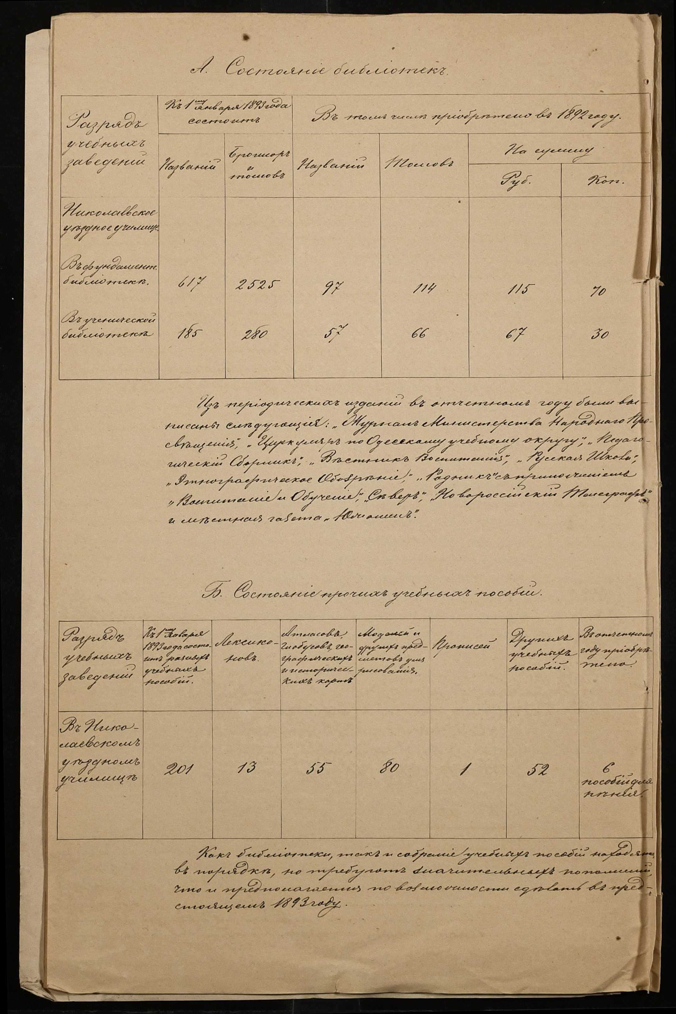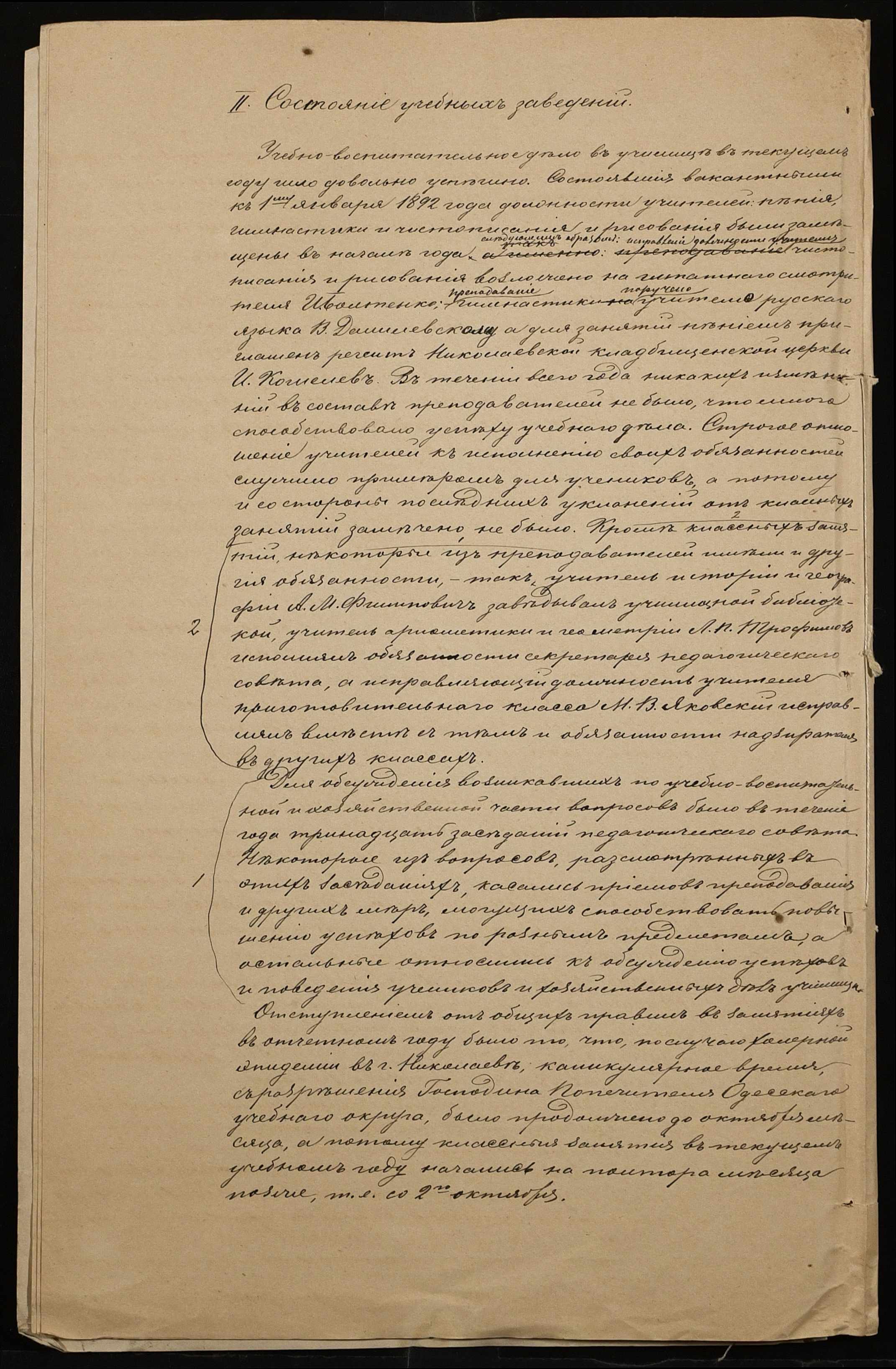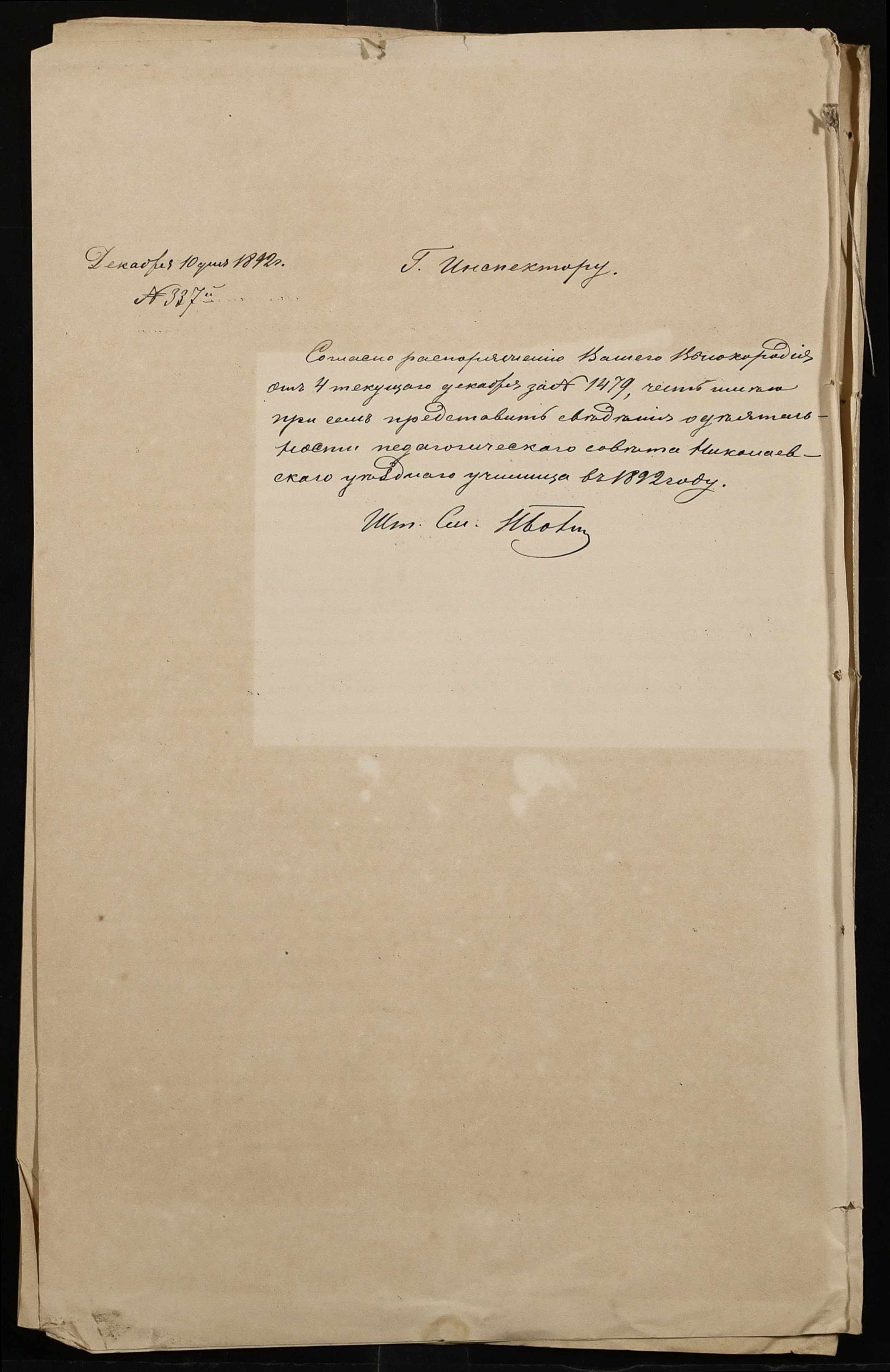 • • • • Справа № 263 “Статистичний звіт про стан училища. Відомості про діяльність педагогічної ради за 1892 рік”