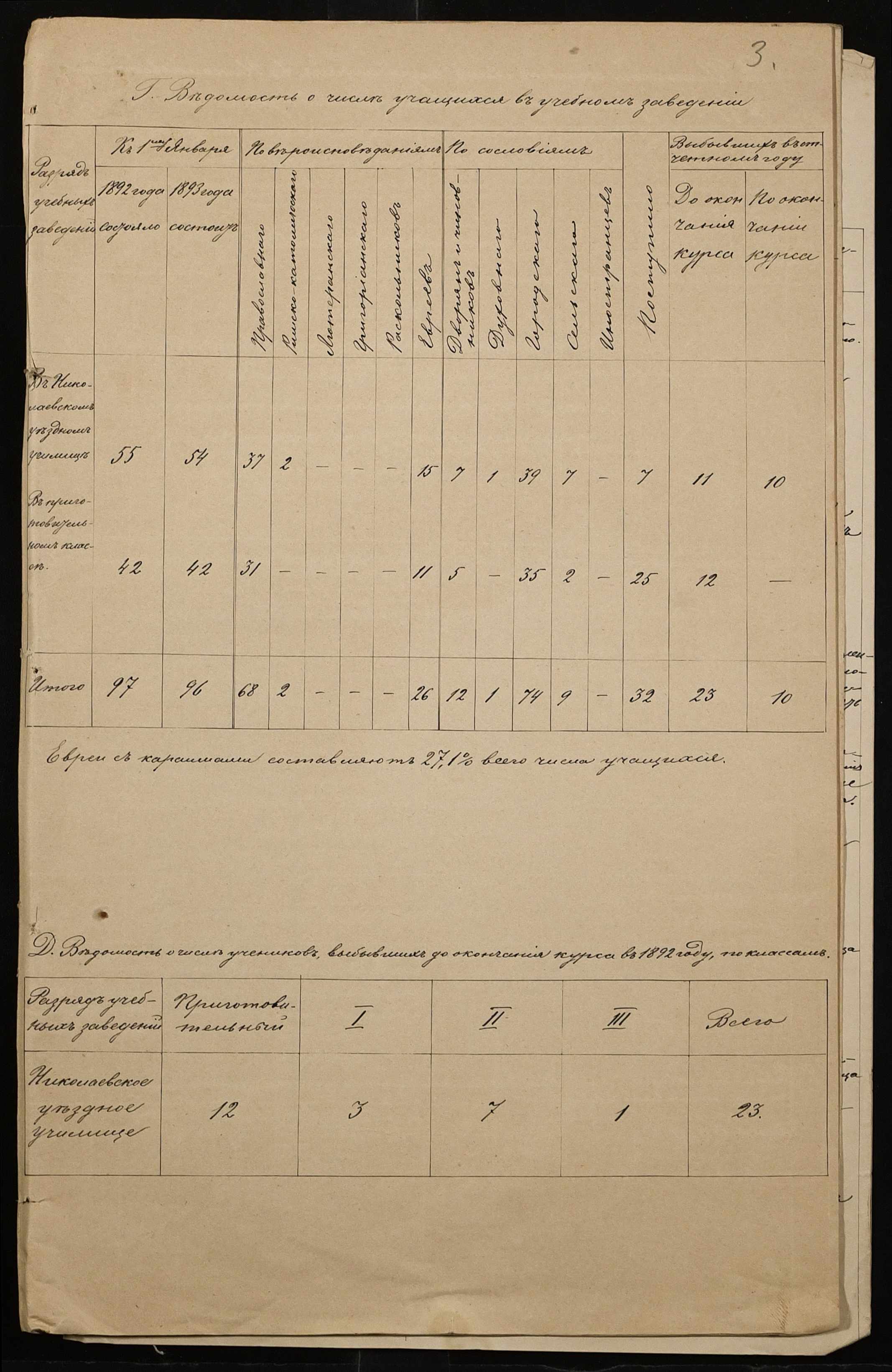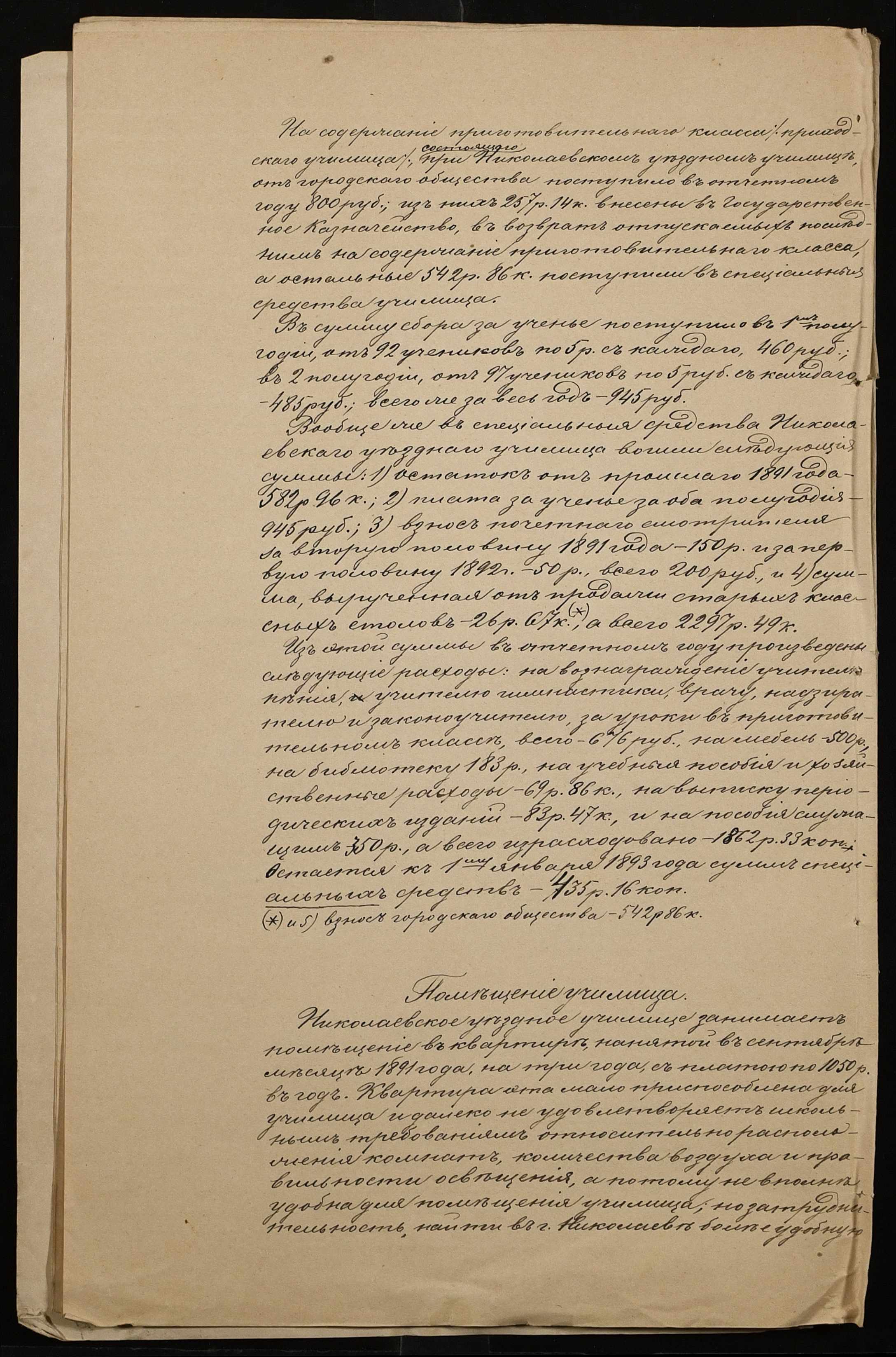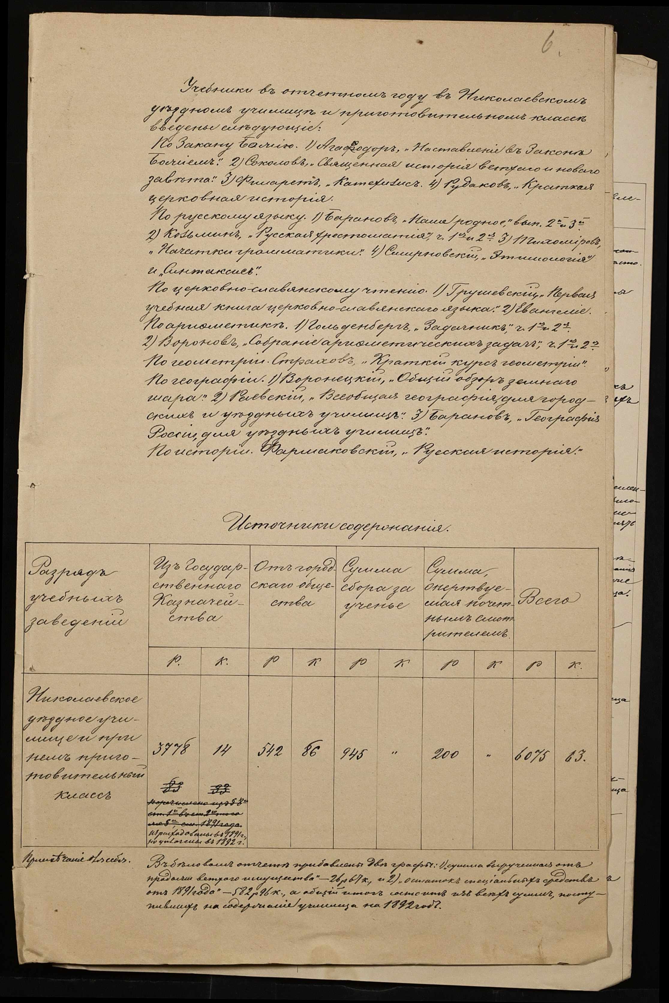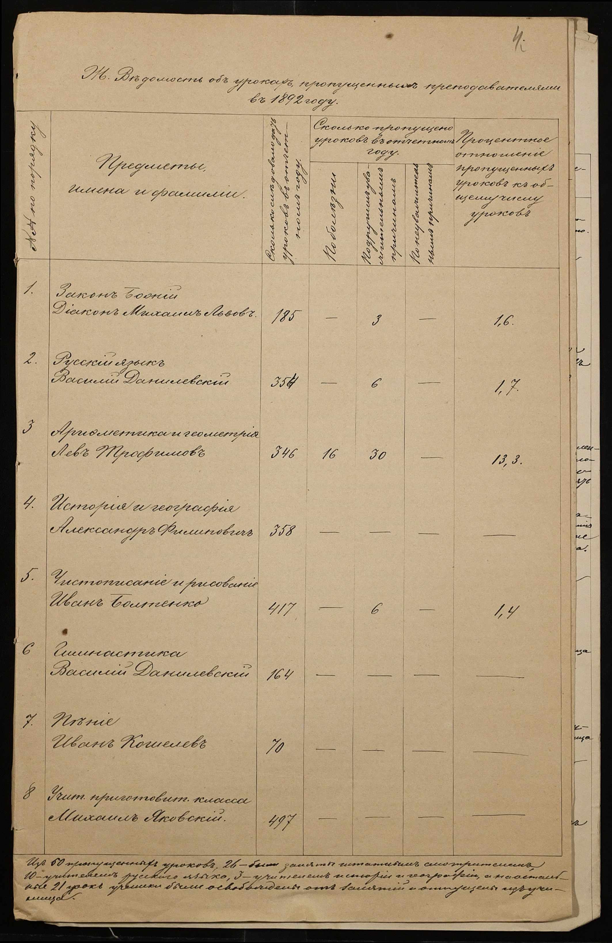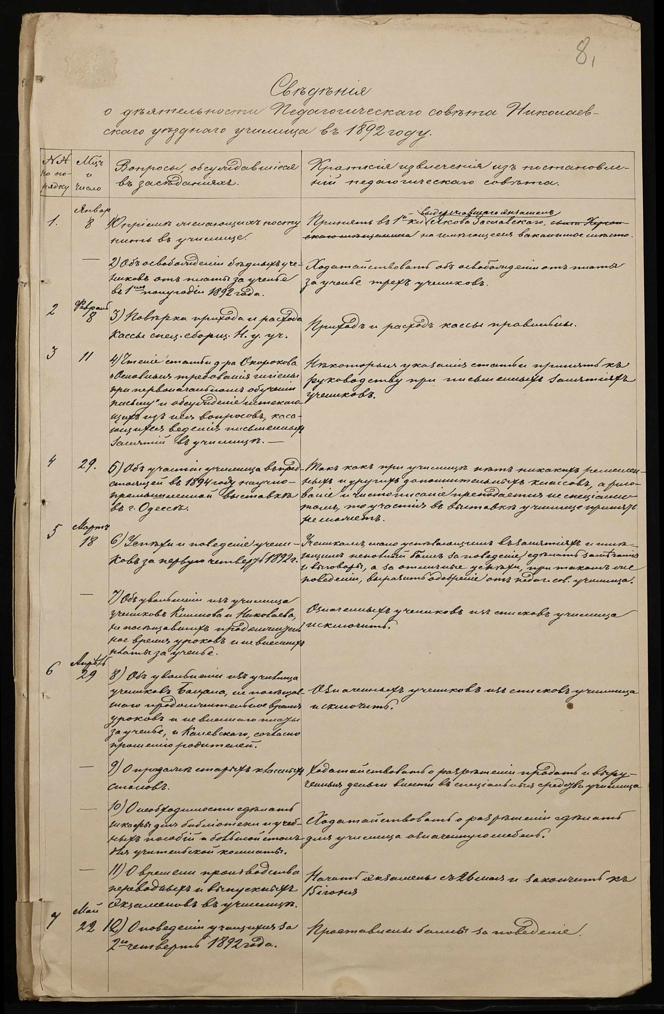 • • • • Справа № 263 “Статистичний звіт про стан училища. Відомості про діяльність педагогічної ради за 1892 рік”