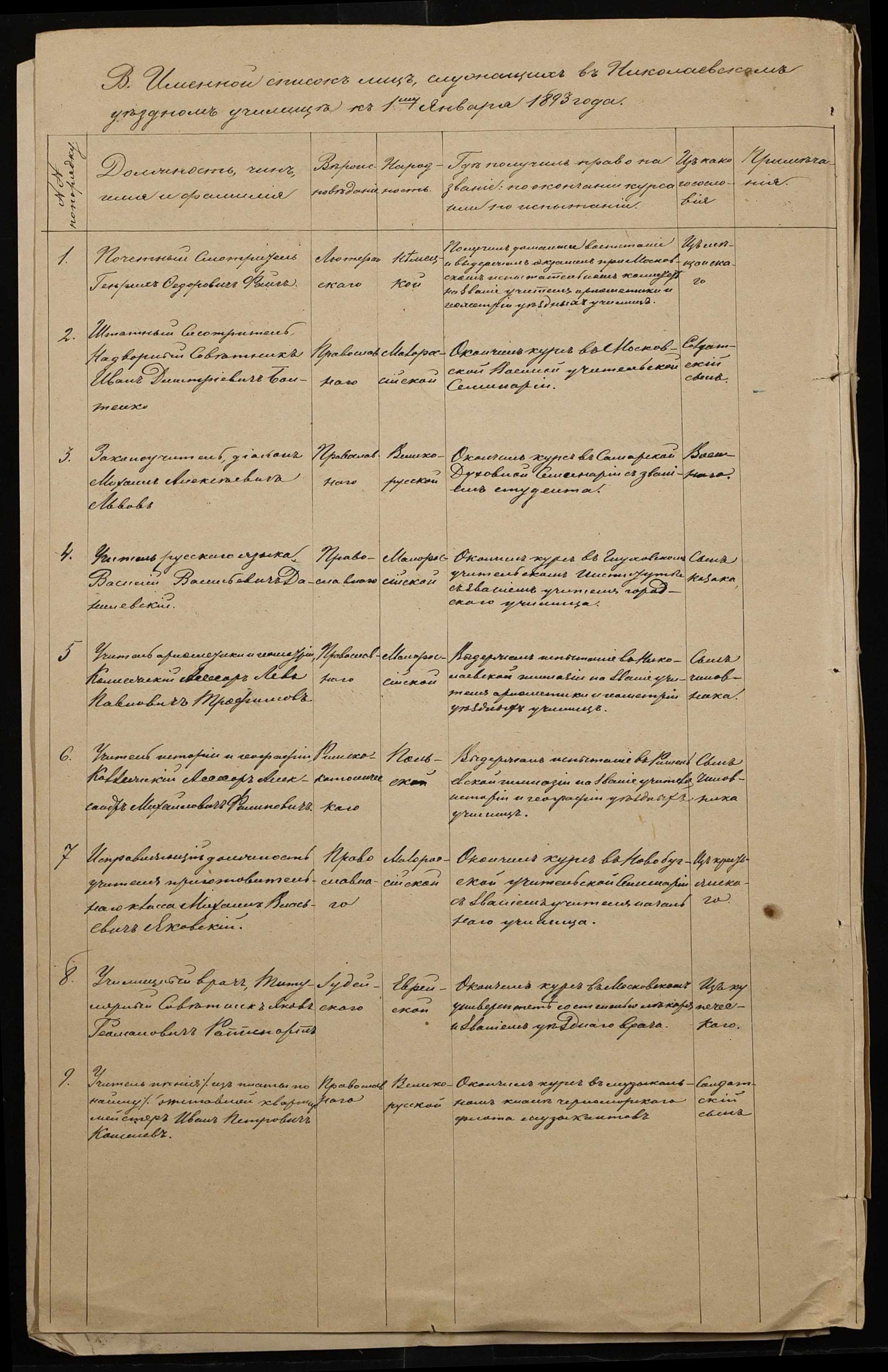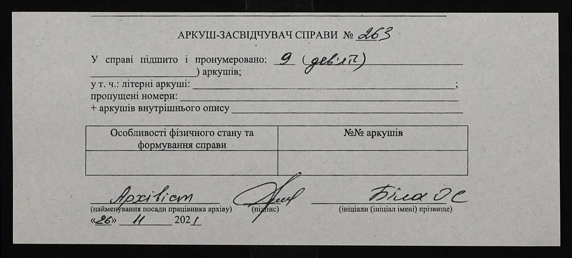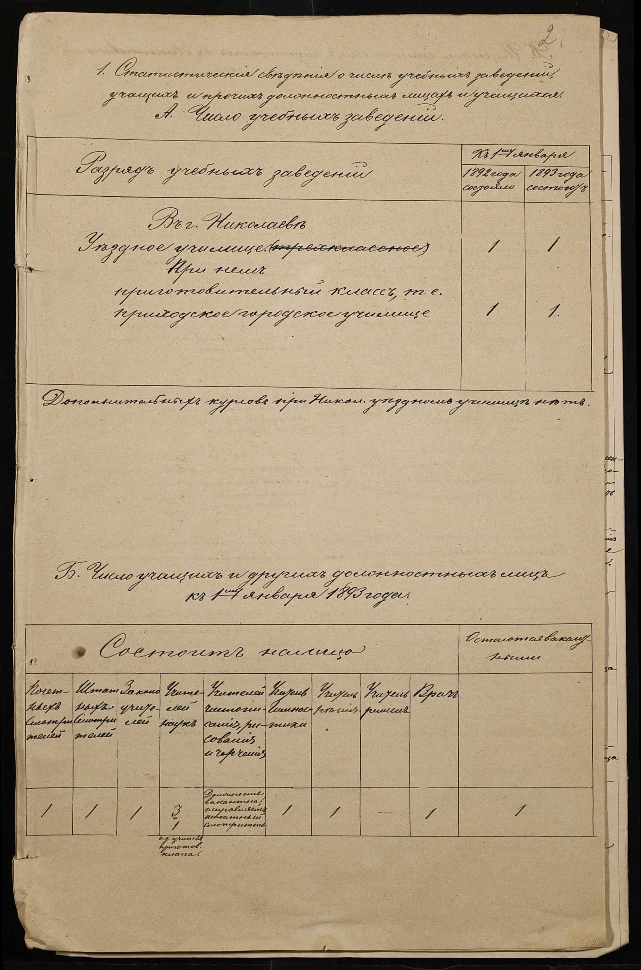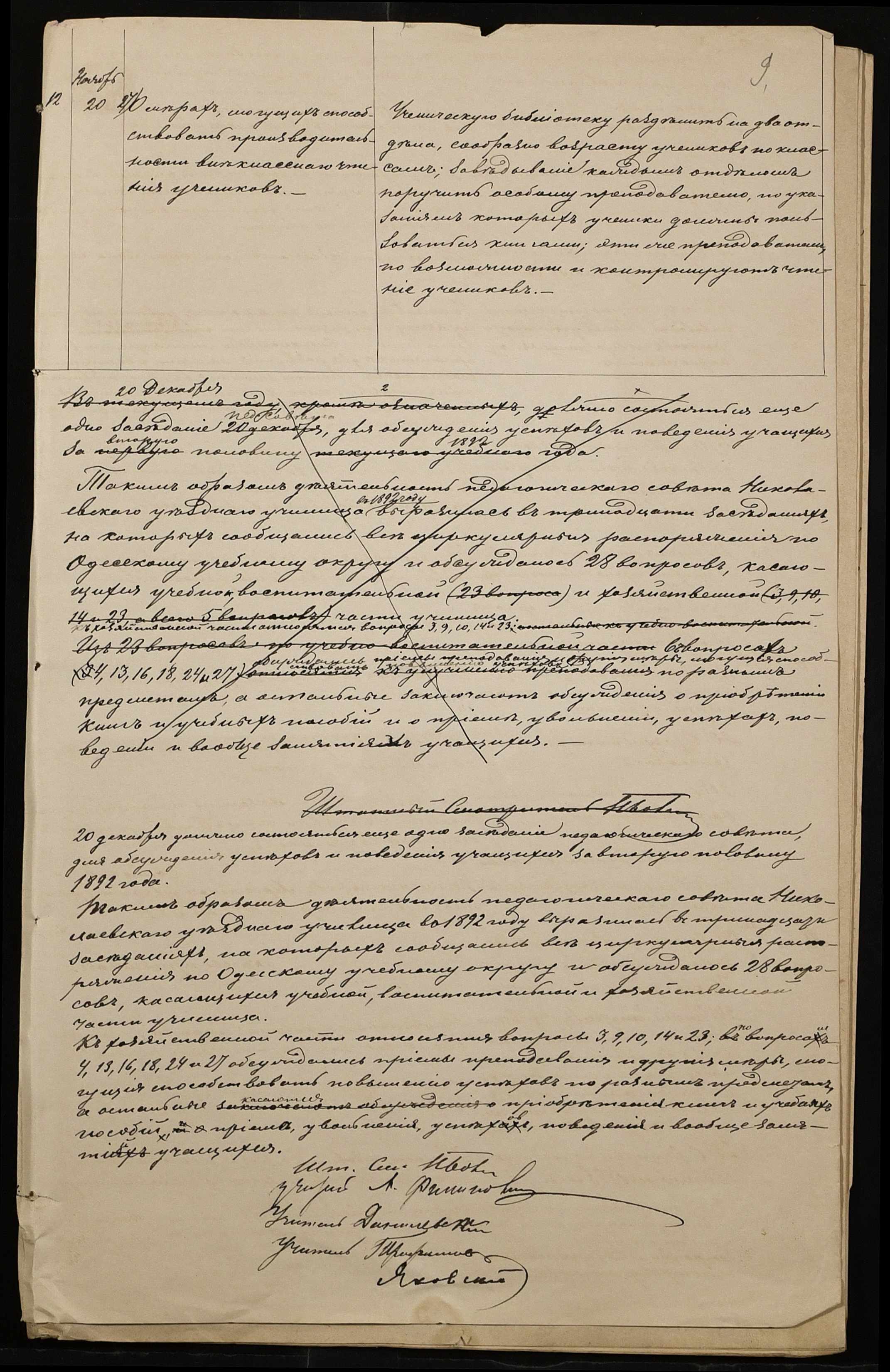 • • • • Справа № 263 “Статистичний звіт про стан училища. Відомості про діяльність педагогічної ради за 1892 рік”