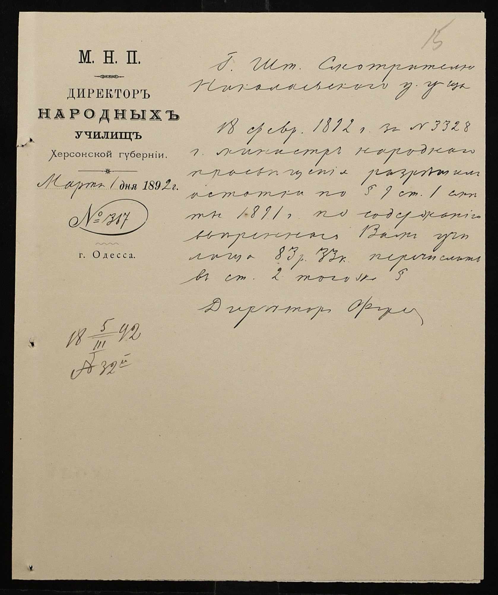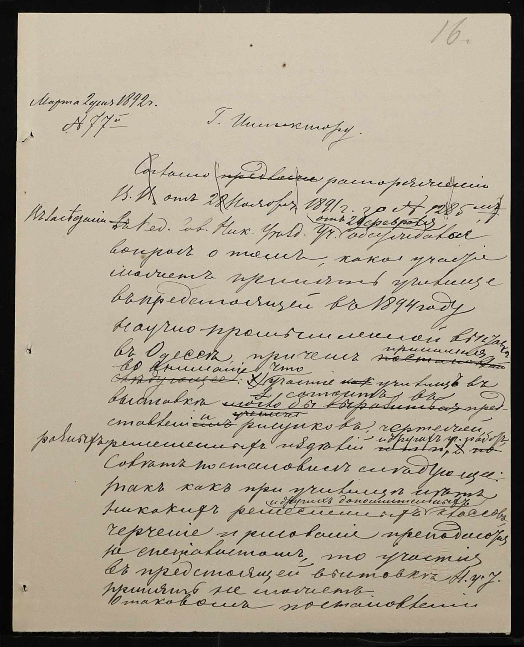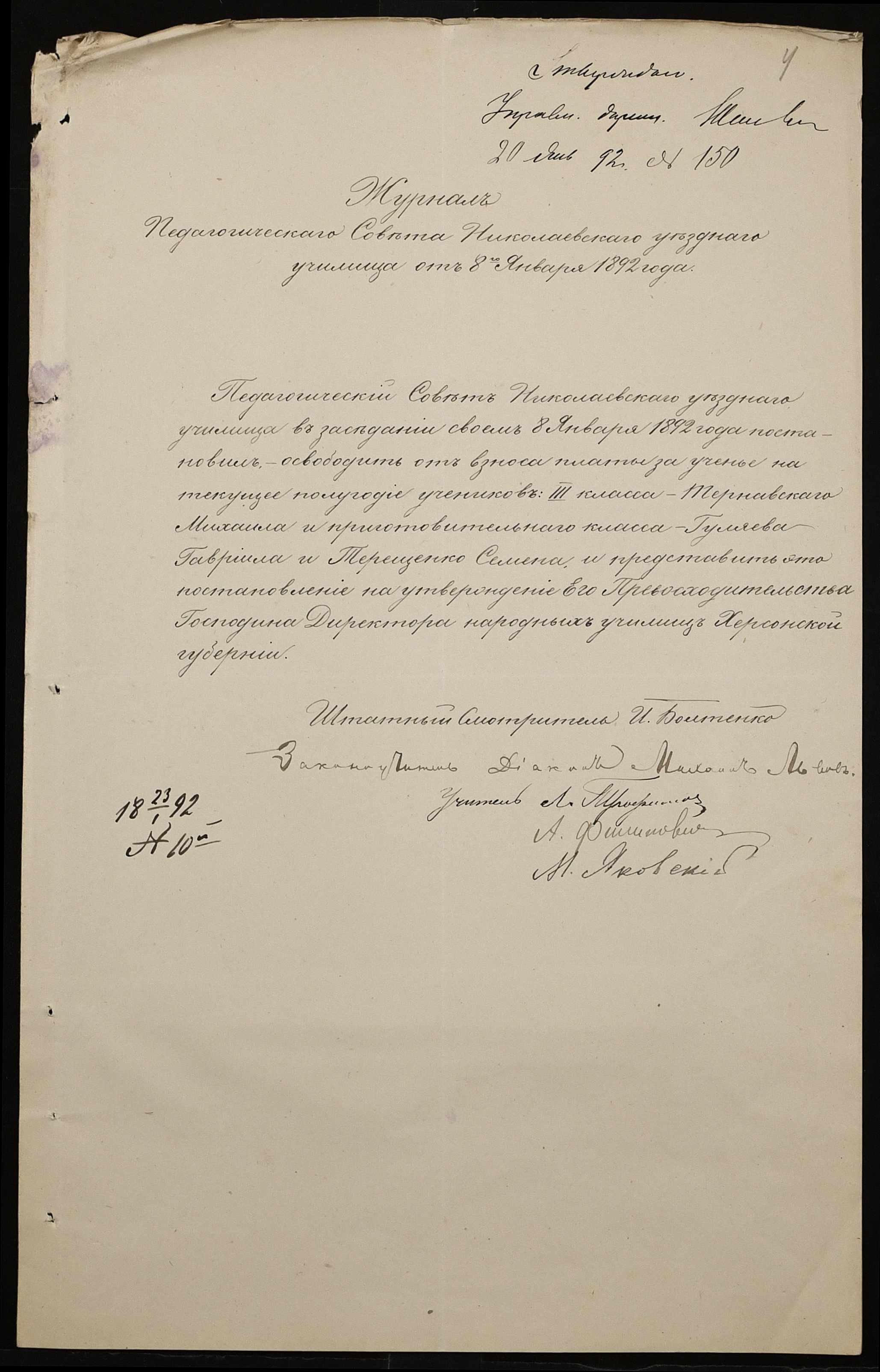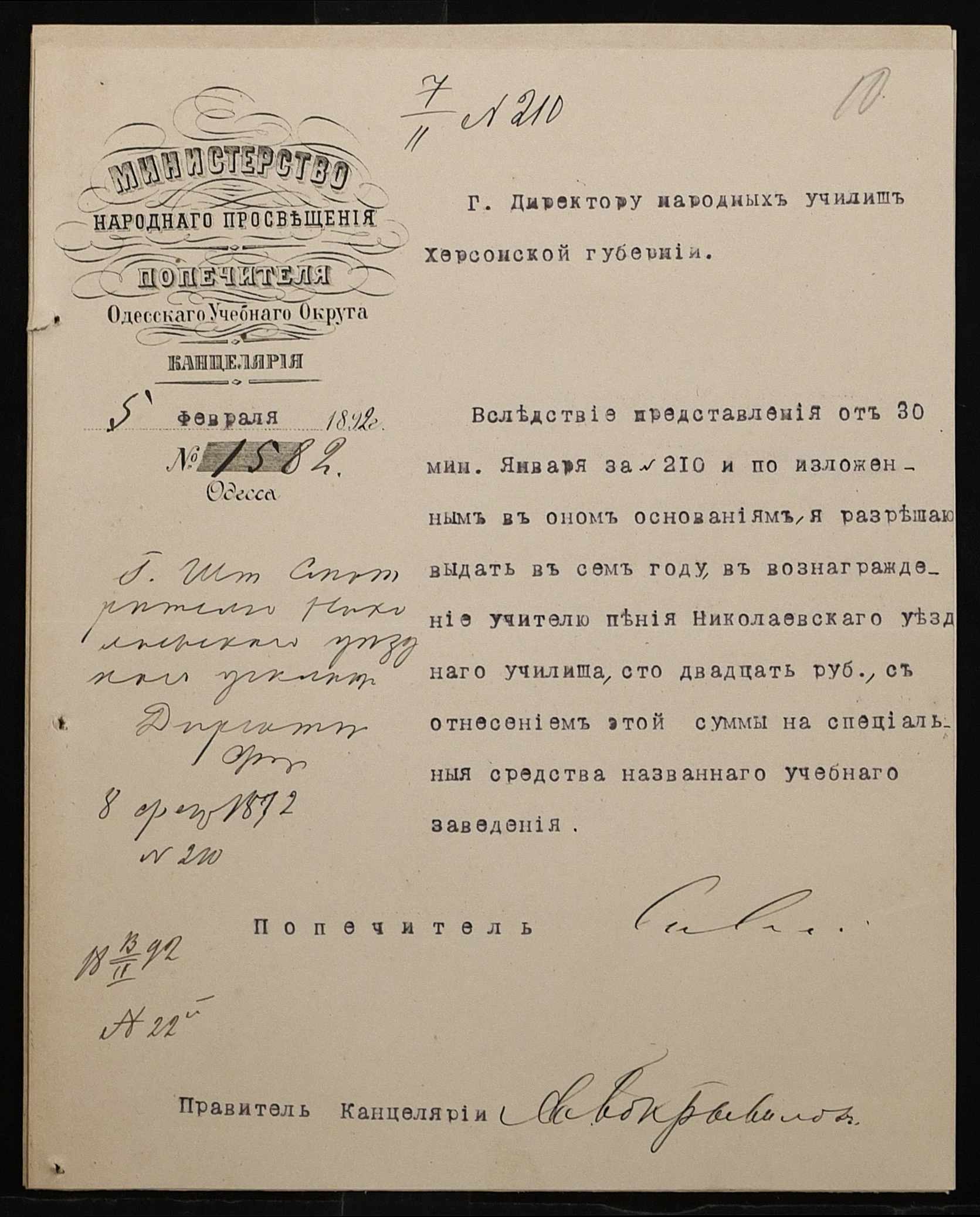 • • • • Справа № 267 “Листування з фінансових питань. Газета «Южанин» за 16 січня 1892 рік № 12”