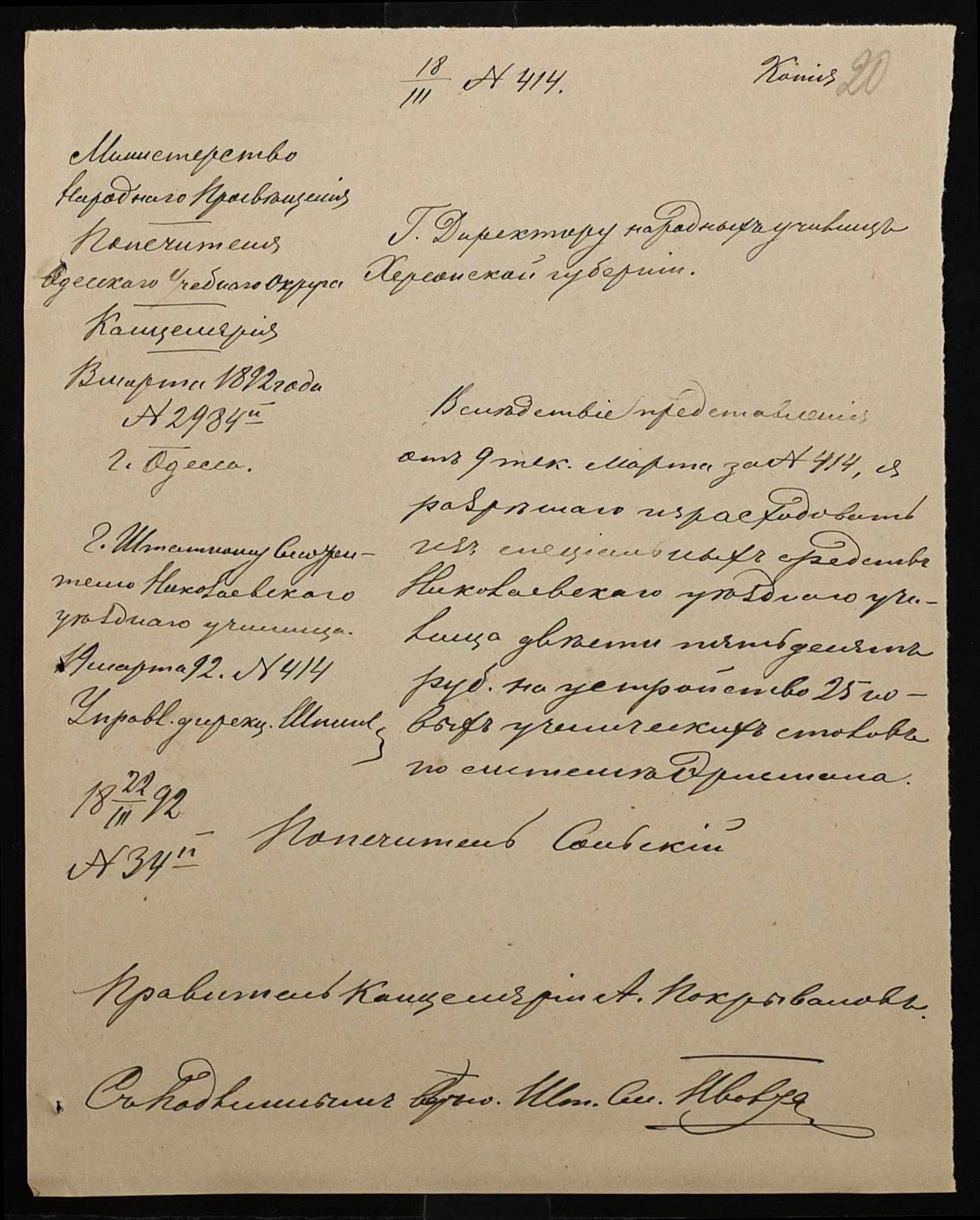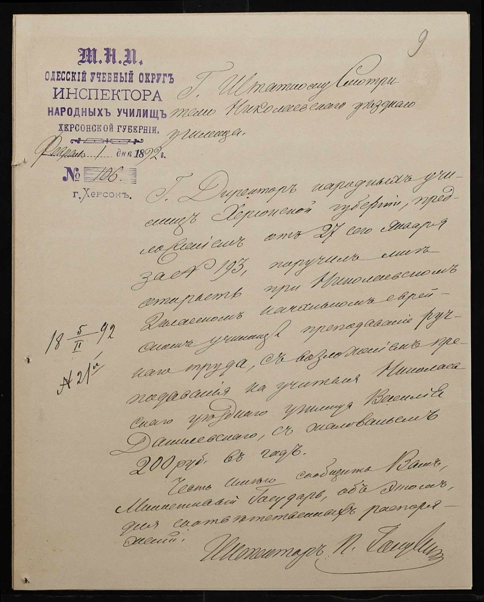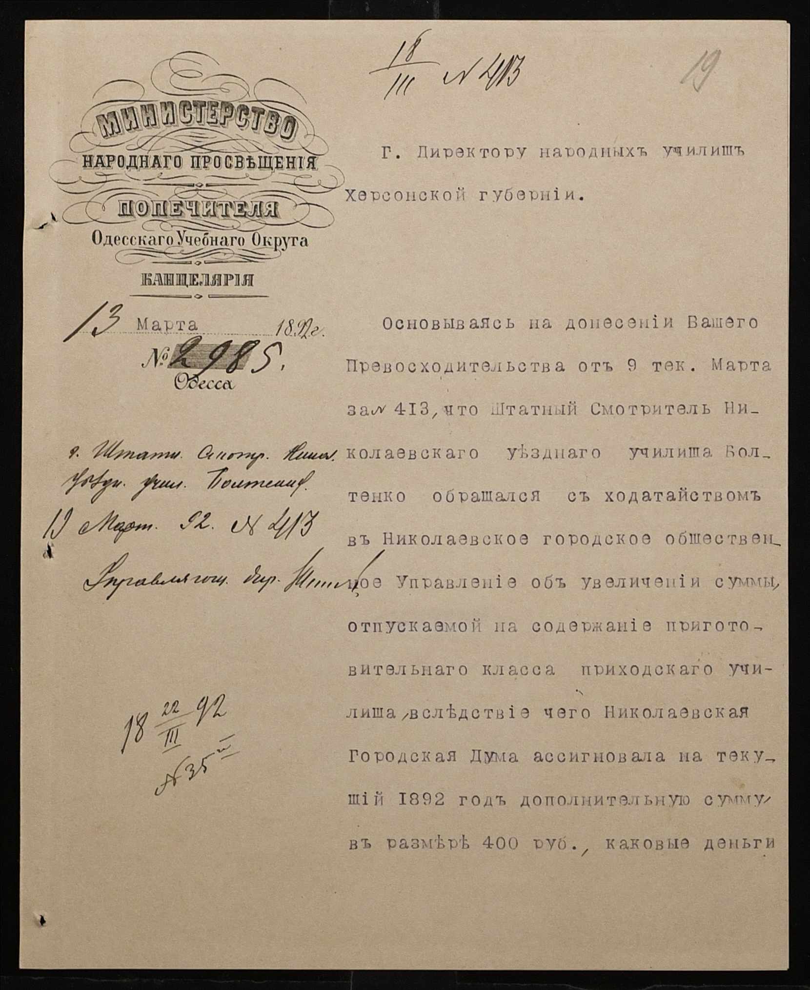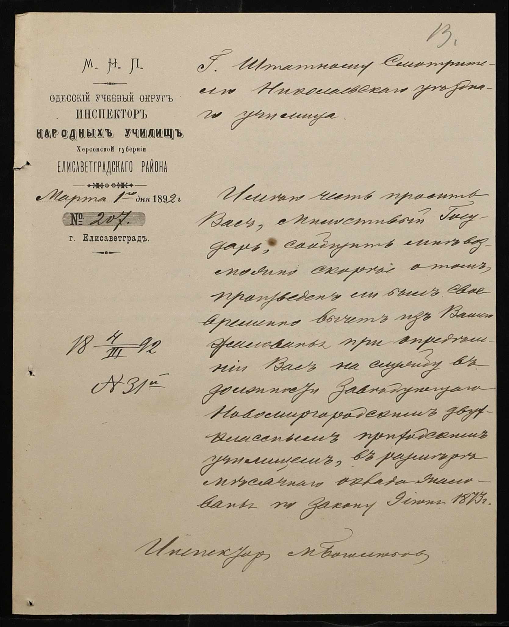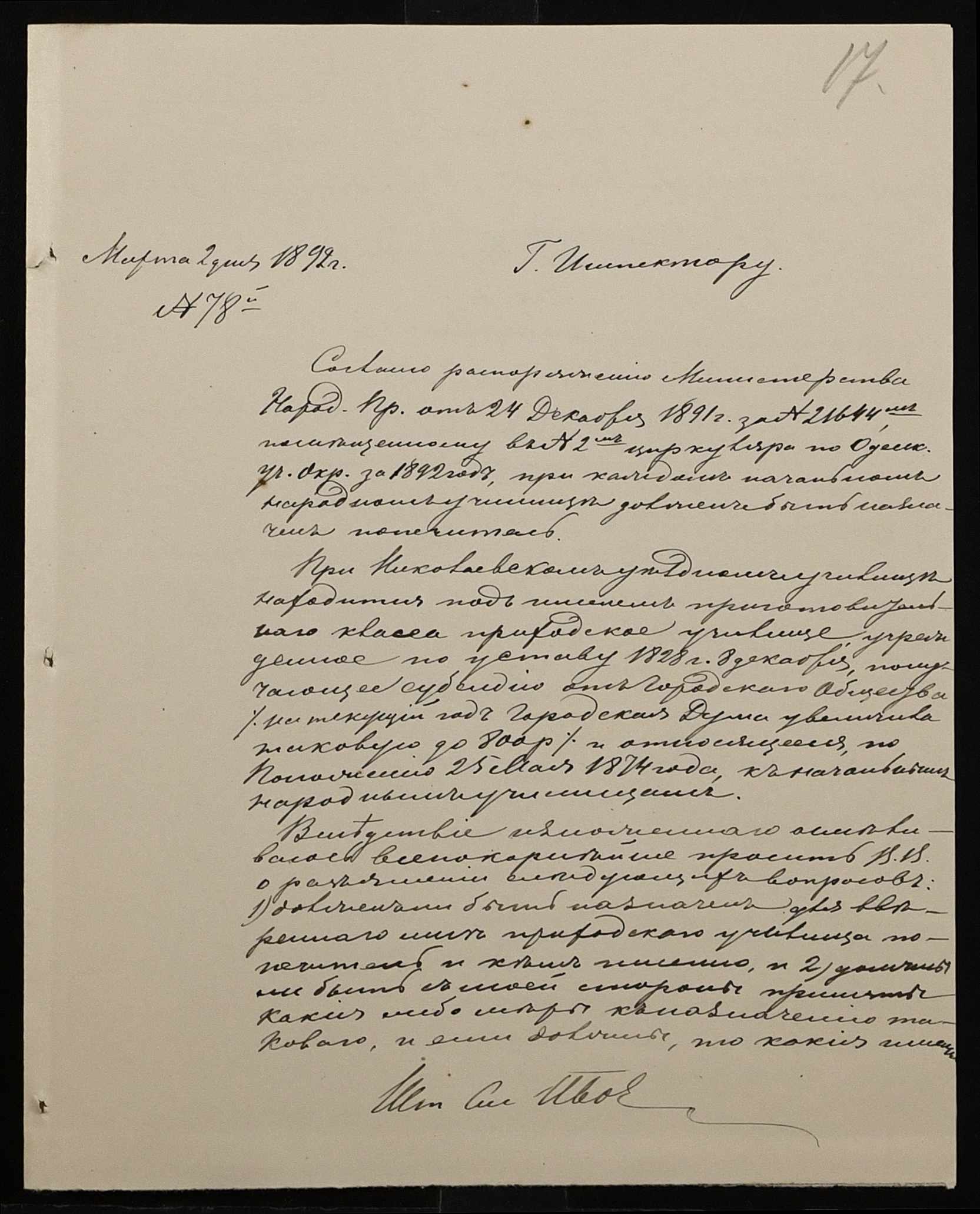 • • • • Справа № 267 “Листування з фінансових питань. Газета «Южанин» за 16 січня 1892 рік № 12”