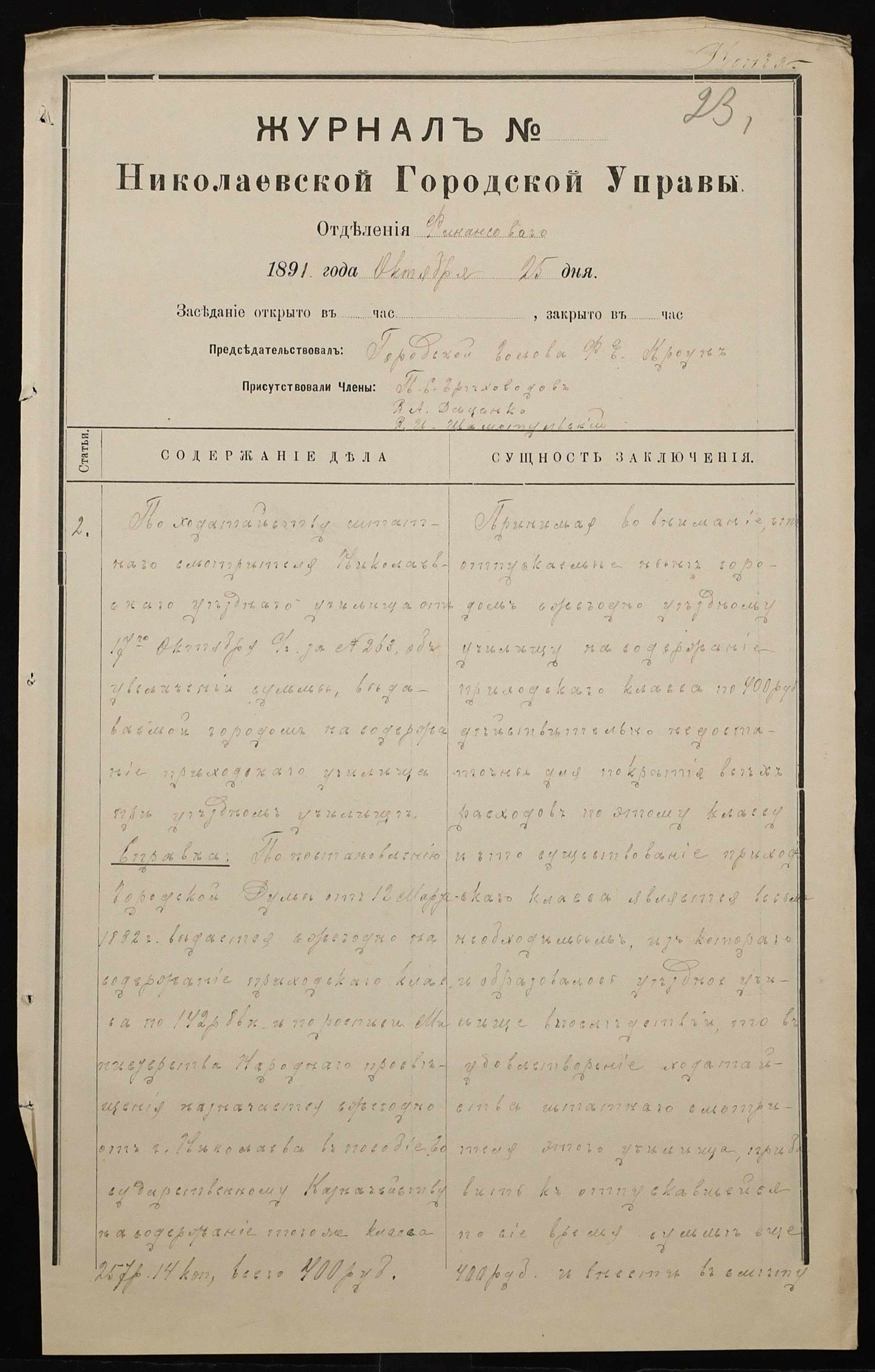 ◦ ◦ Фонд № 131 “Миколаївське перше вище початкове училище”