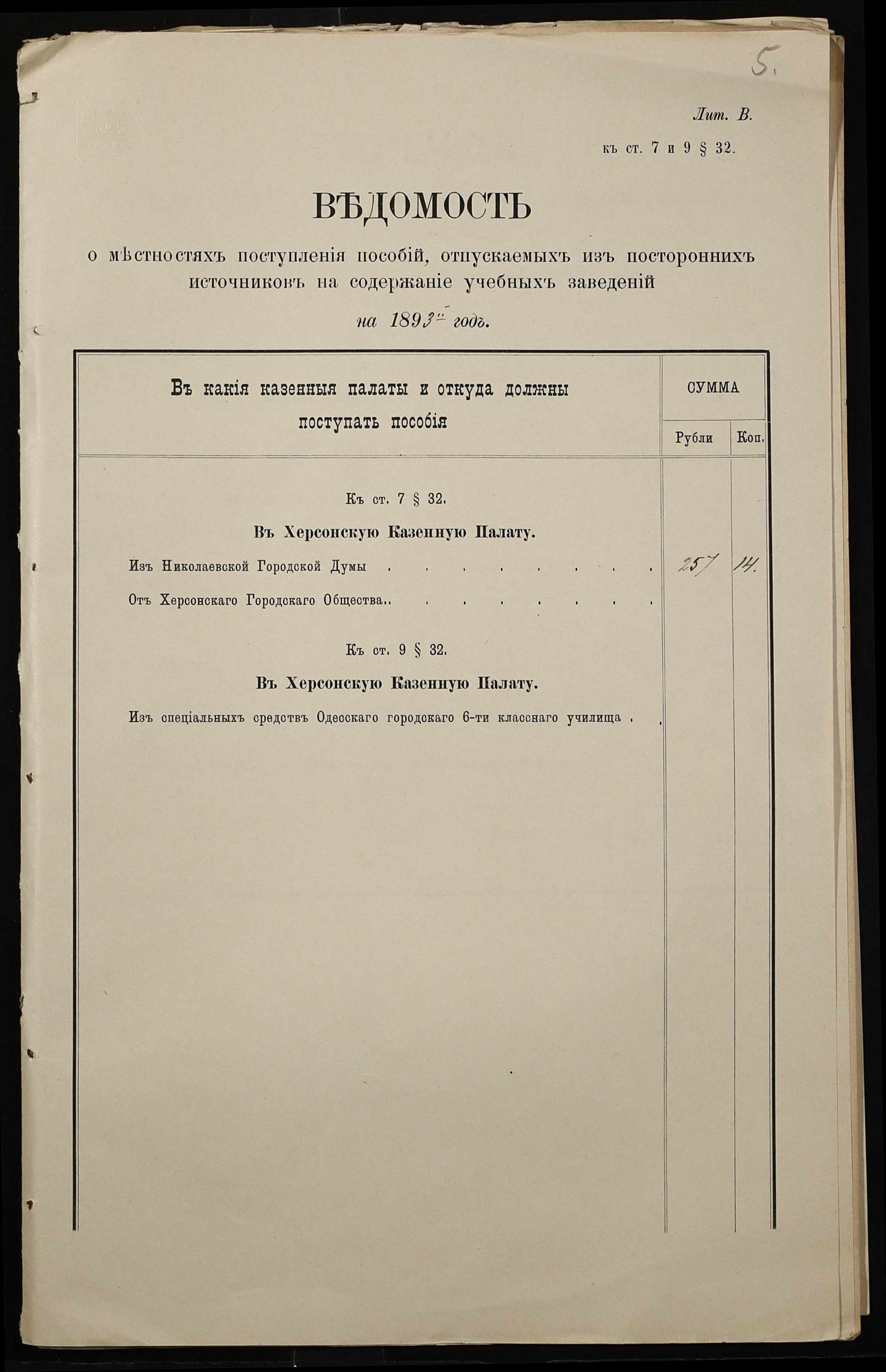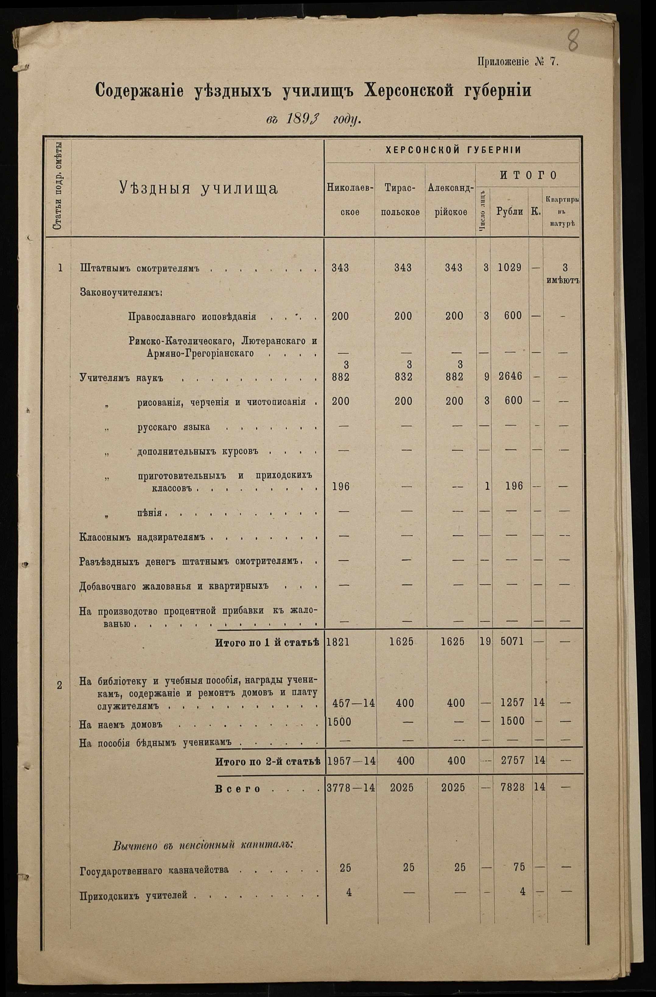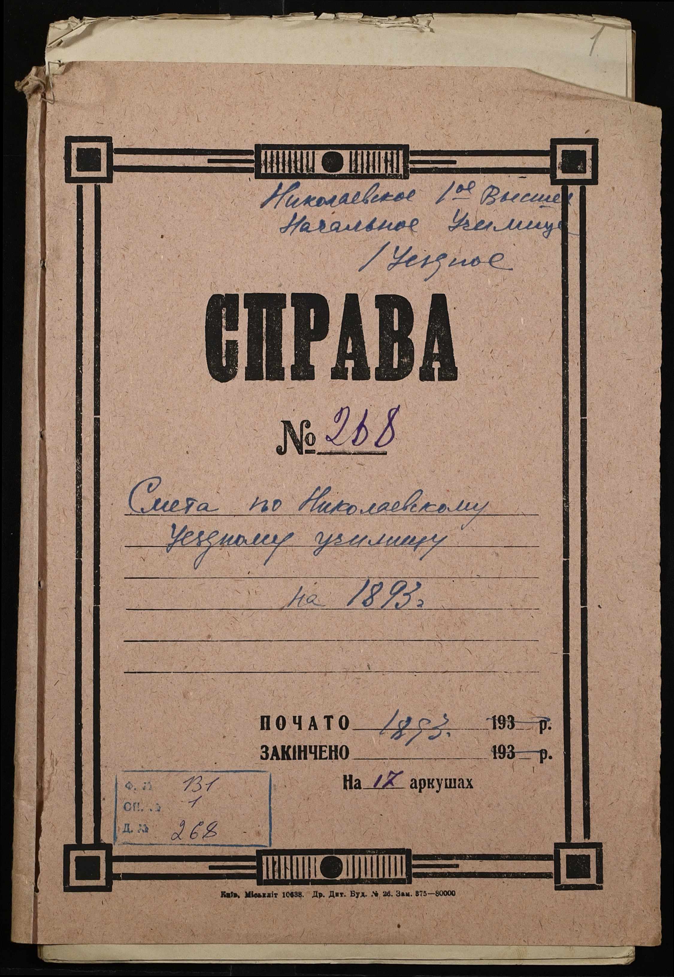 • • • • Справа № 268 “Кошторис прибутків училища за 1893 рік”