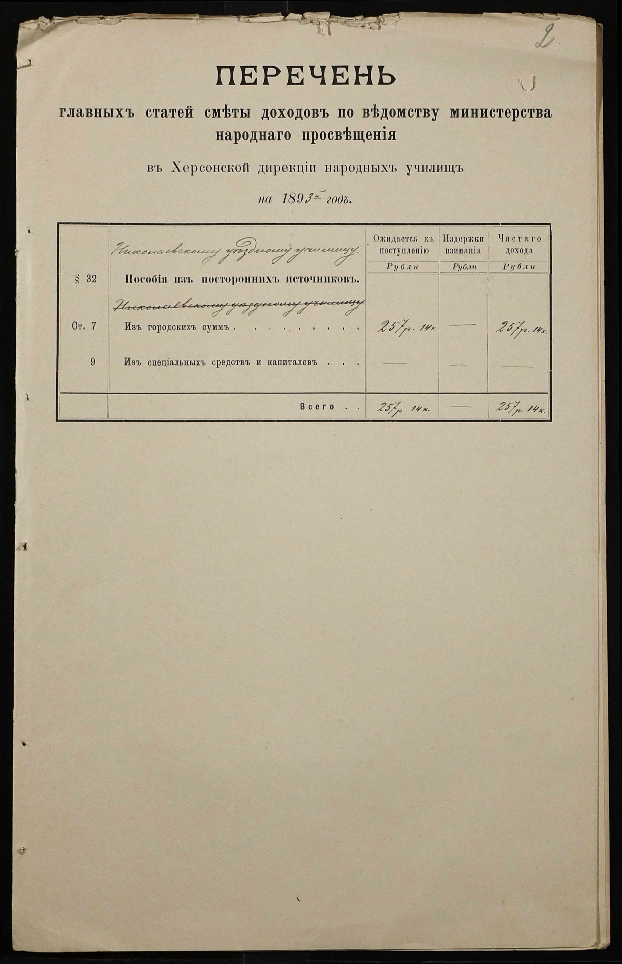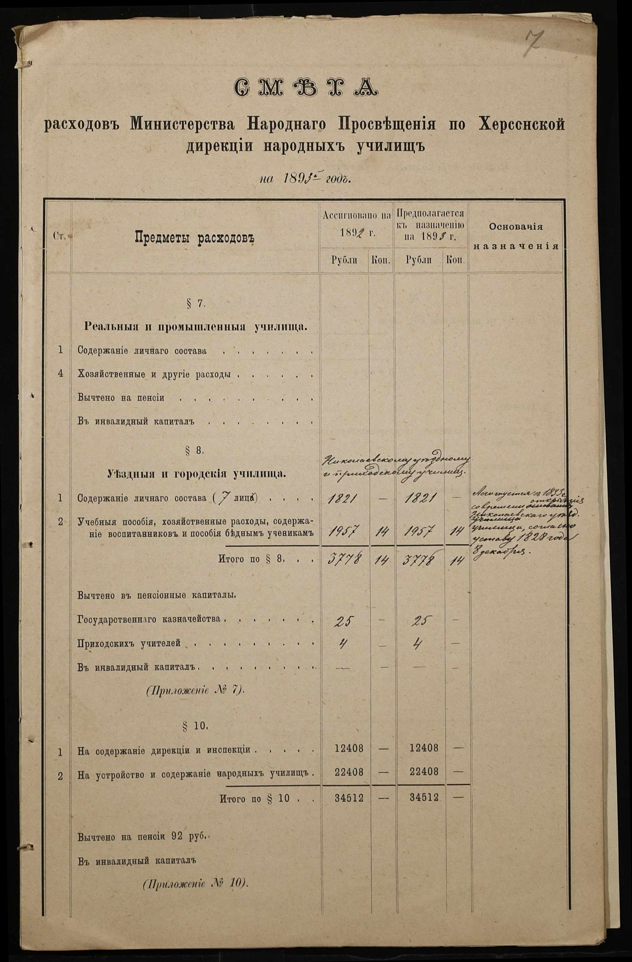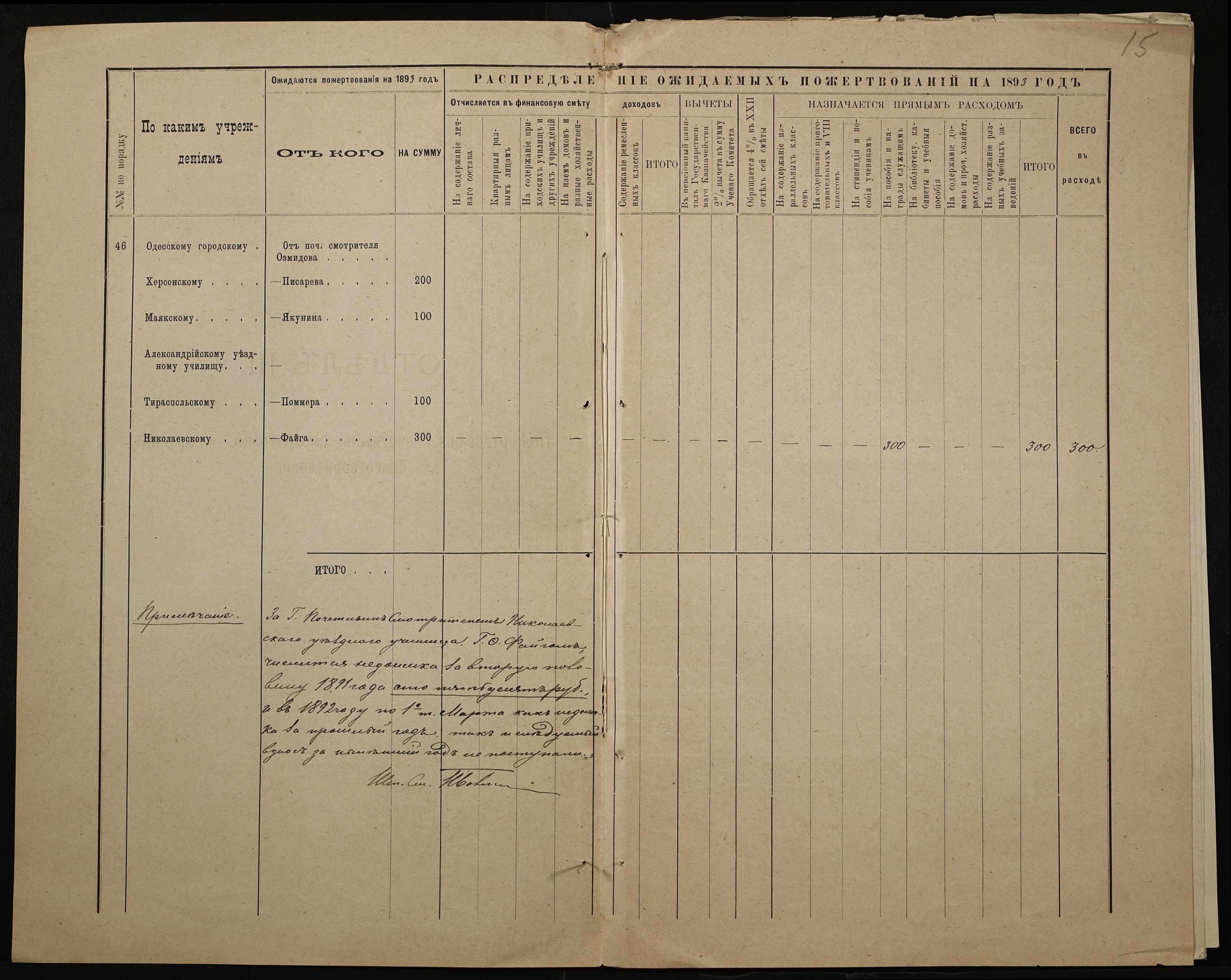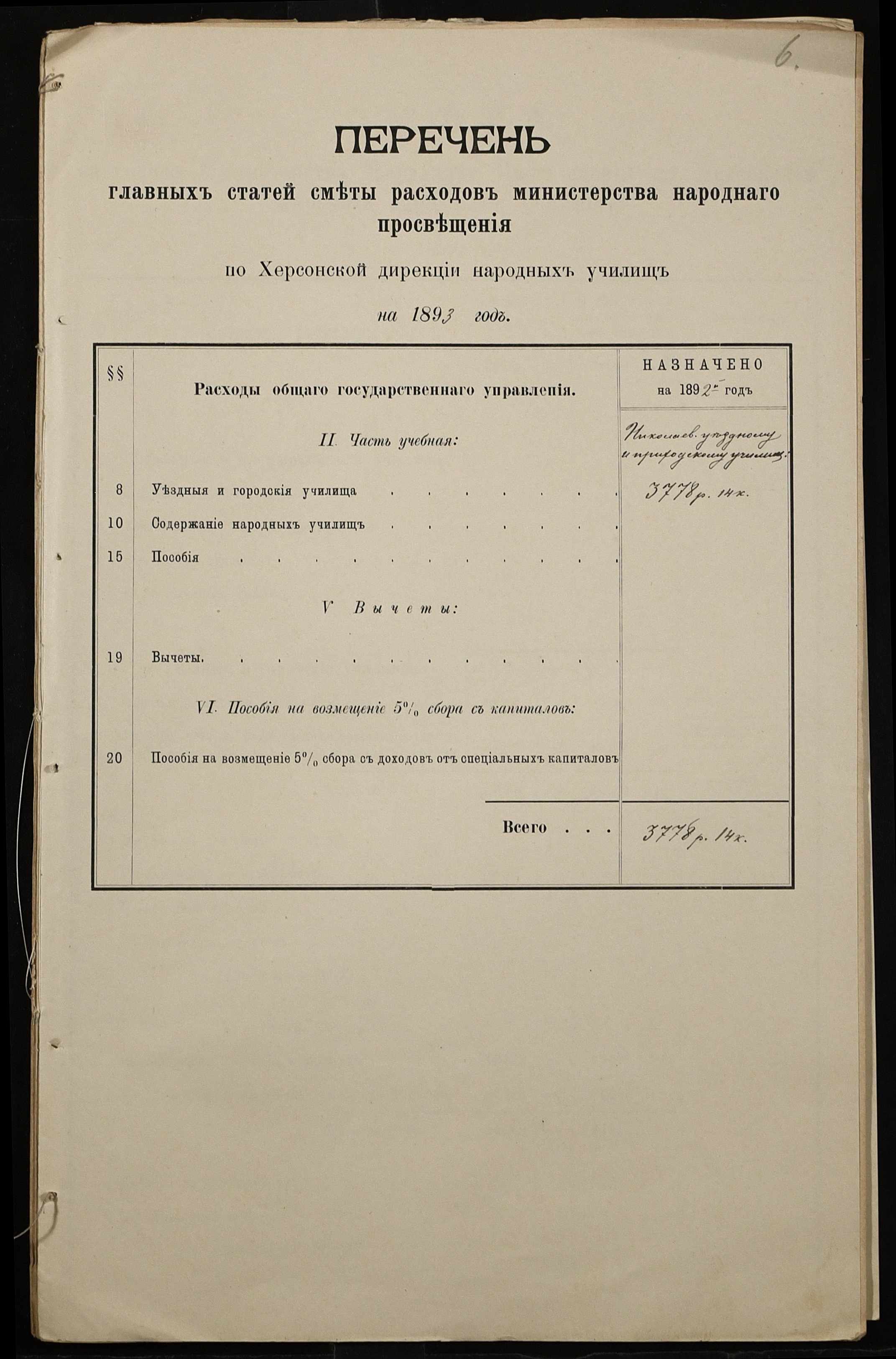 • • • • Справа № 268 “Кошторис прибутків училища за 1893 рік”