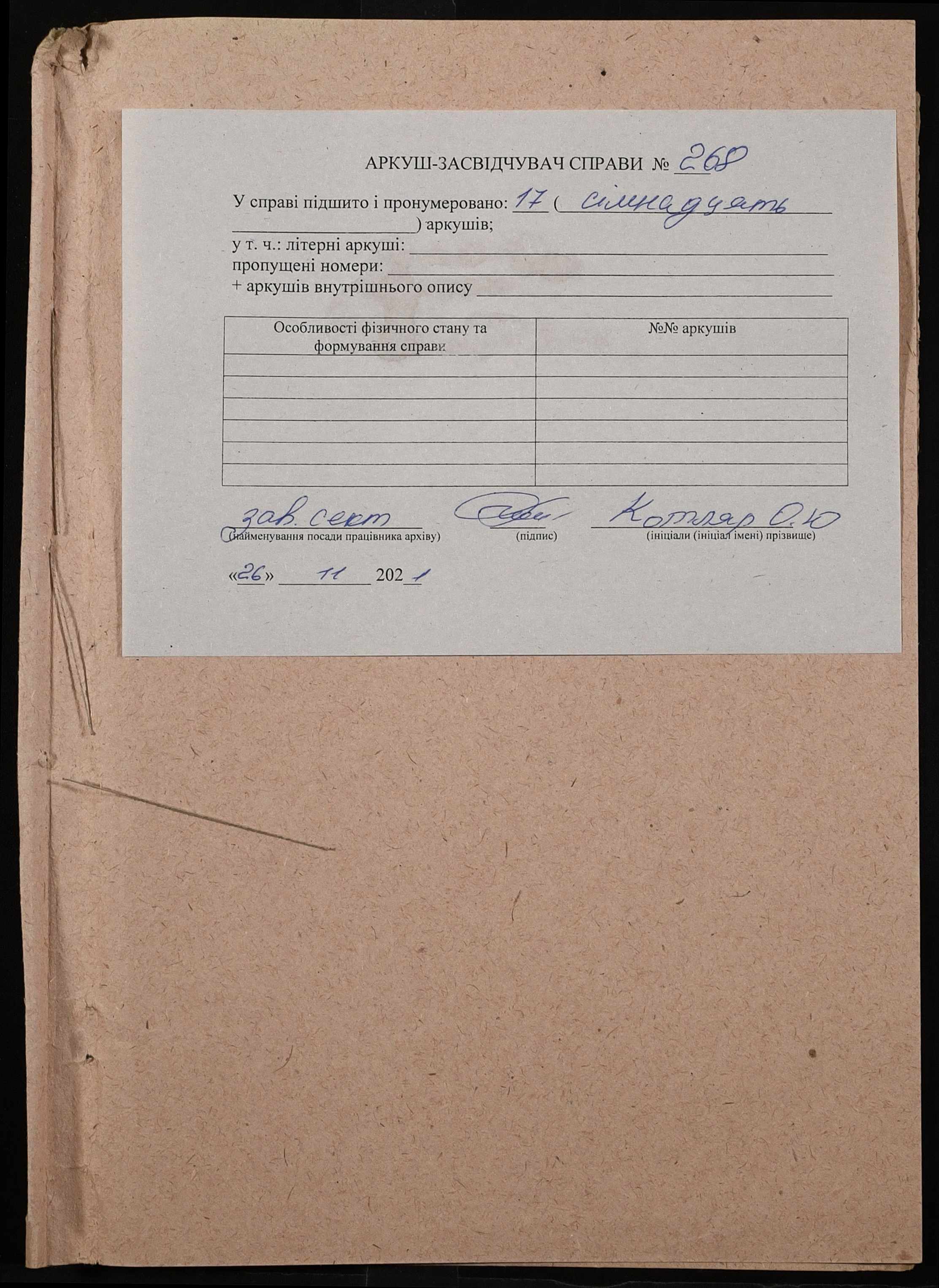 ◦ ◦ ◦ Опис № 1 справ постійного зберігання за 1847-1852, 1858, 1868-1869, 1871-1919, 1922 роки