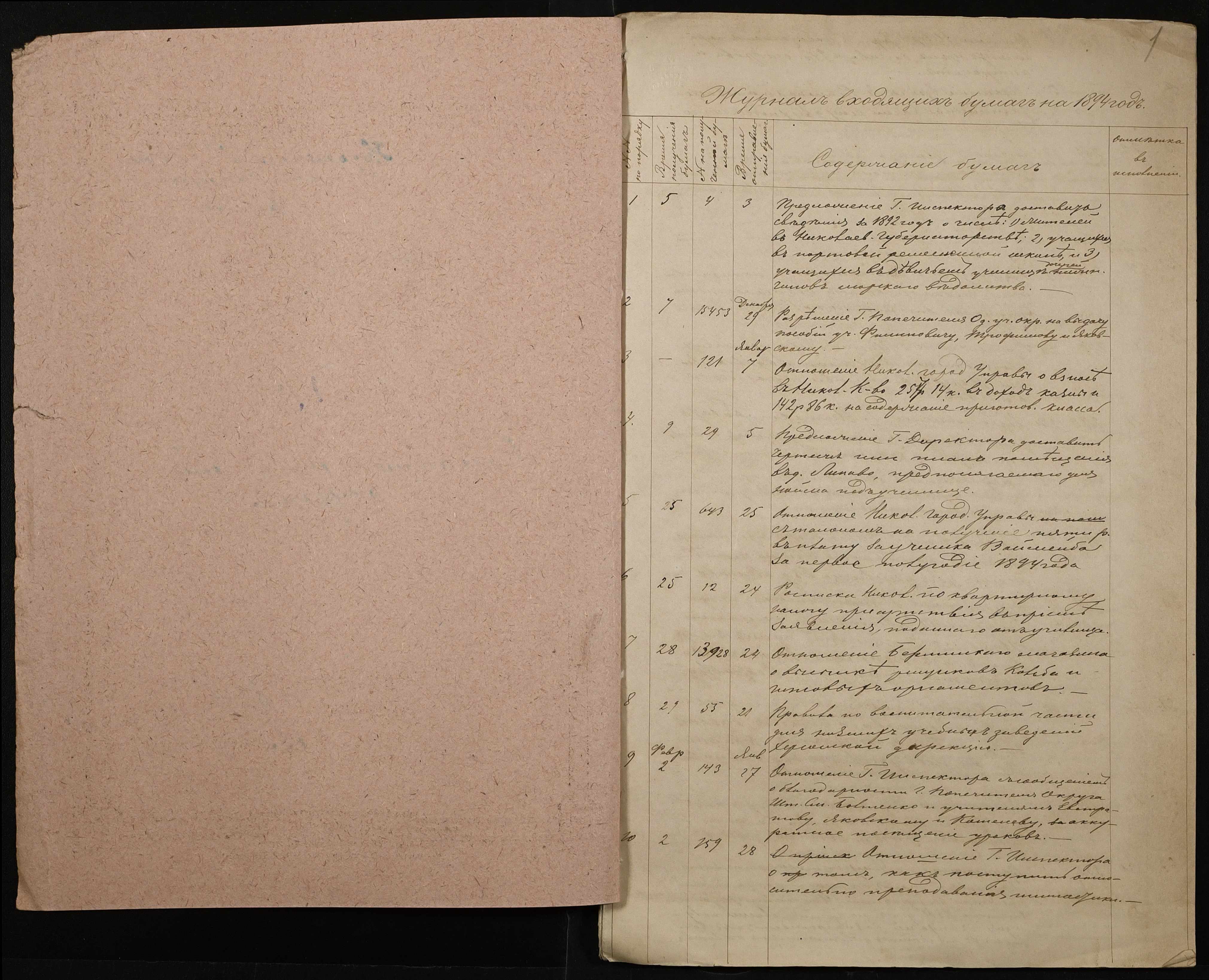 • • • • Справа № 269 “Журнал реєстрації вхідних і вихідних документів за 1894 рік”
