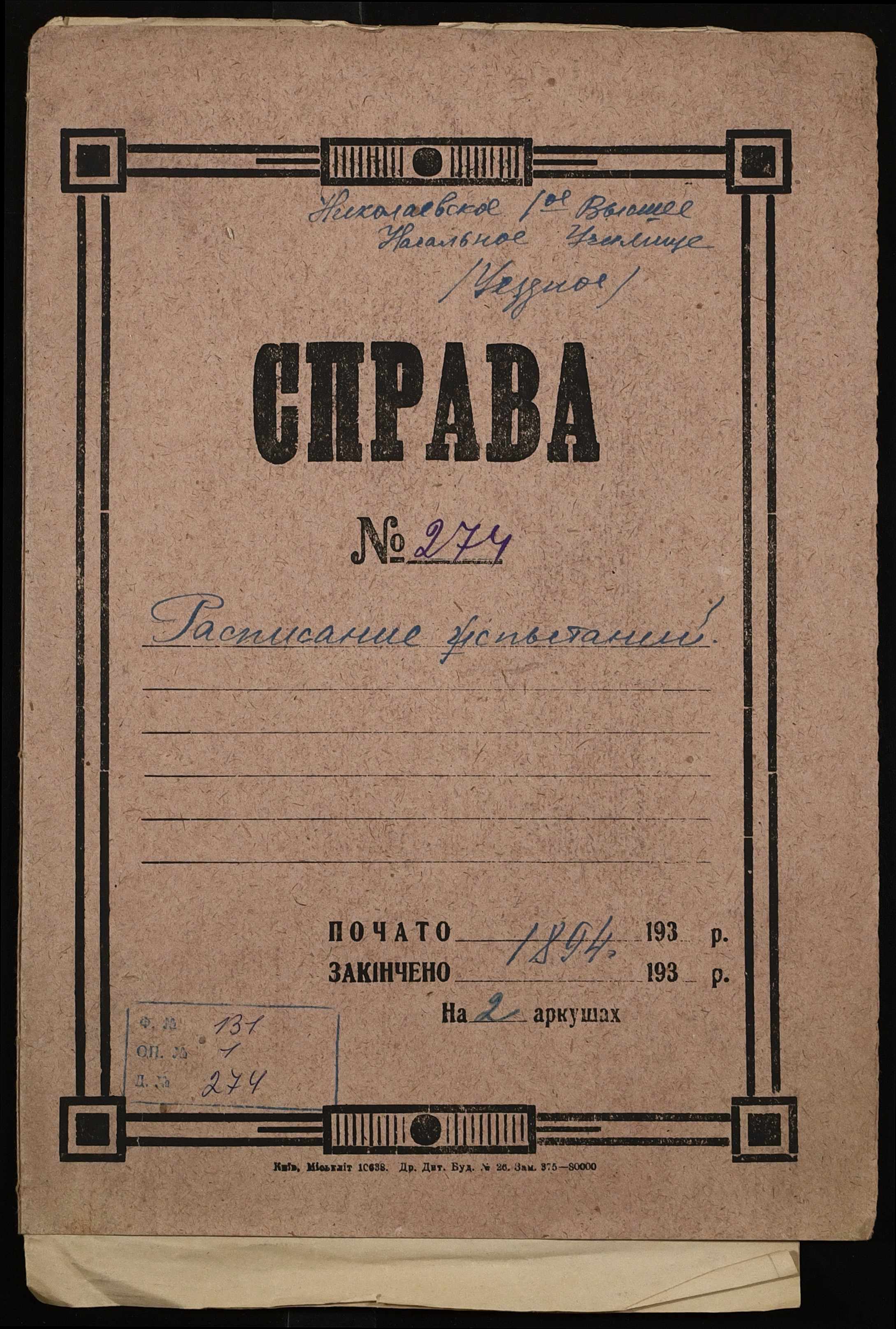Фонд 131 / Опис 1 / Справа 274
