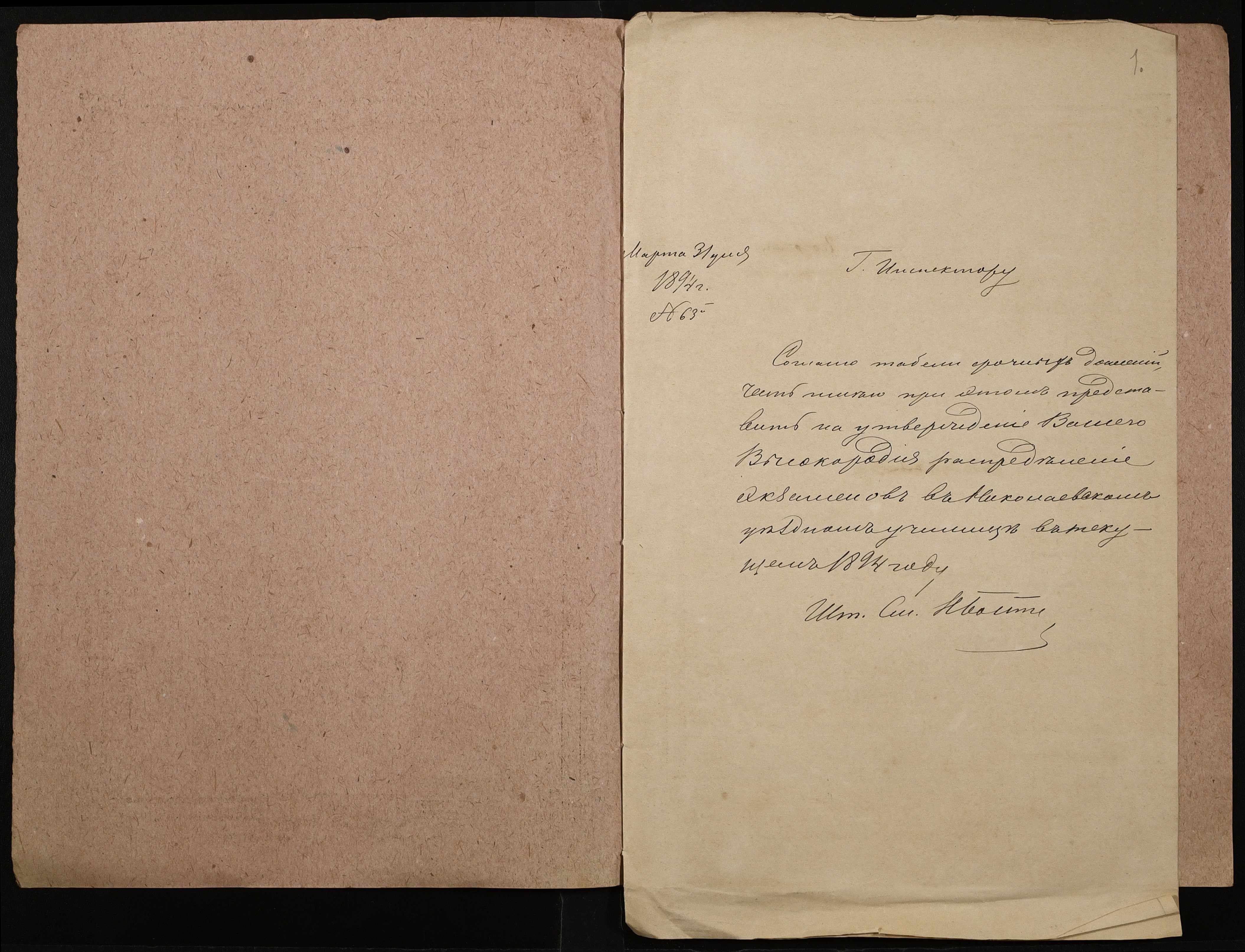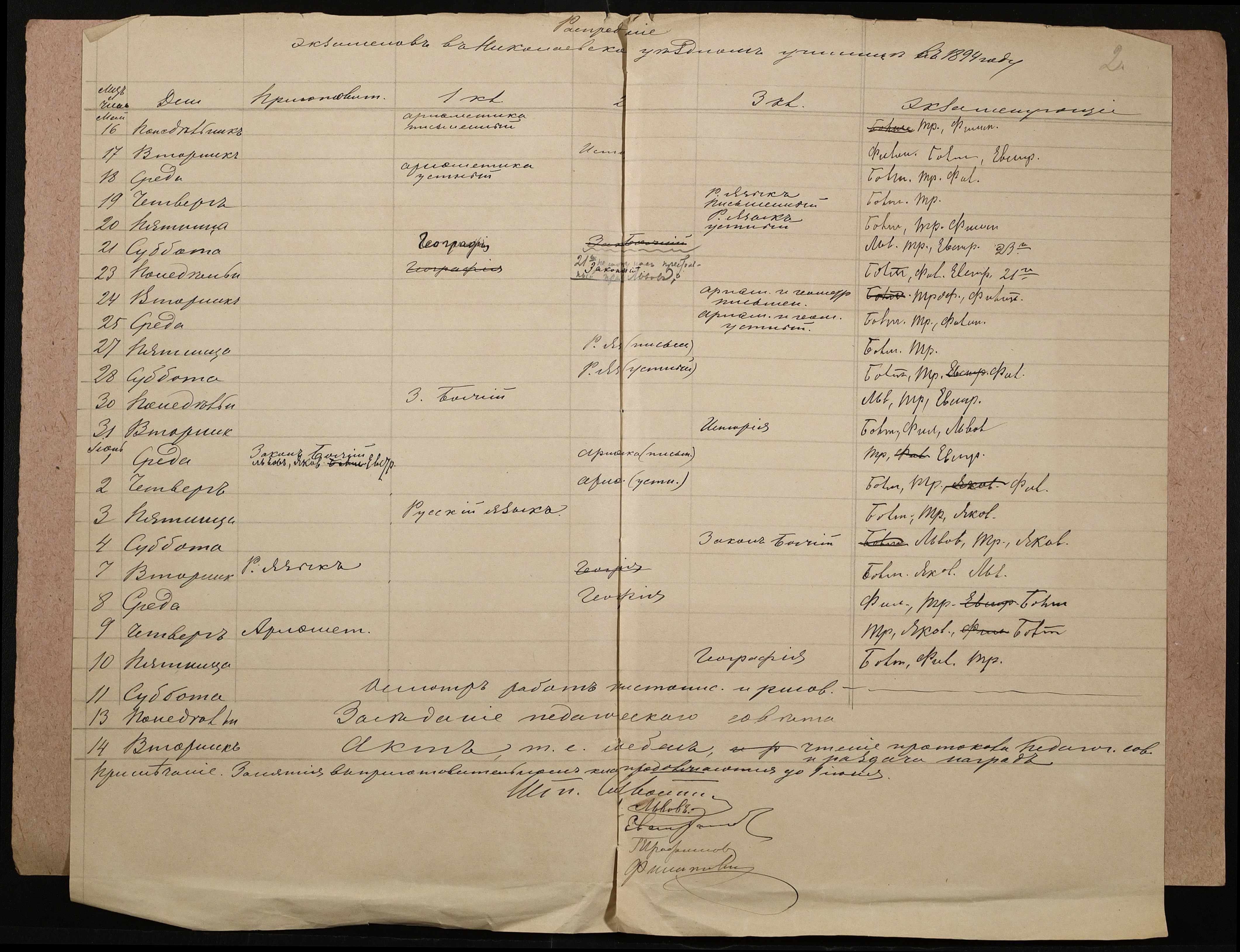 • • • • Справа № 274 “Розклад екзаменів училища за 1894 рік”