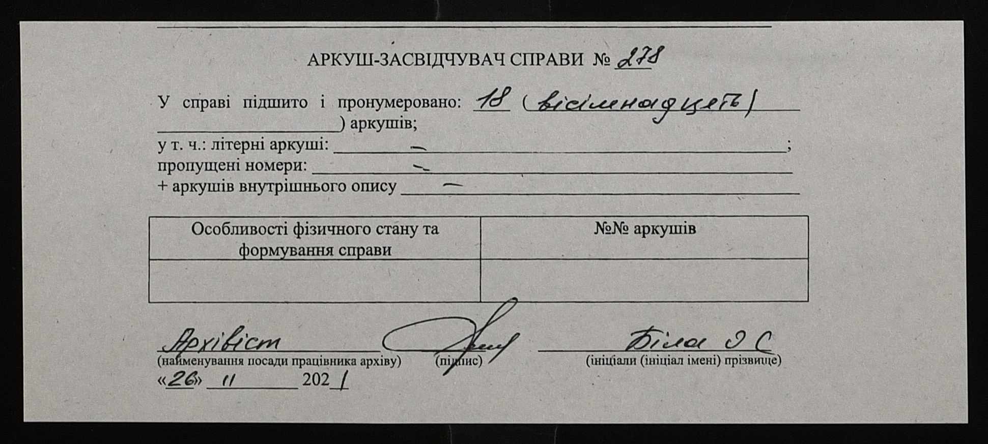 • • • • Справа № 278 “Статистичний звіт і відомості про стан училища за 1894 рік”