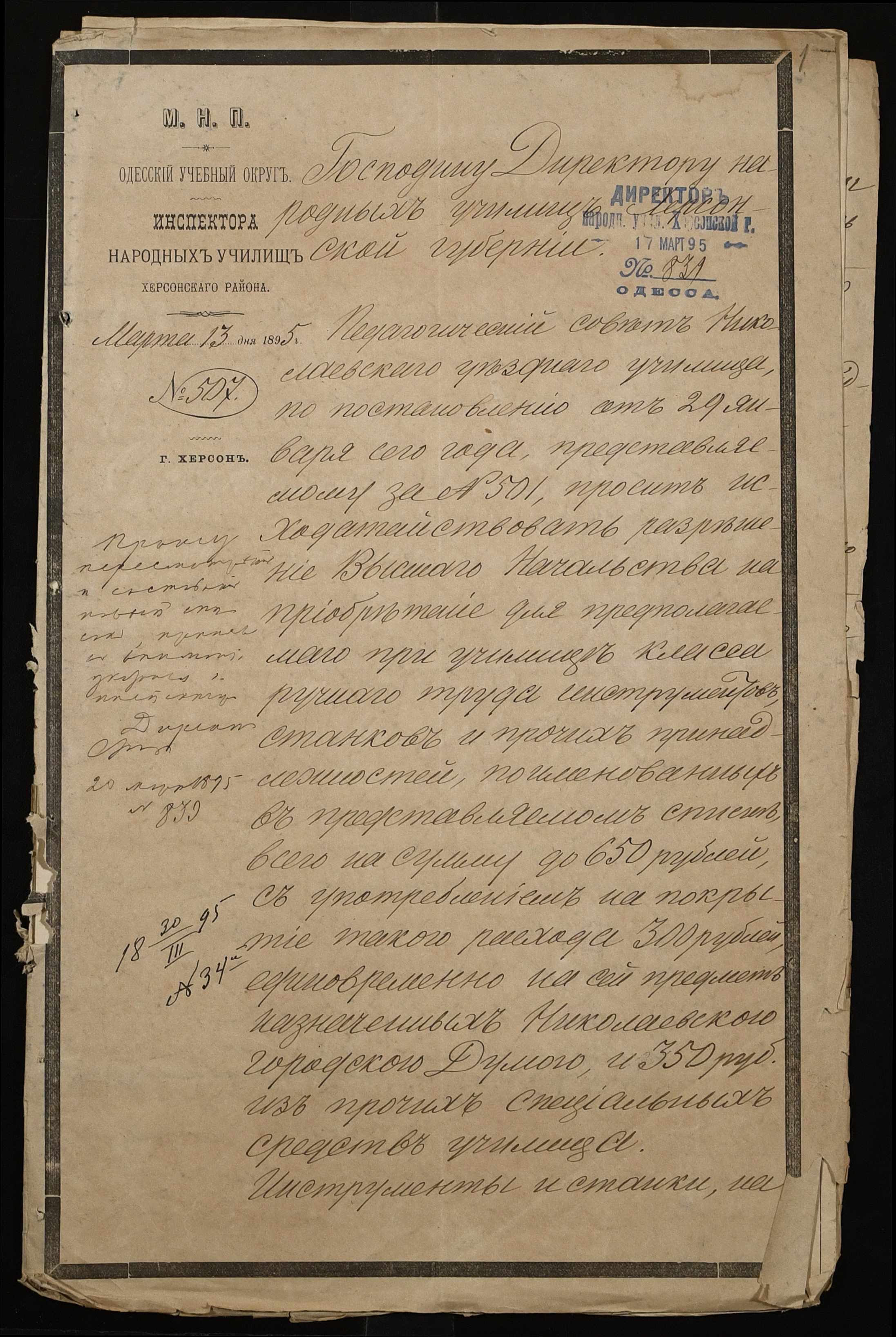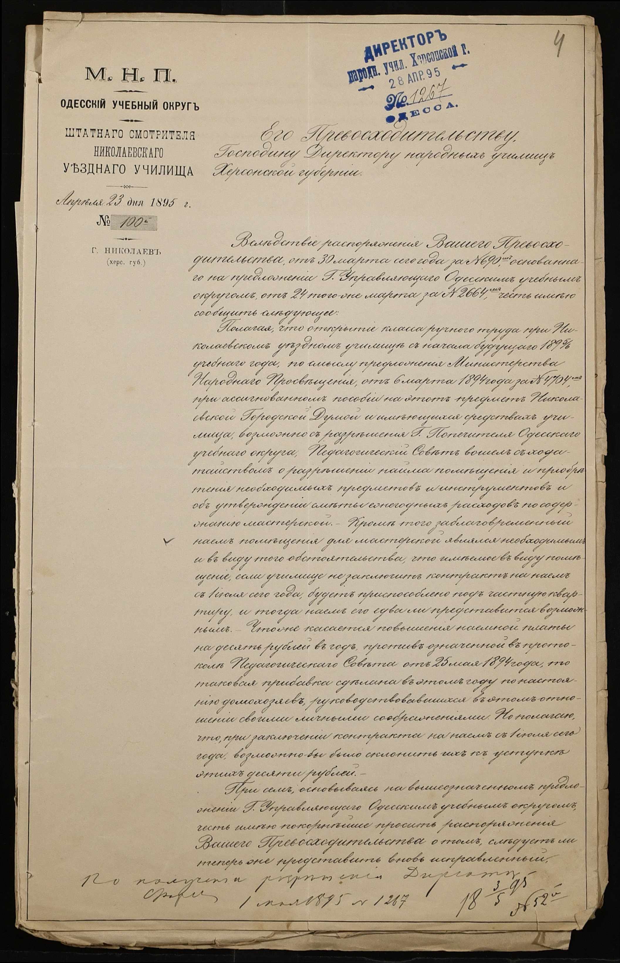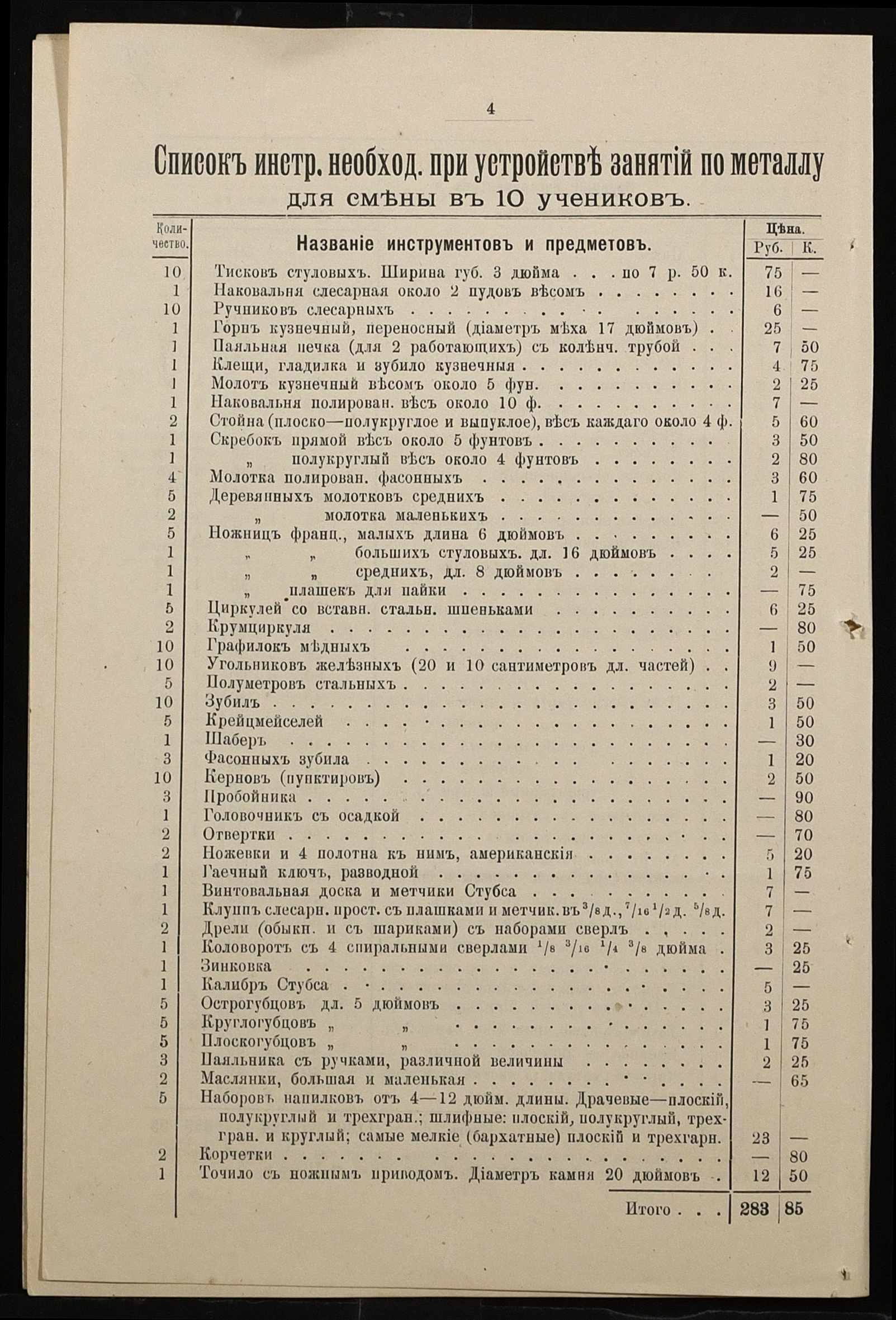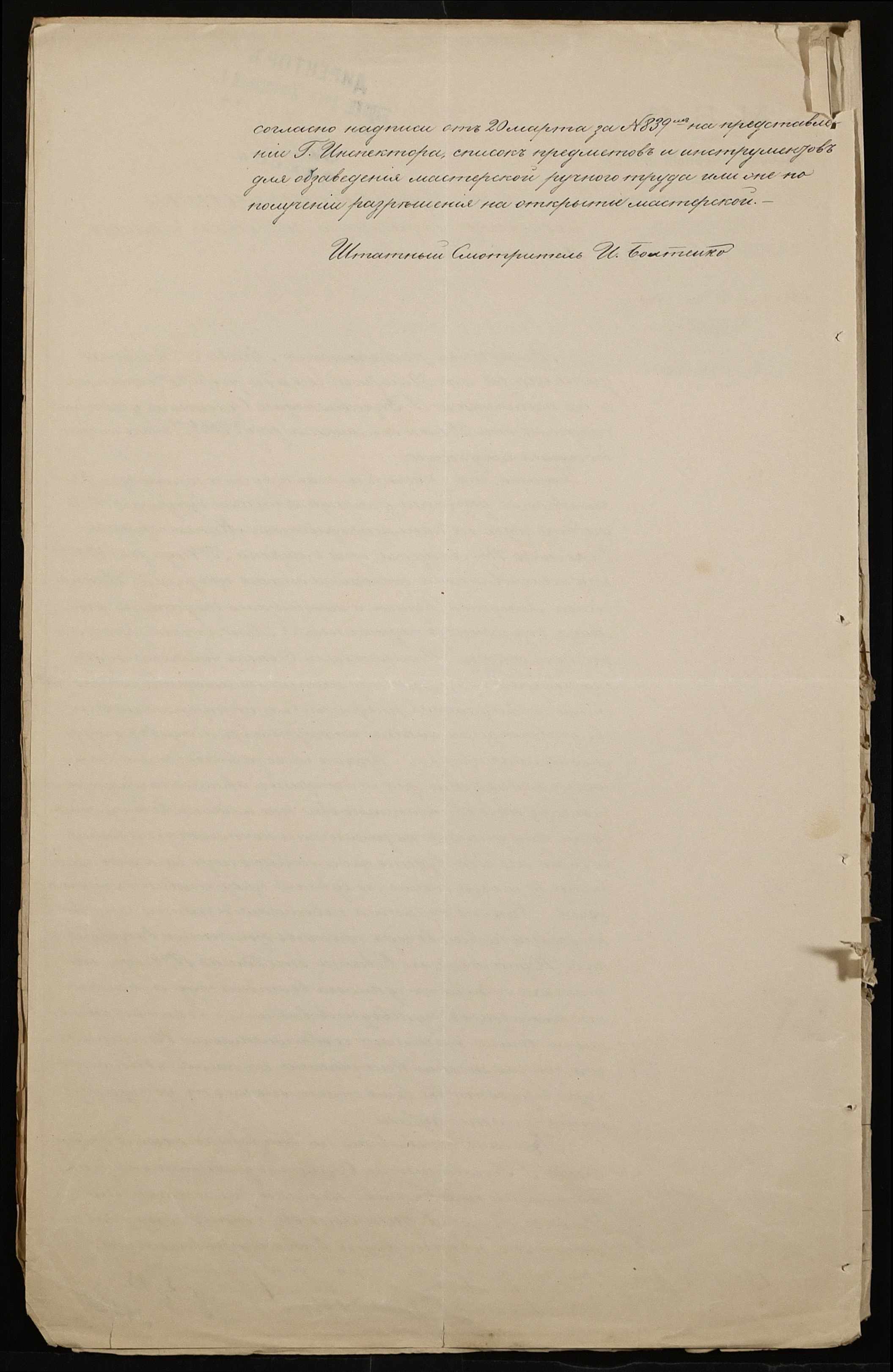 • • • • Справа № 282 “Листування про відкриття класу ручної праці в училищі і придбання інструментів, список станків і інструментів ручної праці, формулярні списки викладачів училища”