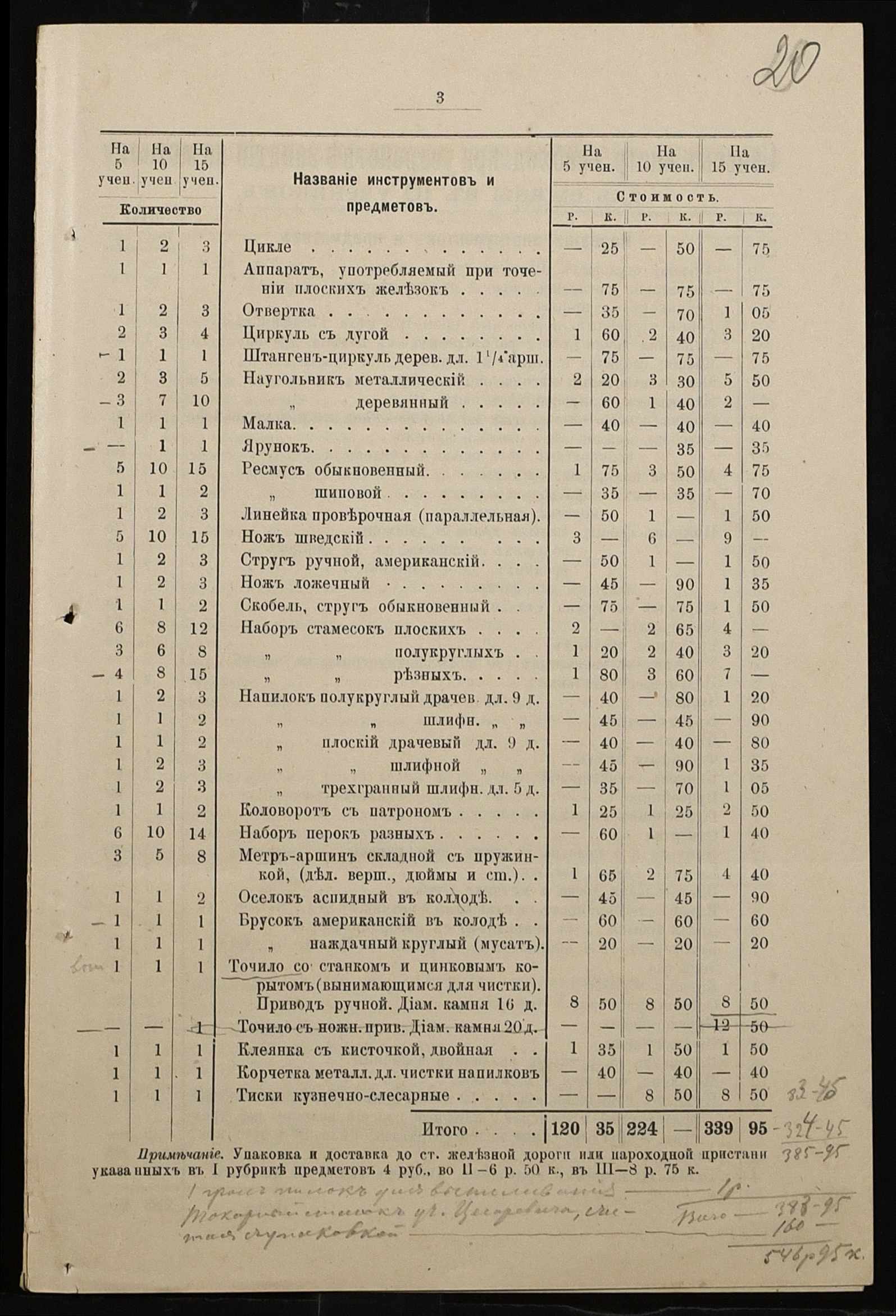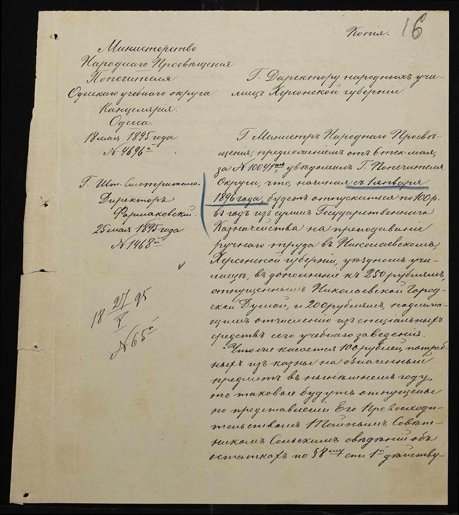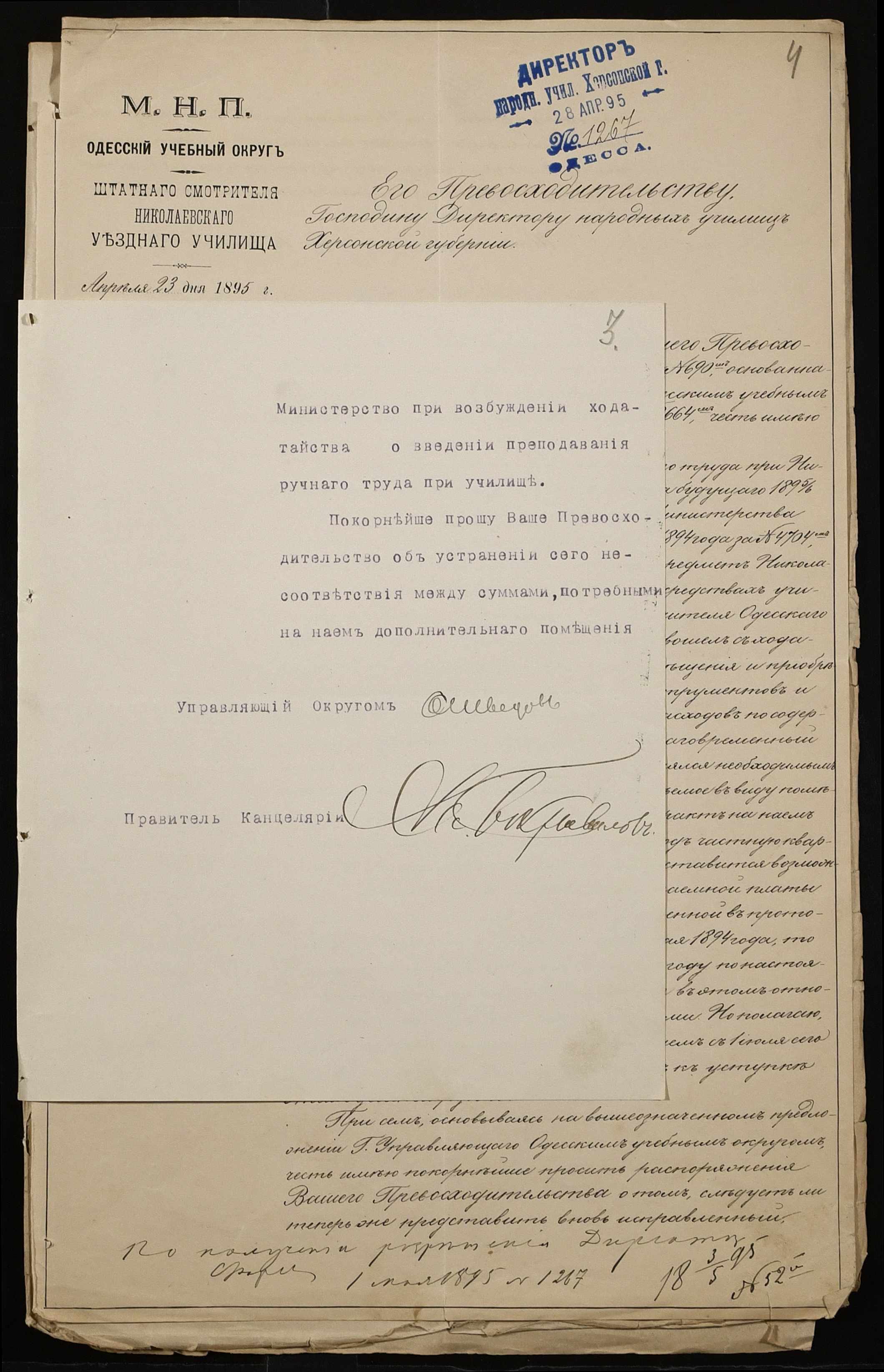 • • • • Справа № 282 “Листування про відкриття класу ручної праці в училищі і придбання інструментів, список станків і інструментів ручної праці, формулярні списки викладачів училища”