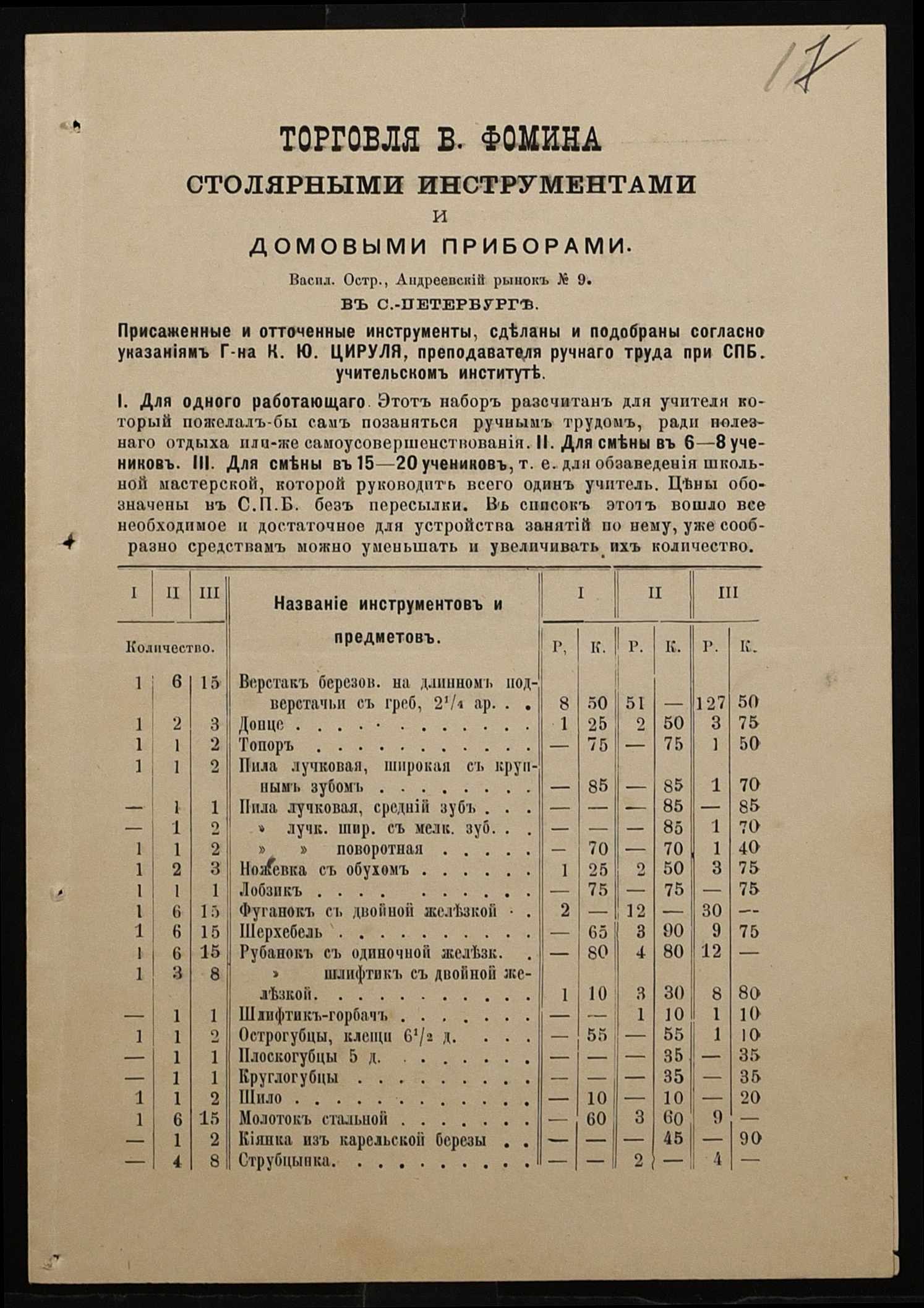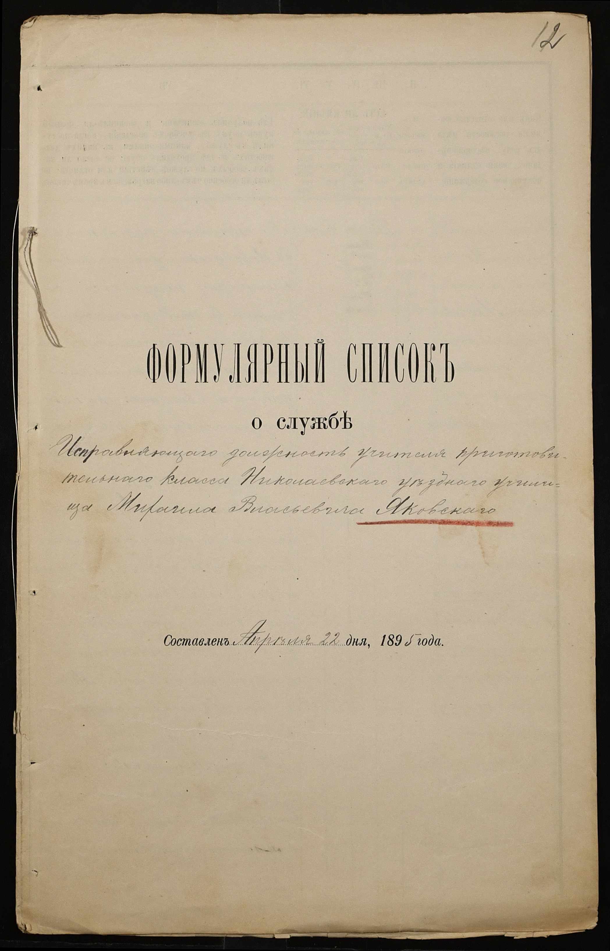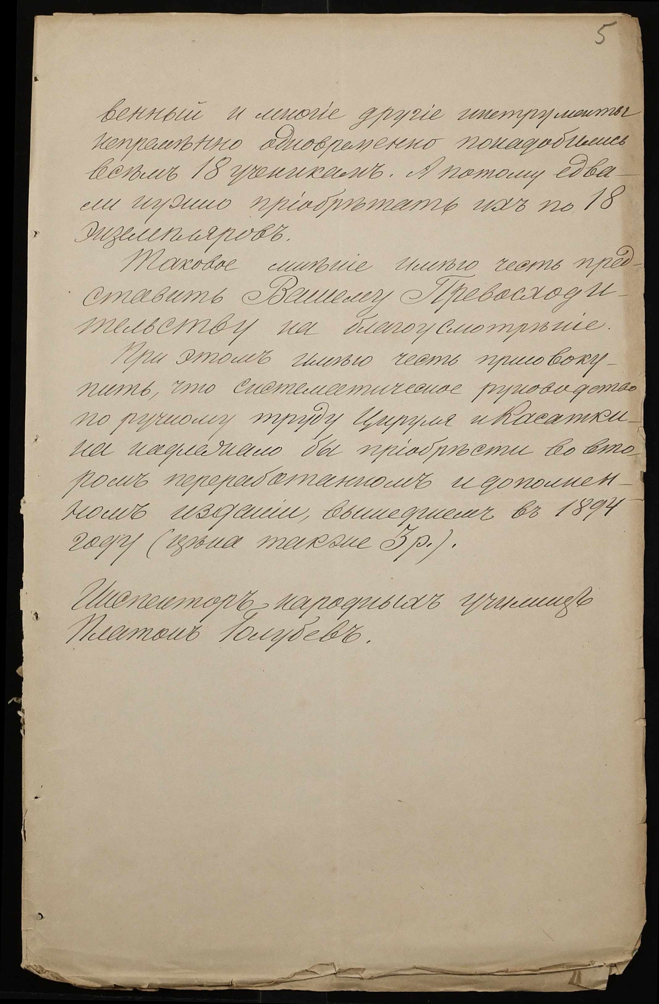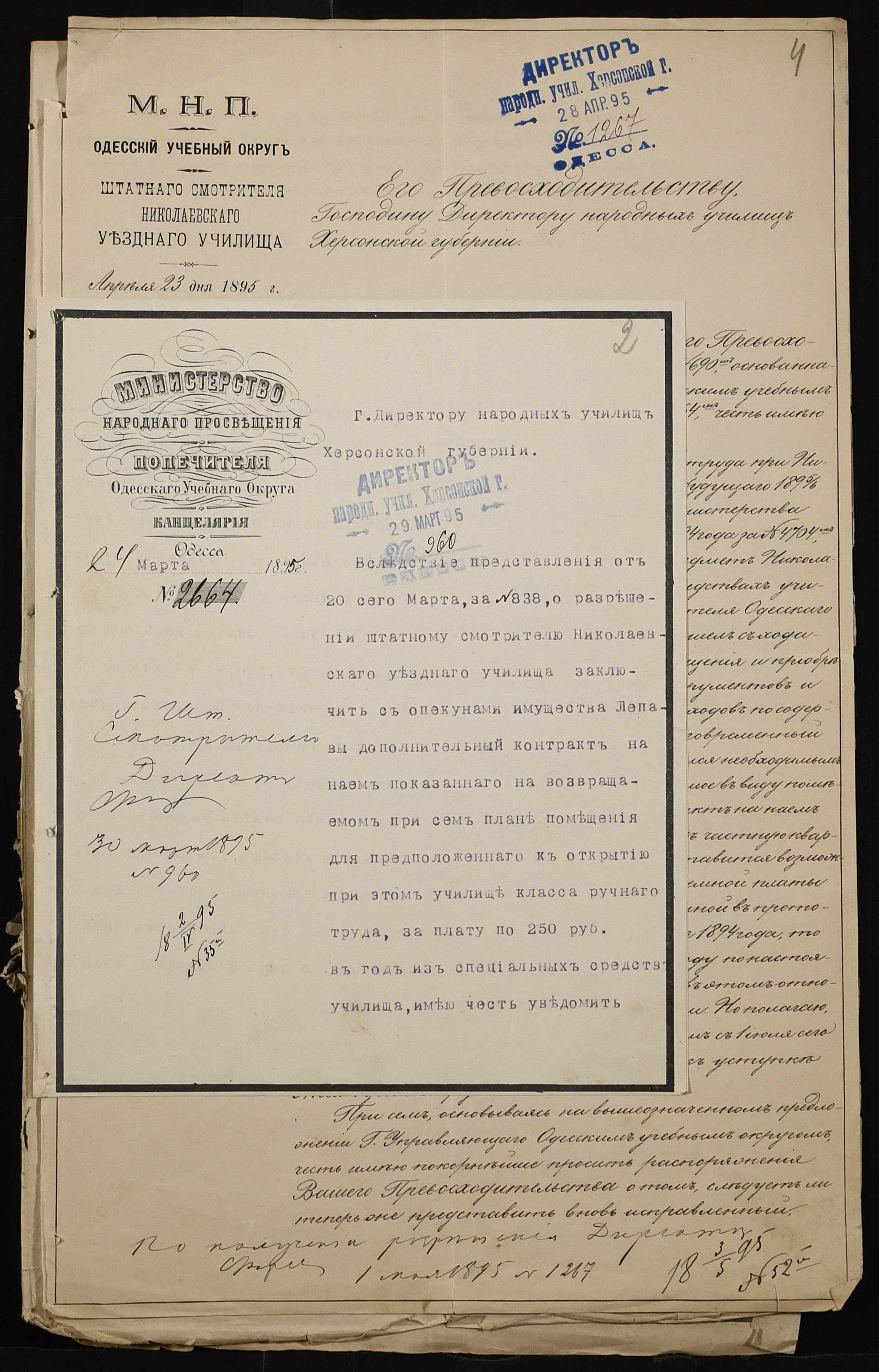 • • • • Справа № 282 “Листування про відкриття класу ручної праці в училищі і придбання інструментів, список станків і інструментів ручної праці, формулярні списки викладачів училища”