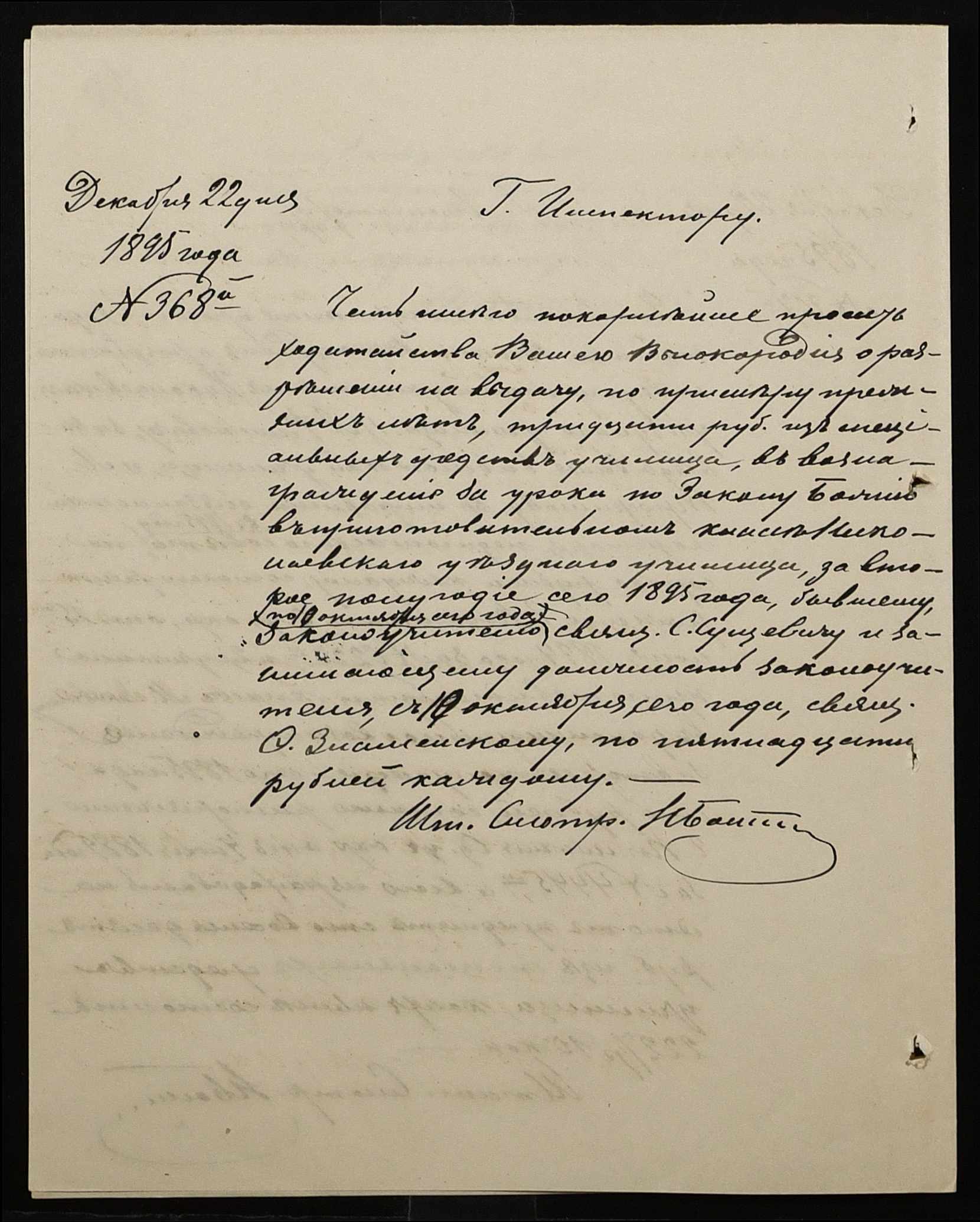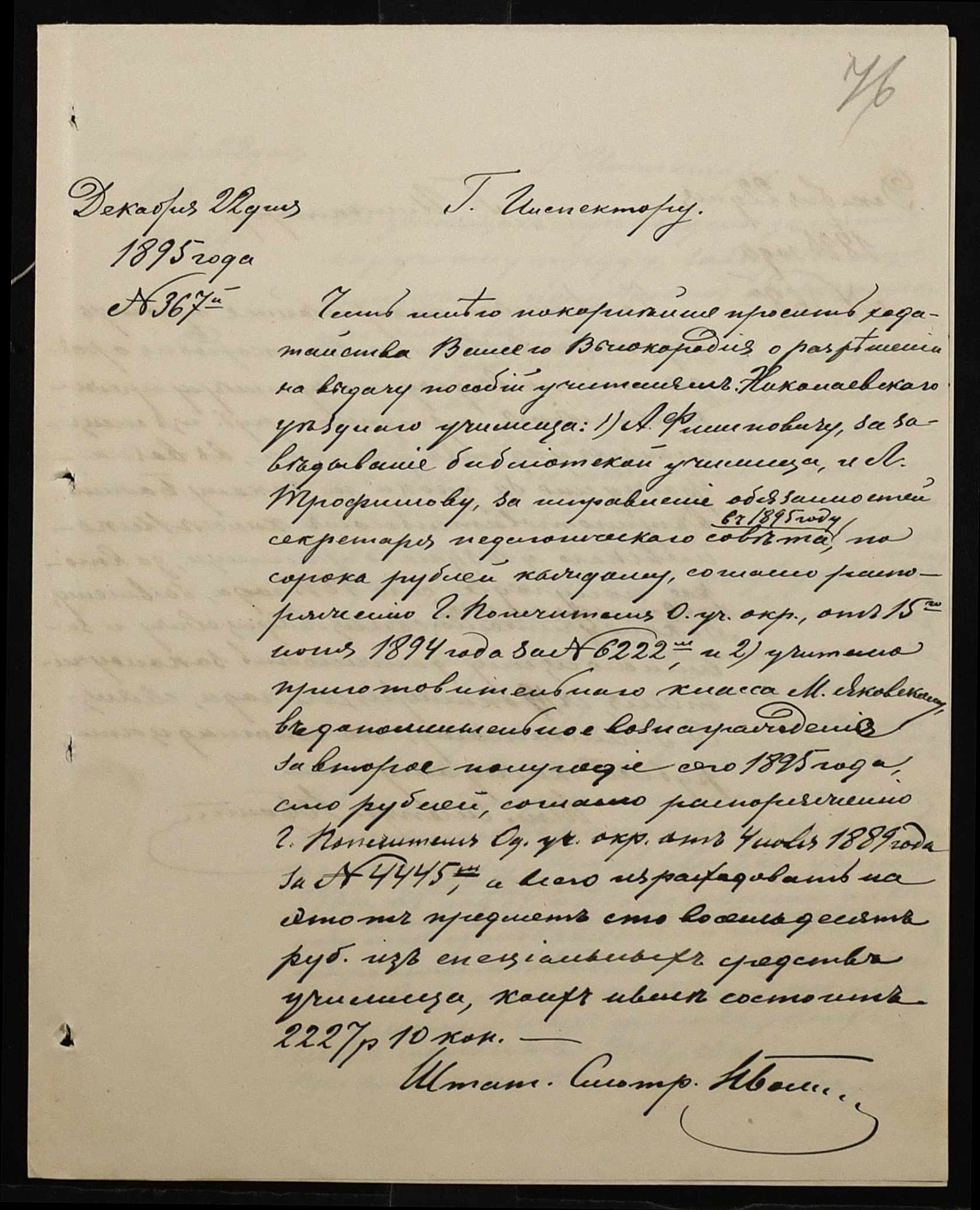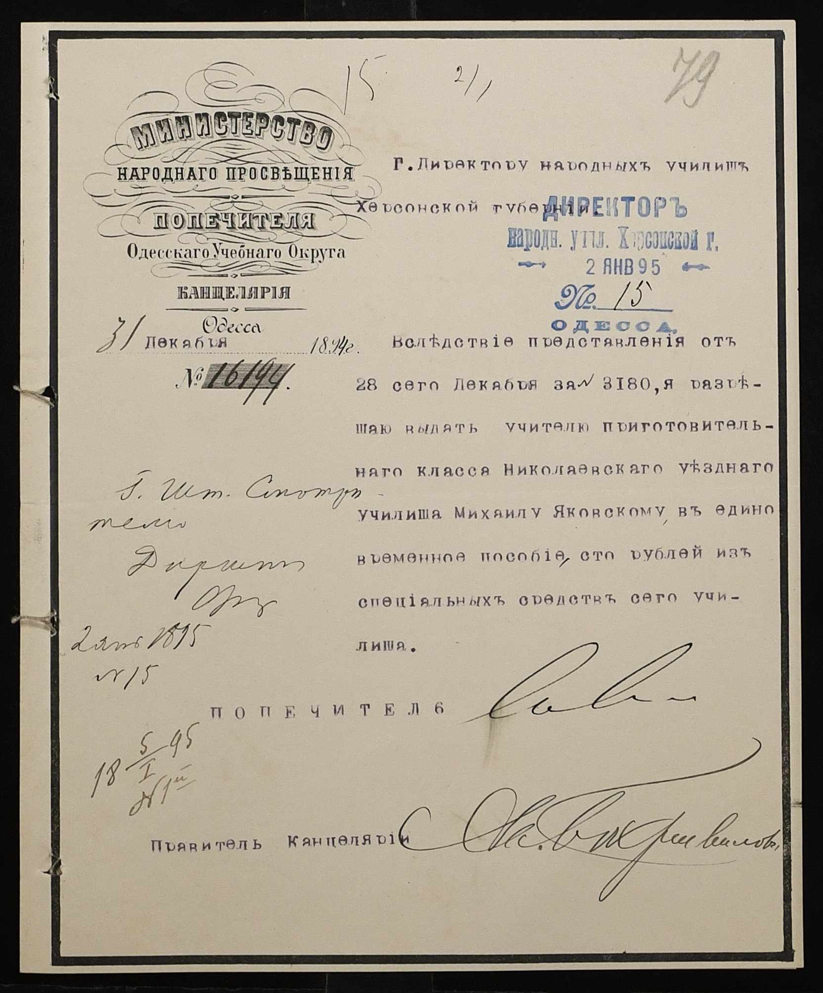 • • • • Справа № 286 “Листування з піклувальником Одеського навчального округу з фінансових питань”