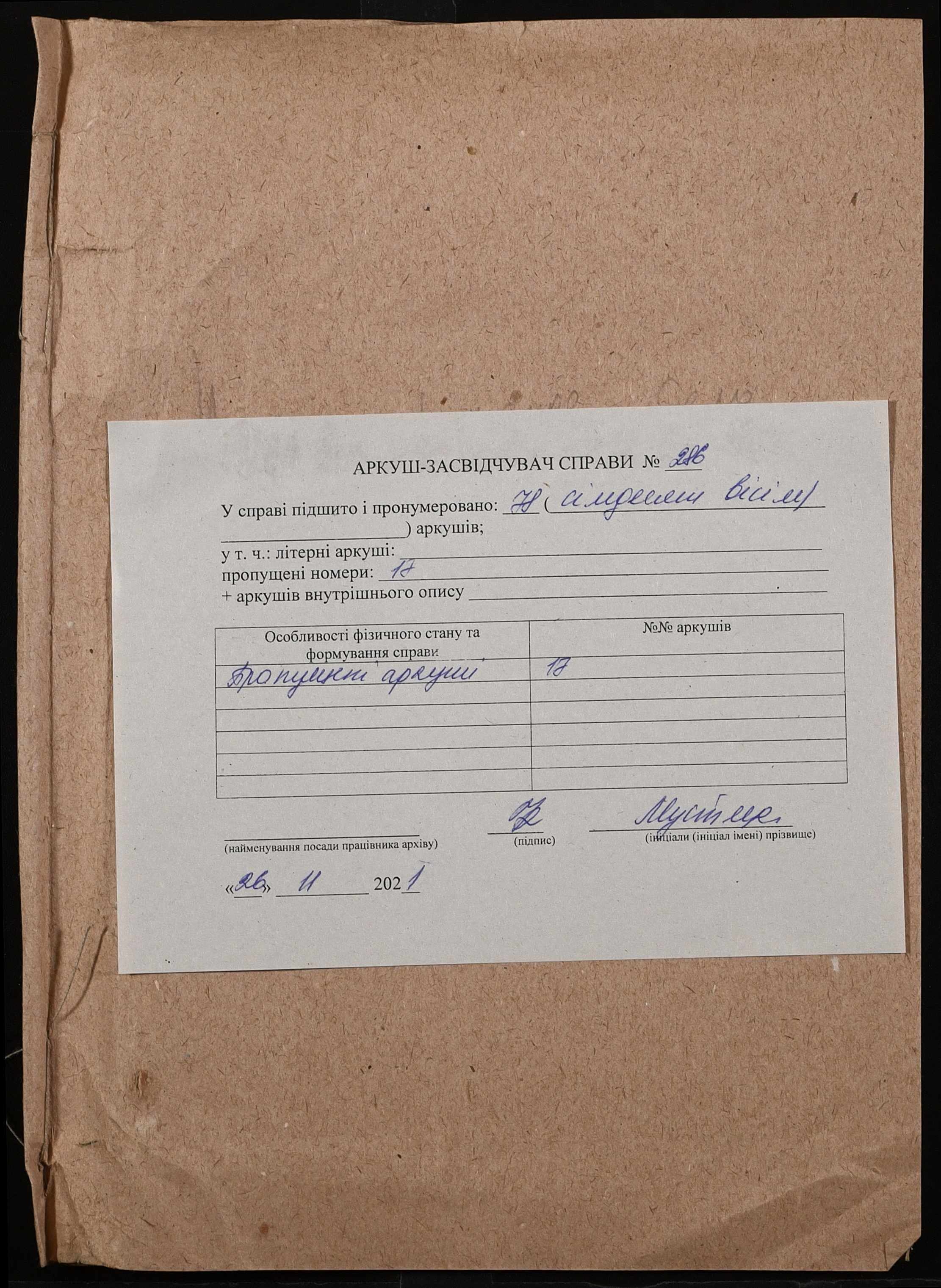 ◦ ◦ ◦ Опис № 1 справ постійного зберігання за 1847-1852, 1858, 1868-1869, 1871-1919, 1922 роки