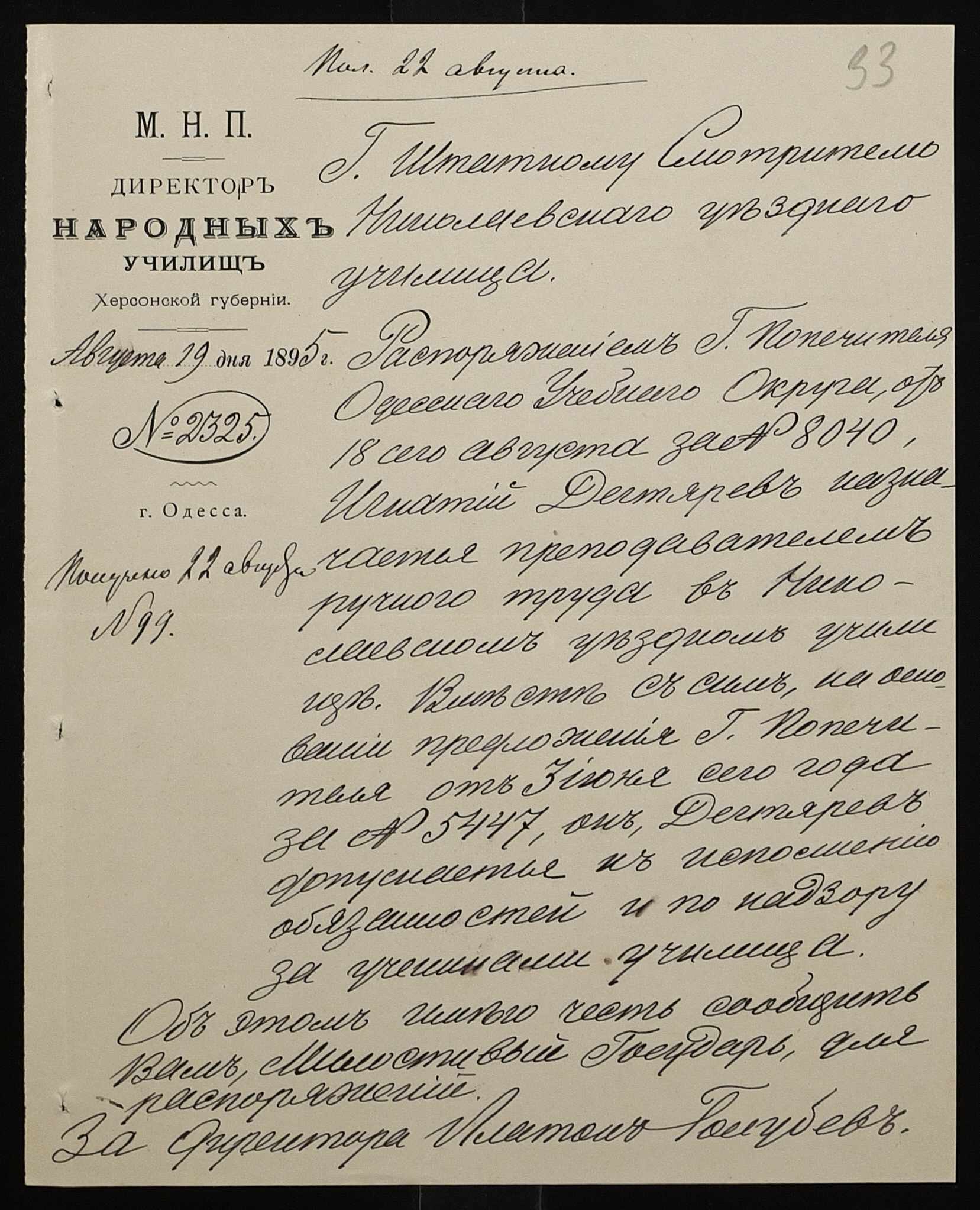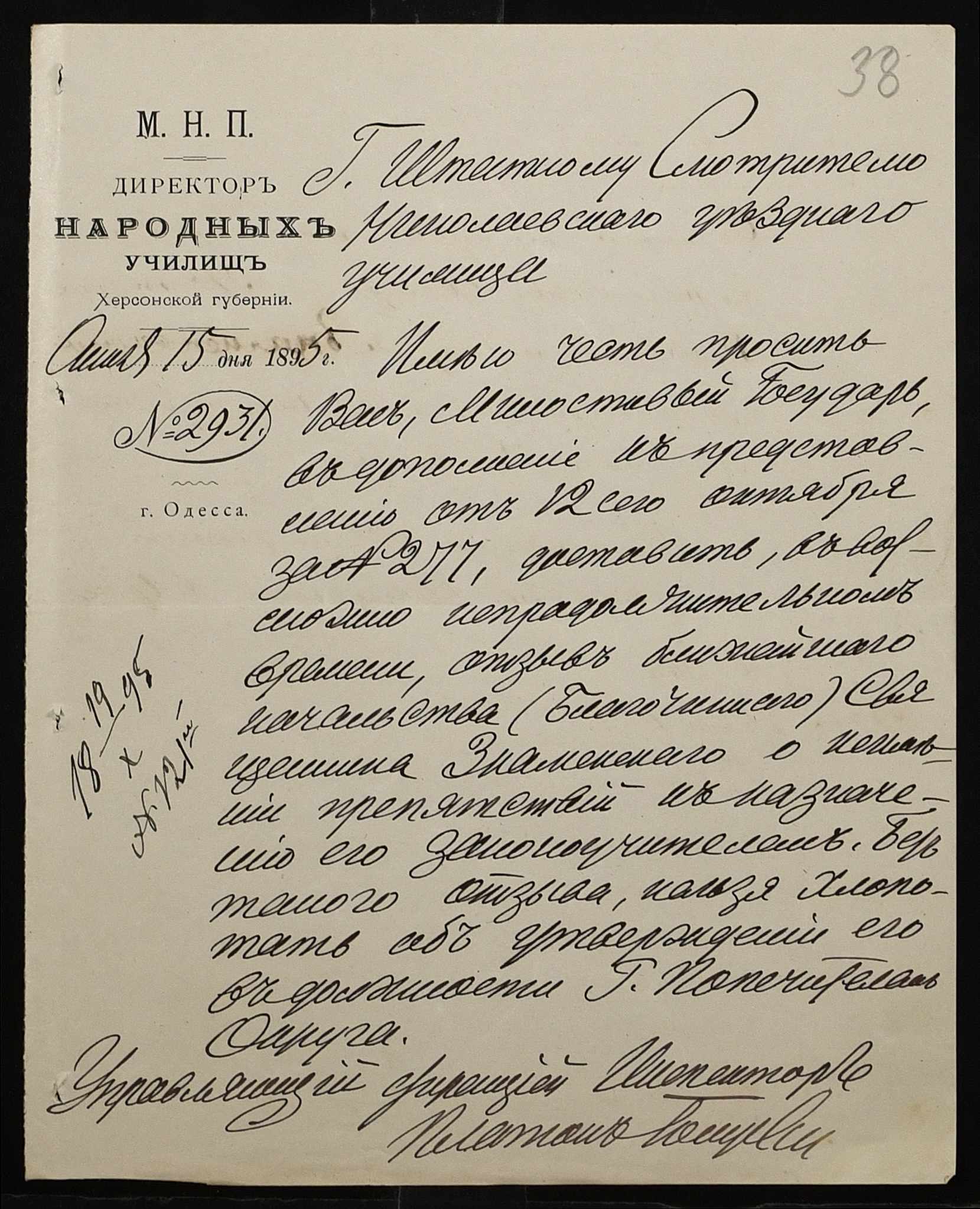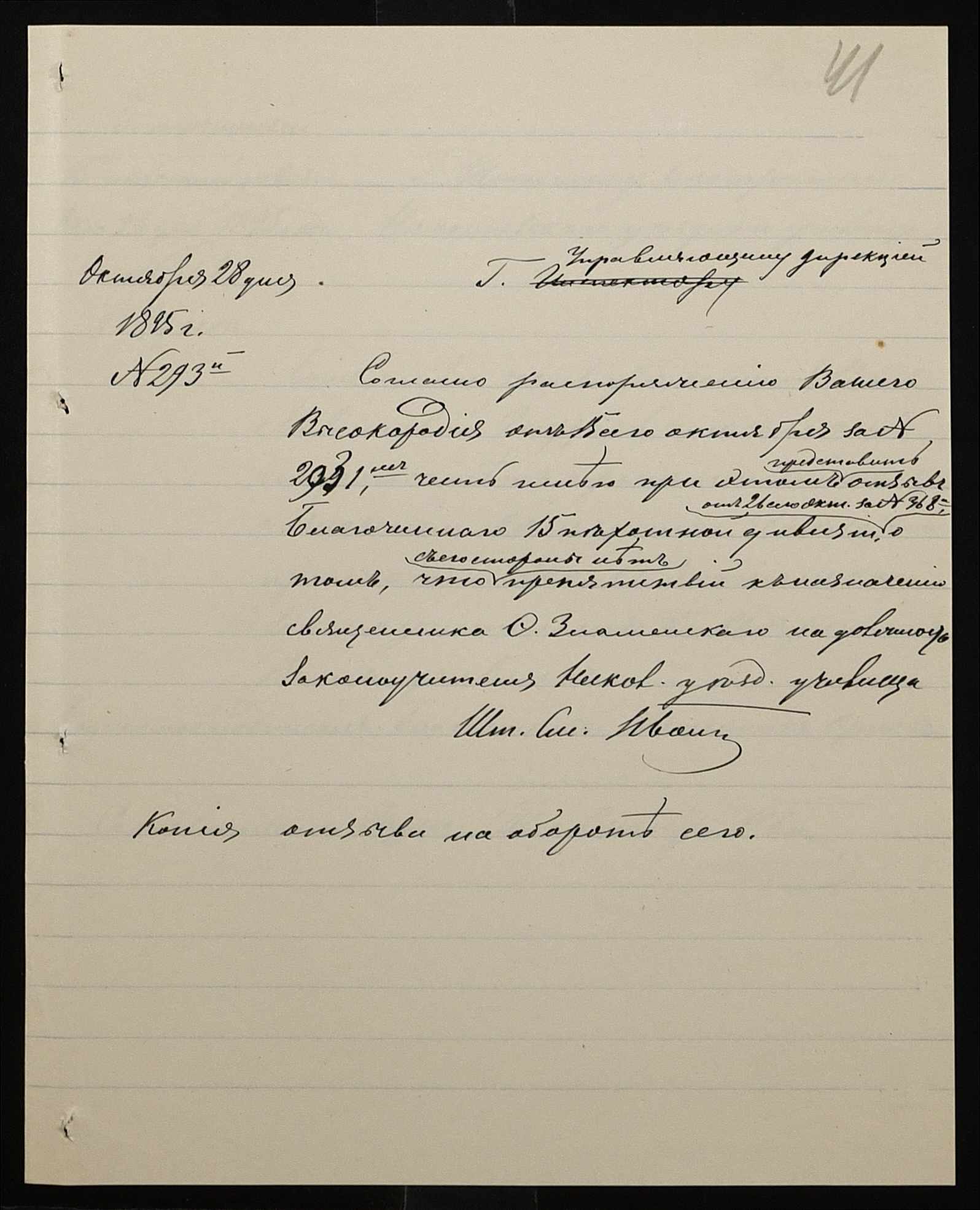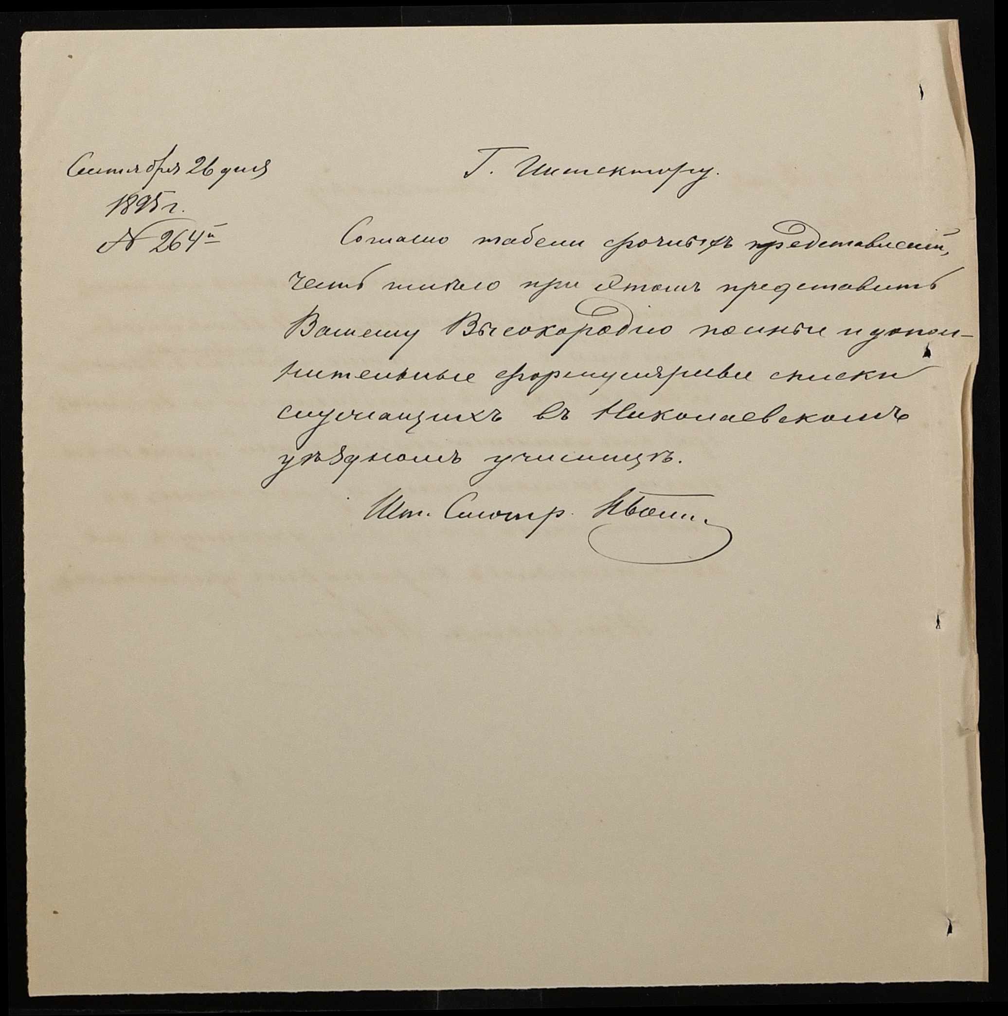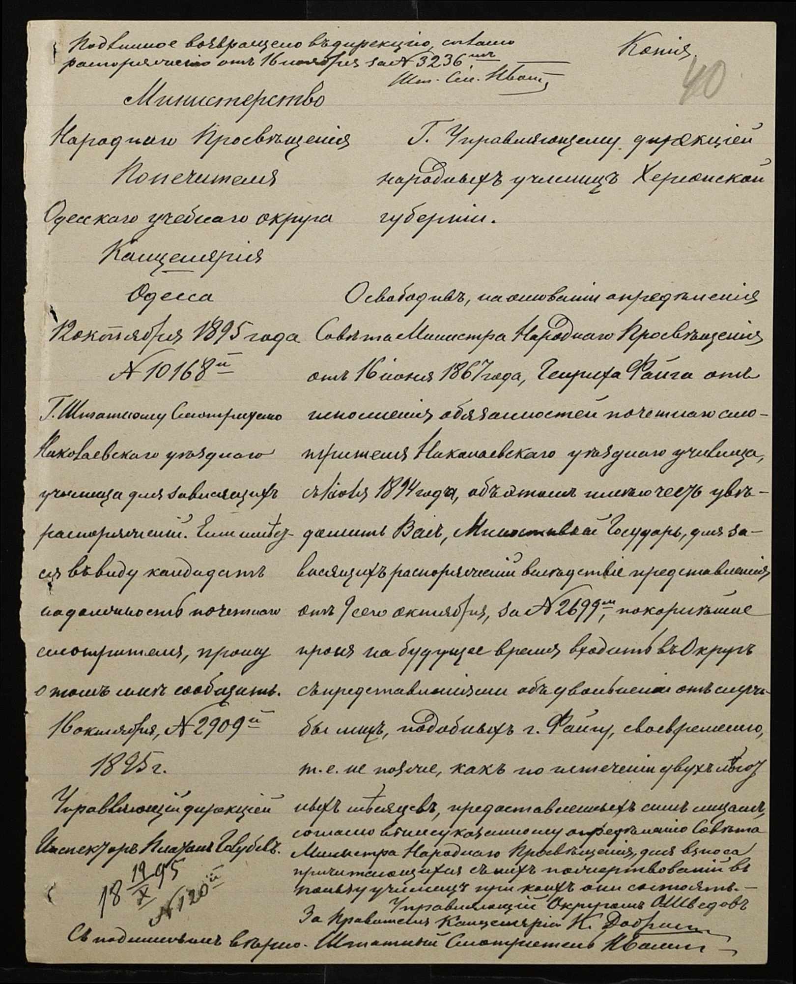• • • • Справа № 287 “Переписка про проходження служби чиновниками училища”