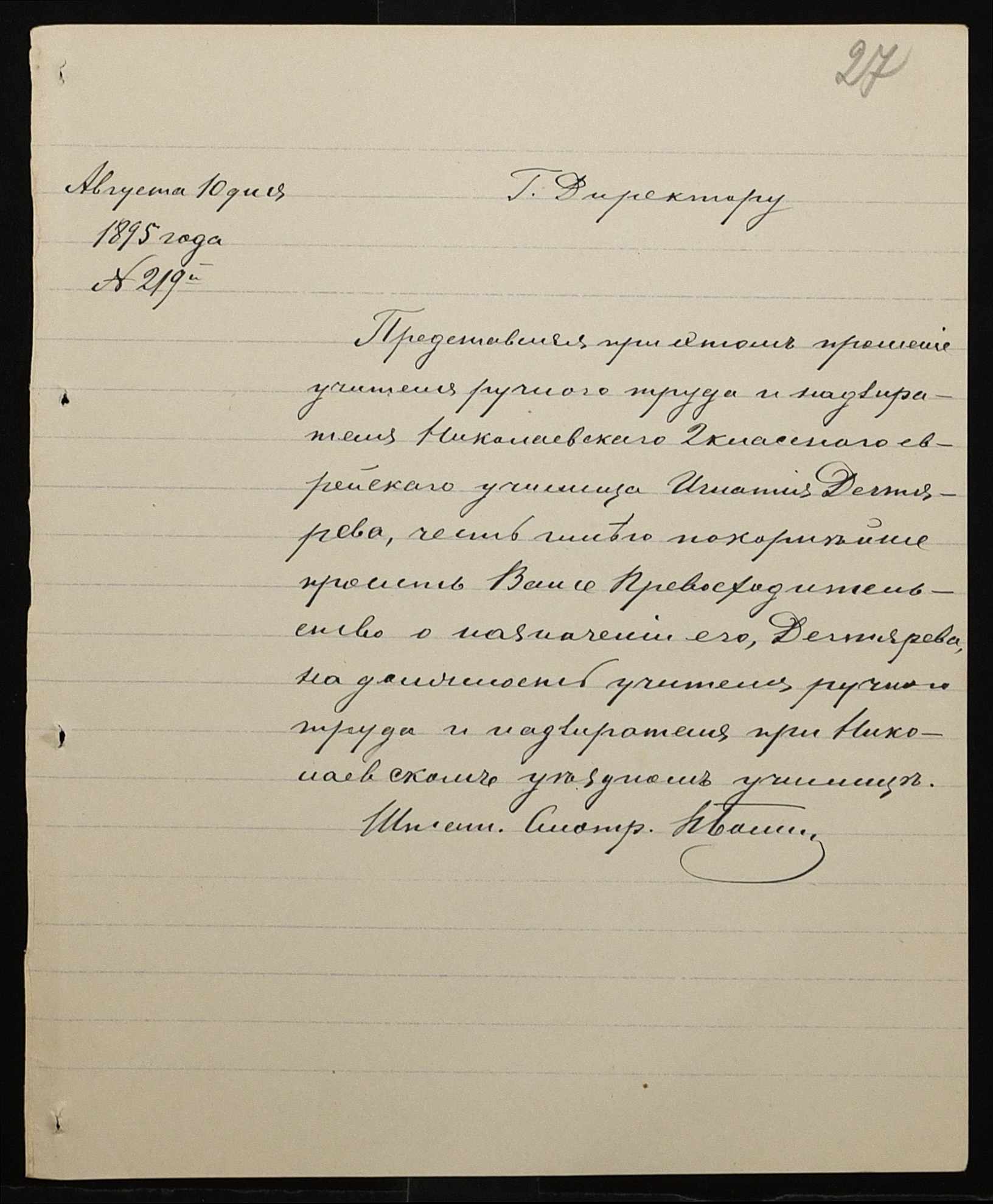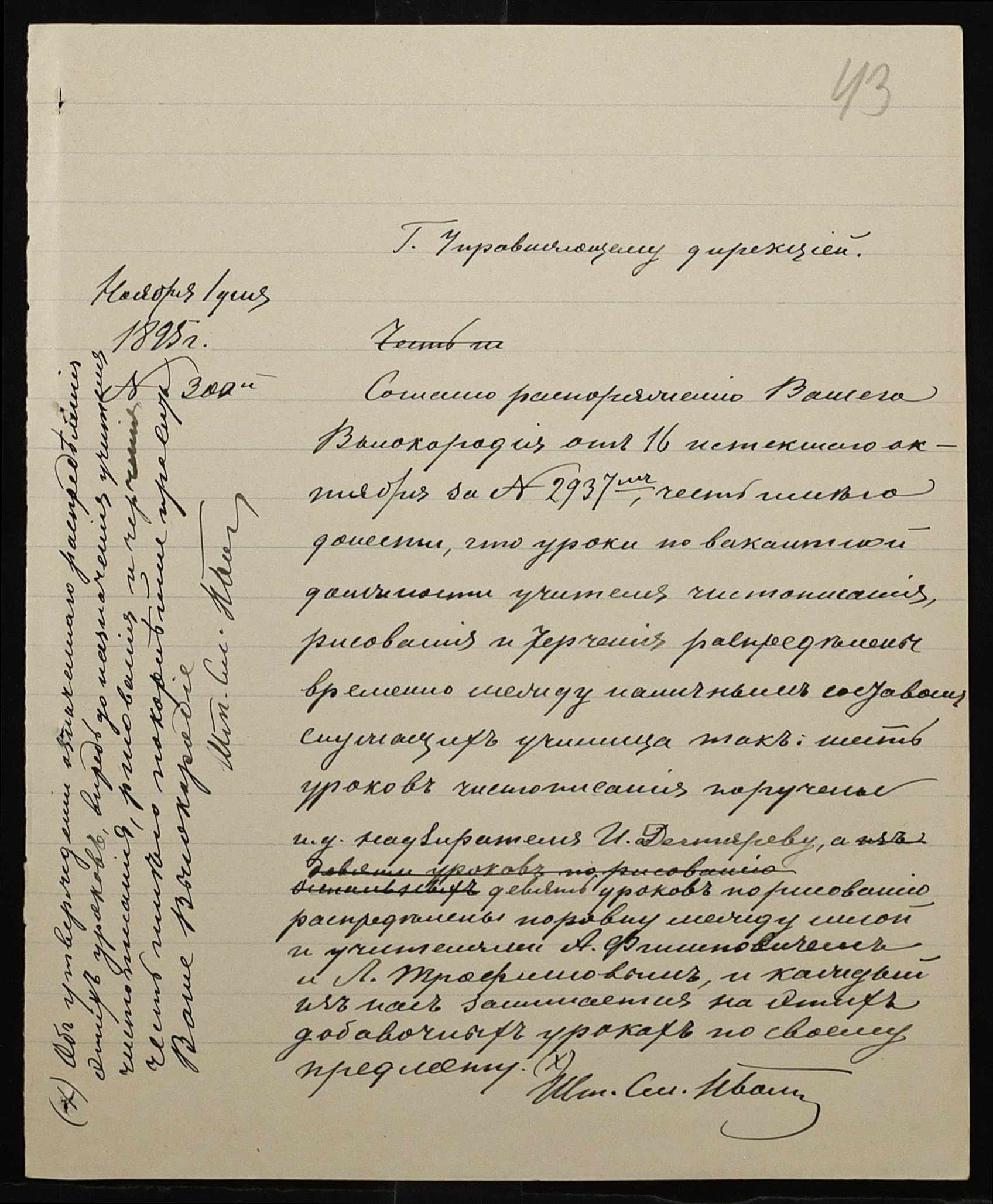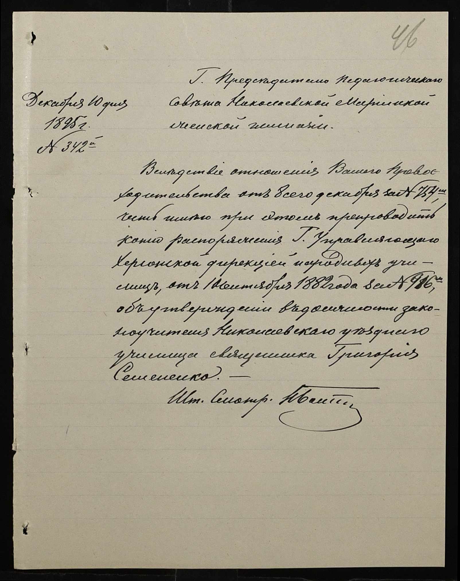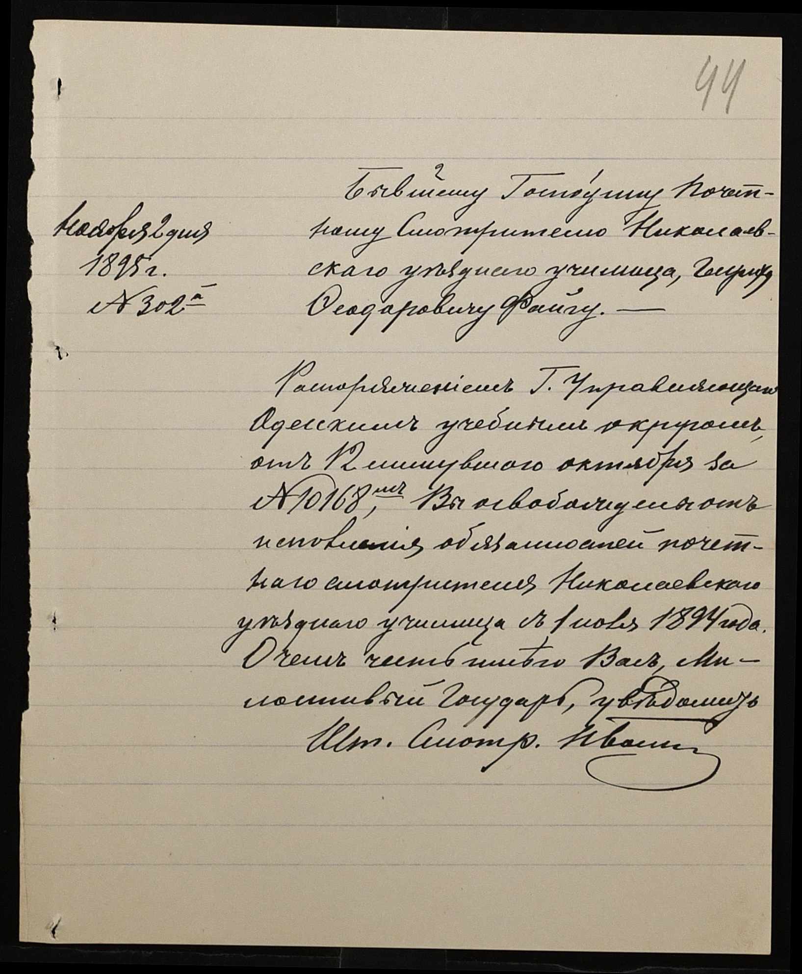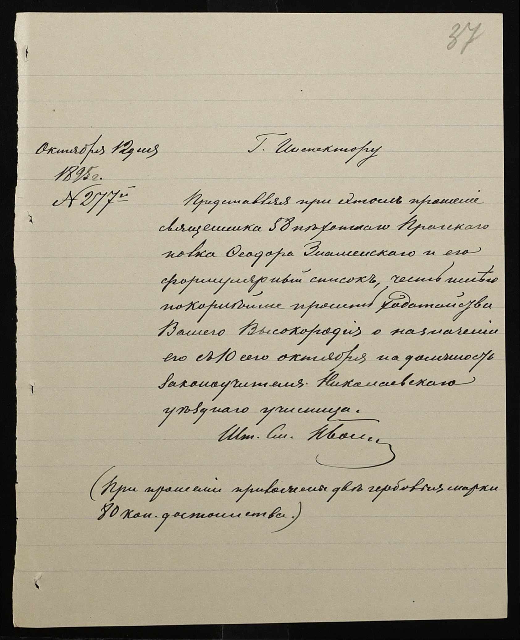 • • • • Справа № 287 “Переписка про проходження служби чиновниками училища”