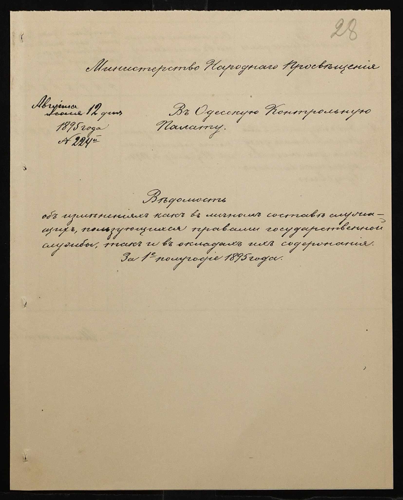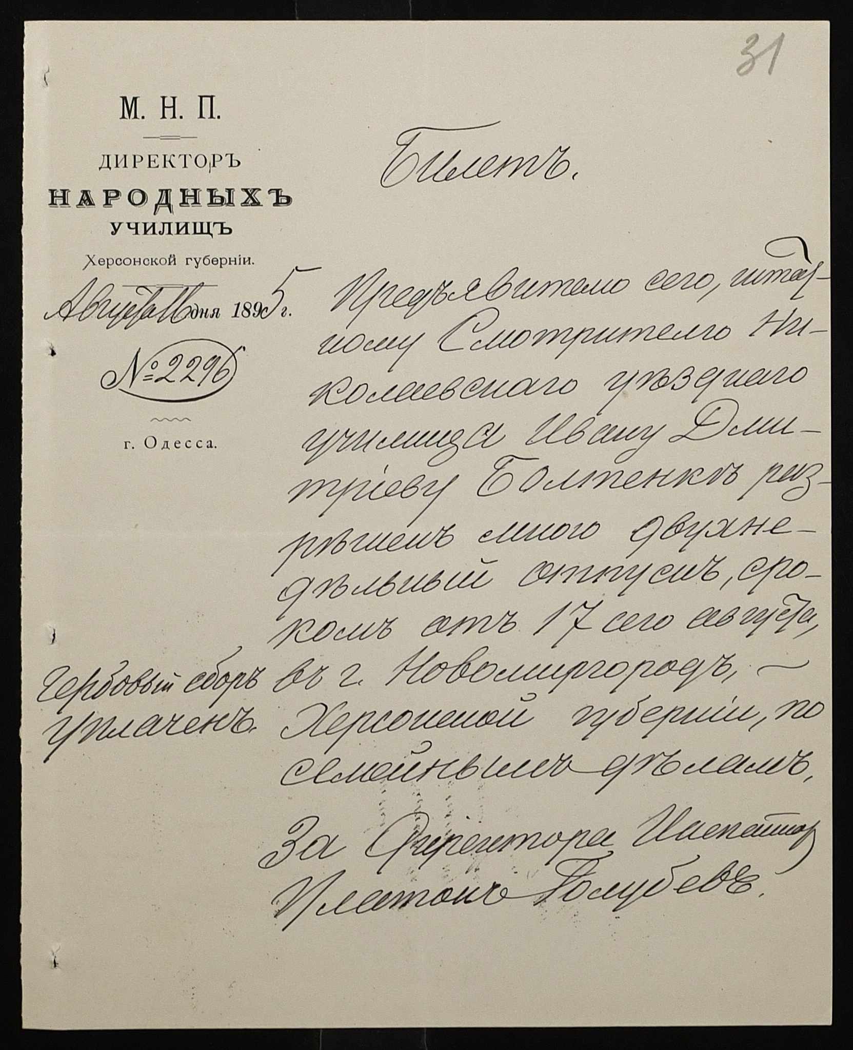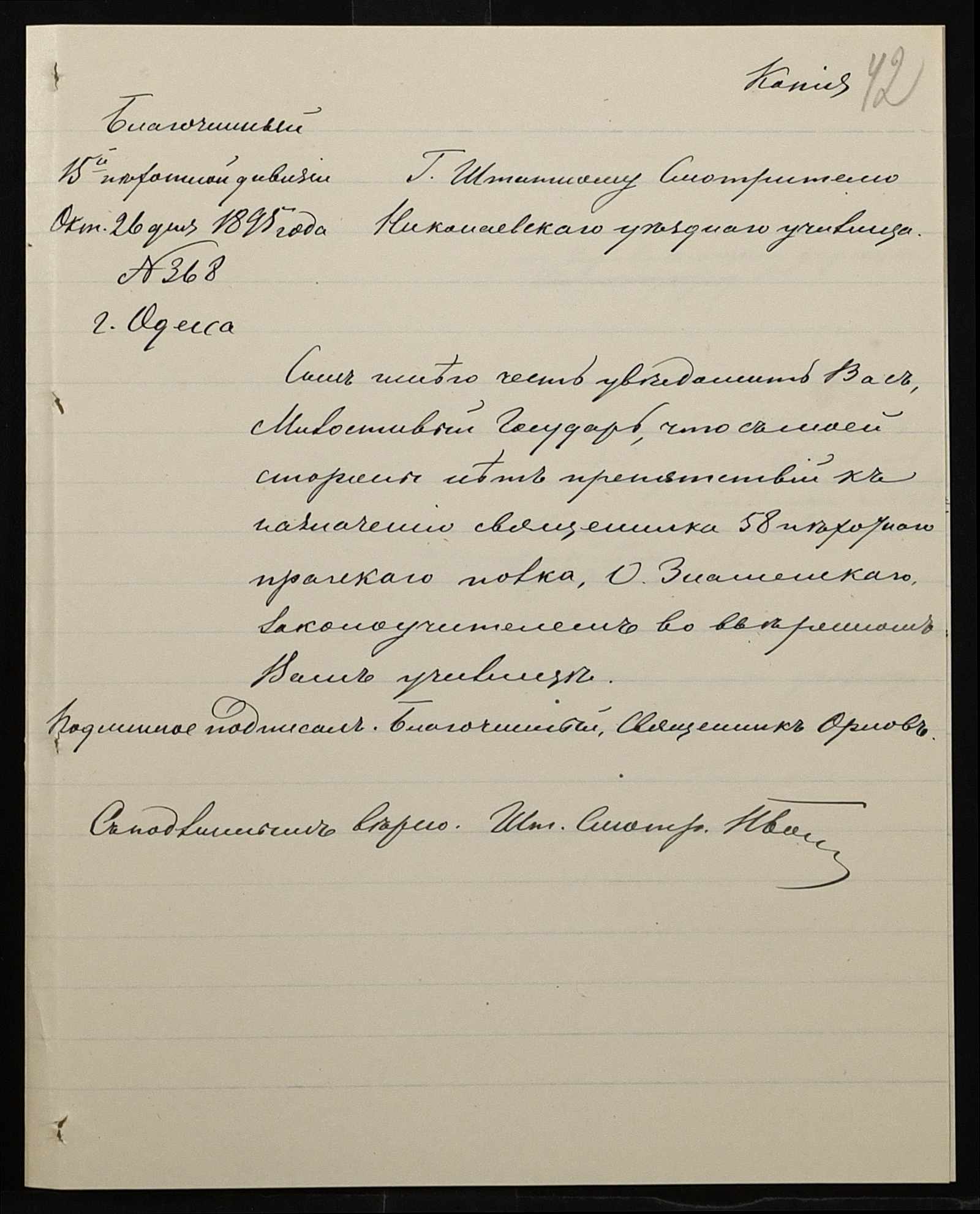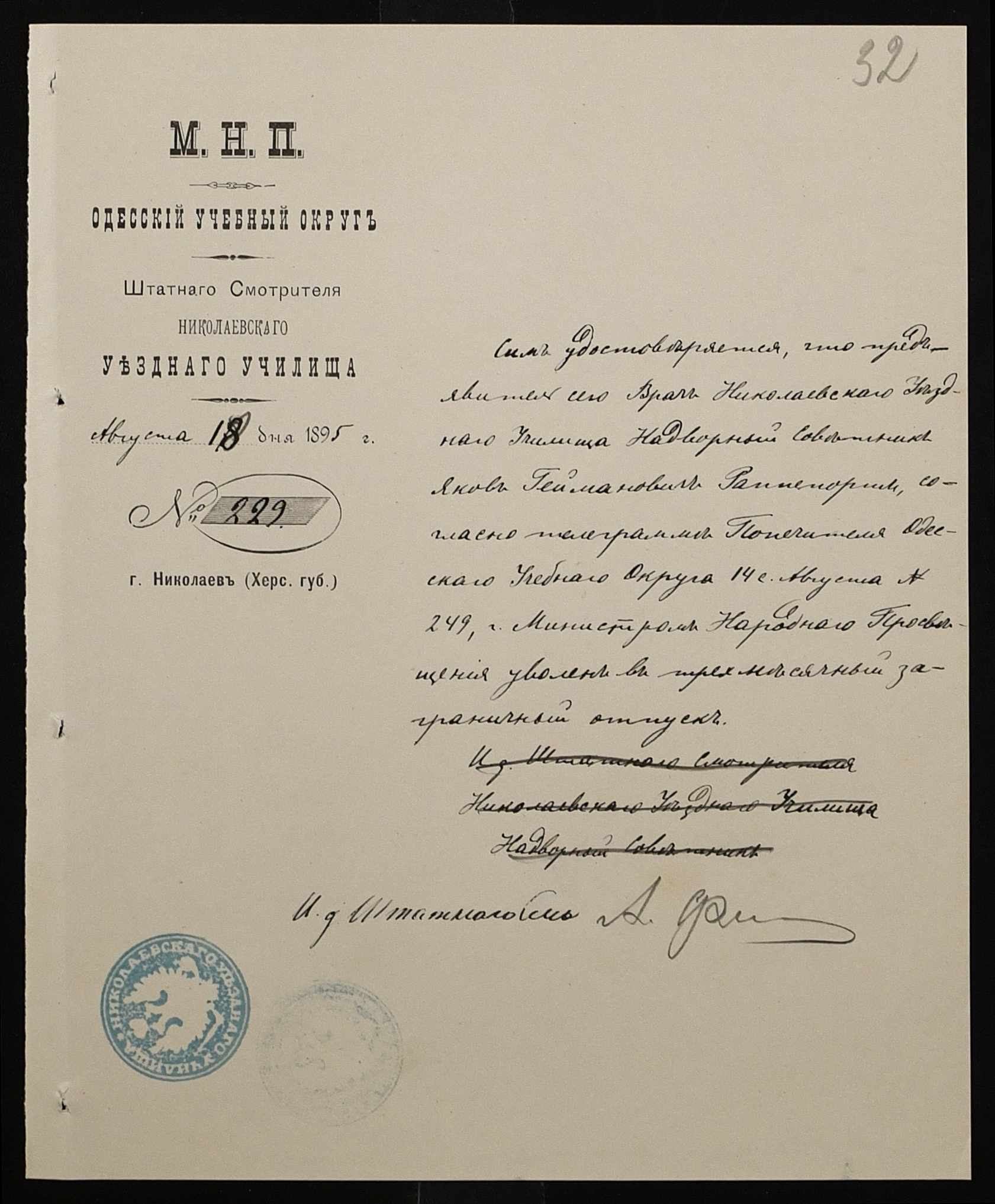 • • • • Справа № 287 “Переписка про проходження служби чиновниками училища”