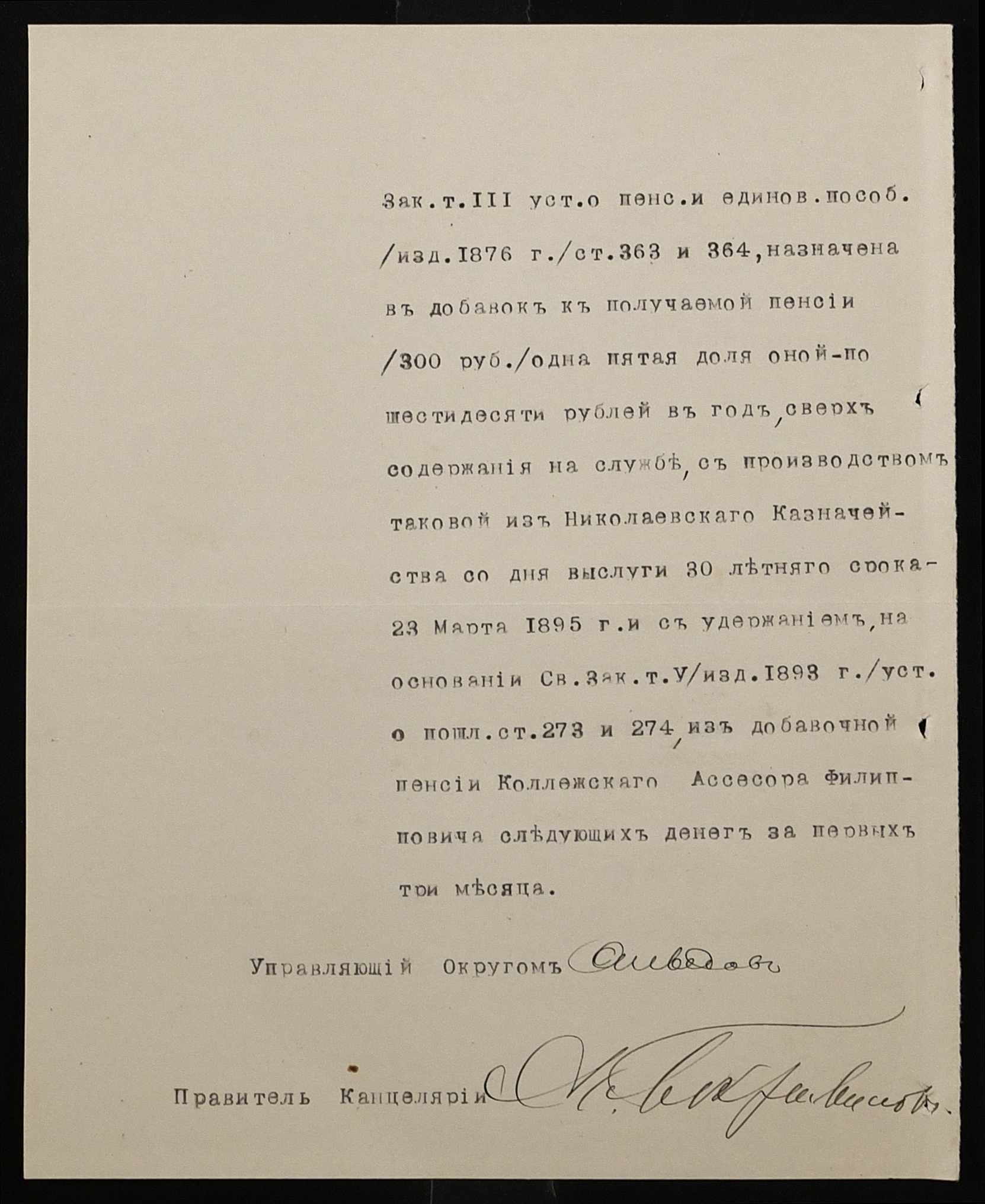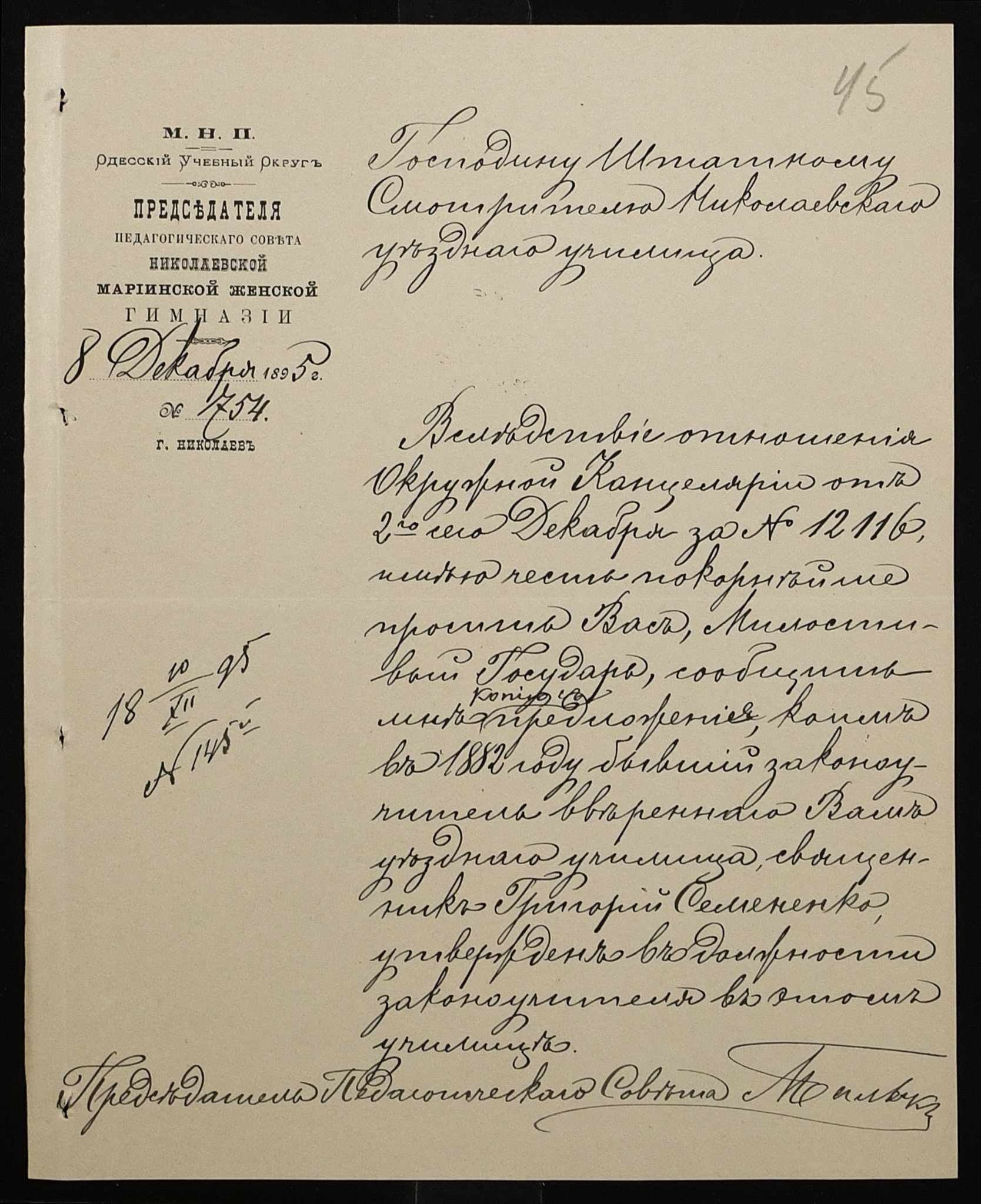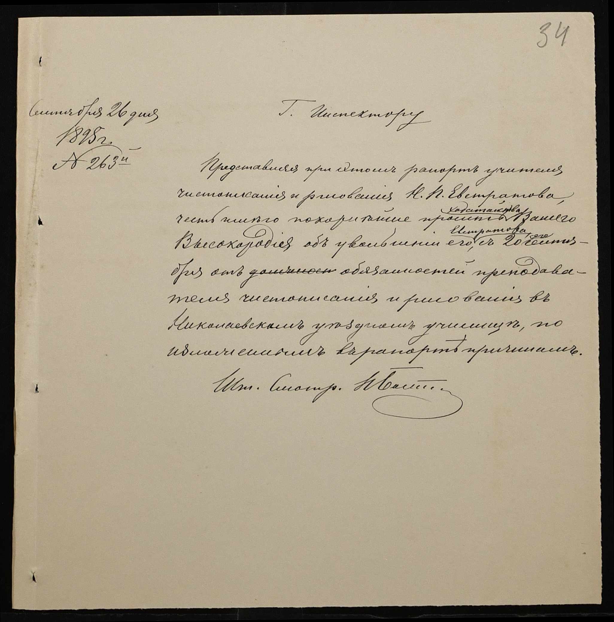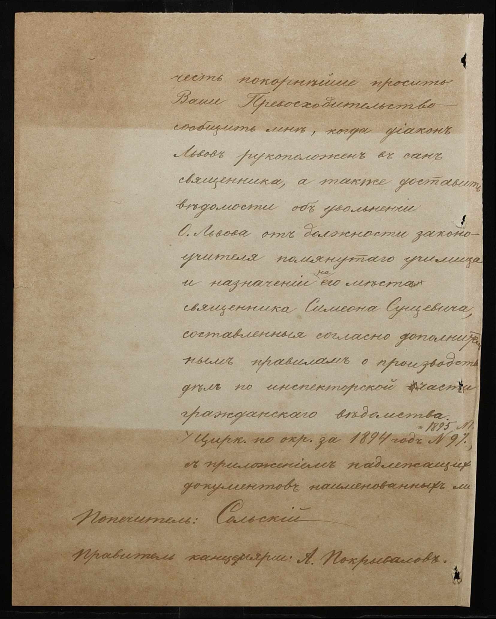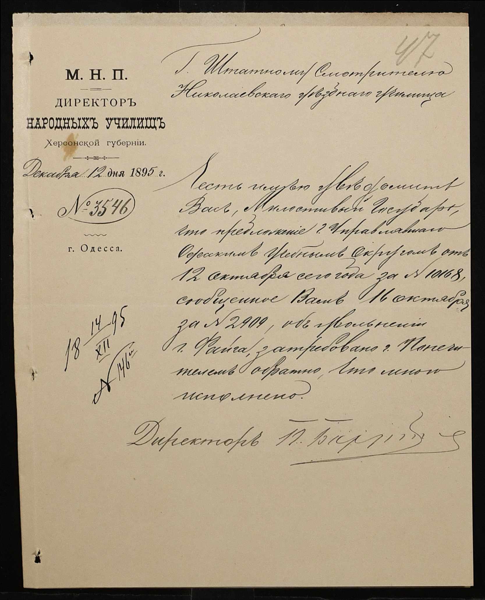 • • • • Справа № 287 “Переписка про проходження служби чиновниками училища”