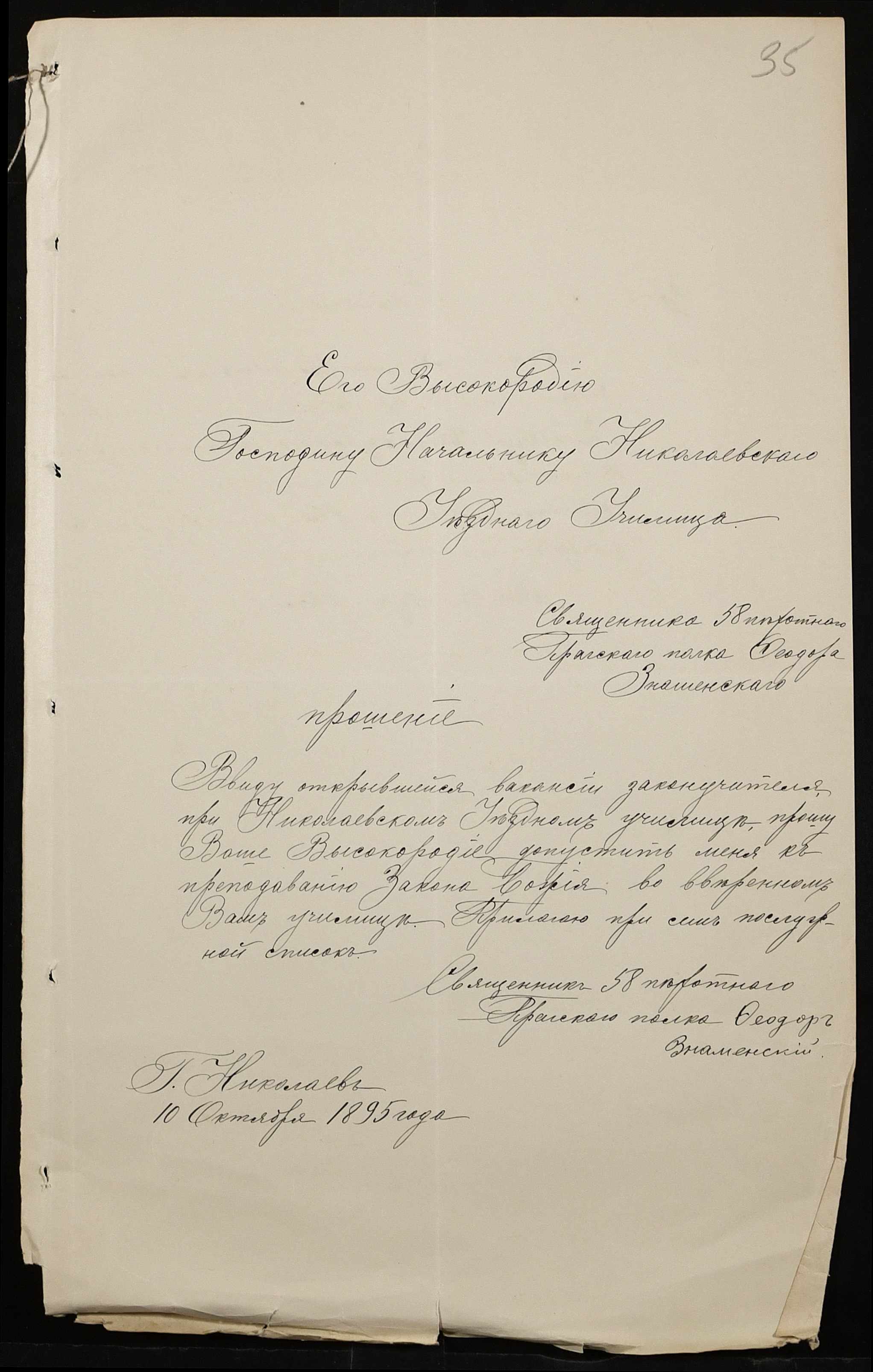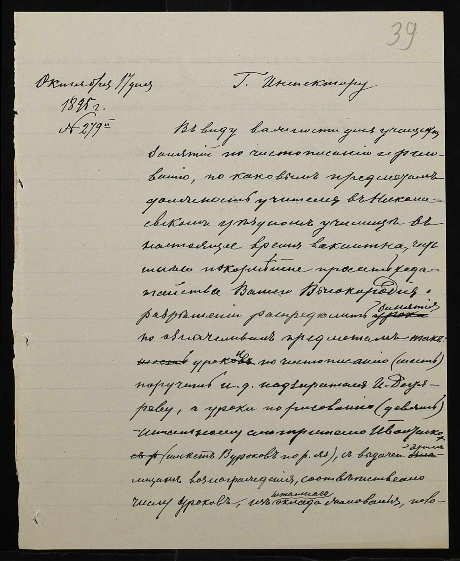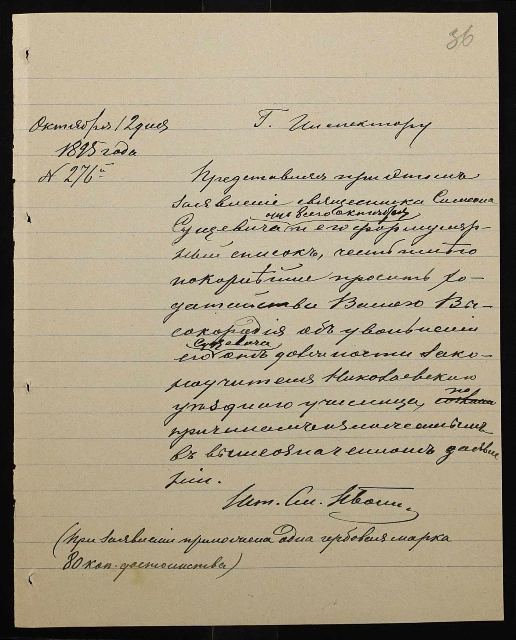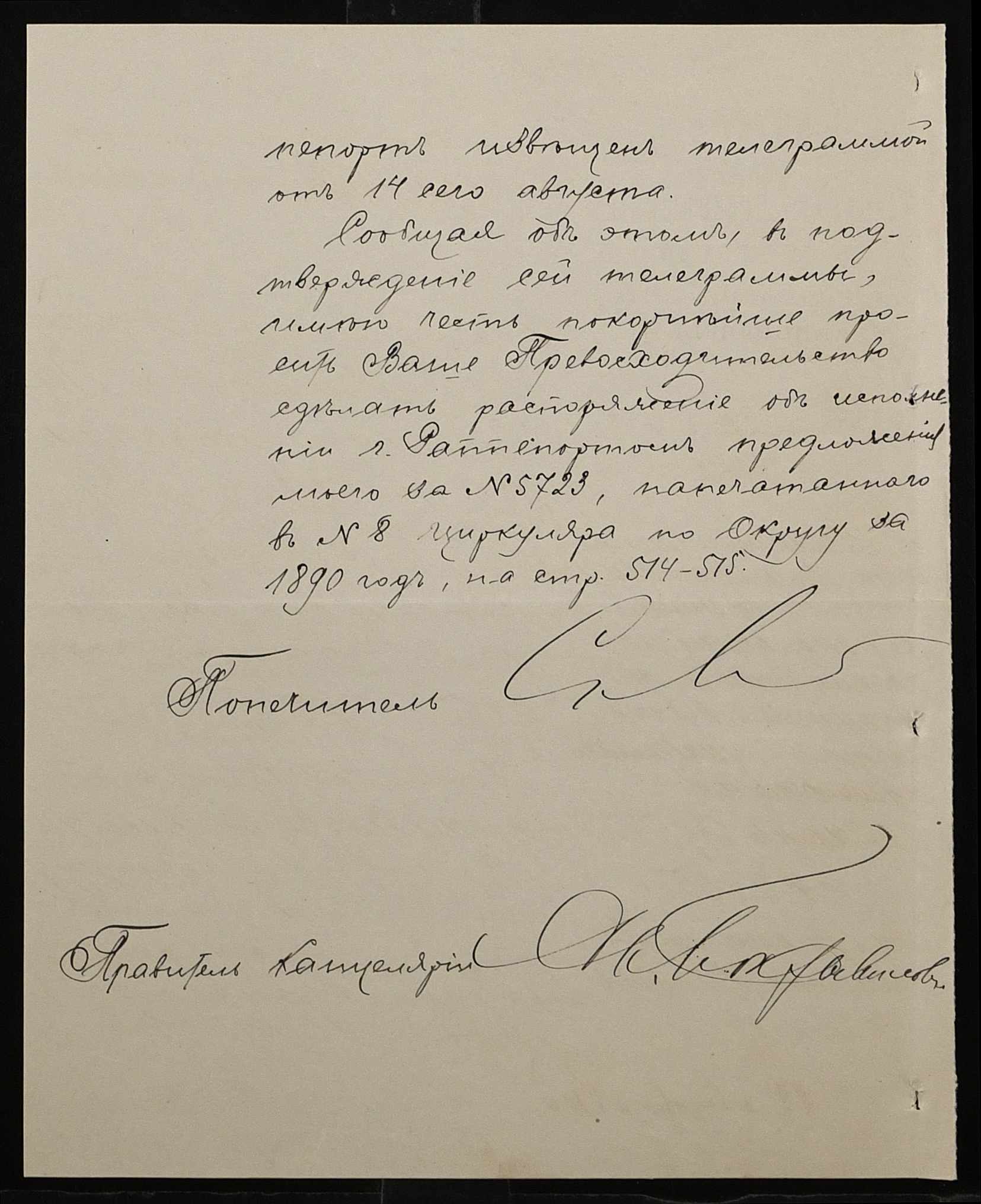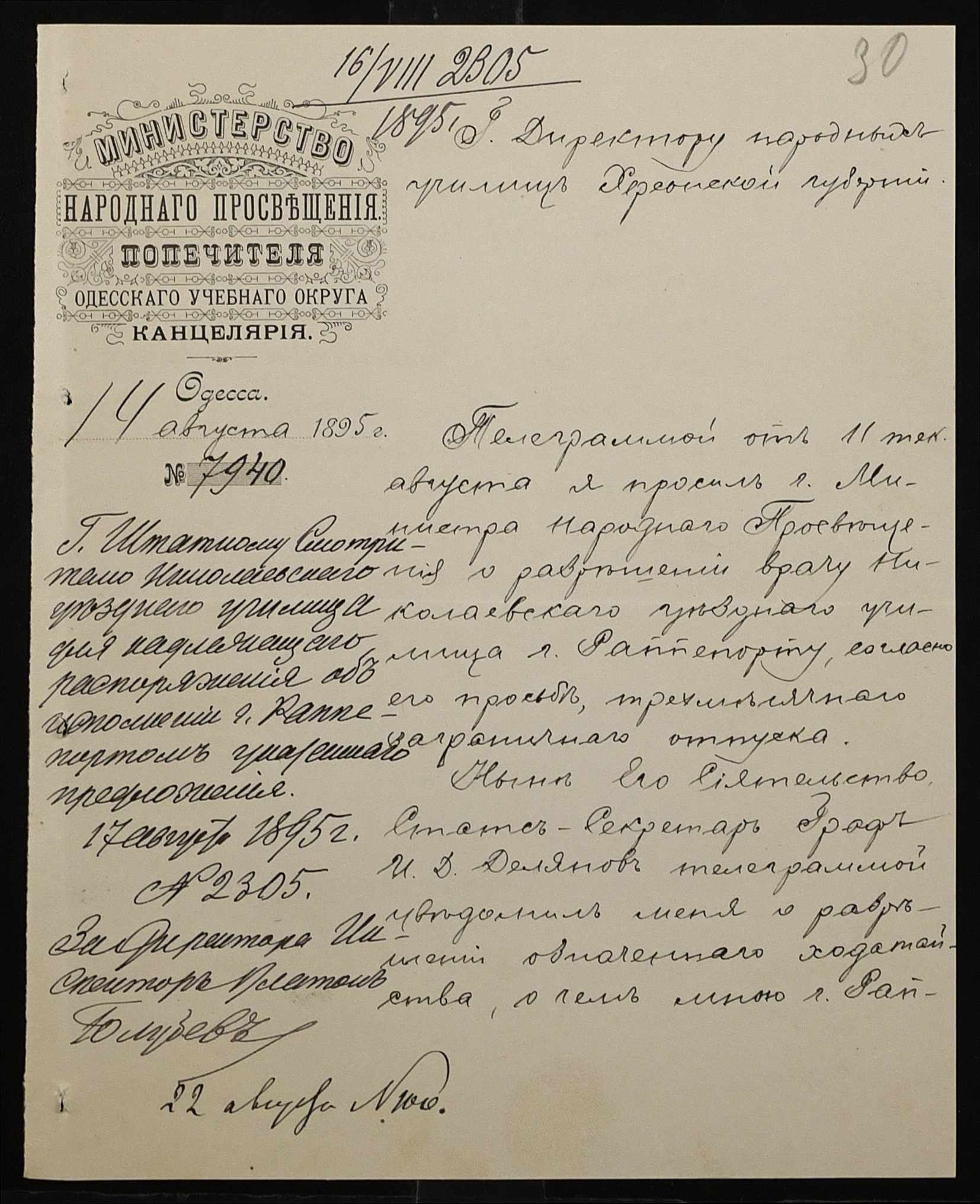 • • • • Справа № 287 “Переписка про проходження служби чиновниками училища”
