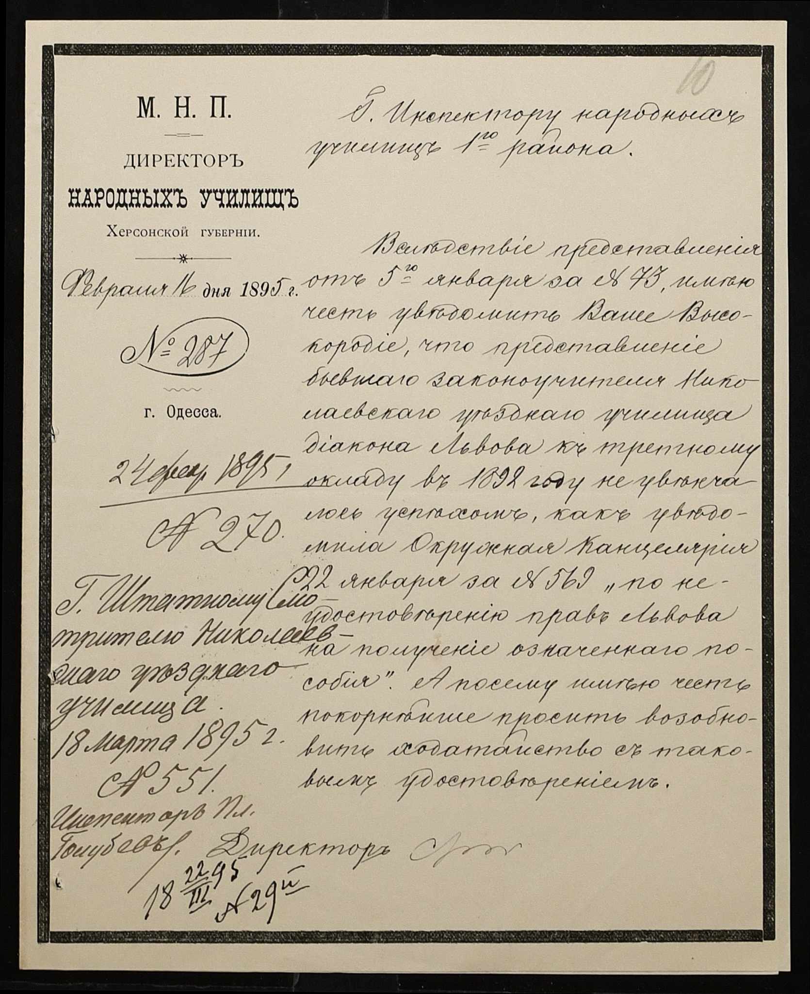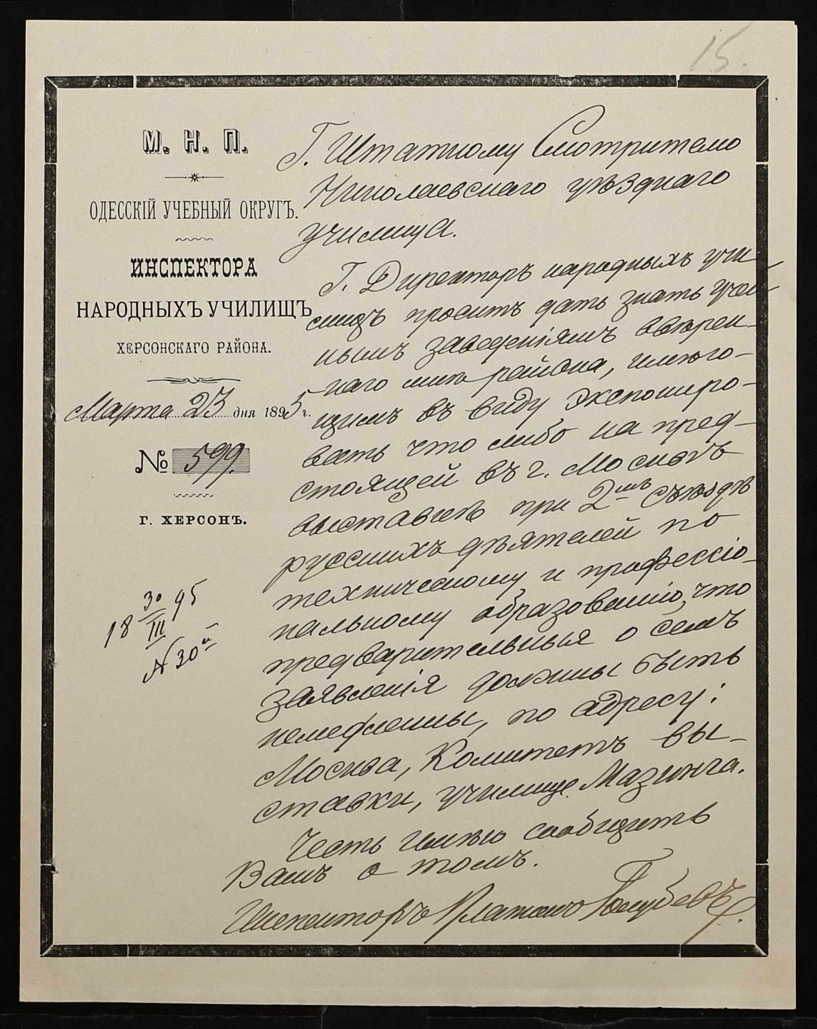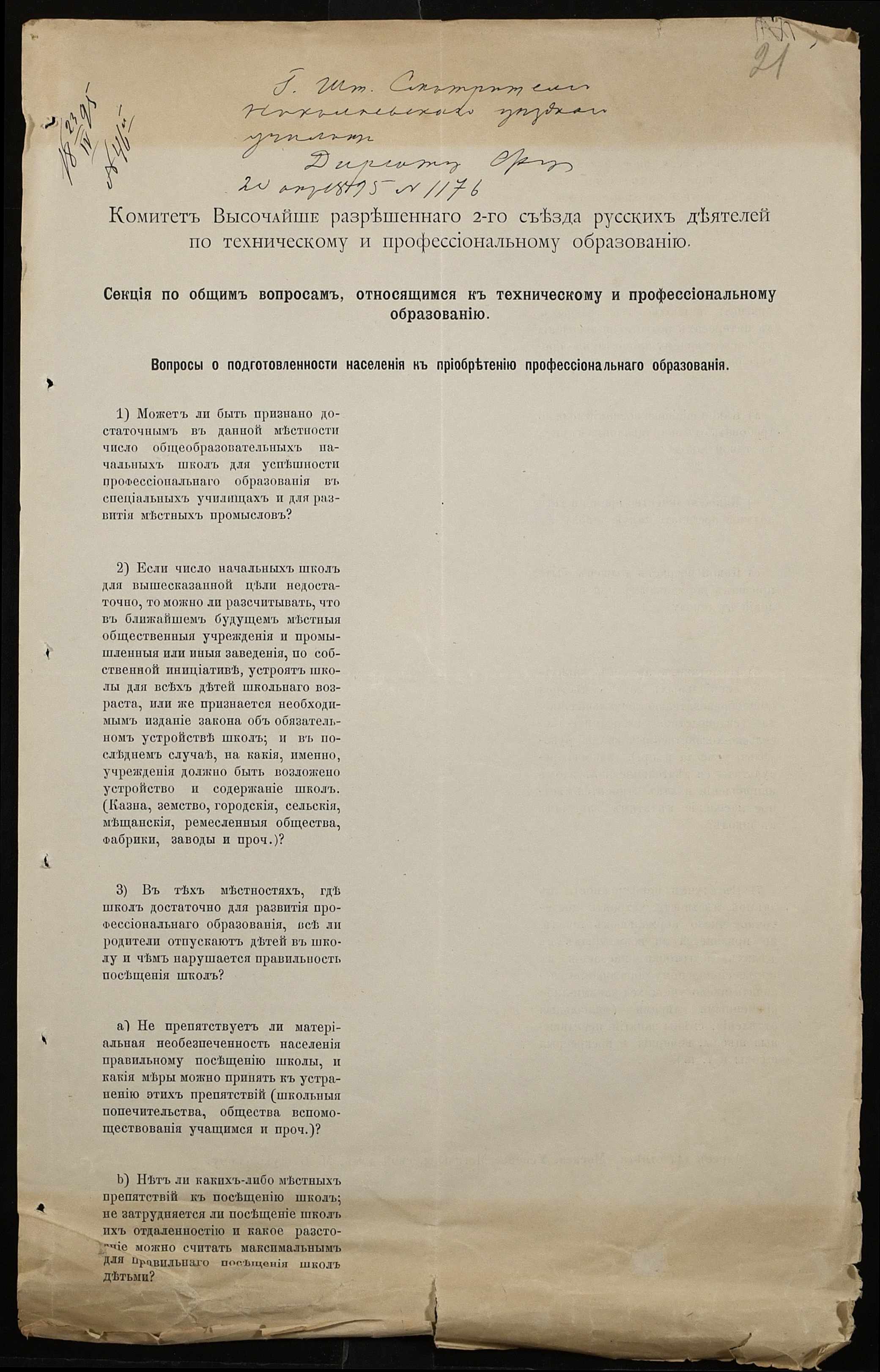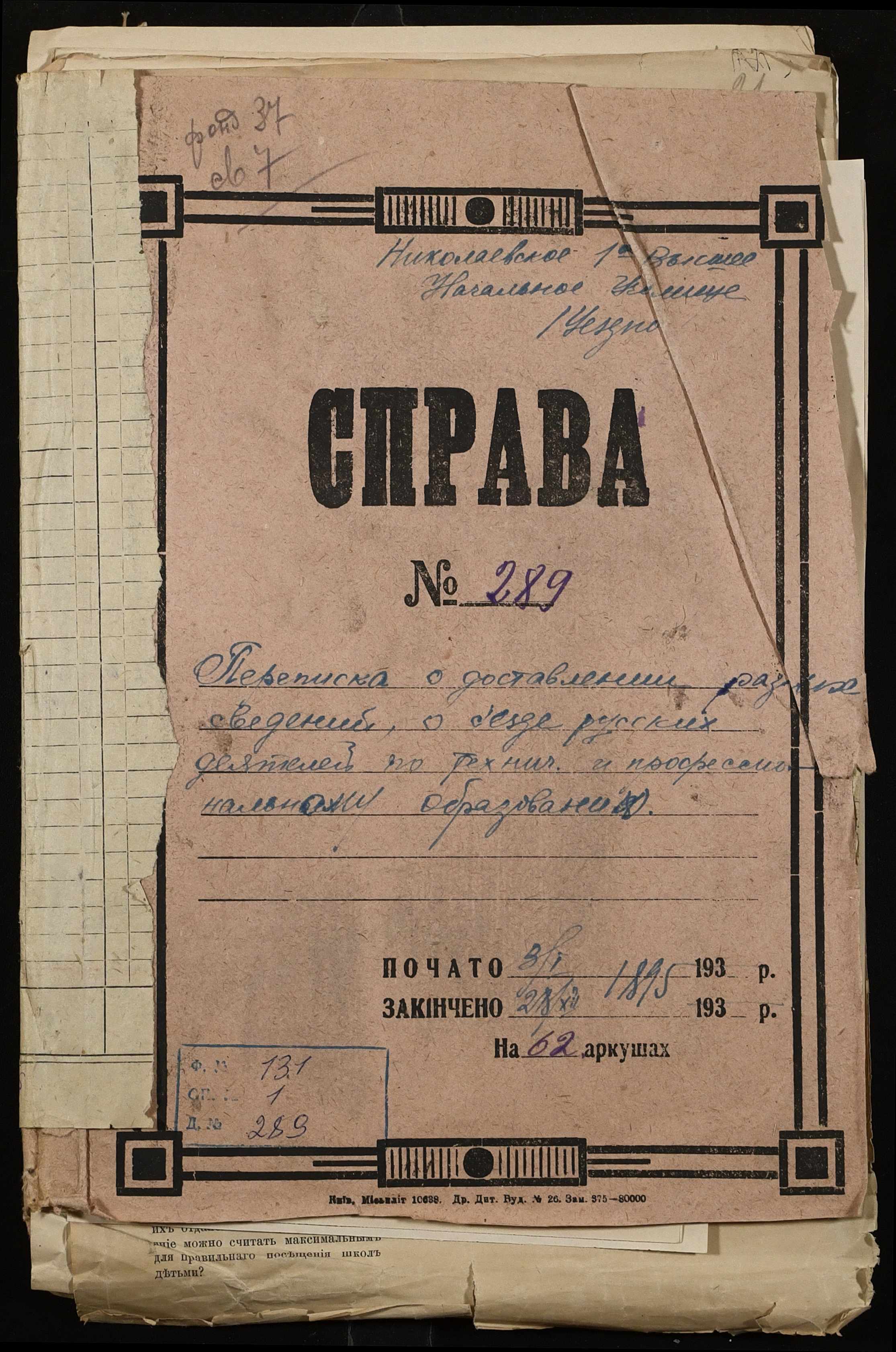 • • • • Справа № 289 “Листування про відкриття другої учбової зміни в повітовому училищі, про з’їзд російських діячів з технічної і професійної освіти”