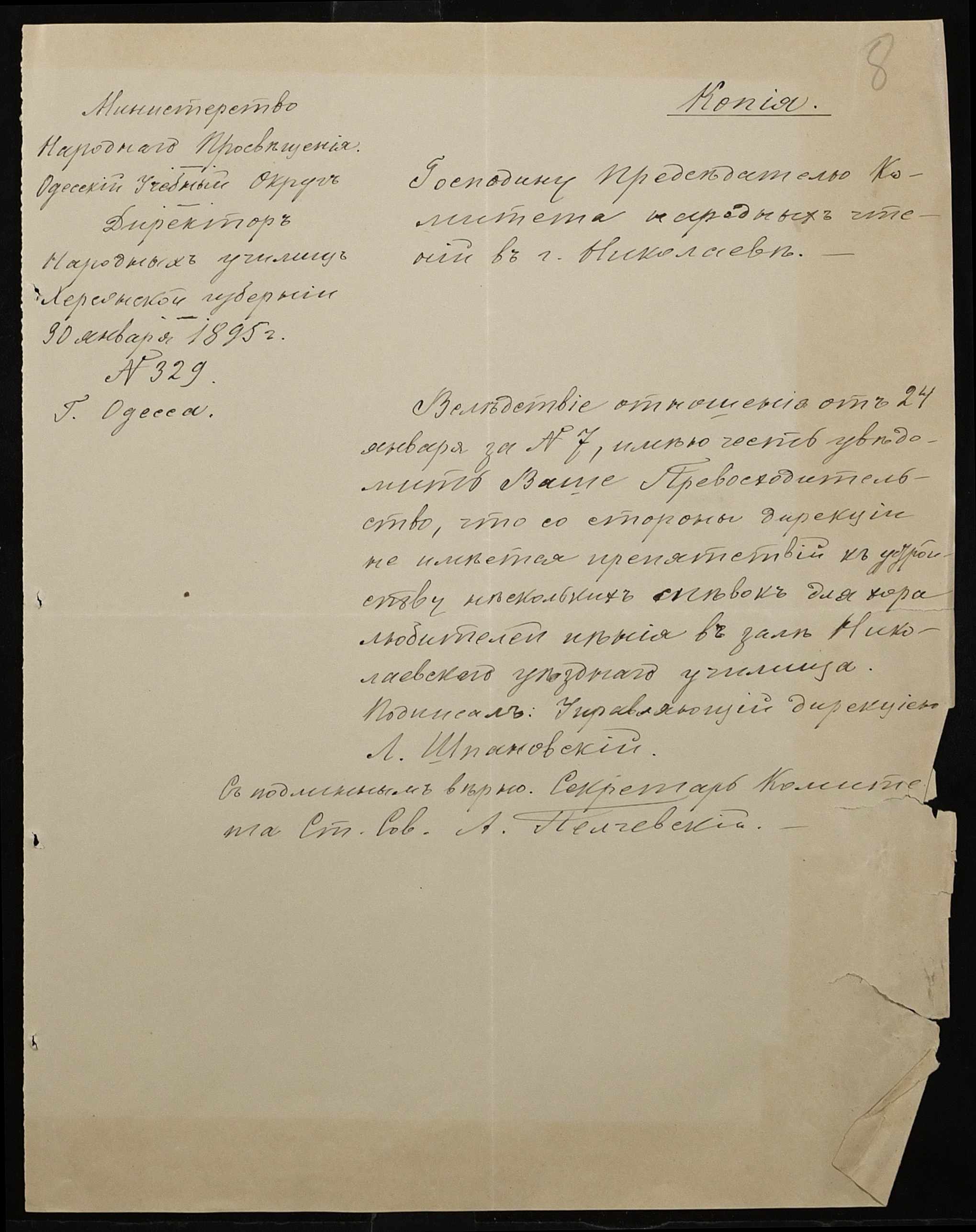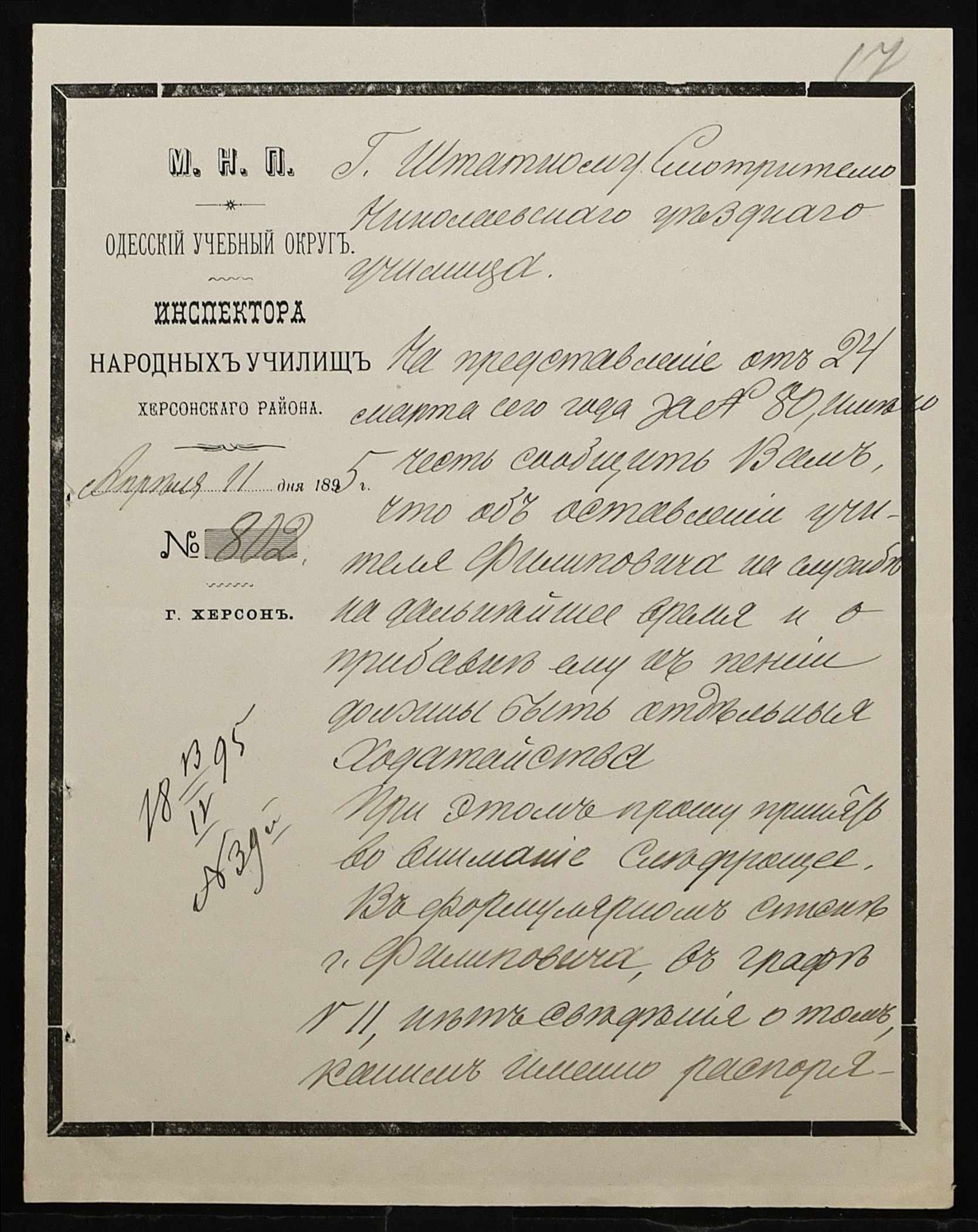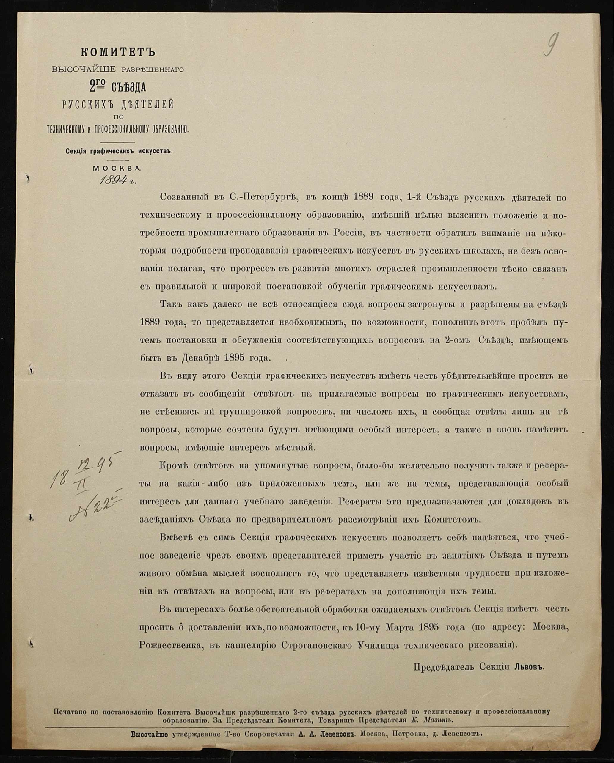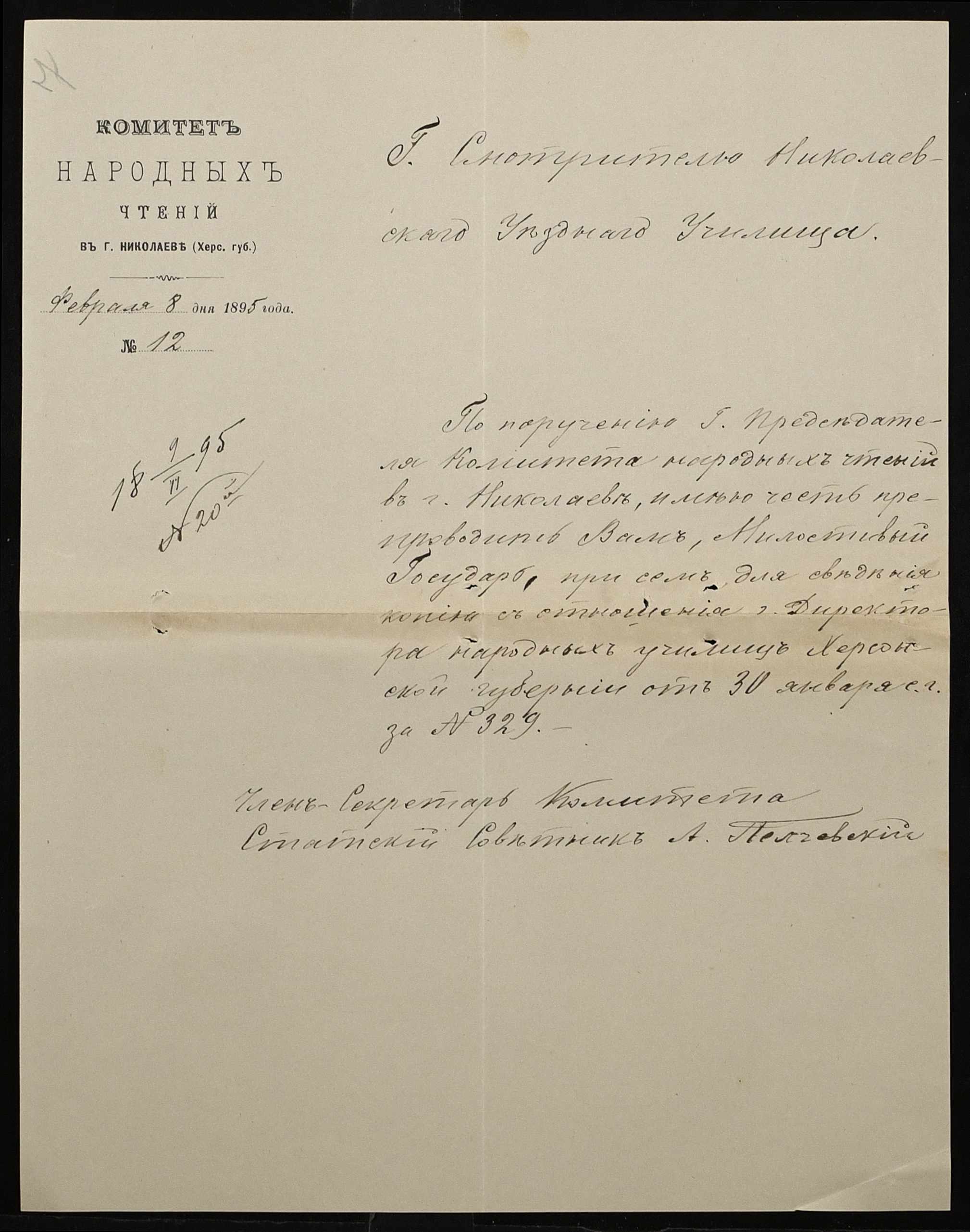 • • • • Справа № 289 “Листування про відкриття другої учбової зміни в повітовому училищі, про з’їзд російських діячів з технічної і професійної освіти”