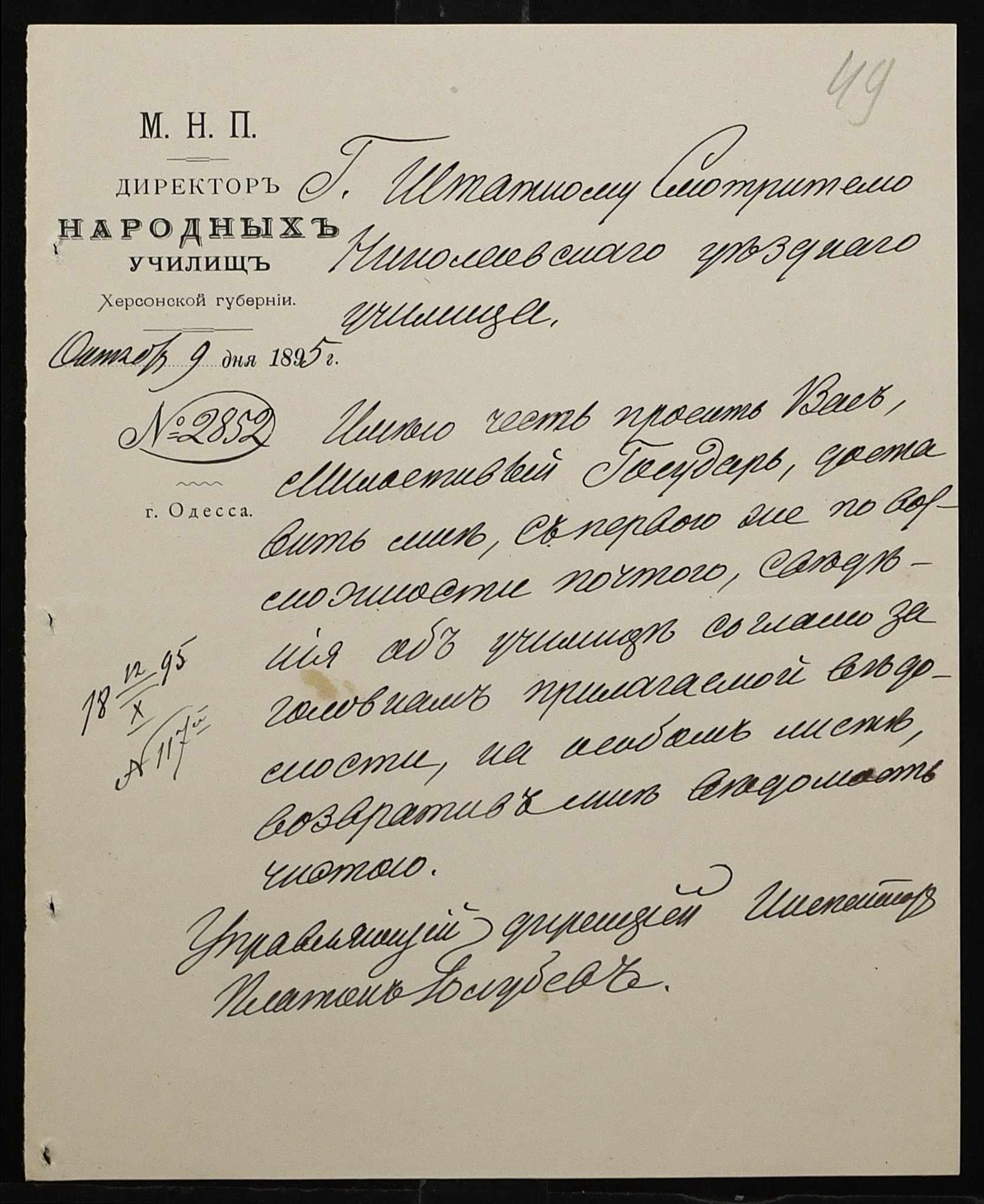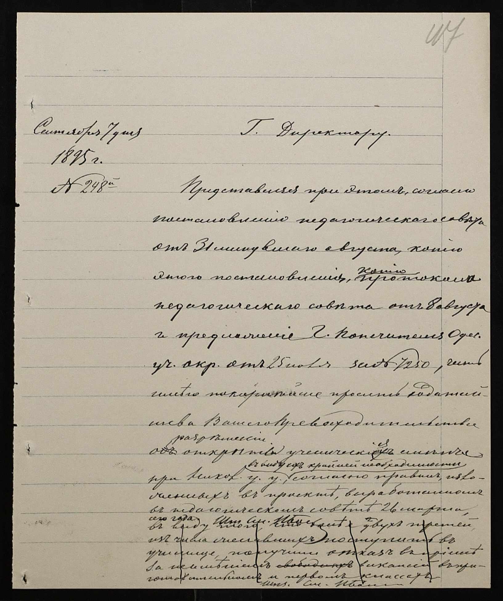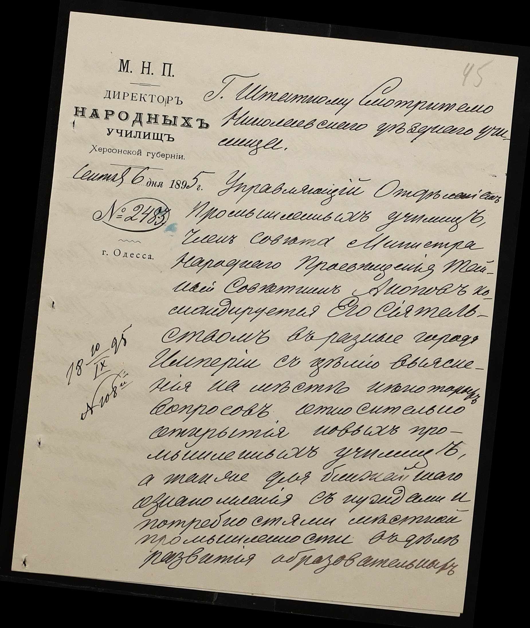 • • • • Справа № 289 “Листування про відкриття другої учбової зміни в повітовому училищі, про з’їзд російських діячів з технічної і професійної освіти”