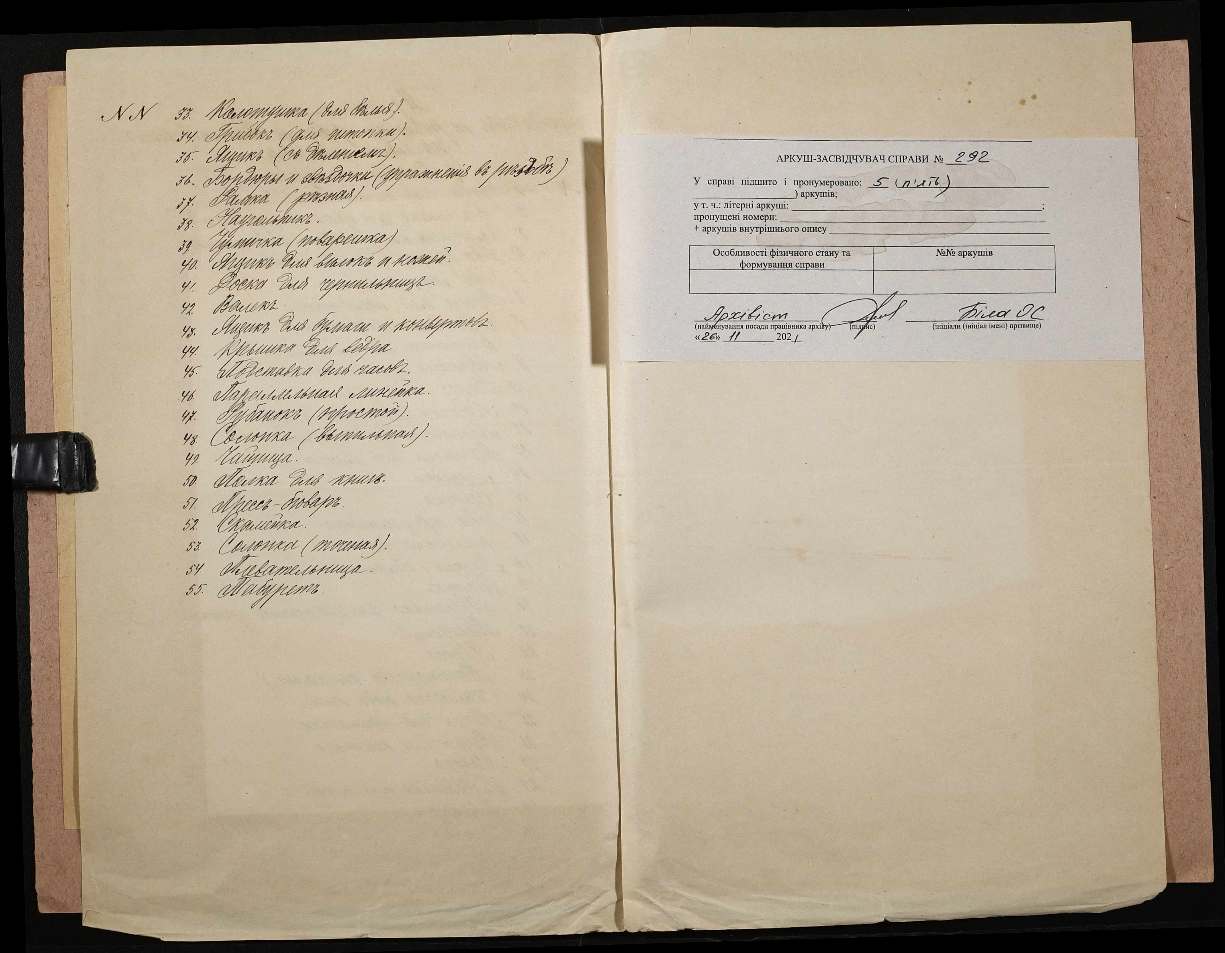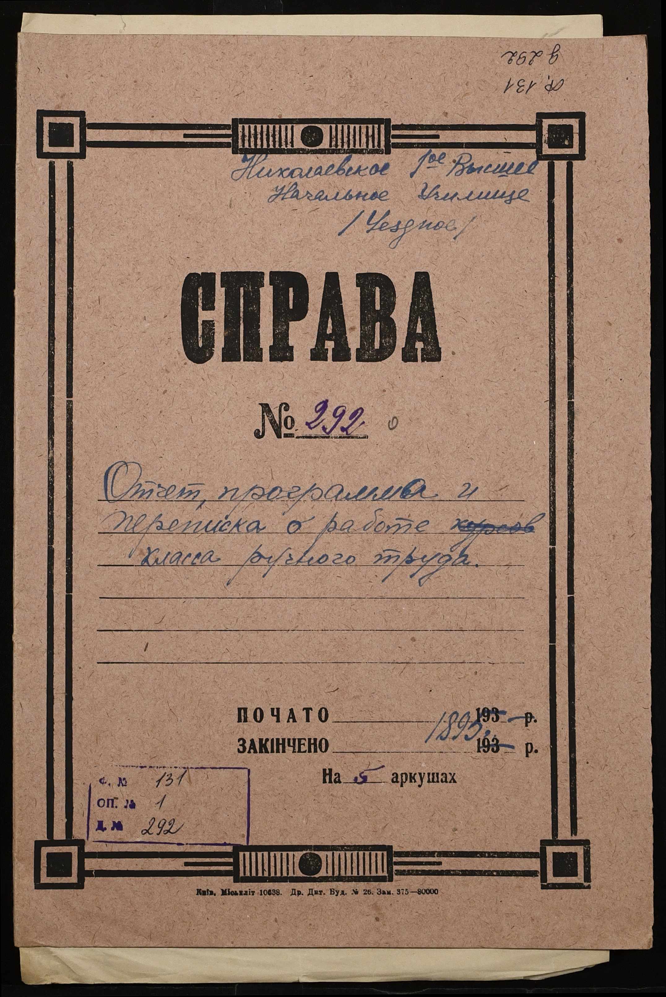Фонд 131 / Опис 1 / Справа 292