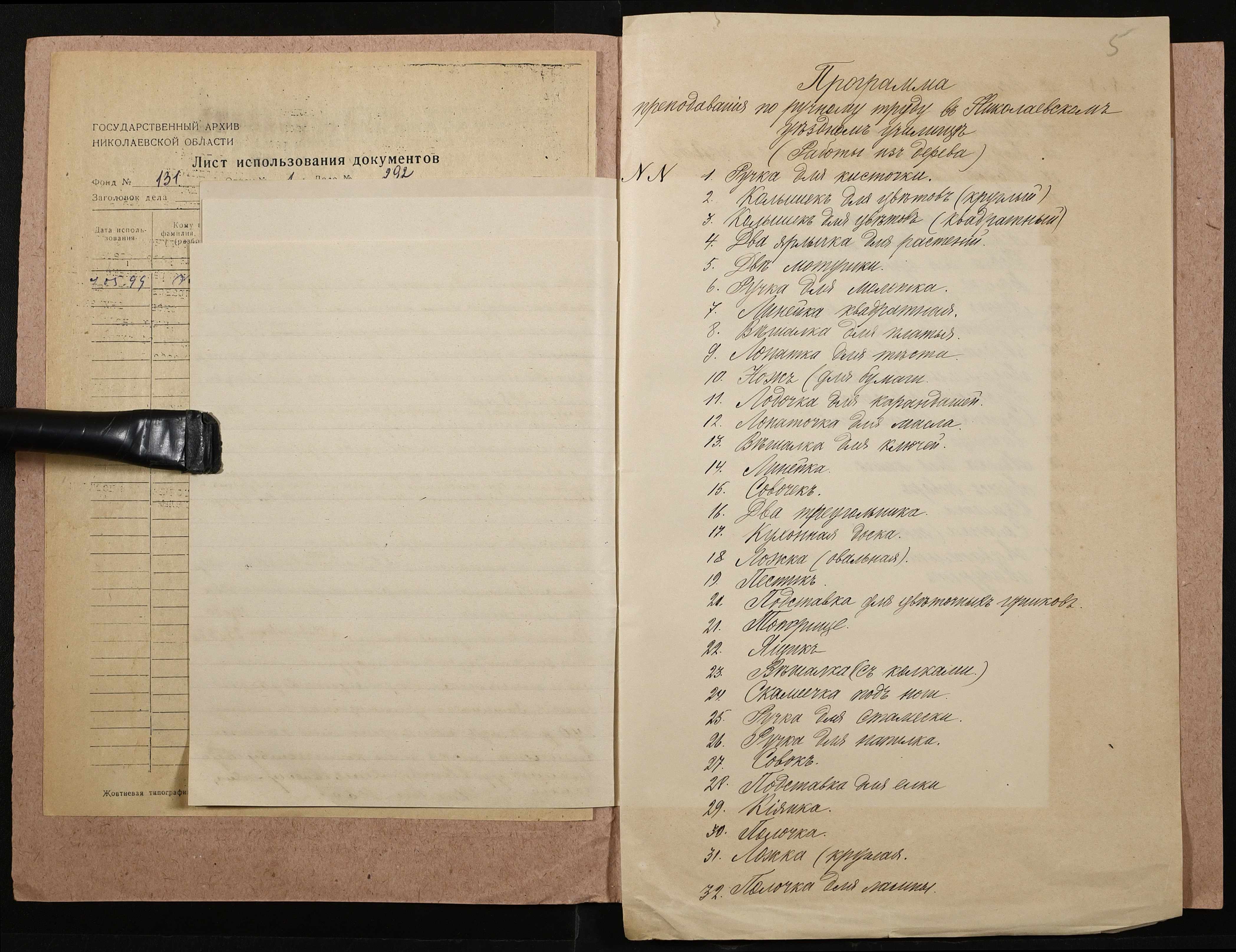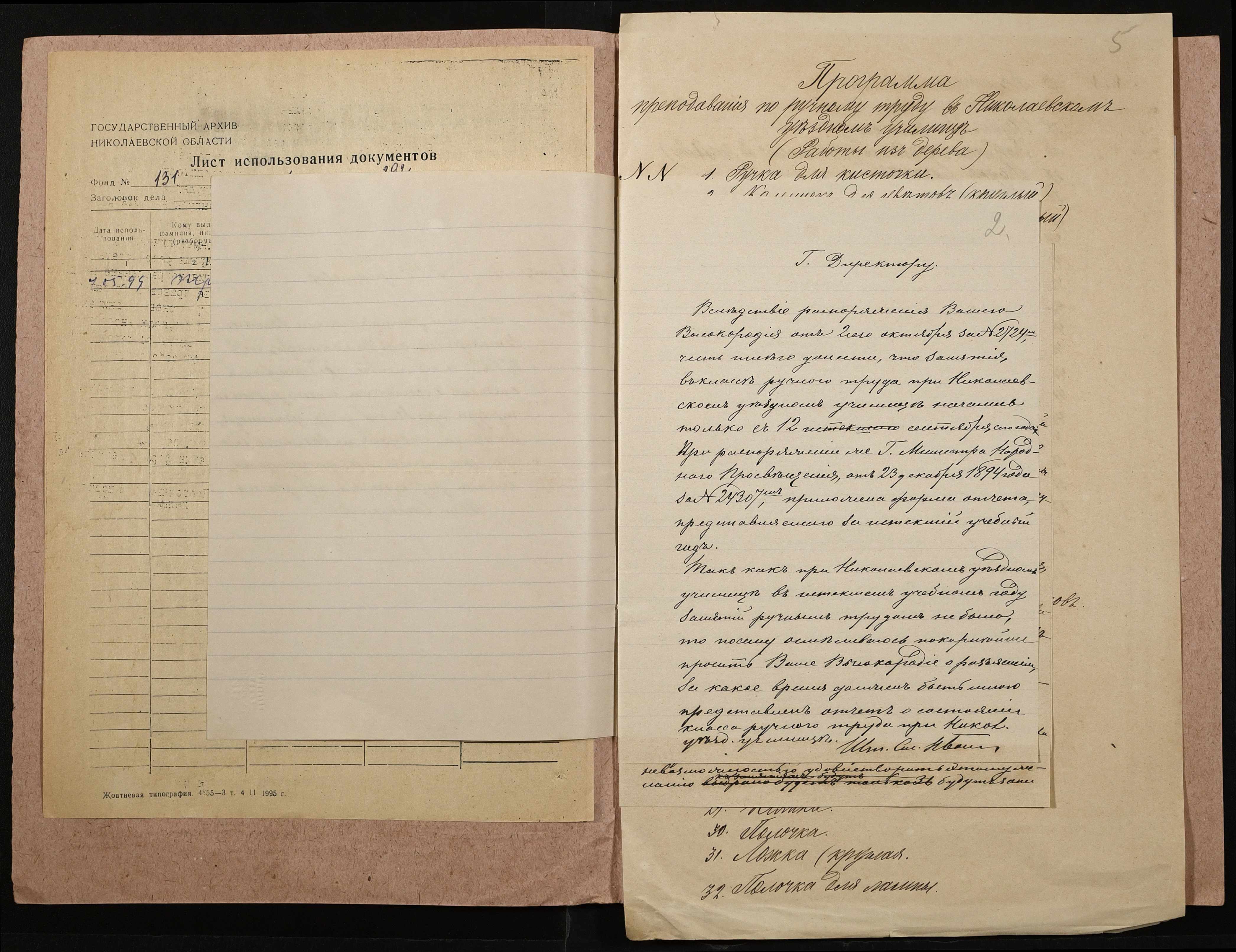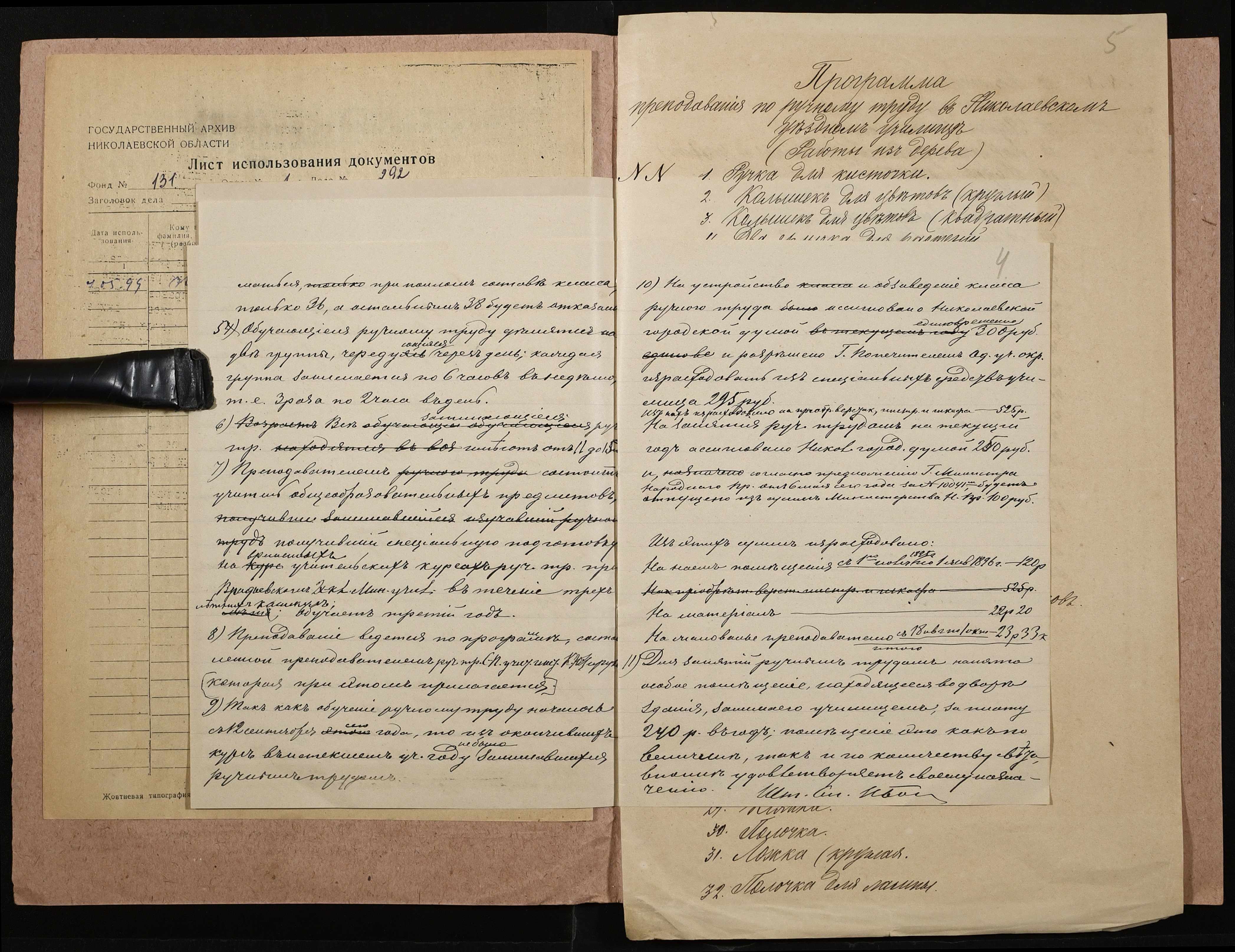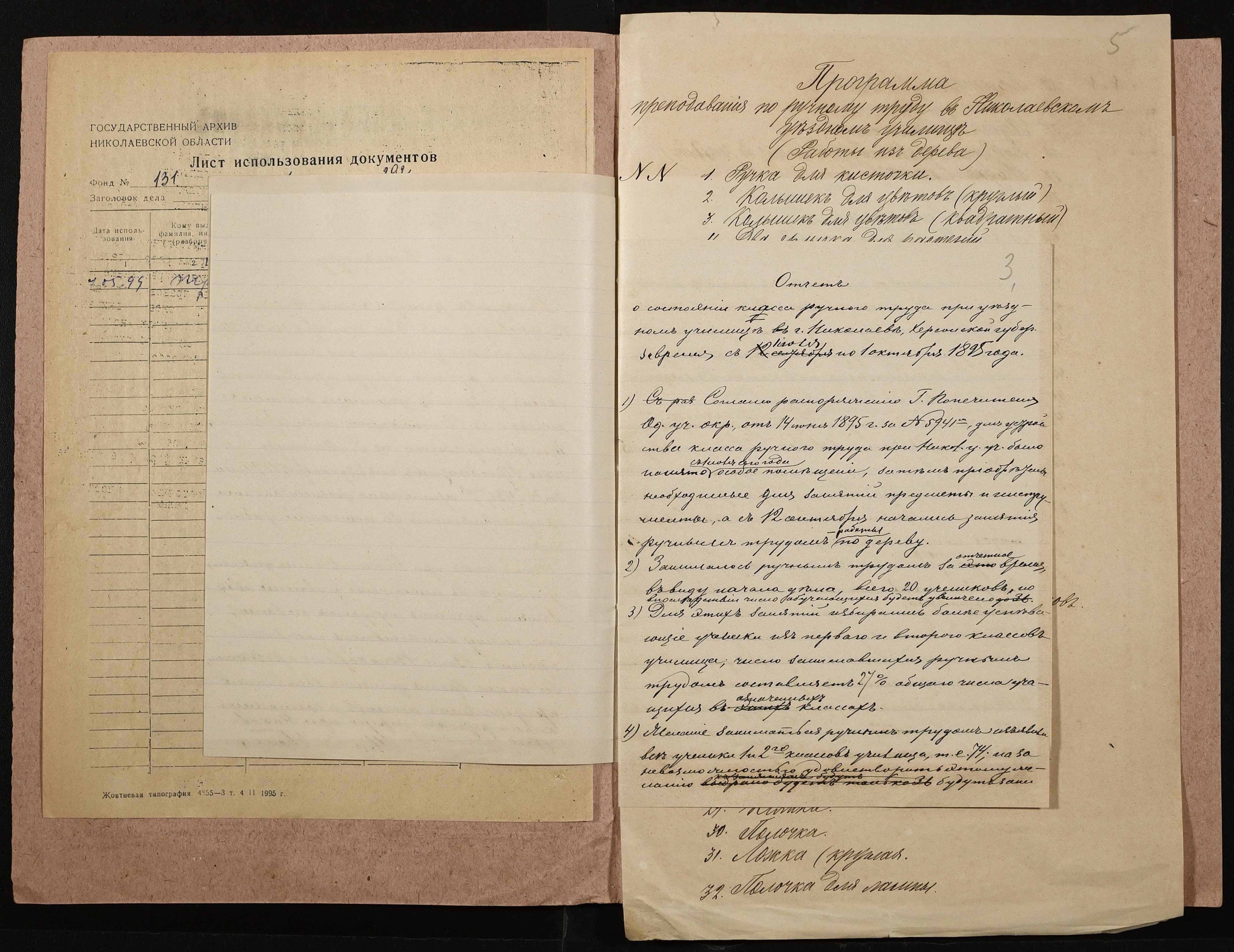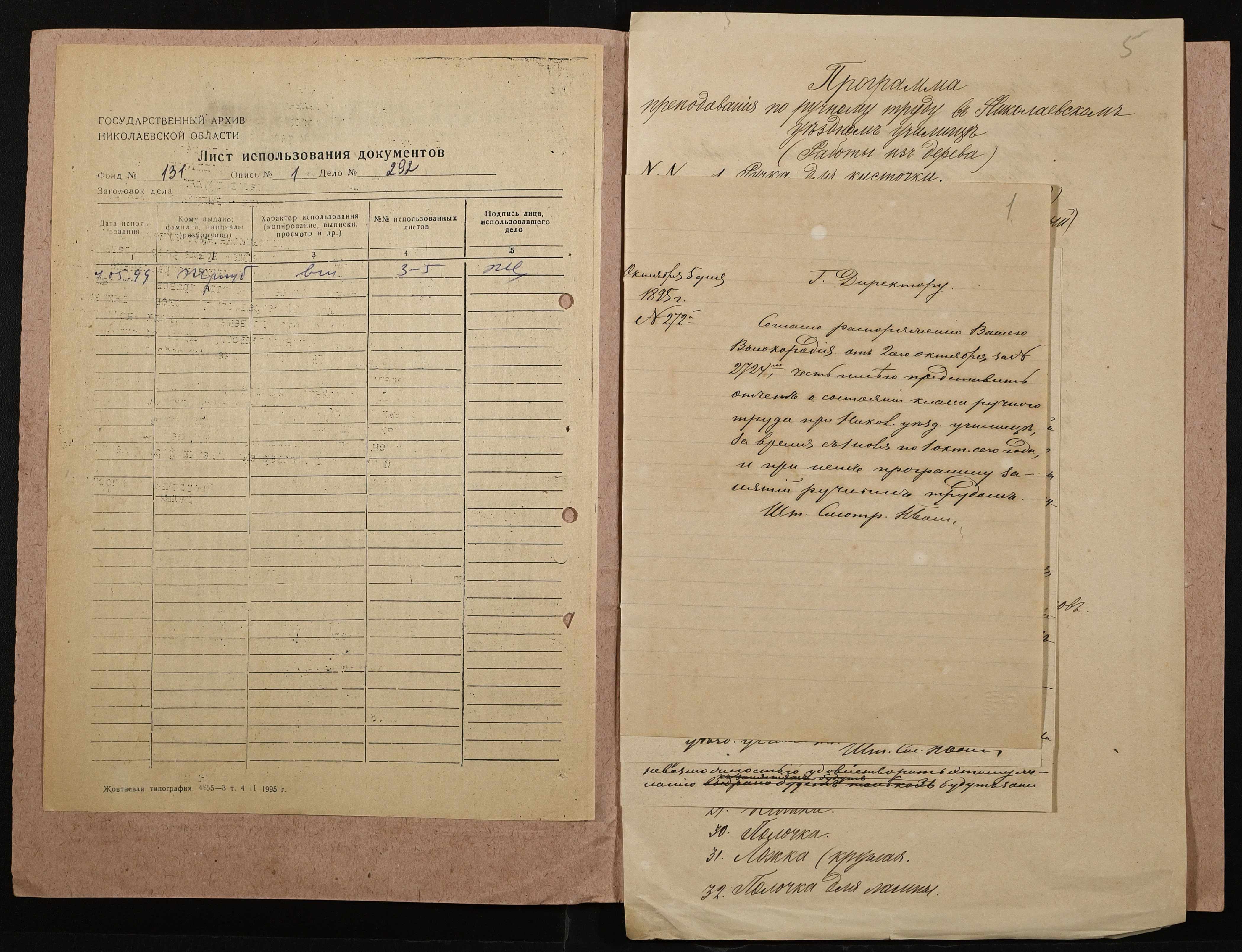 • • • • Справа № 292 “Навчальна програма і звіт про стан класу ручної праці”