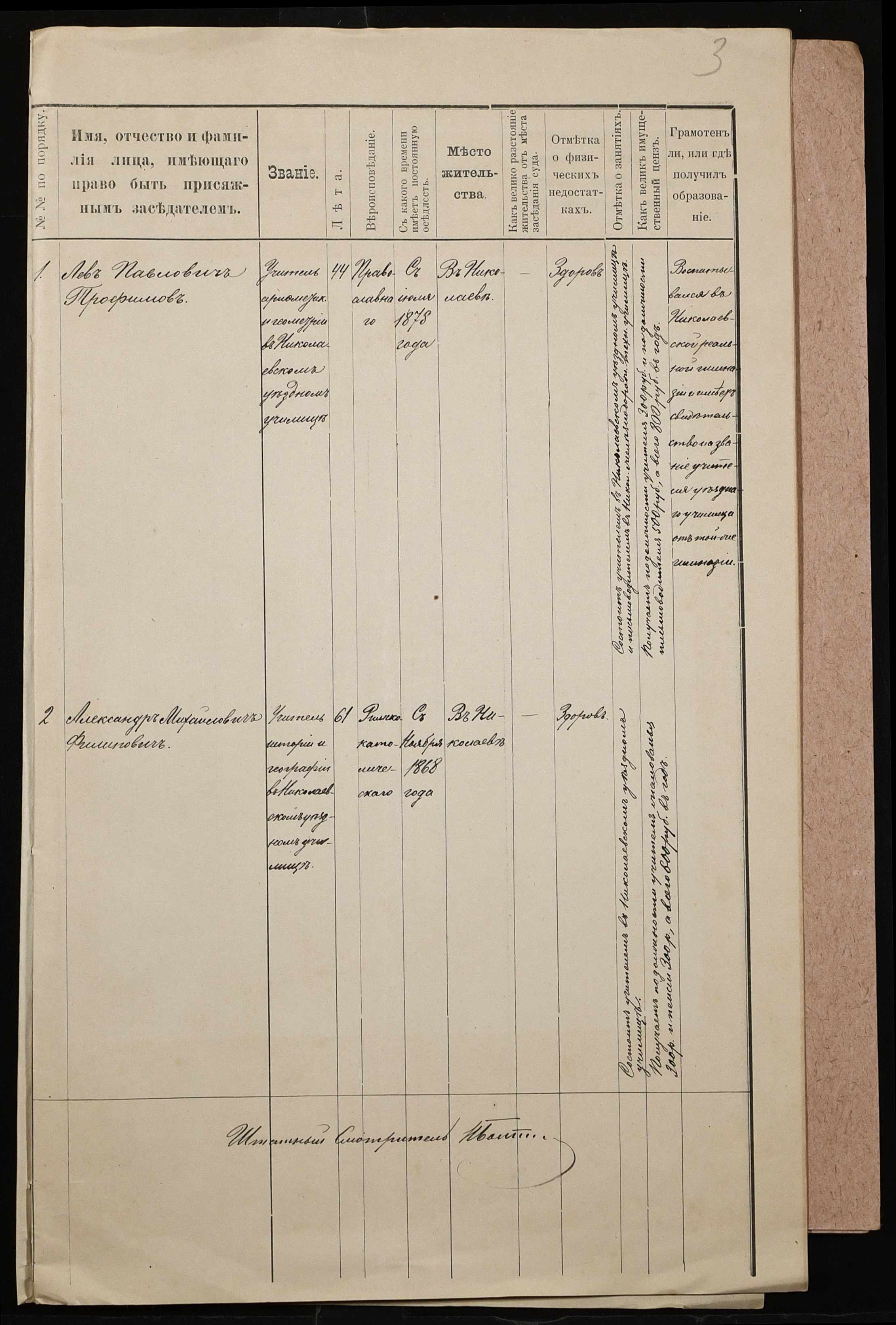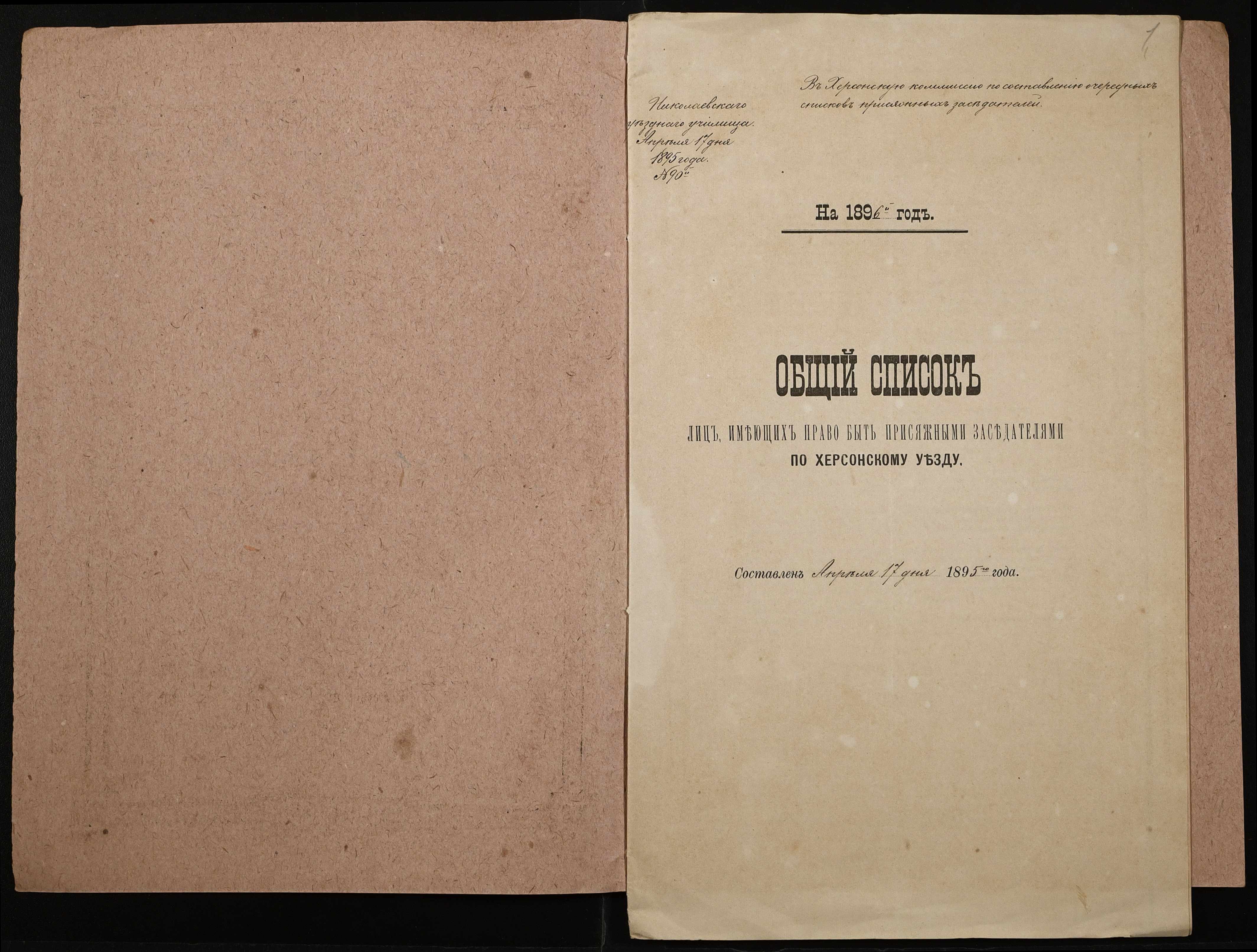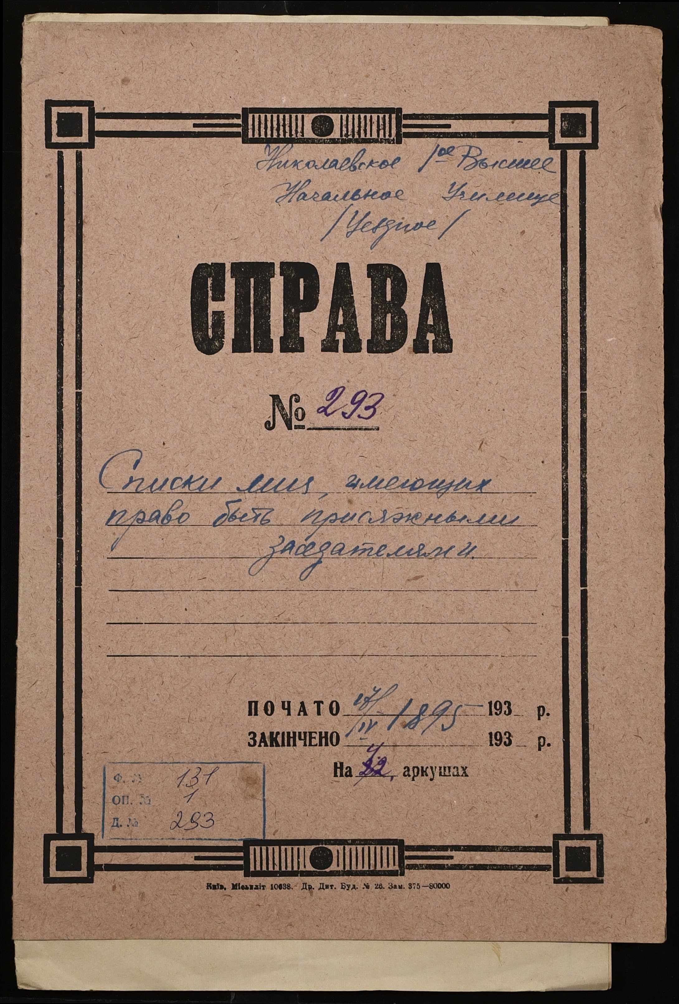 • • • • Справа № 293 “Список викладачів училища, які мають право бути присяжними засідателями по Херсонському повіту”