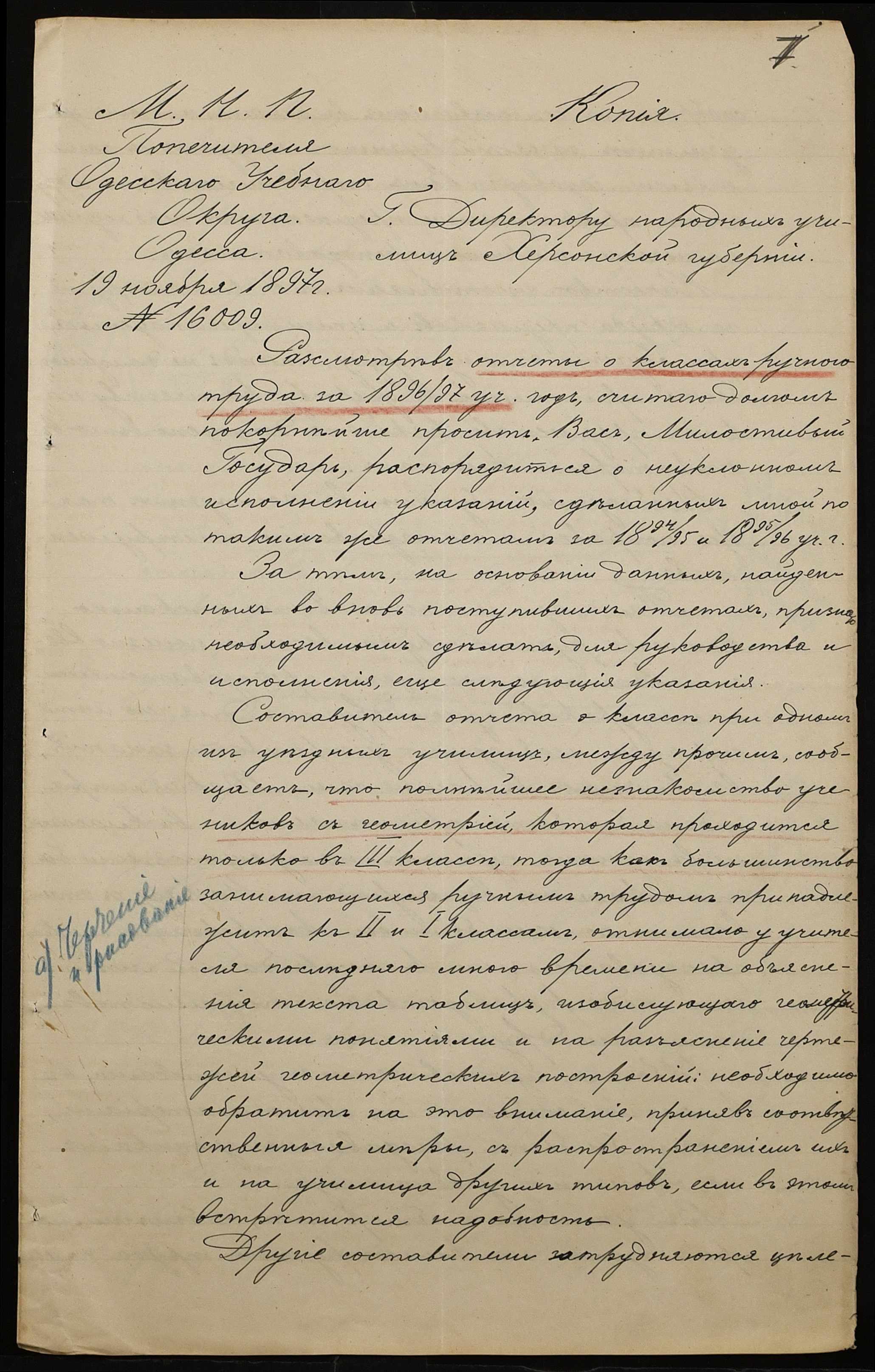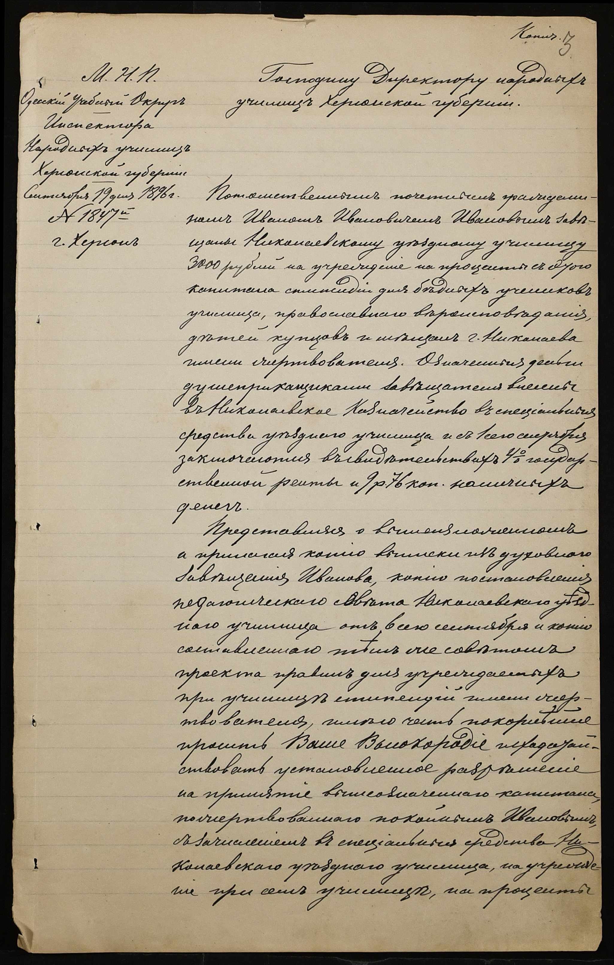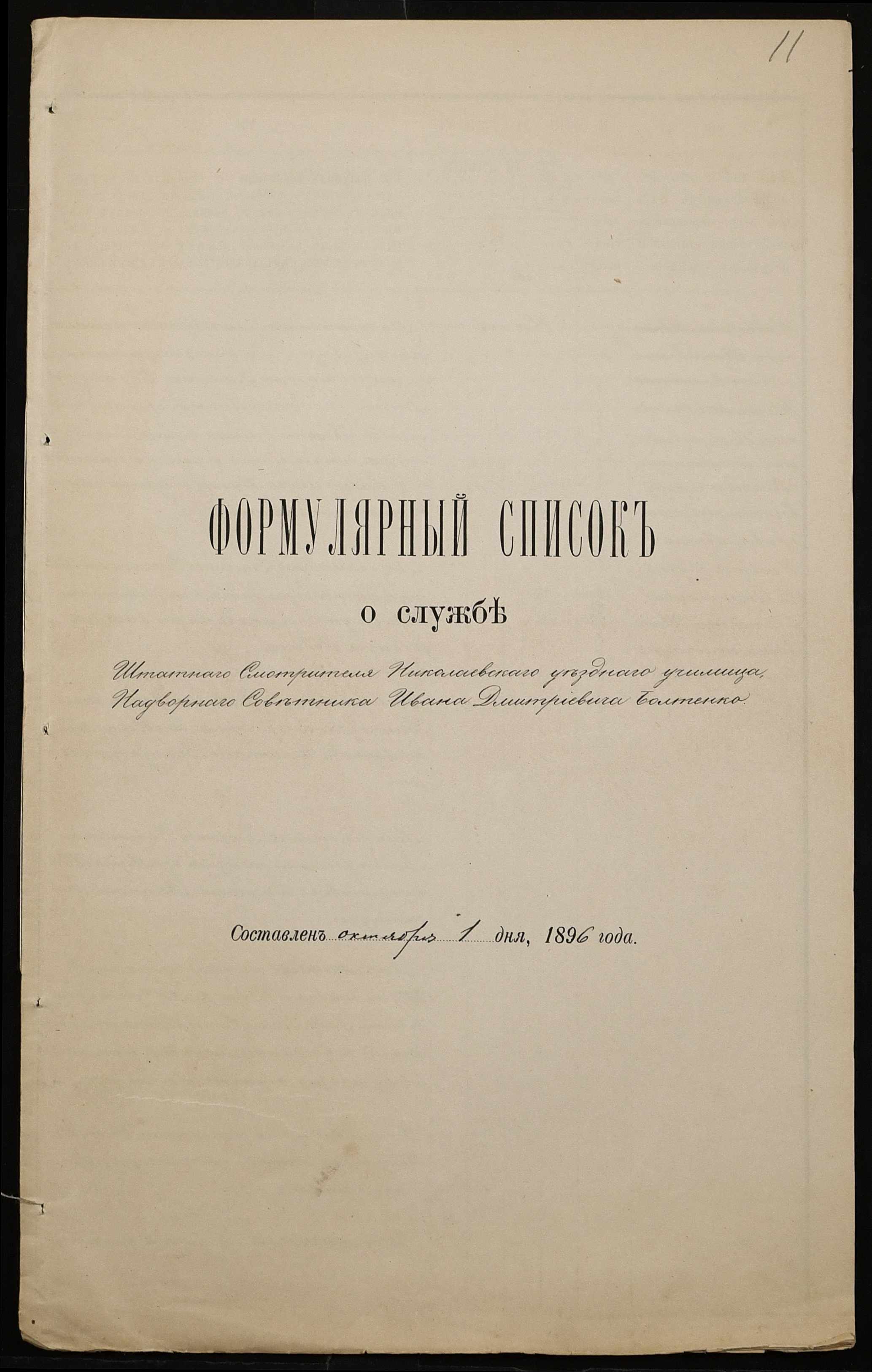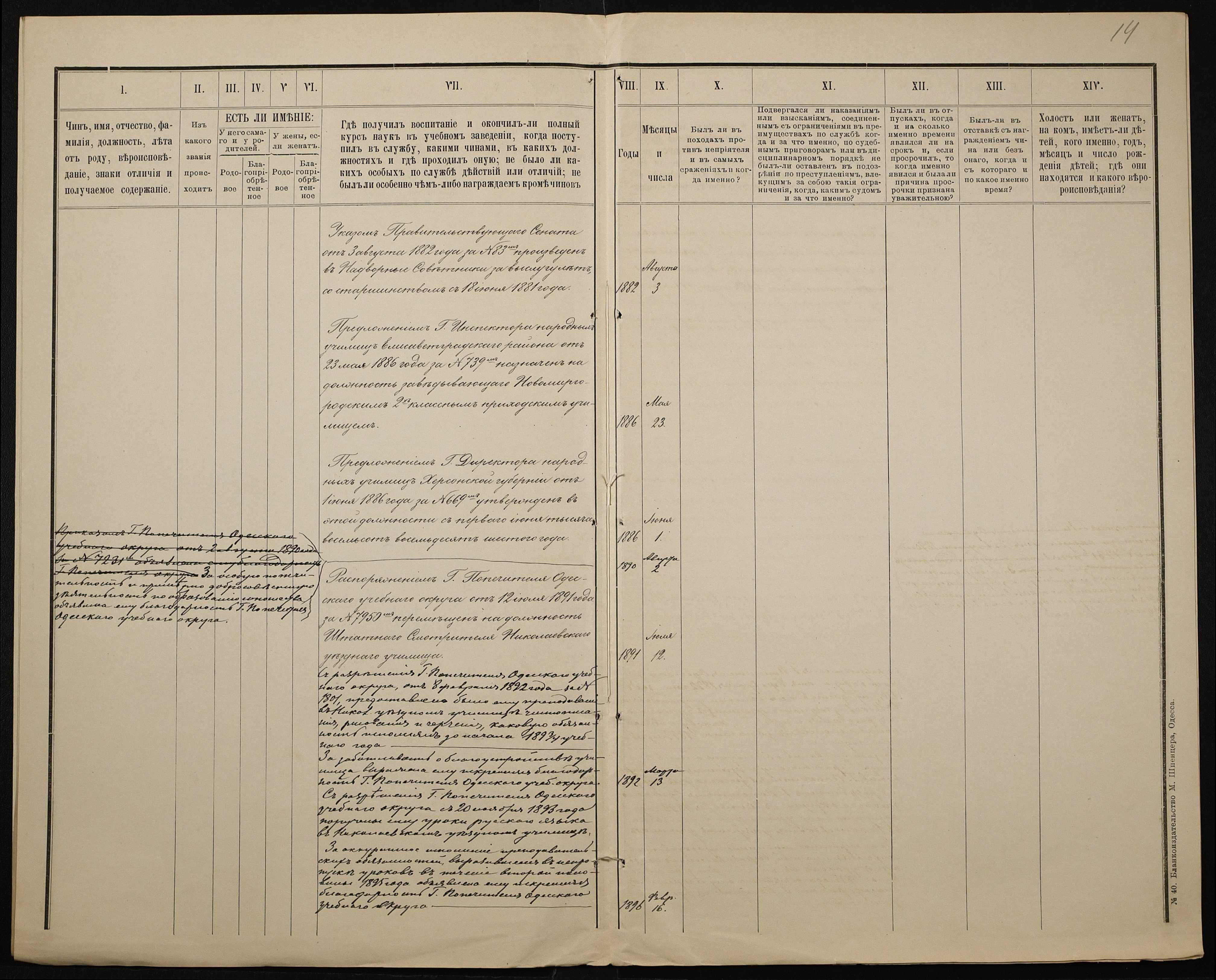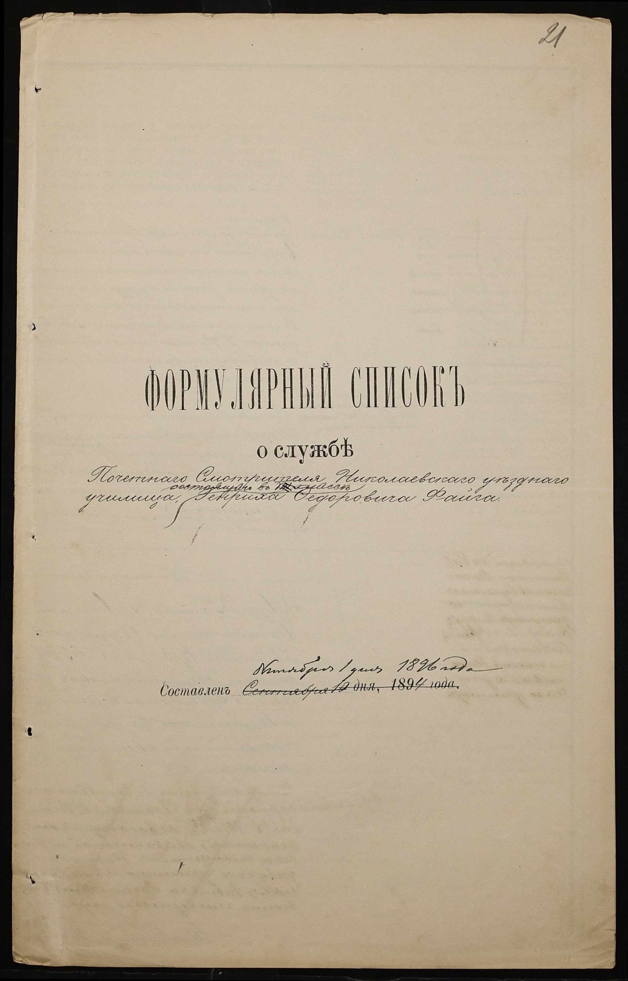 • • • • Справа № 301 “Положення про заснування стипендії почесного громадянина І.І. Іванова (И.И. Иванова), послужні списки чиновників, звіт і відомості про стан класу ручної праці училища за 1894-1895 навчальний рік”