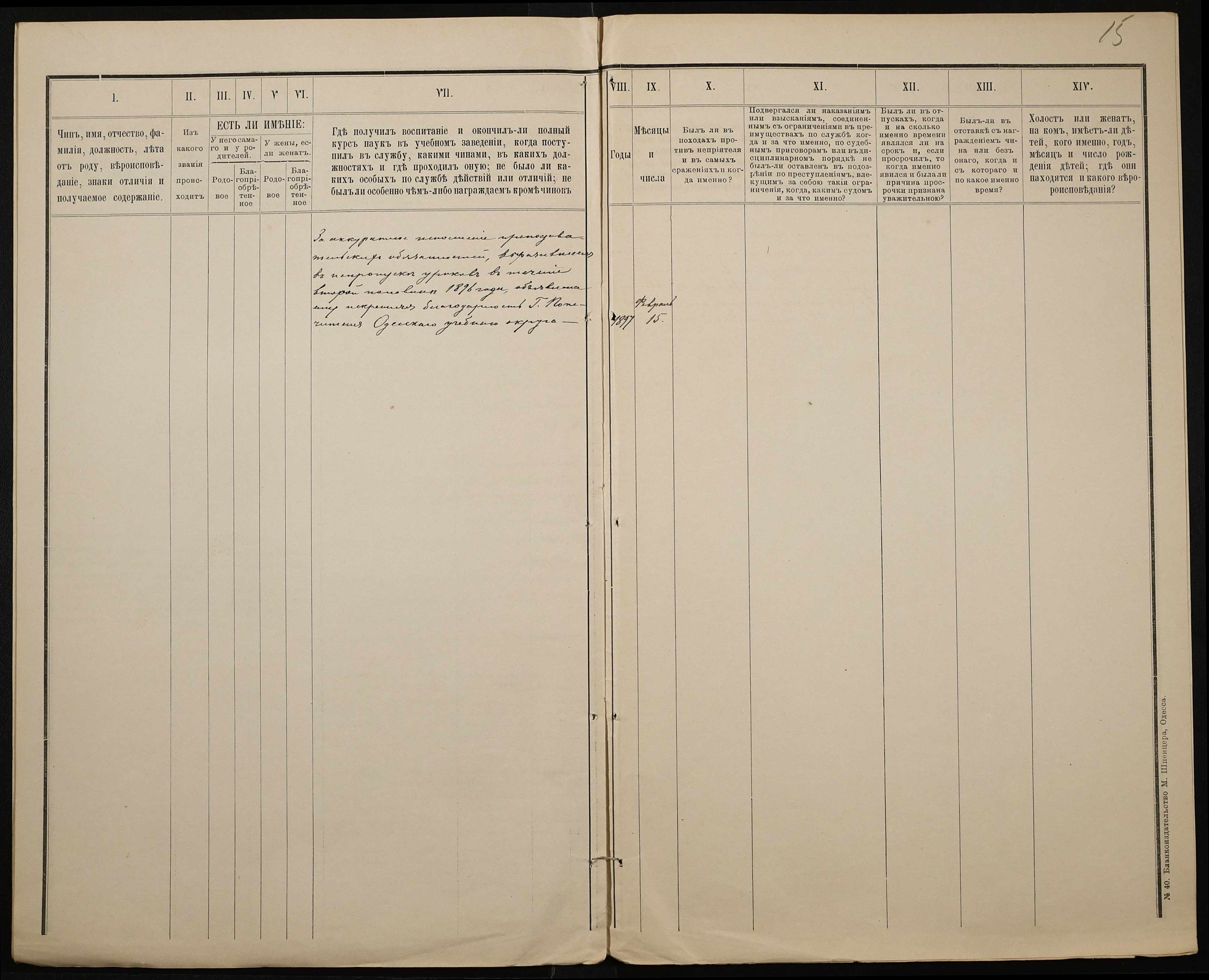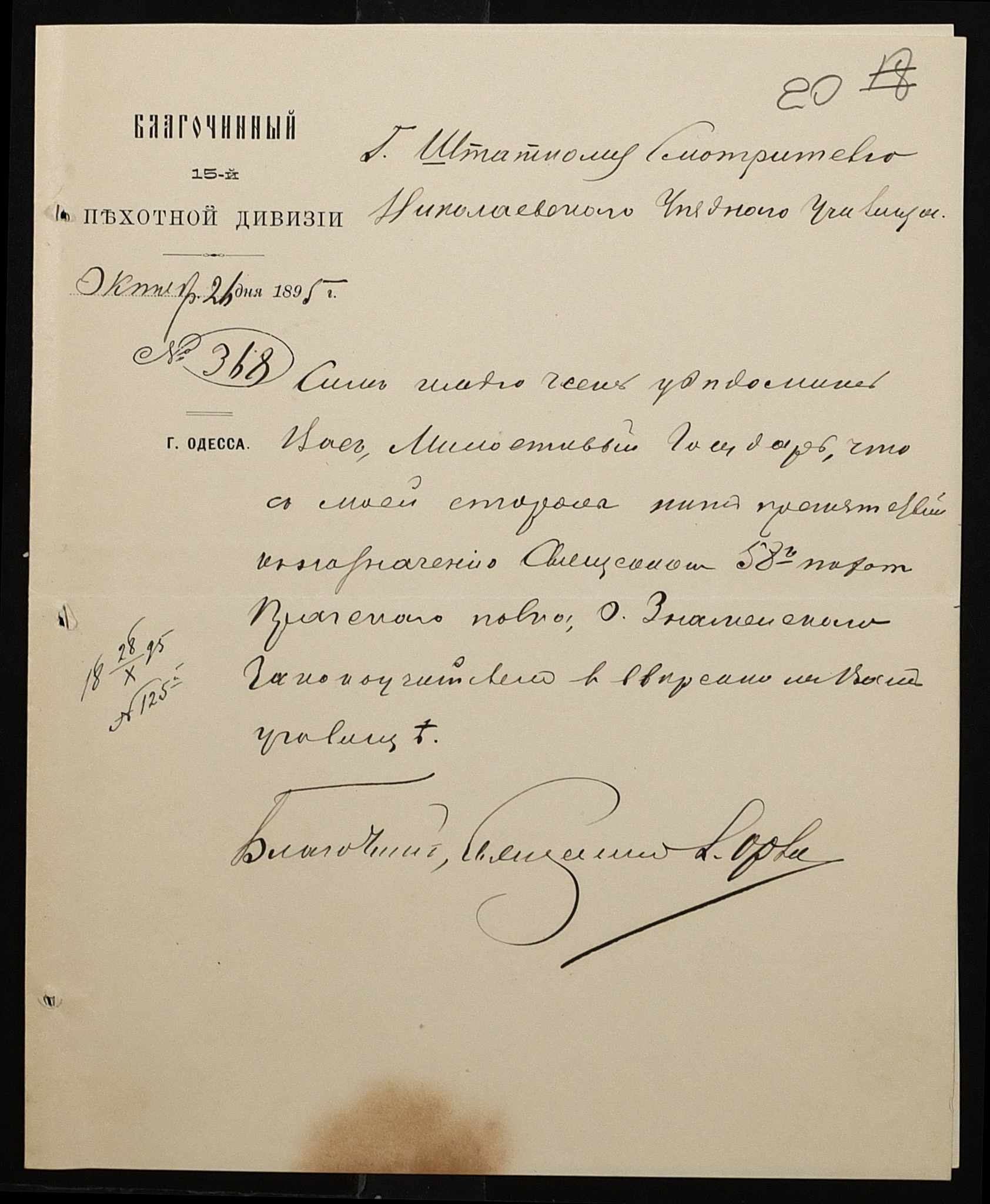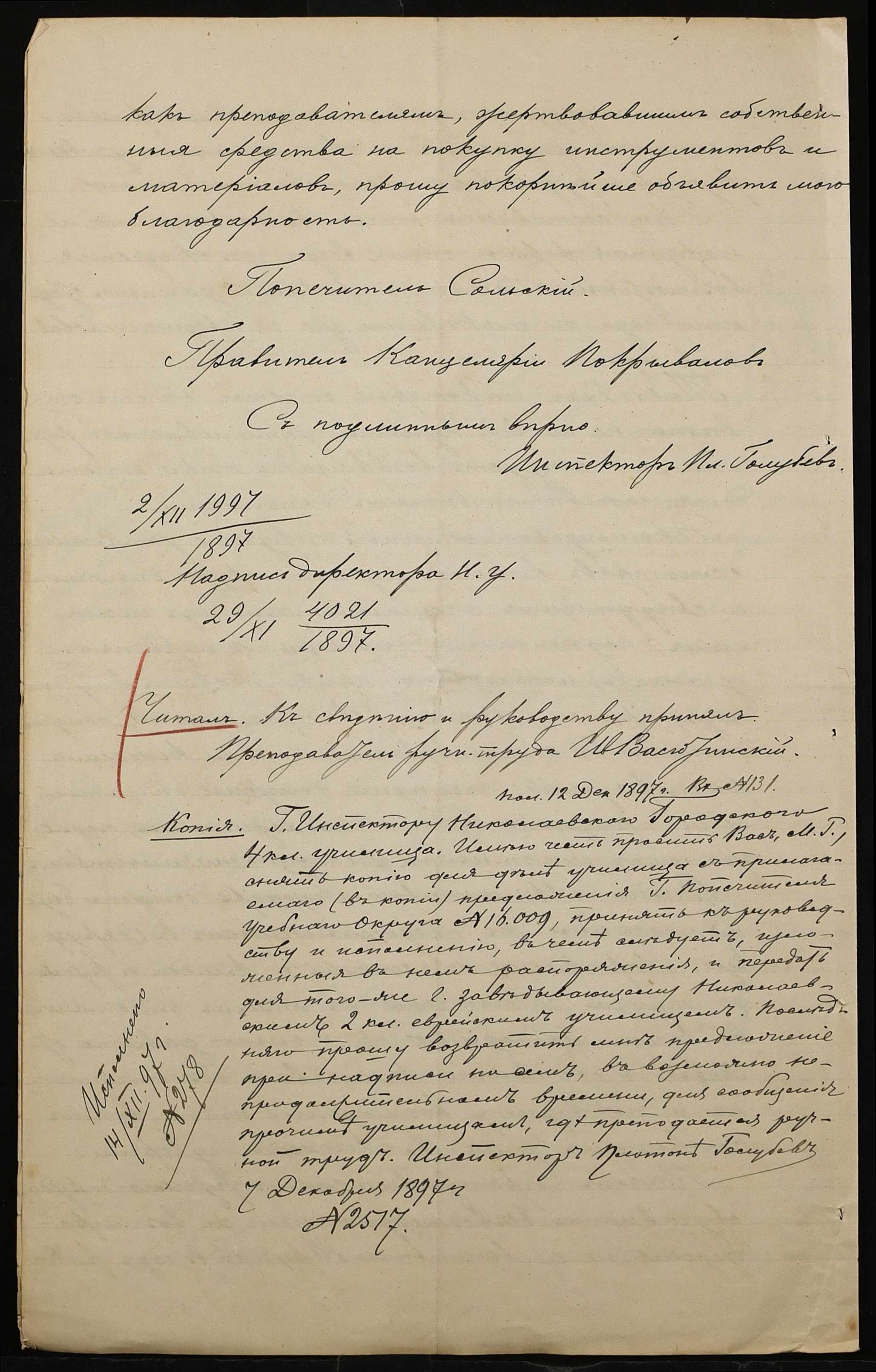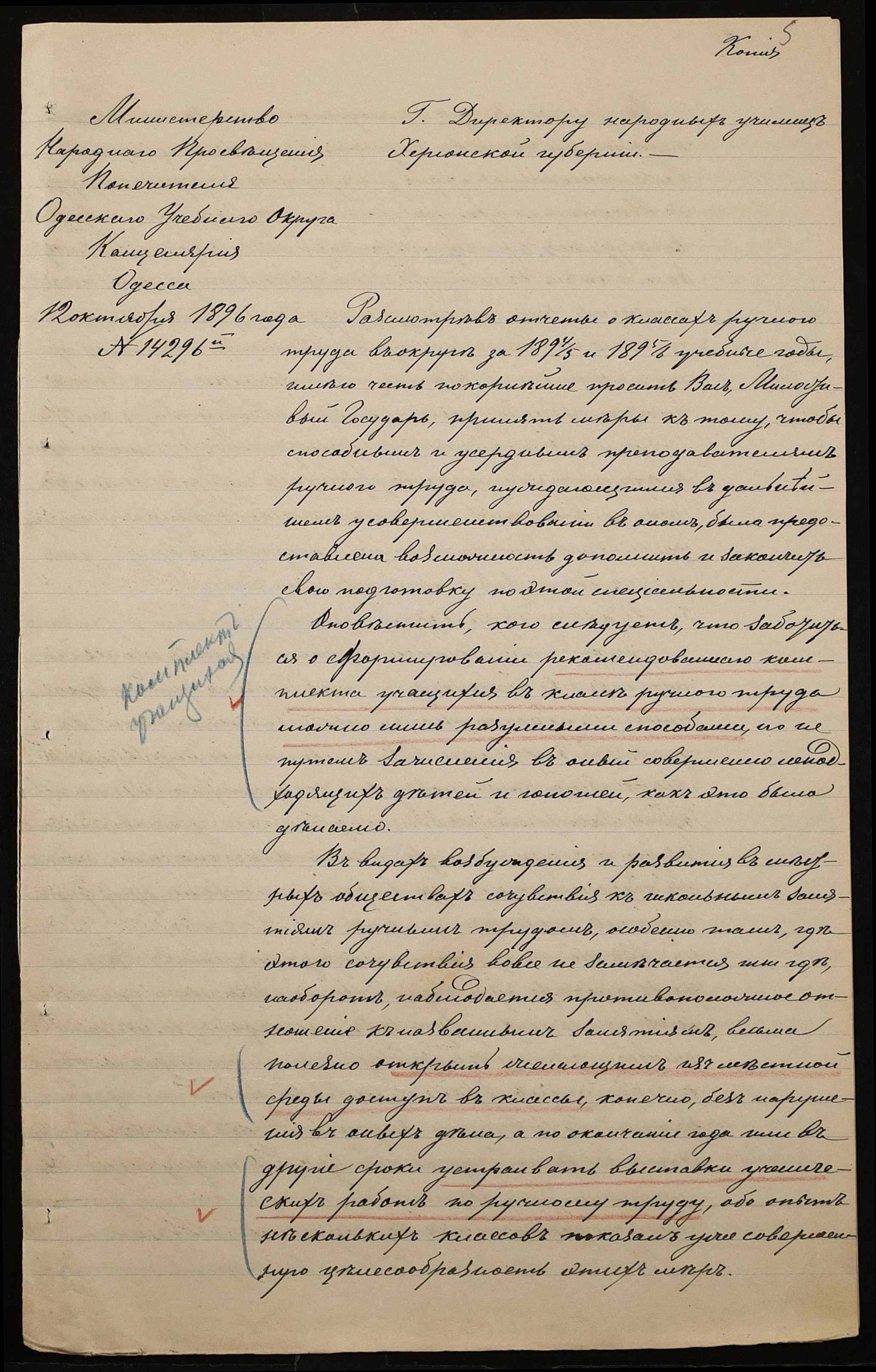 • • • • Справа № 301 “Положення про заснування стипендії почесного громадянина І.І. Іванова (И.И. Иванова), послужні списки чиновників, звіт і відомості про стан класу ручної праці училища за 1894-1895 навчальний рік”