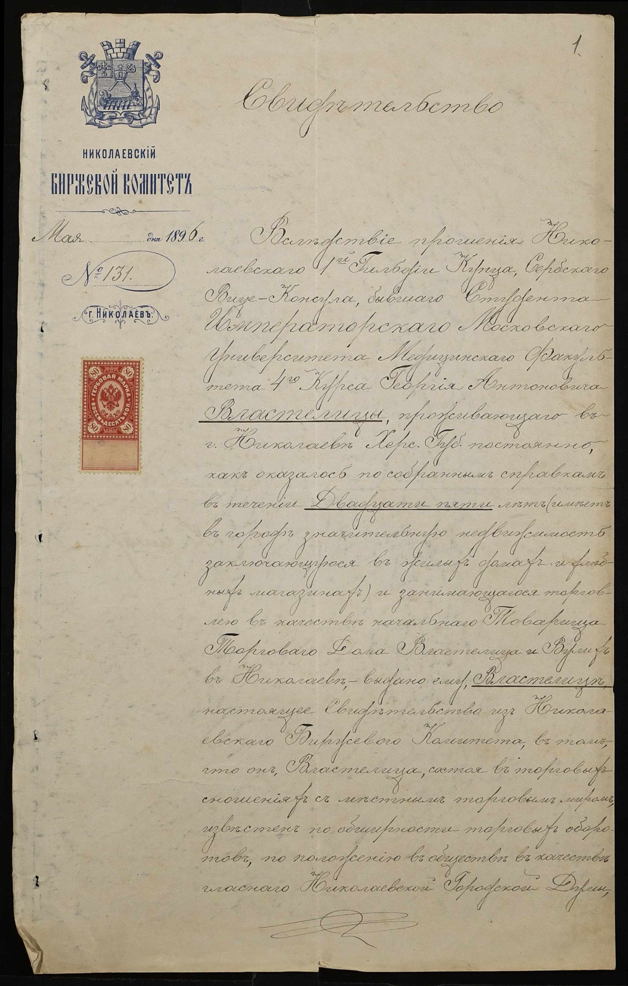 ◦ ◦ Фонд № 131 “Миколаївське перше вище початкове училище”