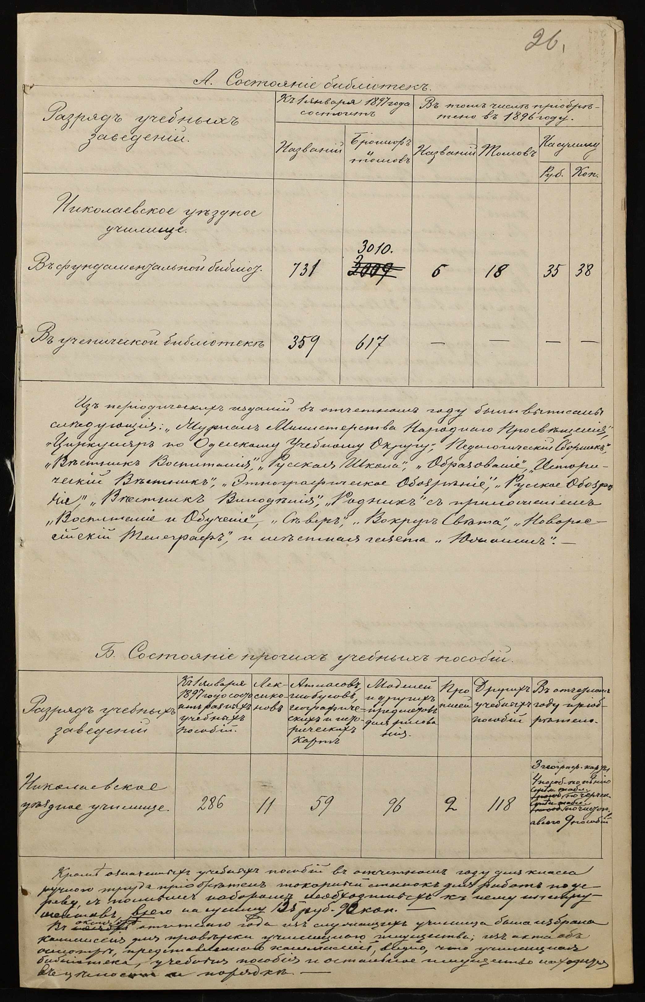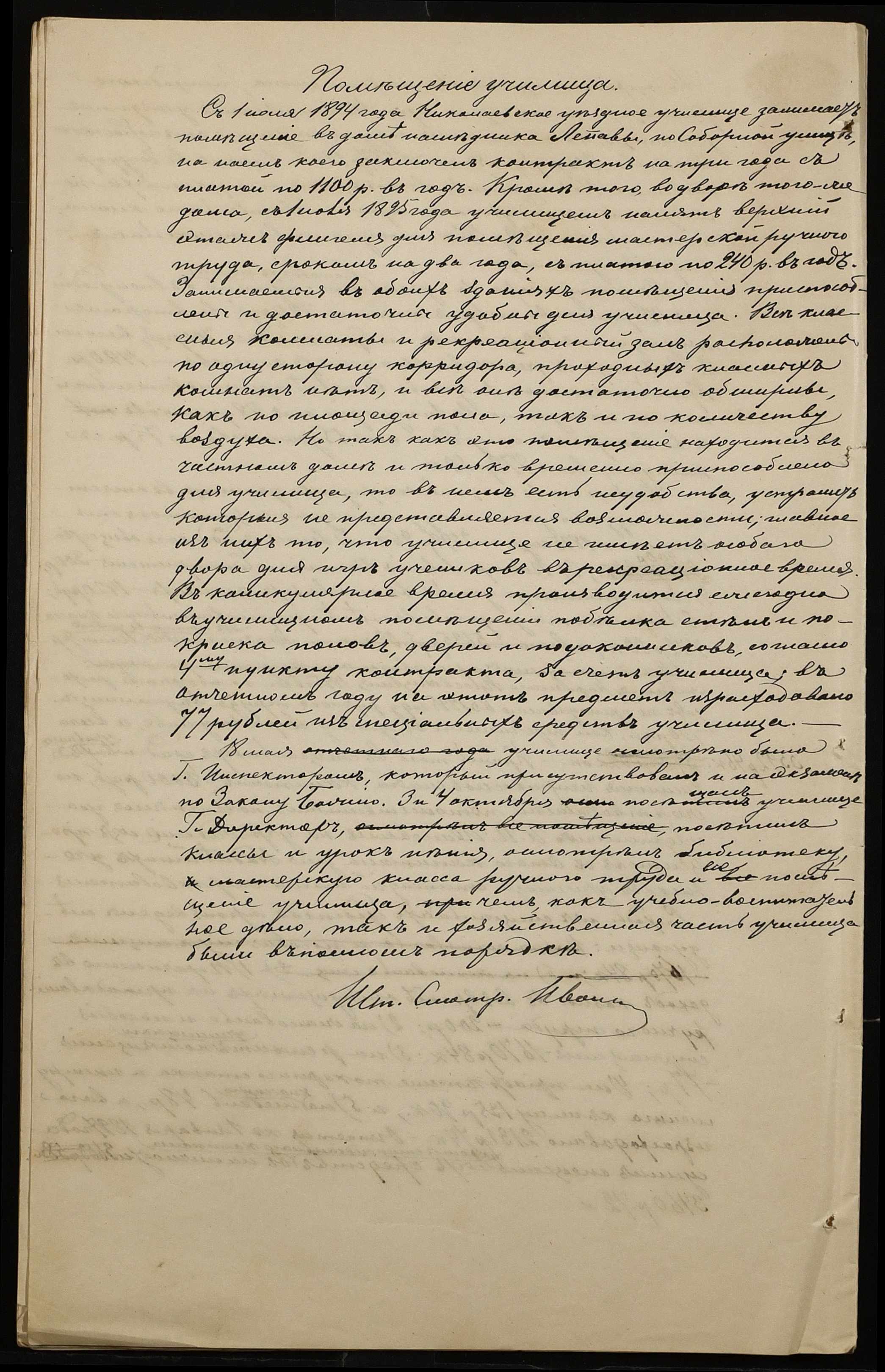 • • • • Справа № 301 “Положення про заснування стипендії почесного громадянина І.І. Іванова (И.И. Иванова), послужні списки чиновників, звіт і відомості про стан класу ручної праці училища за 1894-1895 навчальний рік”