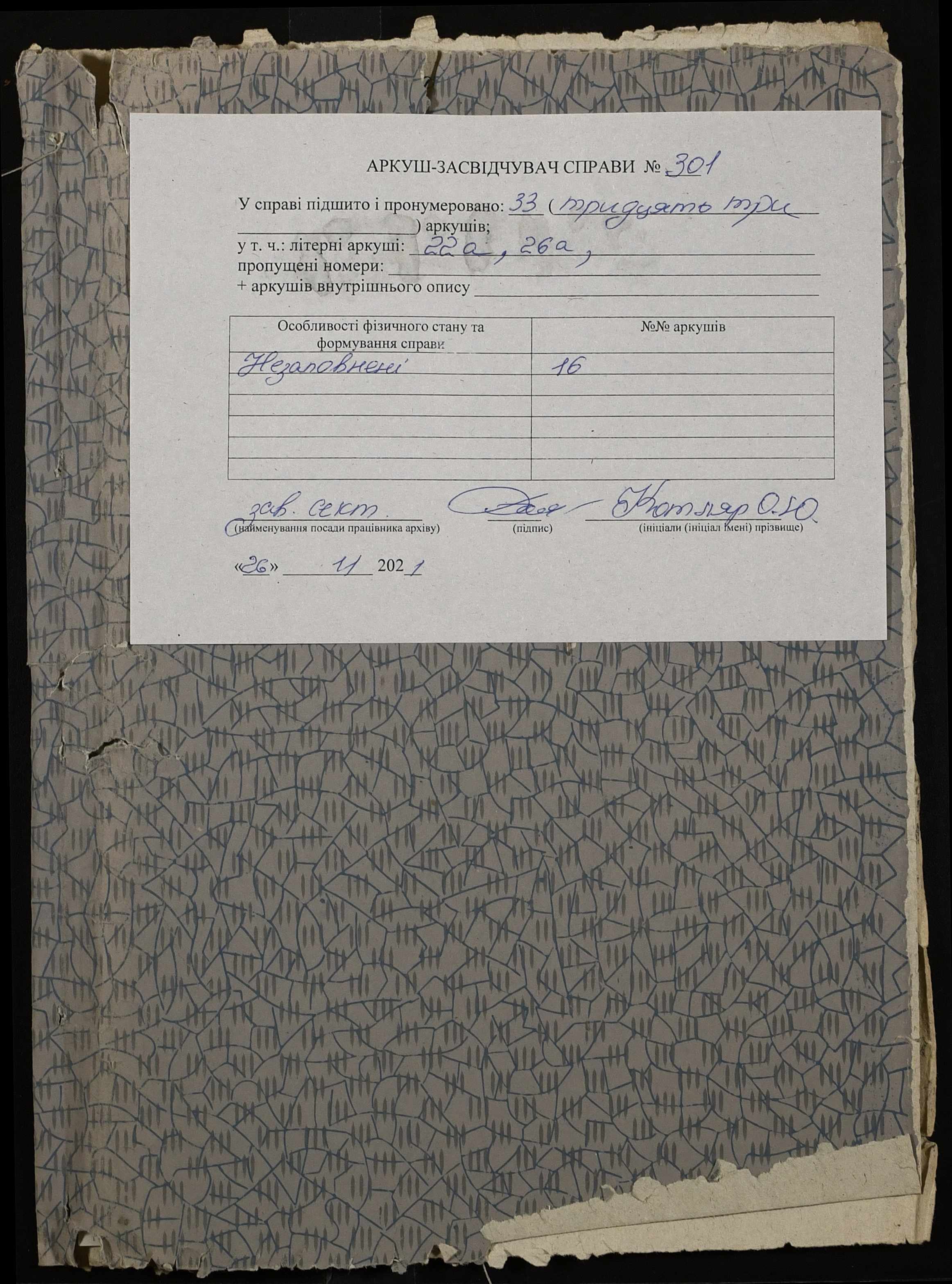 Фонд 131 / Опис 1 / Справа 301