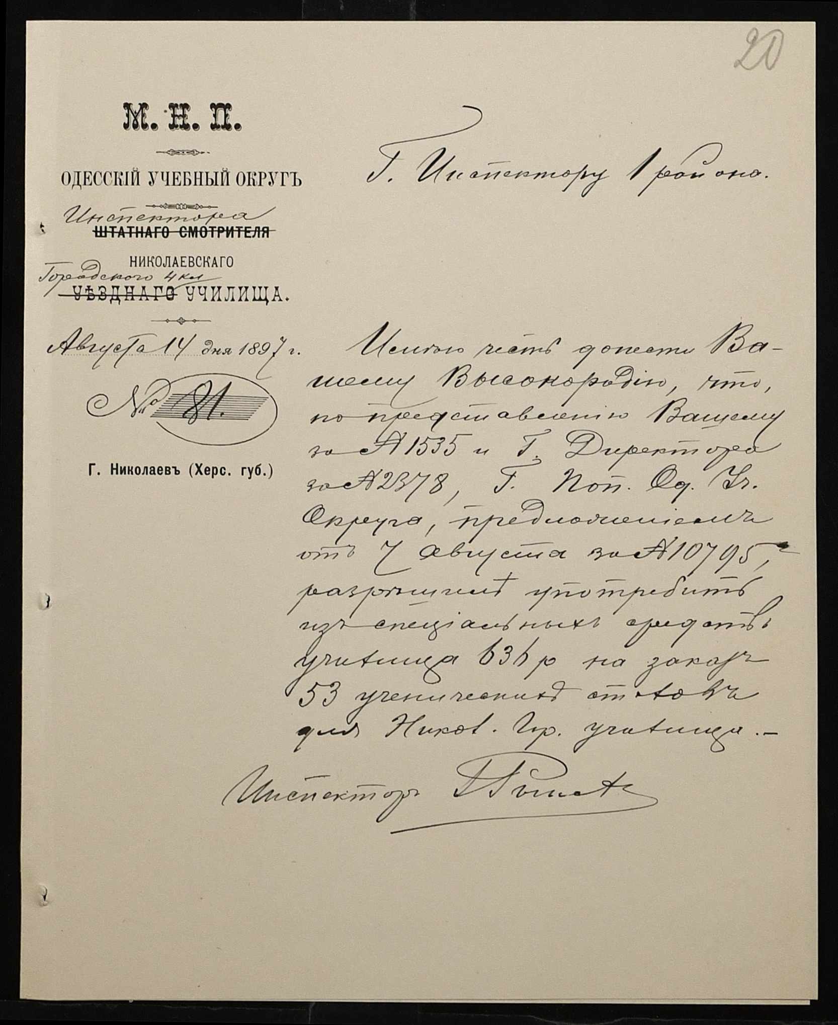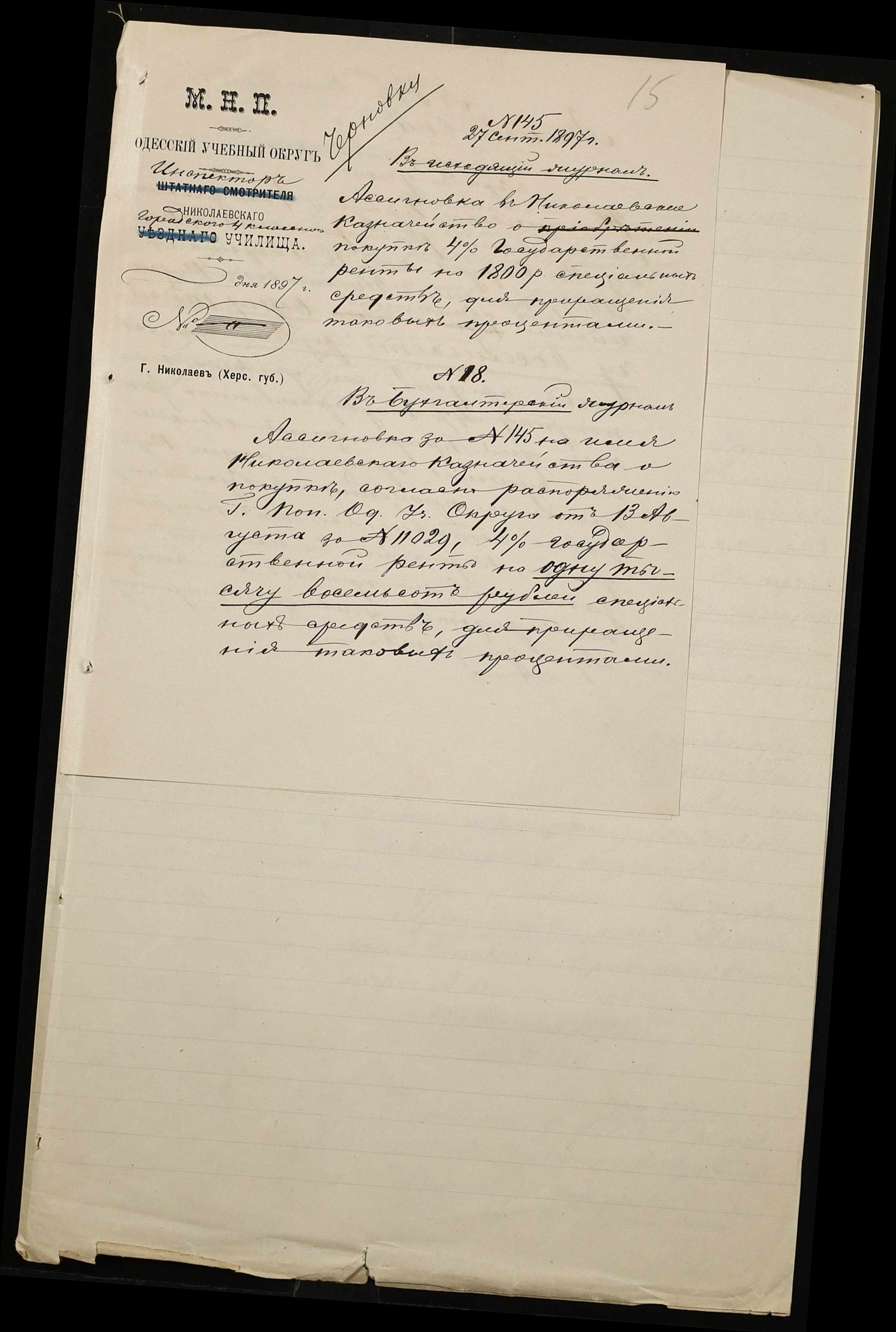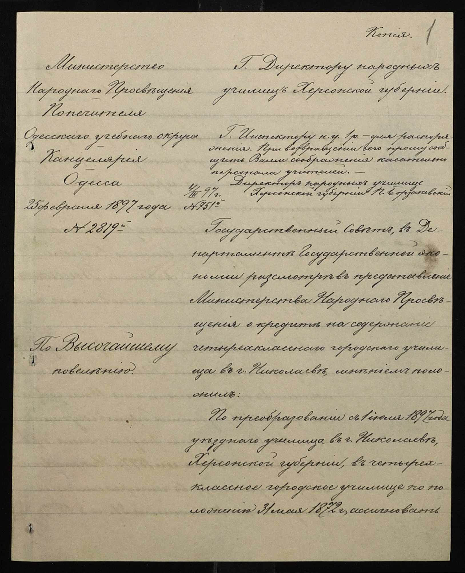 ◦ ◦ Фонд № 131 “Миколаївське перше вище початкове училище”