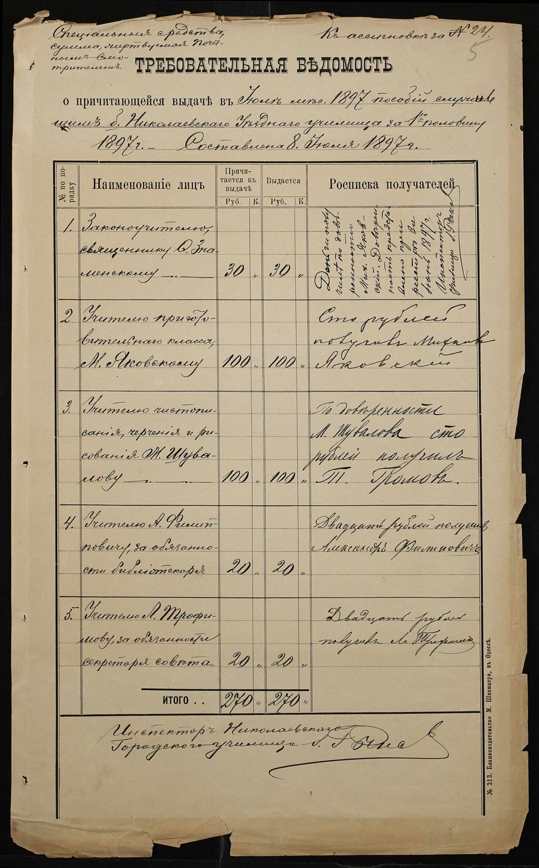 • • • • Справа № 309 “Прибутково-видаткові документи училища (рахунки, відомості)”