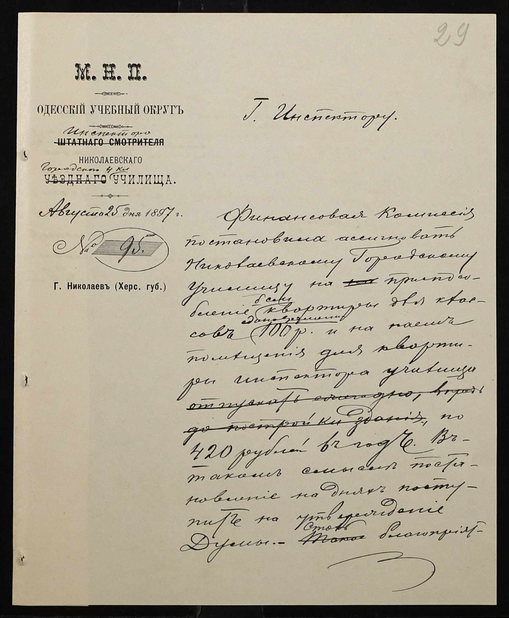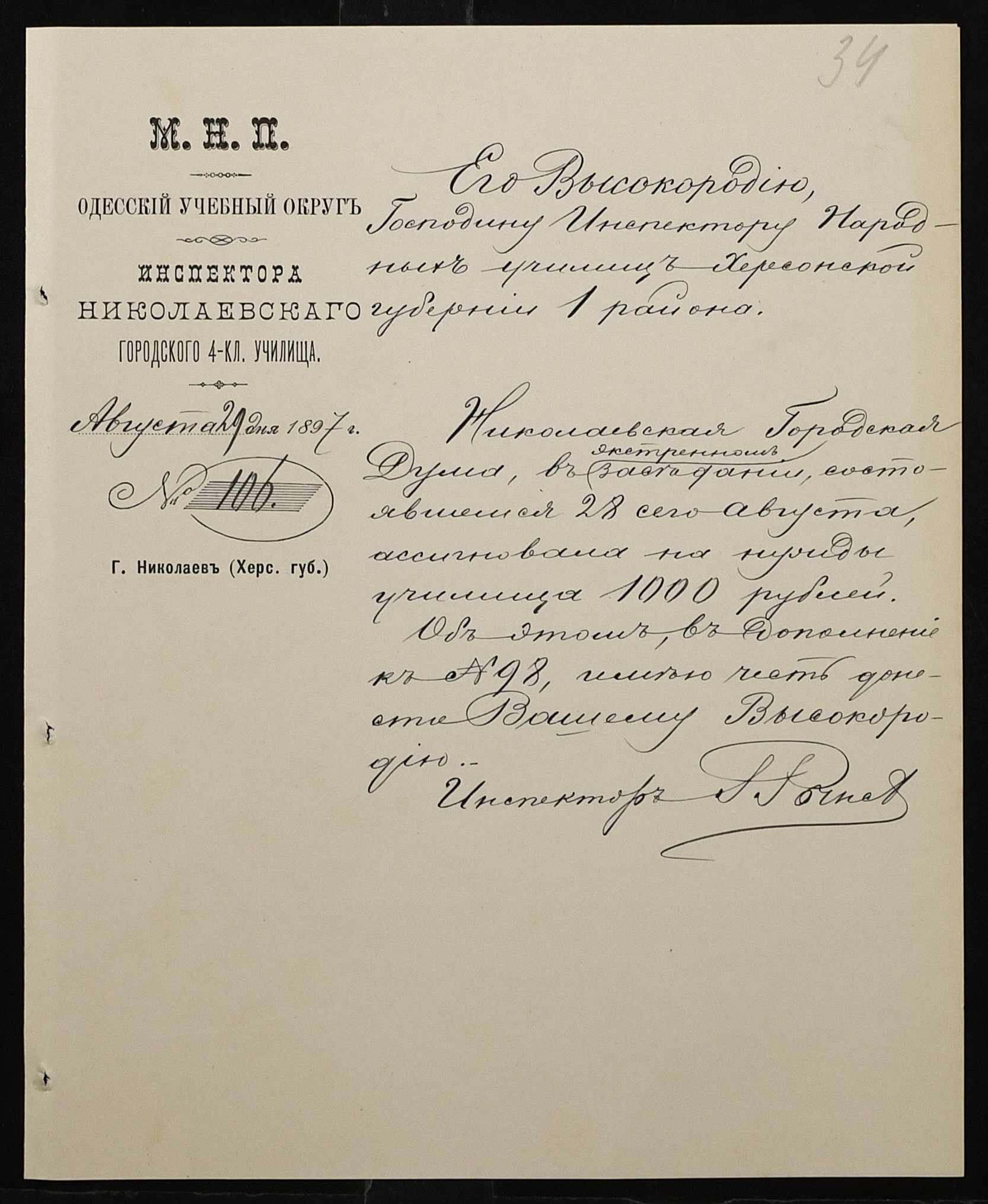 ◦ ◦ Фонд № 131 “Миколаївське перше вище початкове училище”